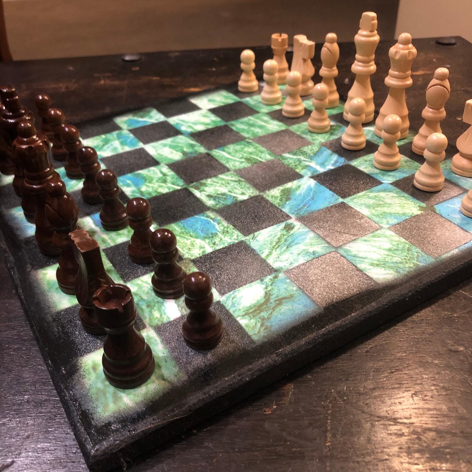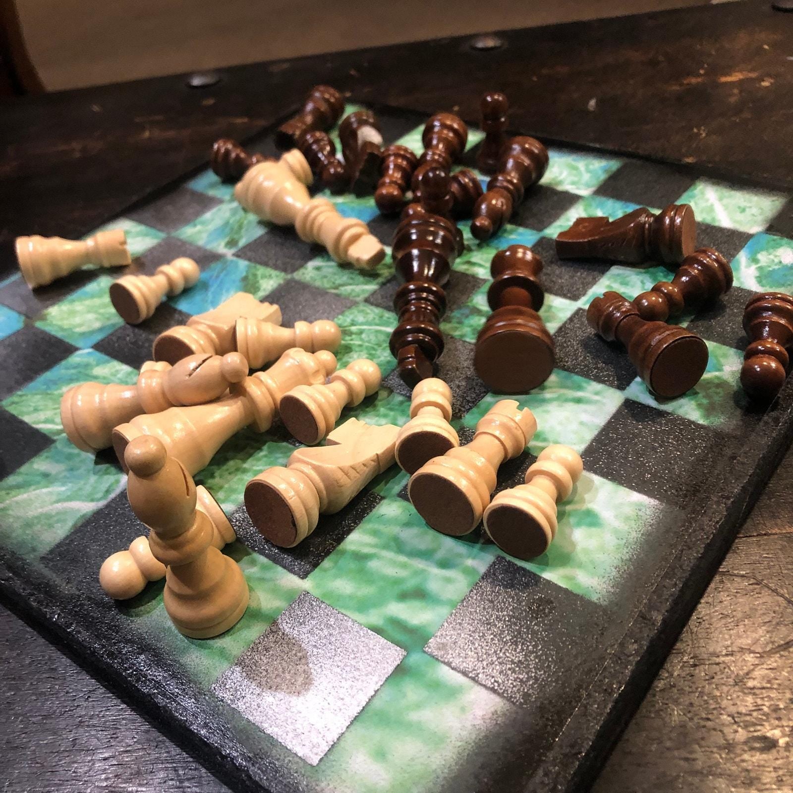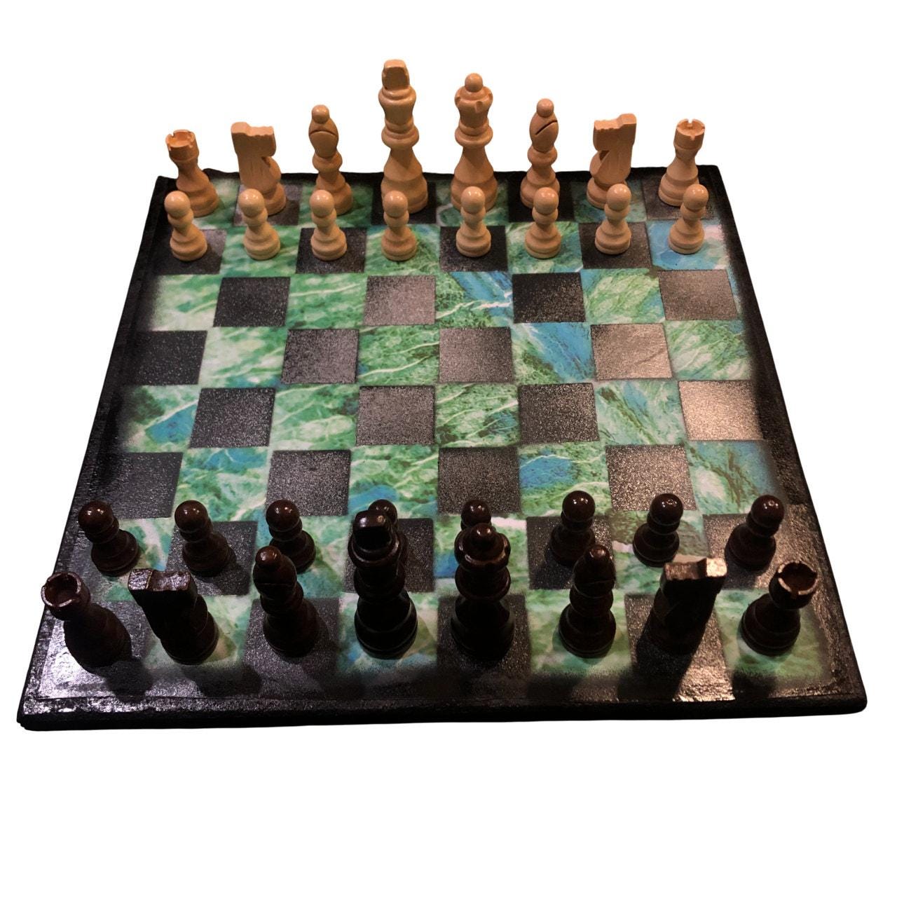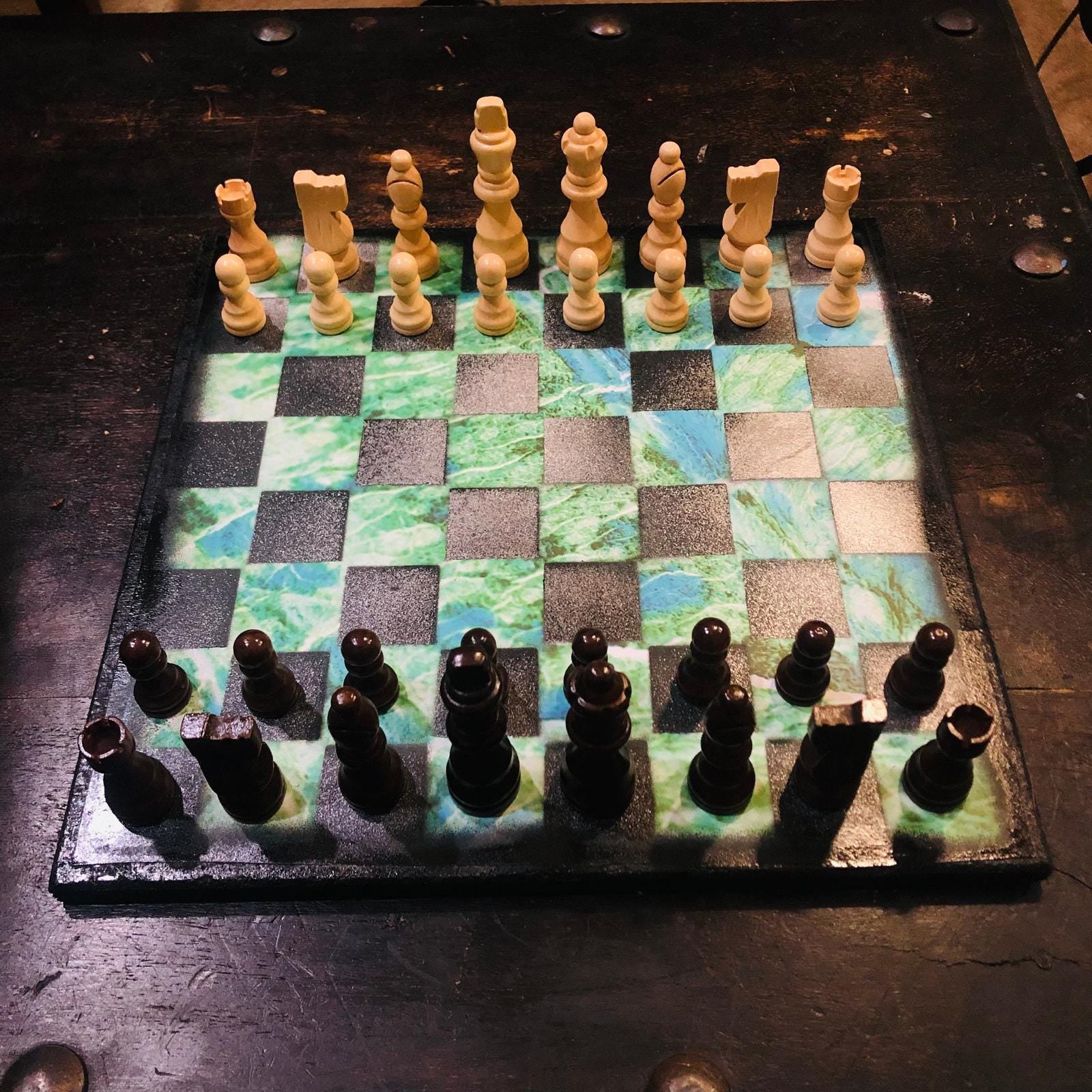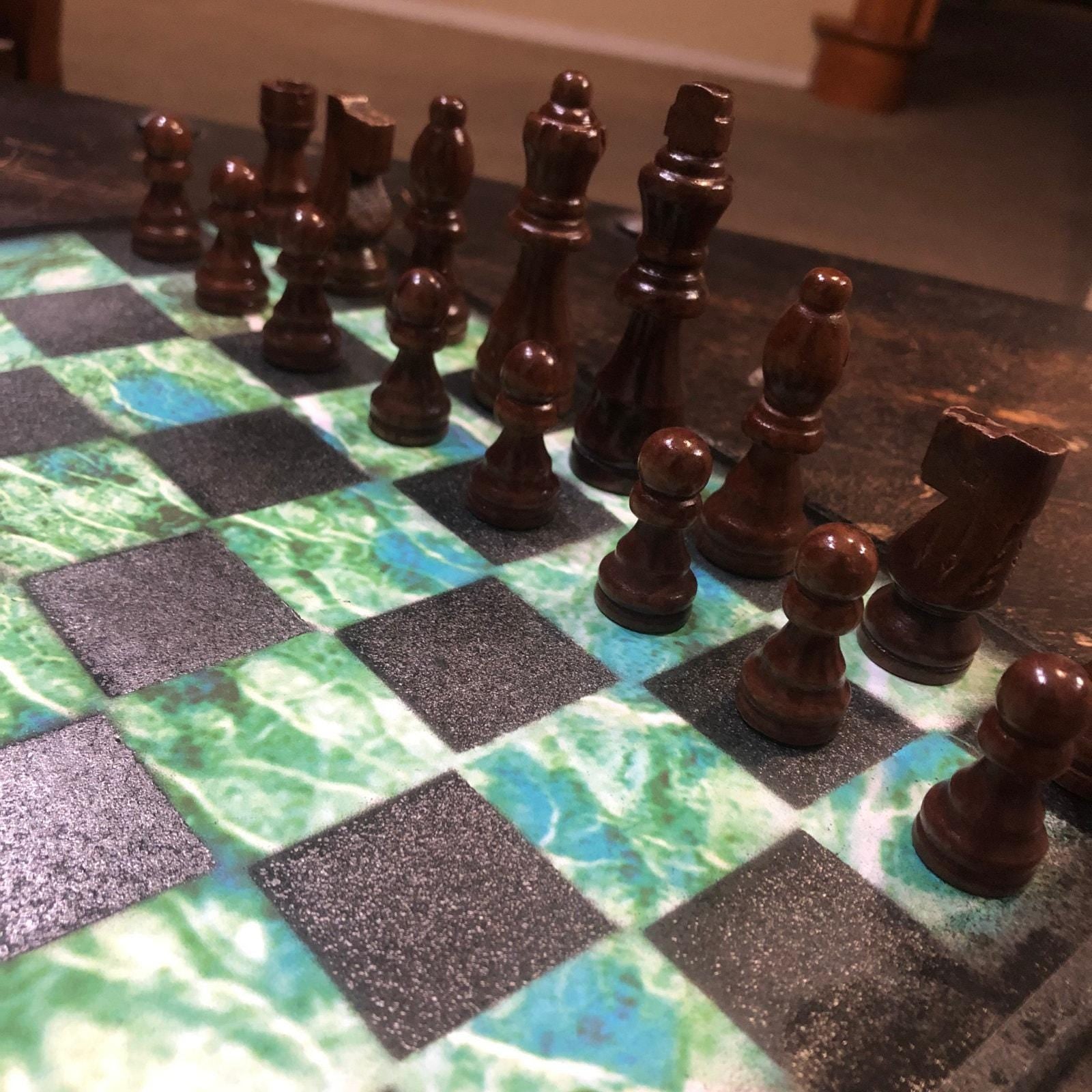Introducing our exclusive Handcrafted Wooden Chess Set, meticulously designed with precision and care. Measuring 12 inches by 12 inches, this chess set features a beautifully painted particle board layered with a sheet of scrapbook paper board that doubles as a work of art. Each set is a unique, one-of-a-kind creation, crafted by hand to ensure that no two sets are alike. Elevate your gaming experience with this exceptional chess set that combines vibrant design with the touch of artisan craftsmanship. This chess board comes with chess pieces and is handcrafted as a one of one