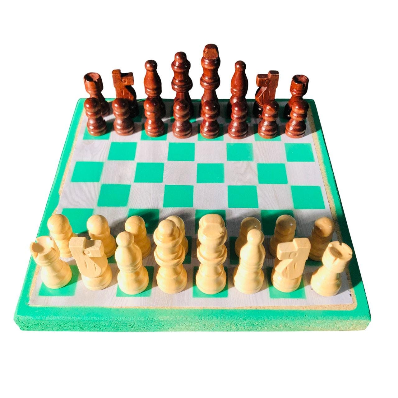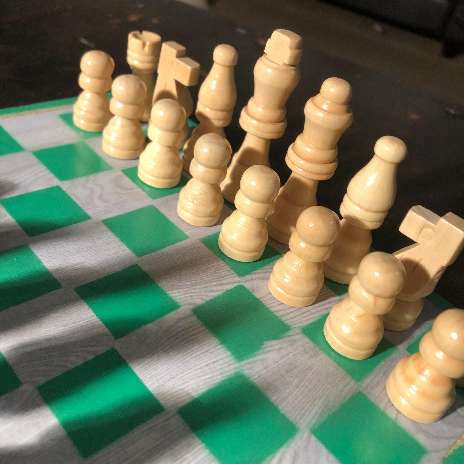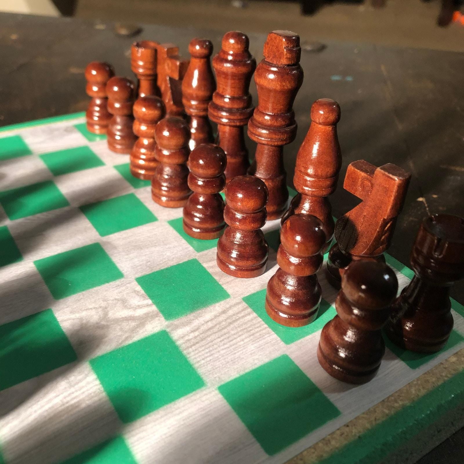 Introducing our exclusive Handcrafted Wooden Chess Set, meticulously designed with precision and care. Measuring 8 inches by 8 inches, this chess set features a beautifully painted particle board layered with a sheet of scrapbook paper board that doubles as a work of art. Each set is a unique, one-of-a-kind creation, crafted by hand to ensure that no two sets are alike. Elevate your gaming experience with this exceptional chess set that combines vibrant design with the touch of artisan craftsmanship. This chess board comes with chess pieces and is handcrafted as a one of one