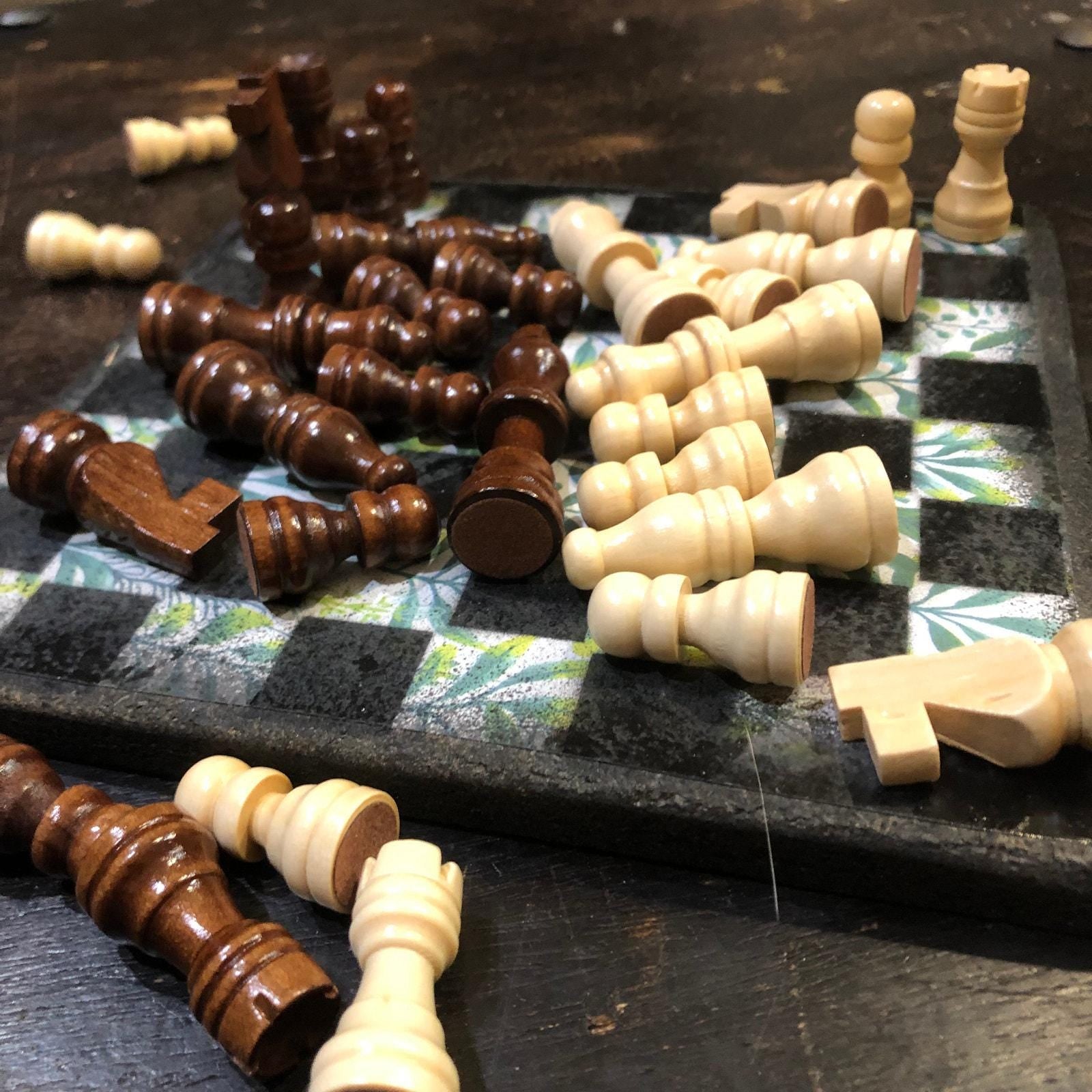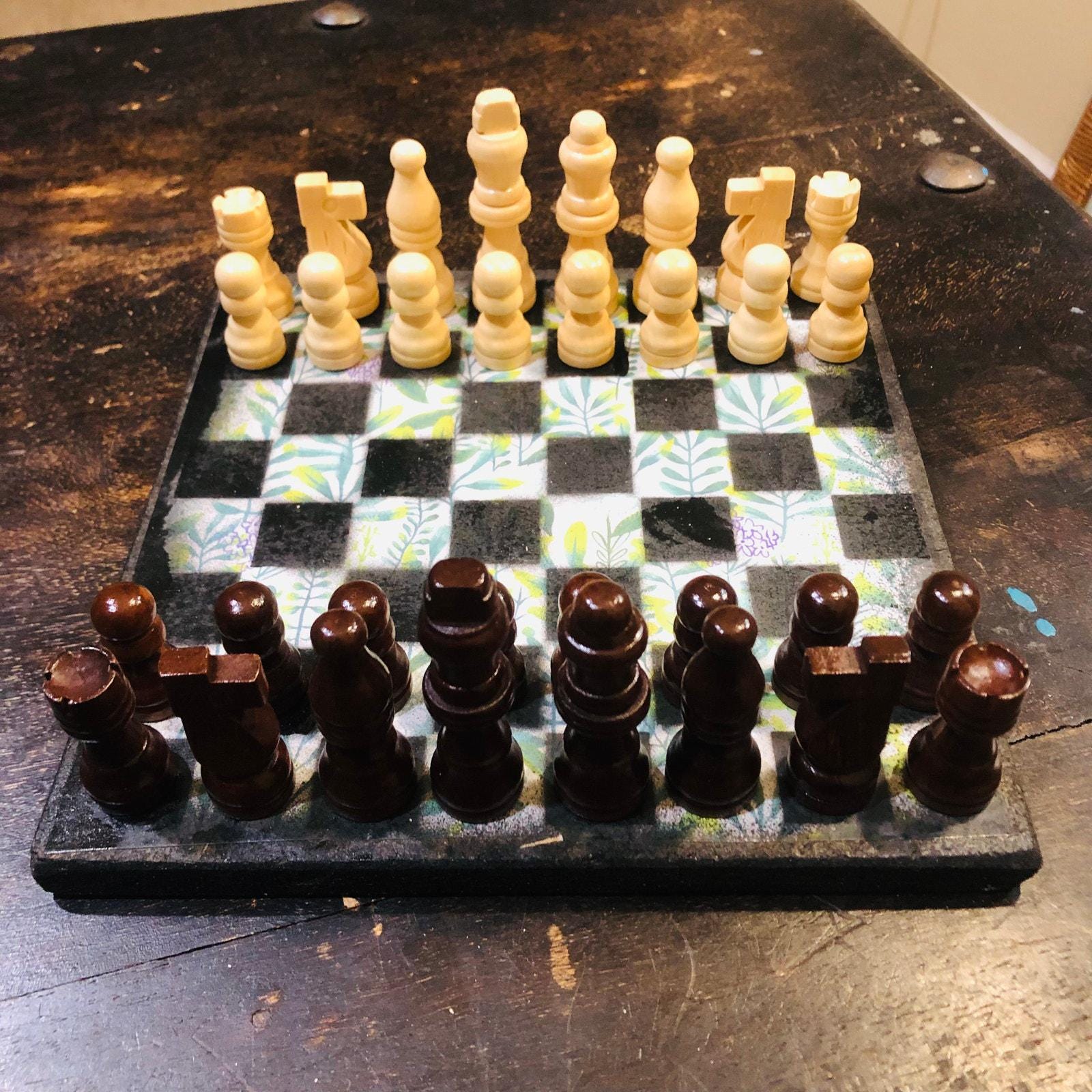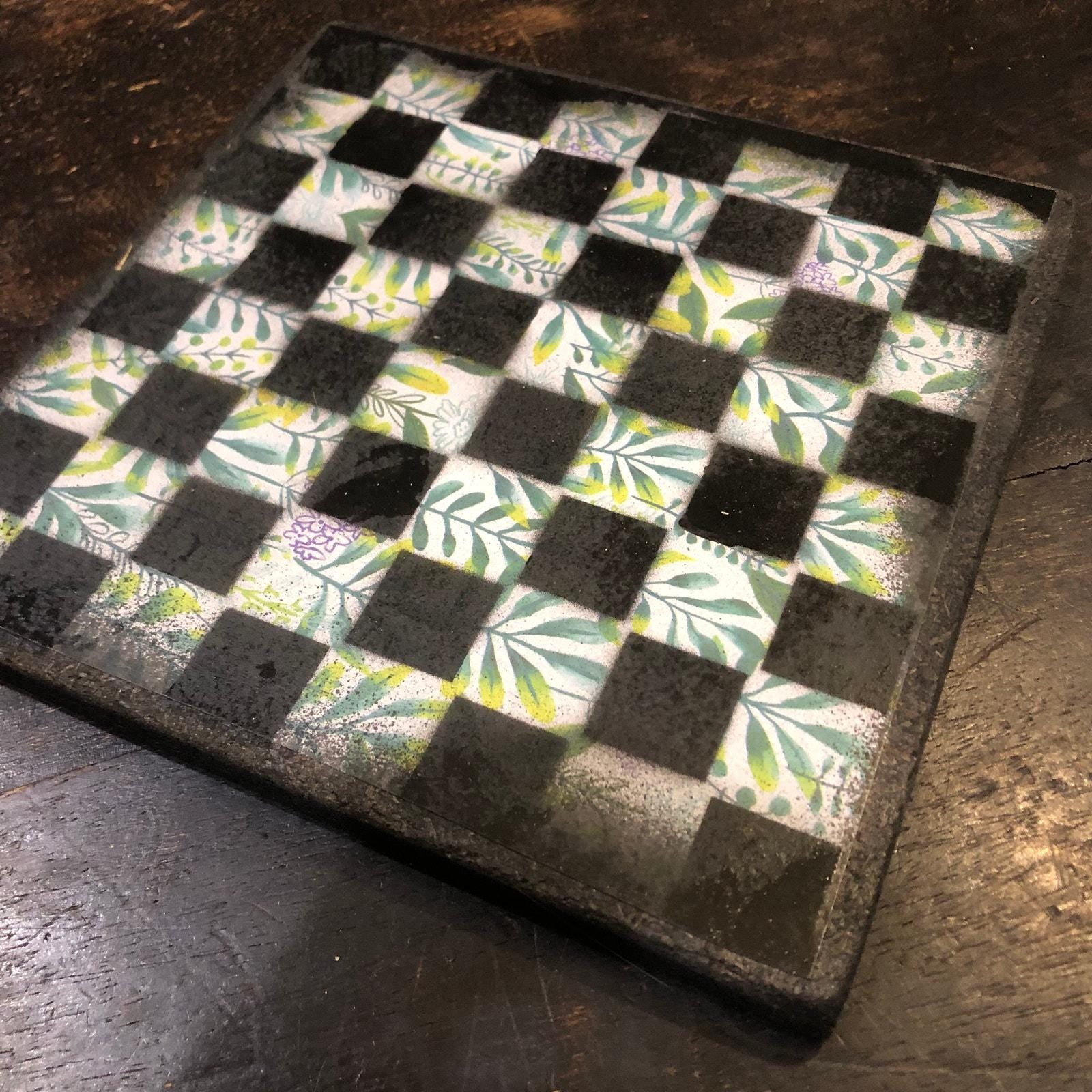 Introducing our exclusive Handcrafted Wooden Chess Set, meticulously designed with precision and care. Measuring 8 inches by 8 inches, this chess set features a beautifully painted particle board layered with a sheet of scrapbook paper board that doubles as a work of art. Each set is a unique, one-of-a-kind creation, crafted by hand to ensure that no two sets are alike. Elevate your gaming experience with this exceptional chess set that combines vibrant design with the touch of artisan craftsmanship. This chess board comes with chess pieces and is handcrafted as a one of one