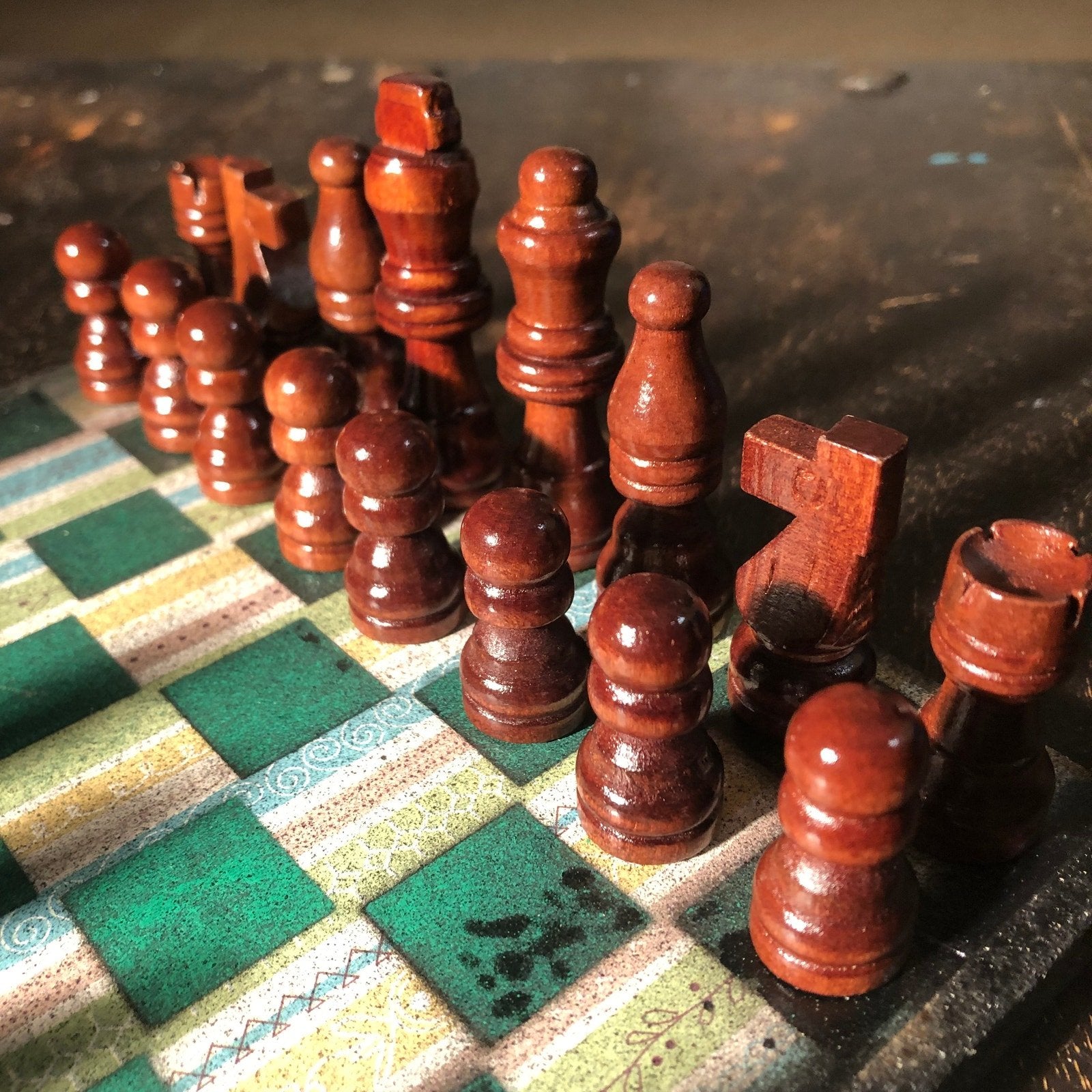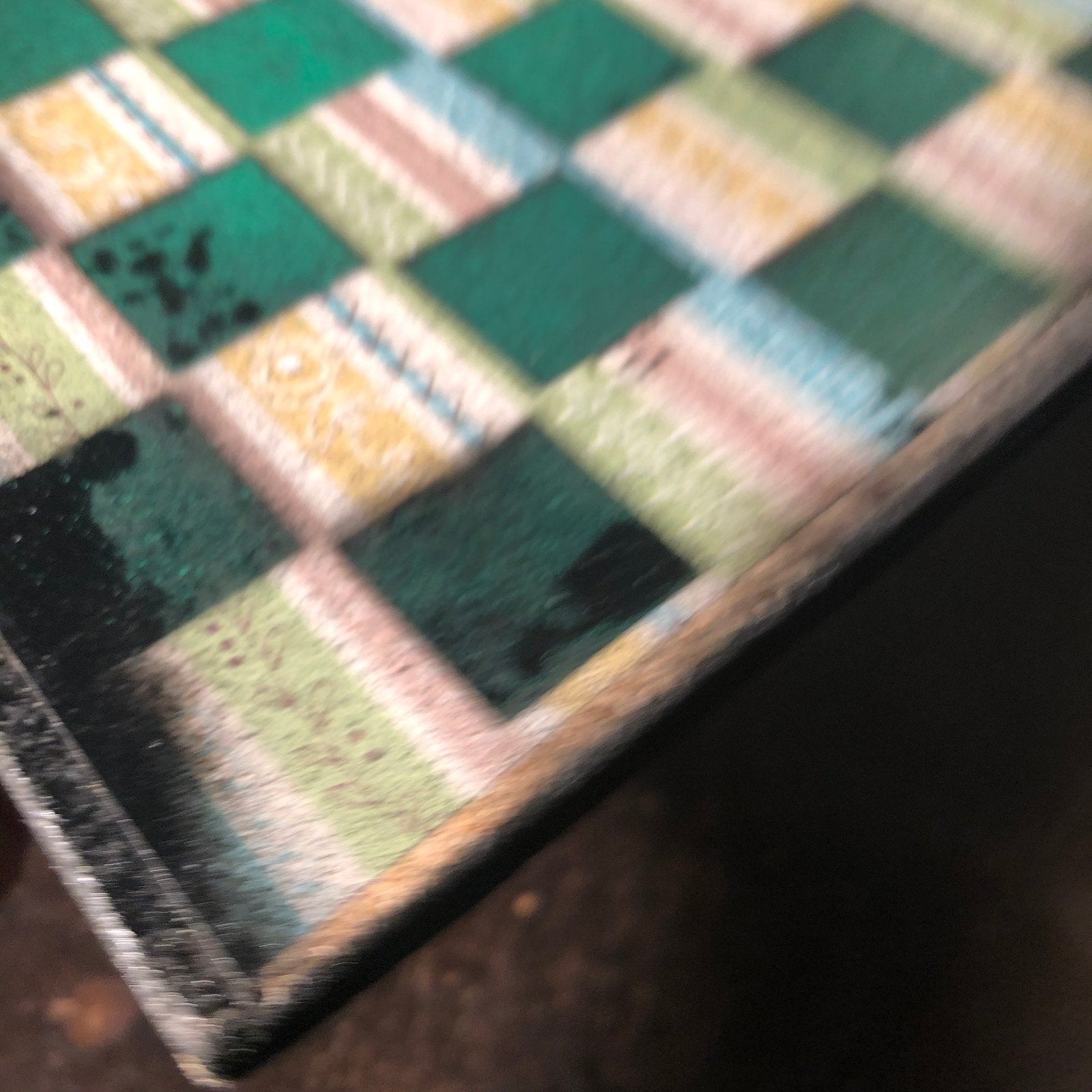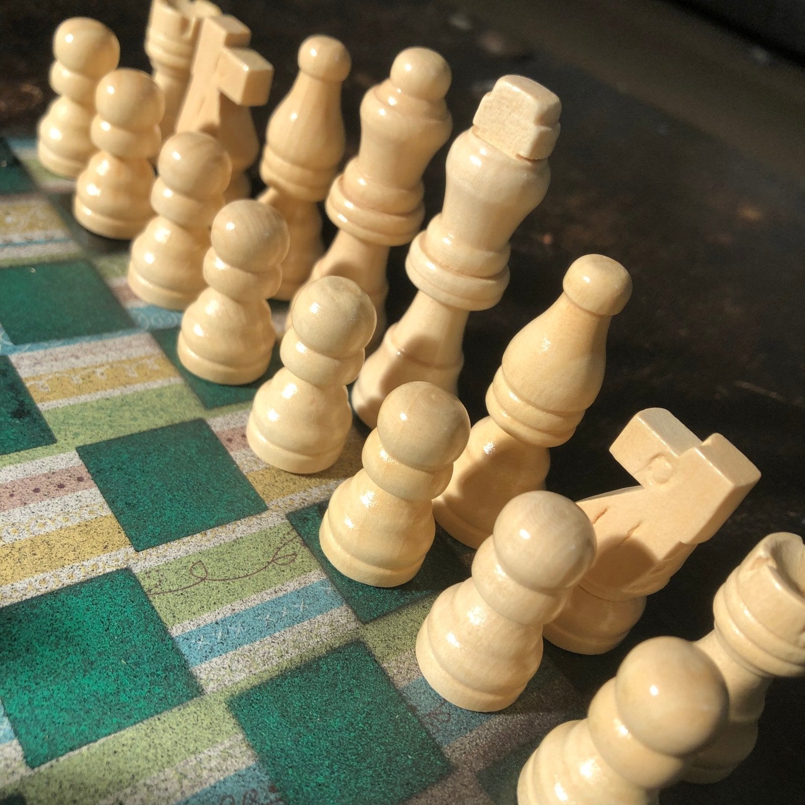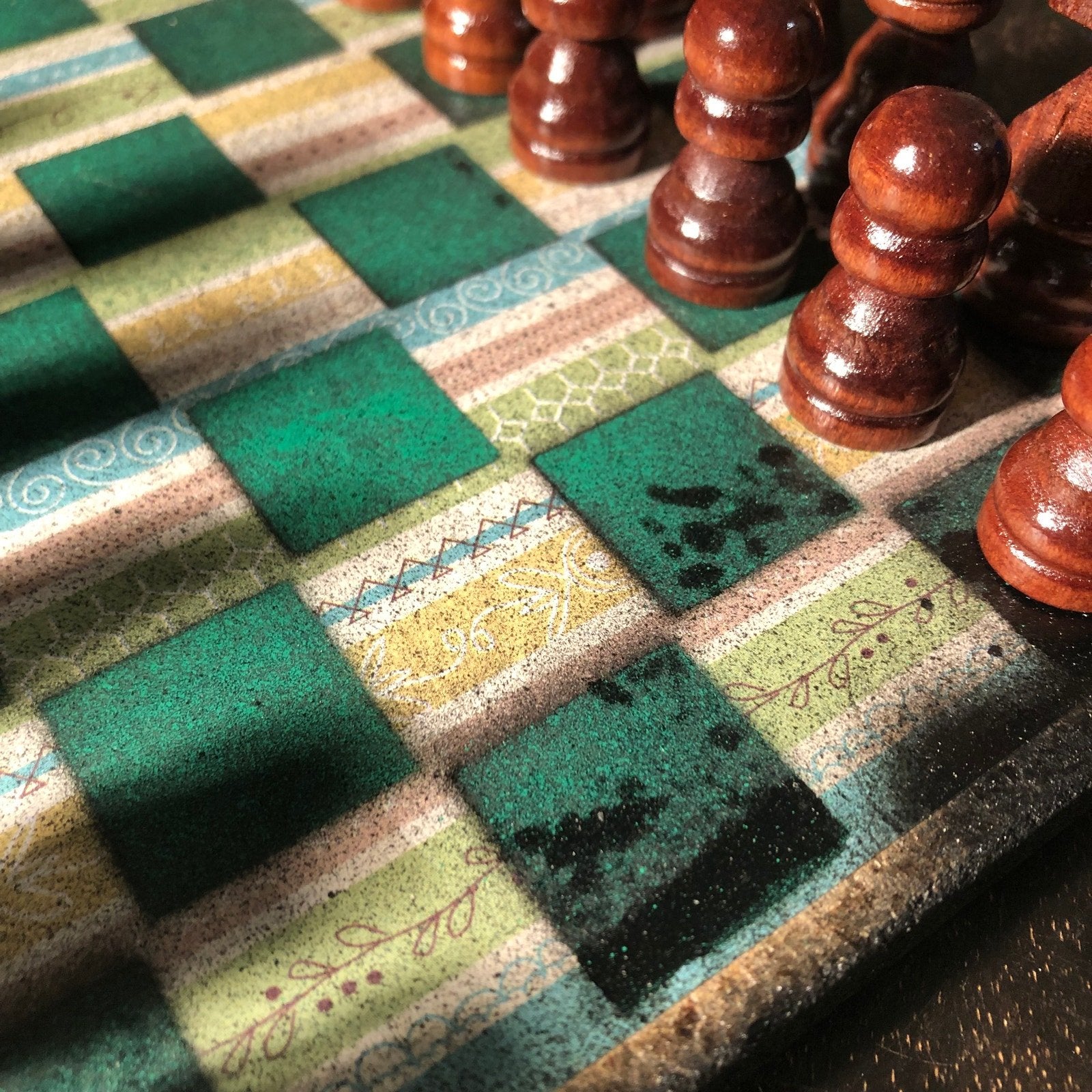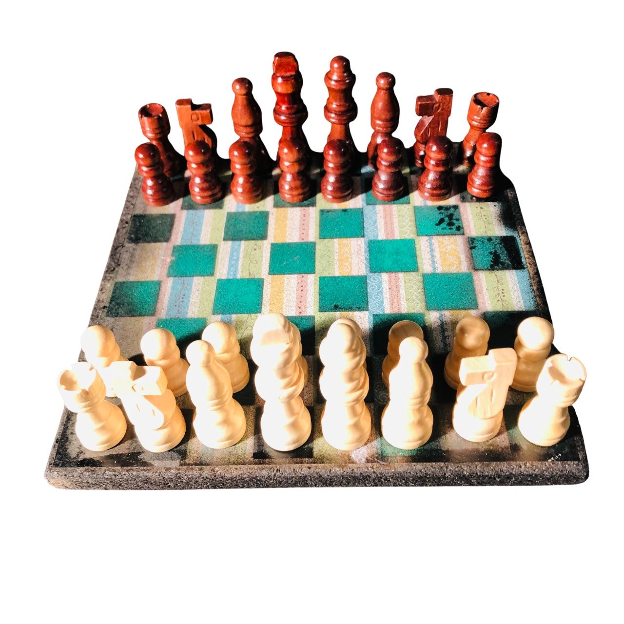 Introducing our exclusive Handcrafted Wooden Chess Set, meticulously designed with precision and care. Measuring 8 inches by 8 inches, this chess set features a beautifully painted particle board layered with a sheet of scrapbook paper board that doubles as a work of art. Each set is a unique, one-of-a-kind creation, crafted by hand to ensure that no two sets are alike. Elevate your gaming experience with this exceptional chess set that combines vibrant design with the touch of artisan craftsmanship. This chess board comes with chess pieces and is handcrafted as a one of one