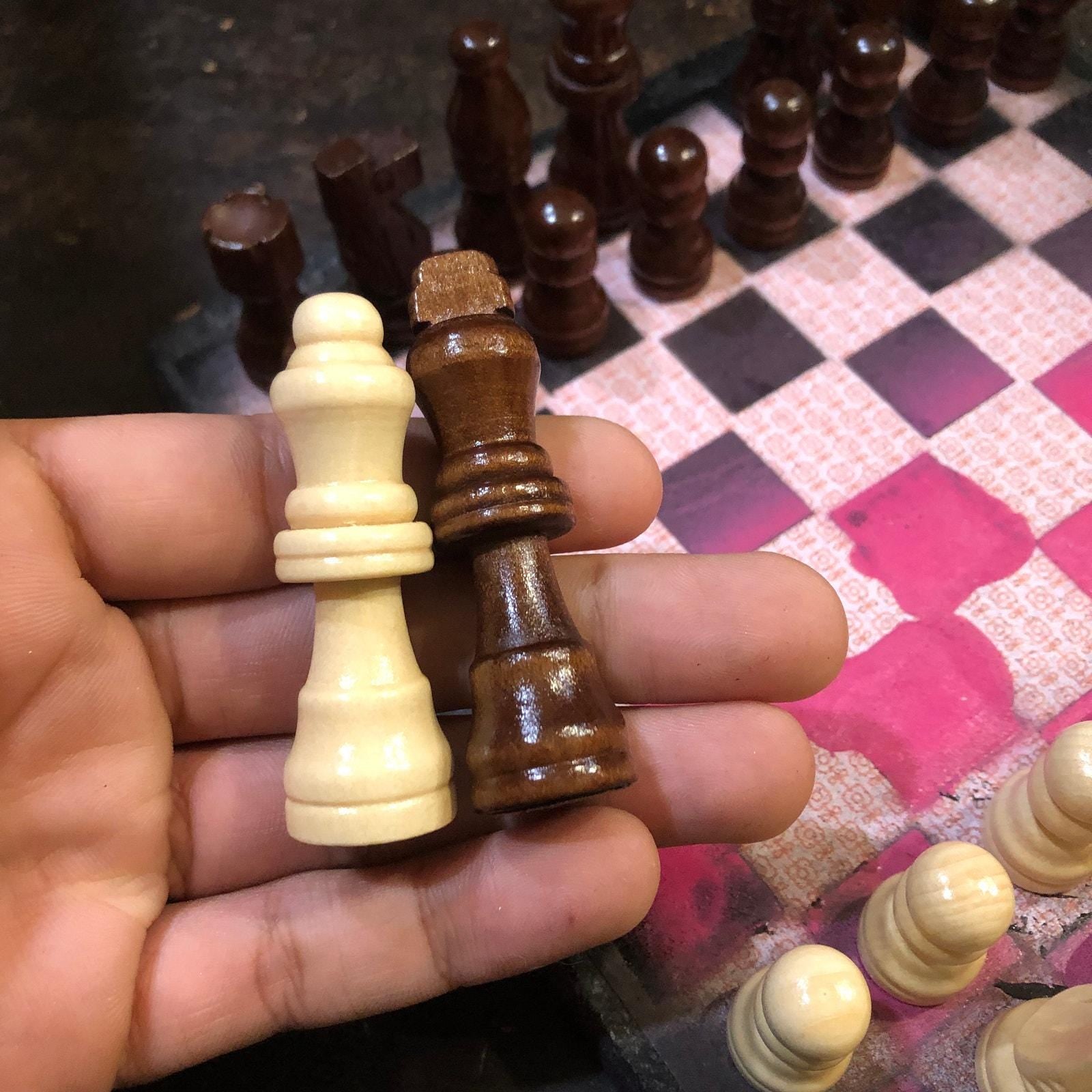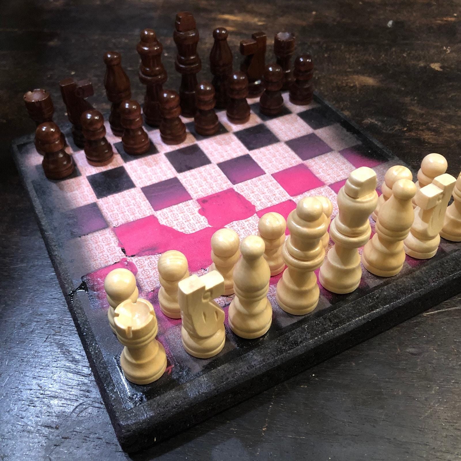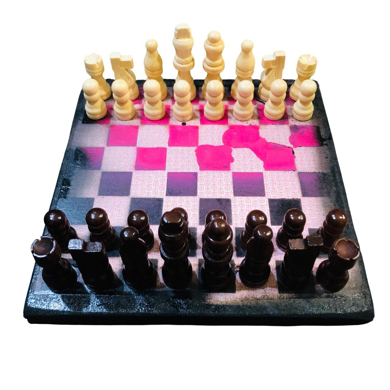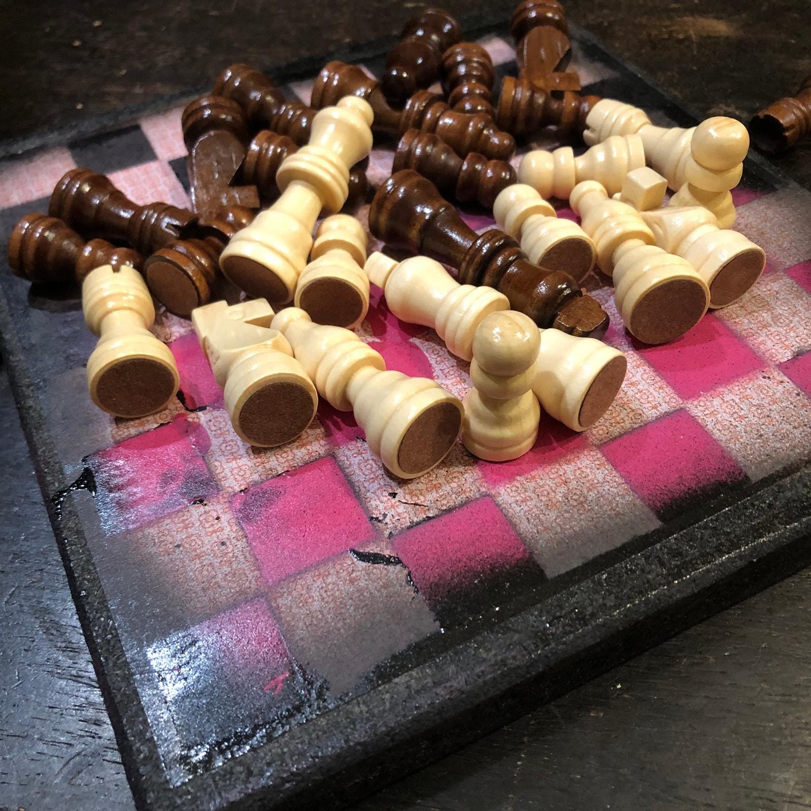 Introducing our exclusive Handcrafted Wooden Chess Set, meticulously designed with precision and care. Measuring 8 inches by 8 inches, this chess set features a beautifully painted particle board layered with a sheet of scrapbook paper board that doubles as a work of art. Each set is a unique, one-of-a-kind creation, crafted by hand to ensure that no two sets are alike. Elevate your gaming experience with this exceptional chess set that combines vibrant design with the touch of artisan craftsmanship. This chess board comes with chess pieces and is handcrafted as a one of one