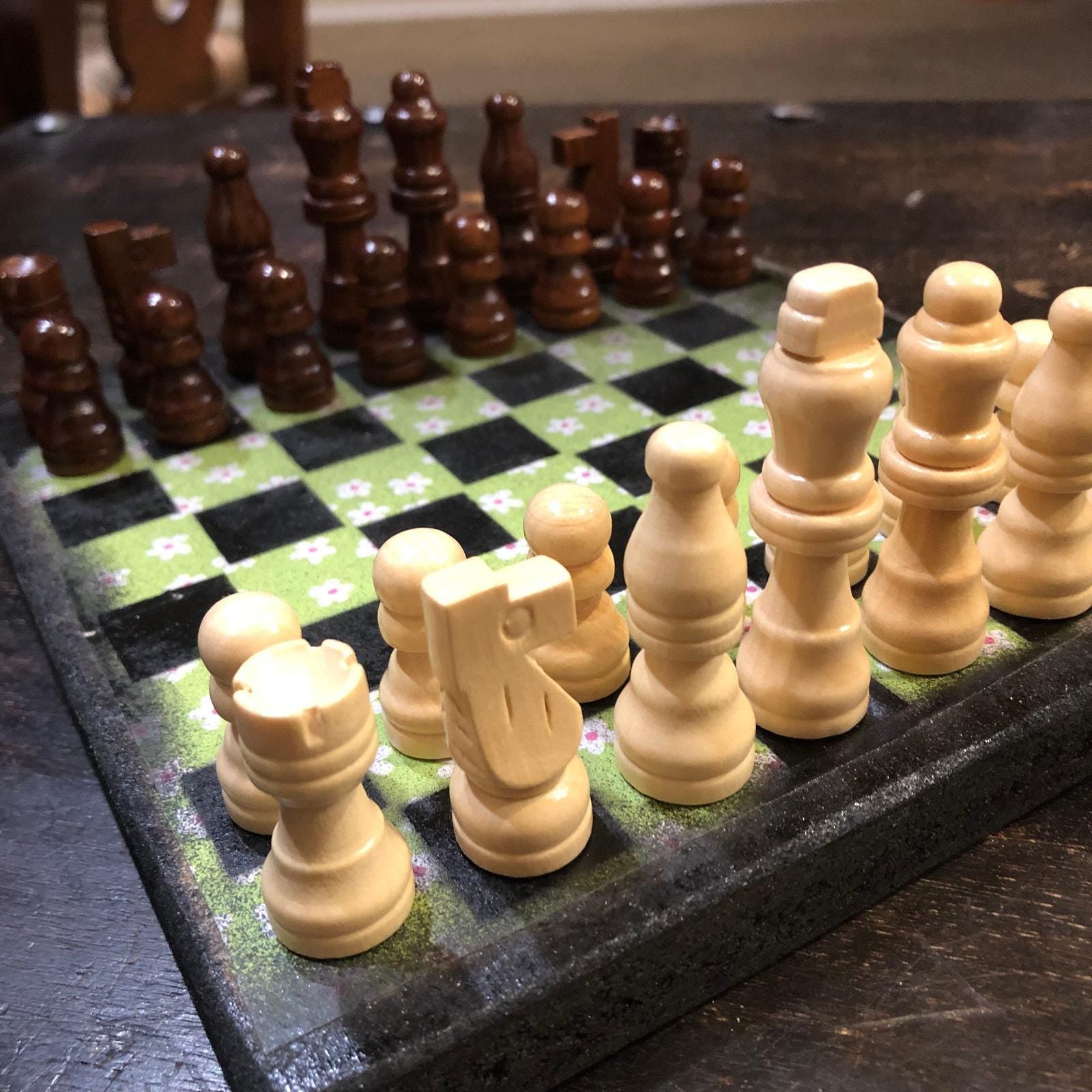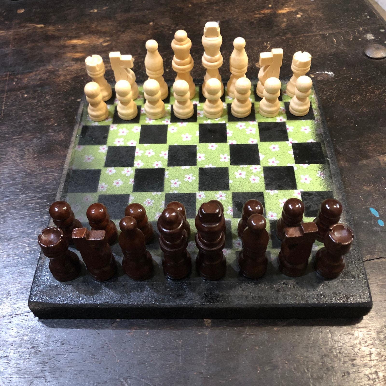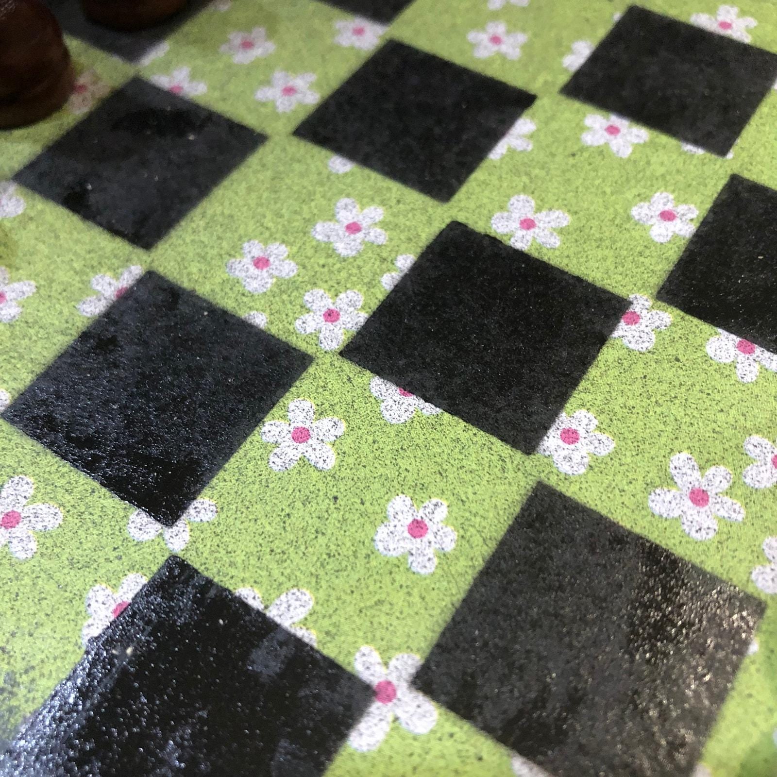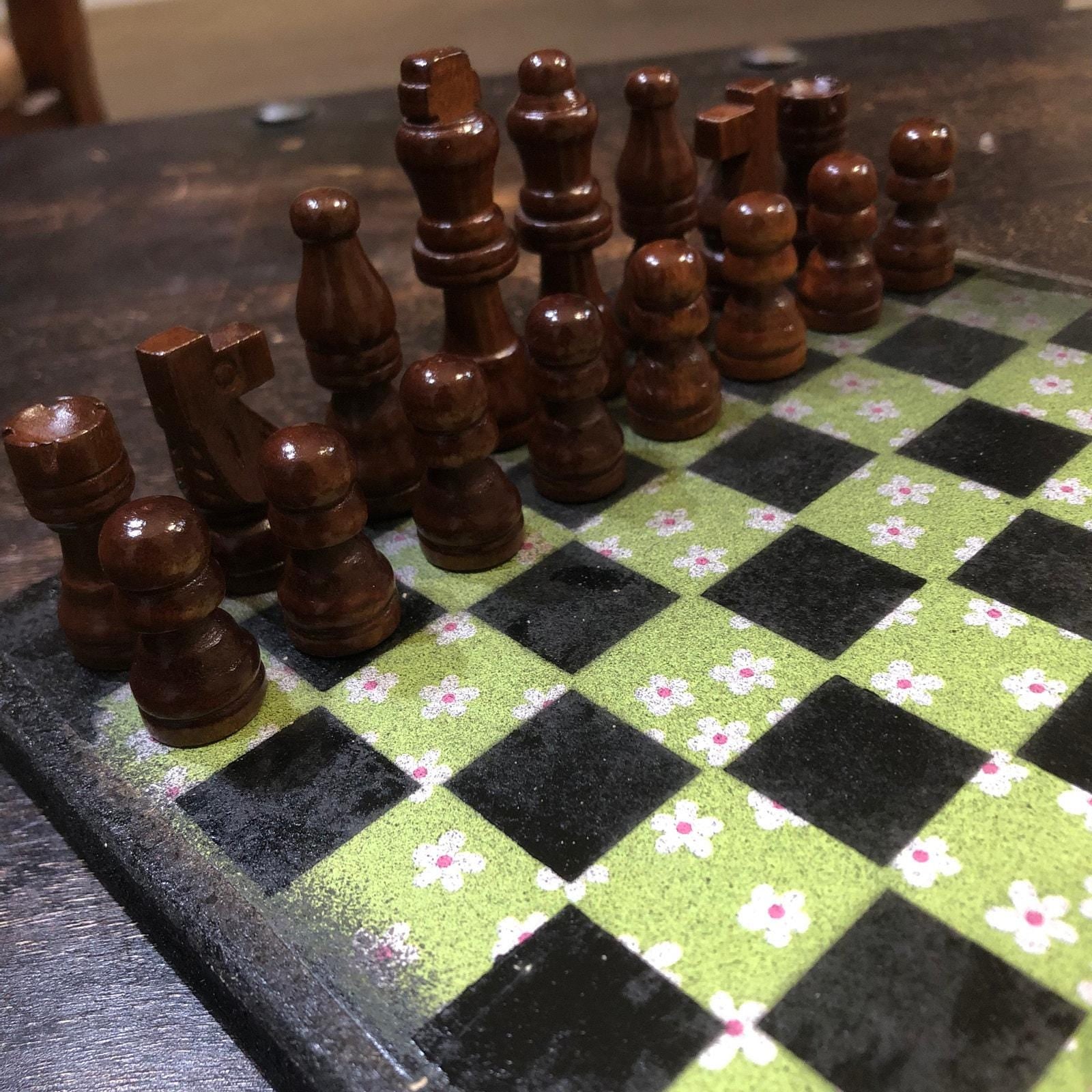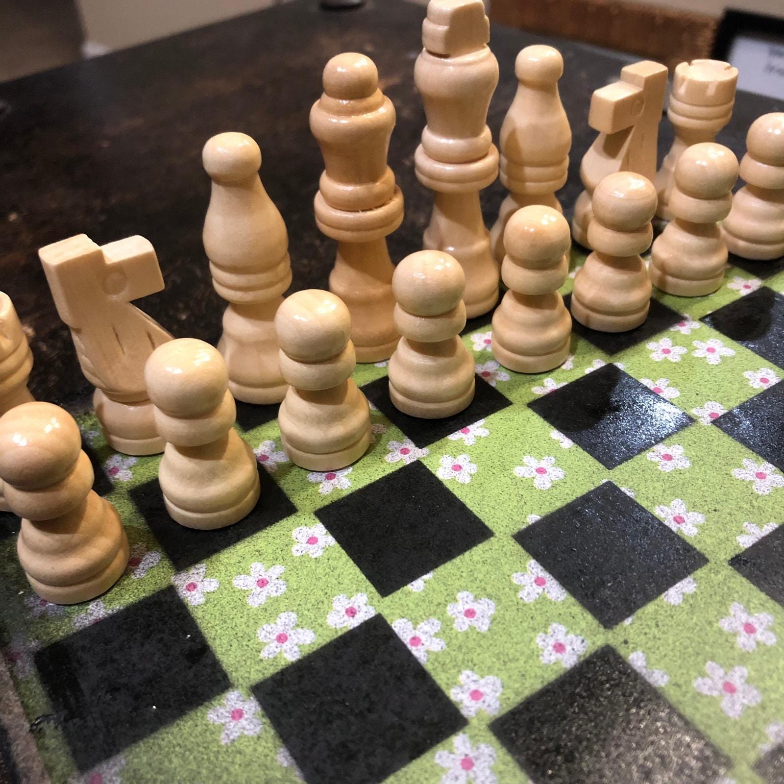 Introducing our exclusive Handcrafted Wooden Chess Set, meticulously designed with precision and care. Measuring 8 inches by 8 inches, this chess set features a beautifully painted particle board layered with a sheet of scrapbook paper board that doubles as a work of art. Each set is a unique, one-of-a-kind creation, crafted by hand to ensure that no two sets are alike. Elevate your gaming experience with this exceptional chess set that combines vibrant design with the touch of artisan craftsmanship. This chess board comes with chess pieces and is handcrafted as a one of one