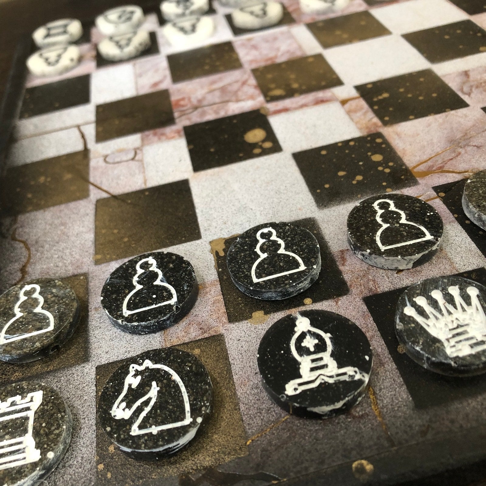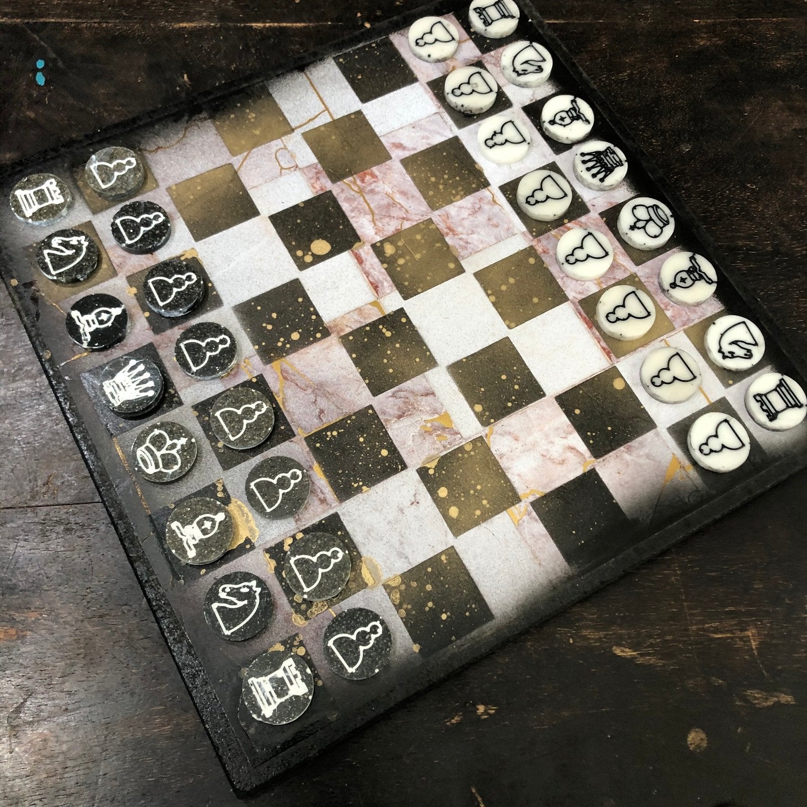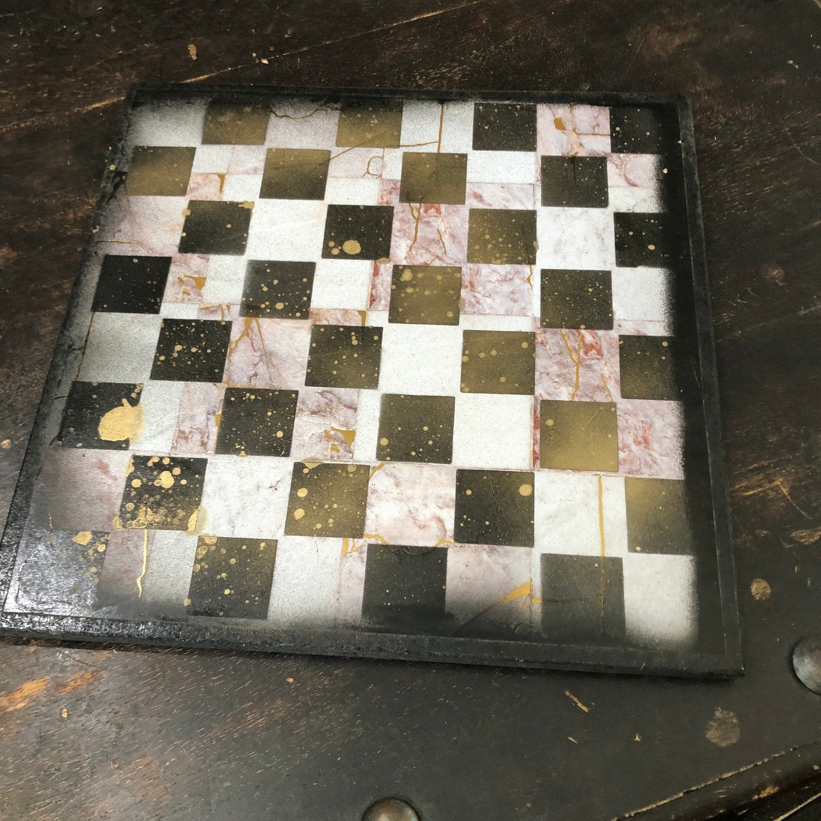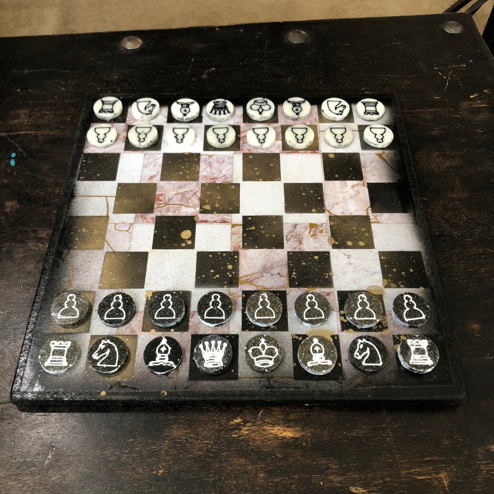 Introducing our exclusive Handcrafted Wooden Chess Set, meticulously designed with precision and care. Measuring 12 inches by 12 inches, this chess set features a beautifully painted particle board layered with a sheet of scrapbook paper board that doubles as a work of art. Each set is a unique, one-of-a-kind creation, crafted by hand to ensure that no two sets are alike. Elevate your gaming experience with this exceptional chess set that combines vibrant design with the touch of artisan craftsmanship. This chess board comes with chess pieces and is handcrafted as a one of one