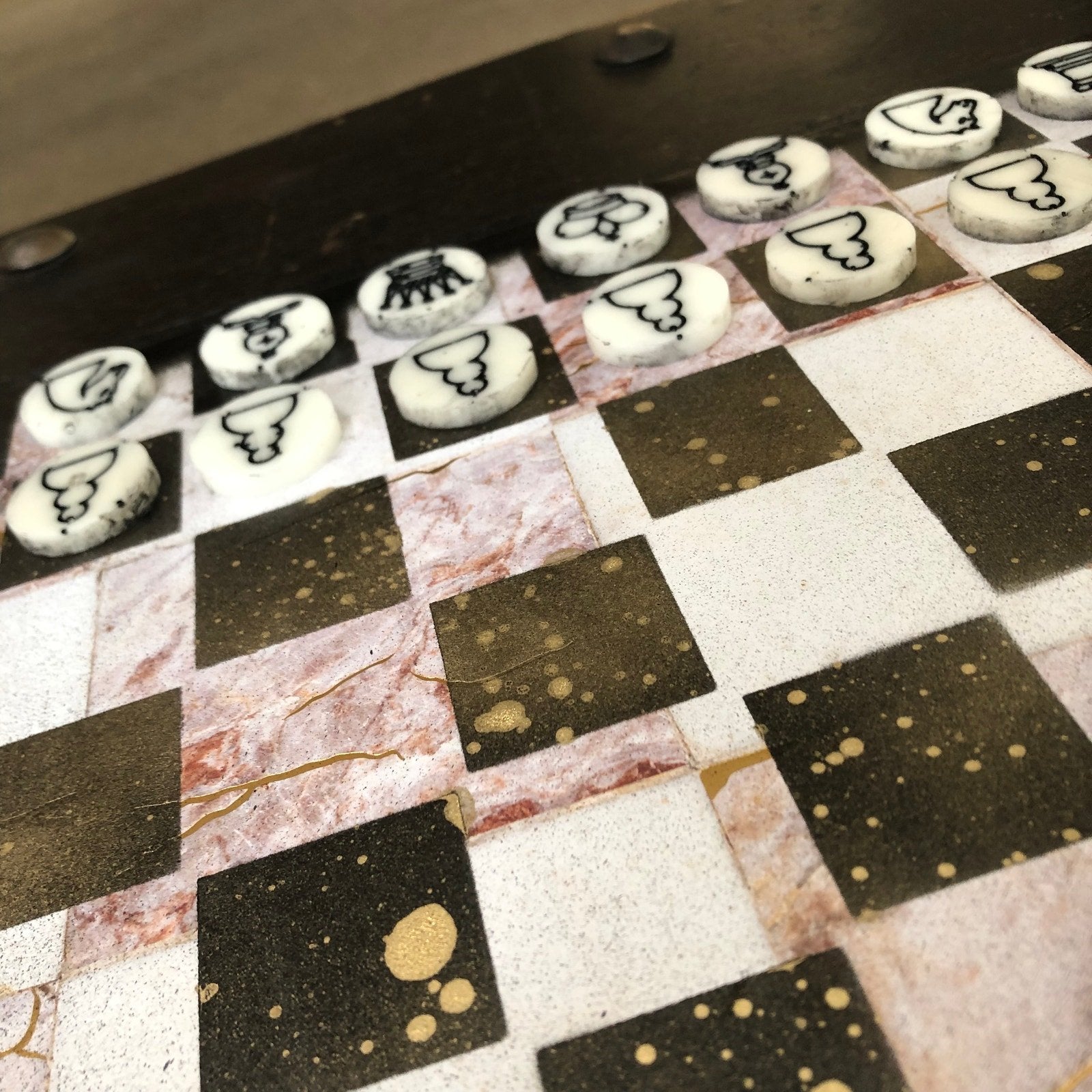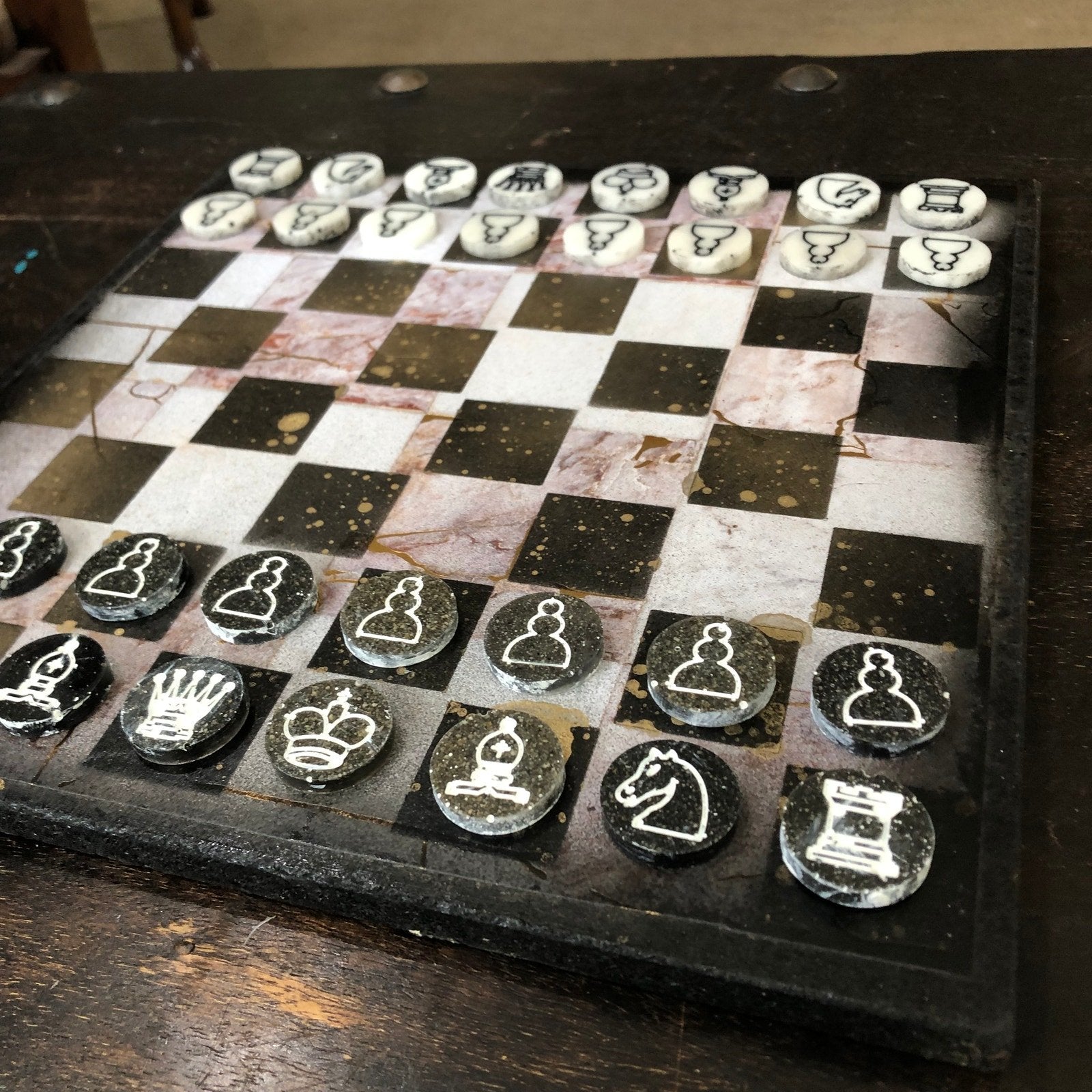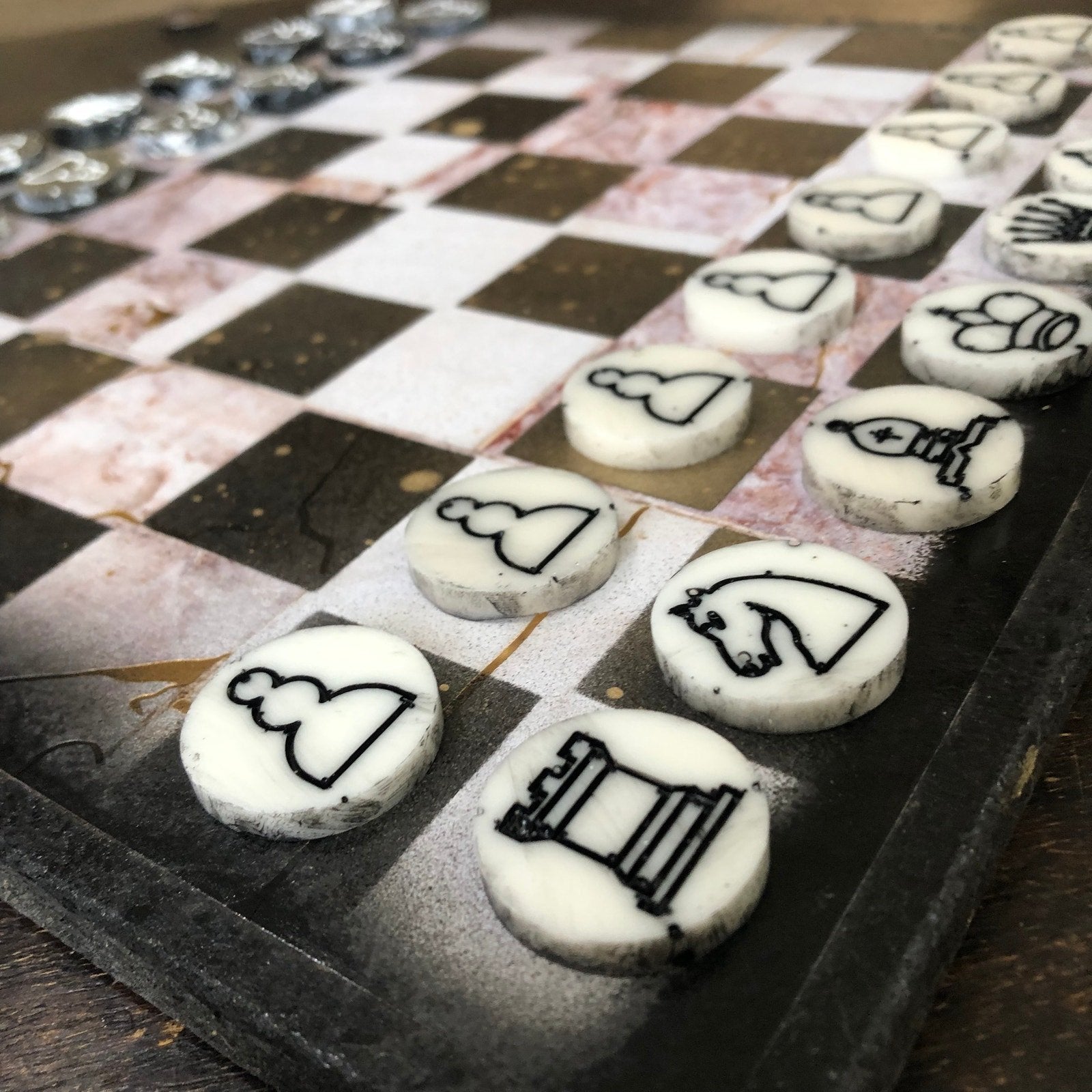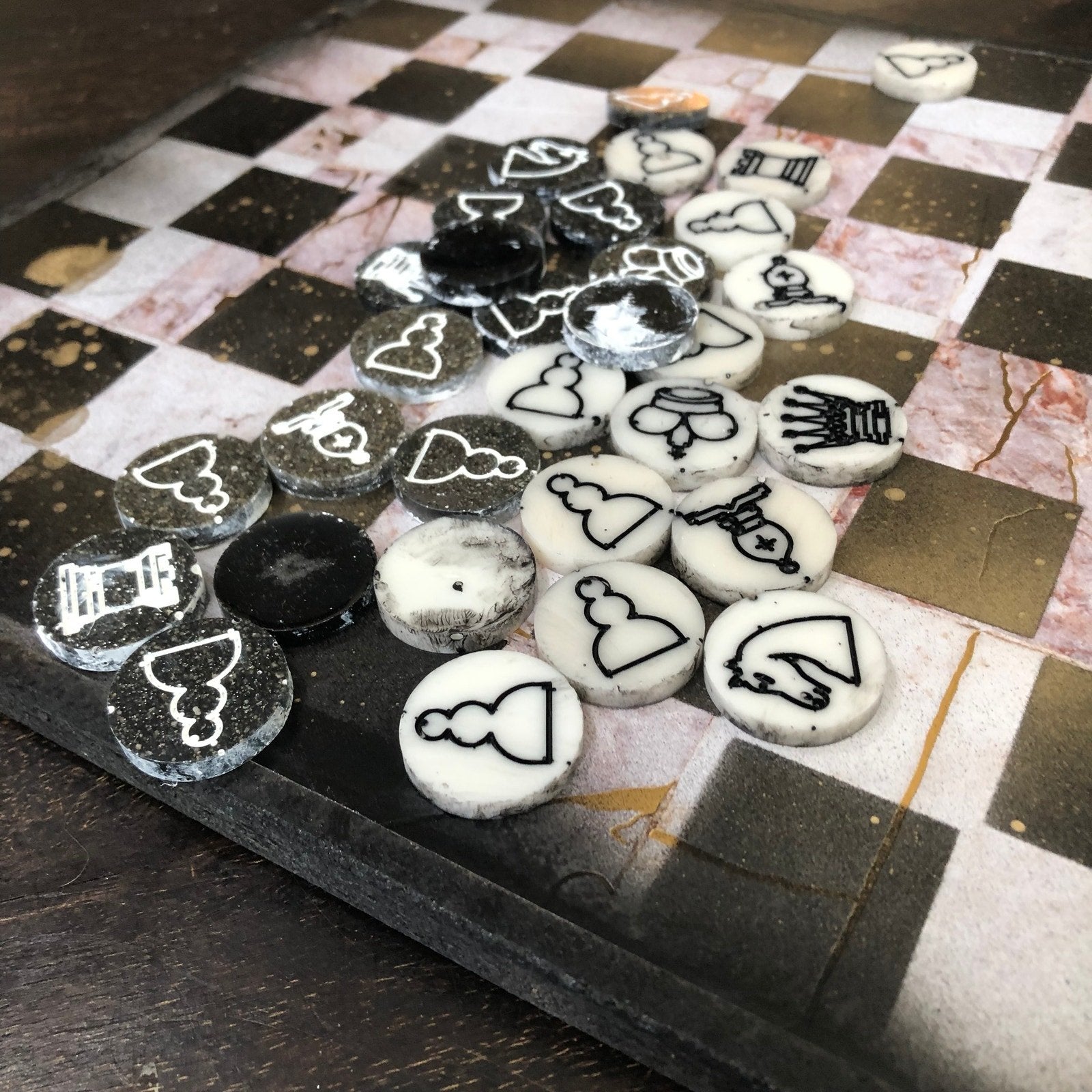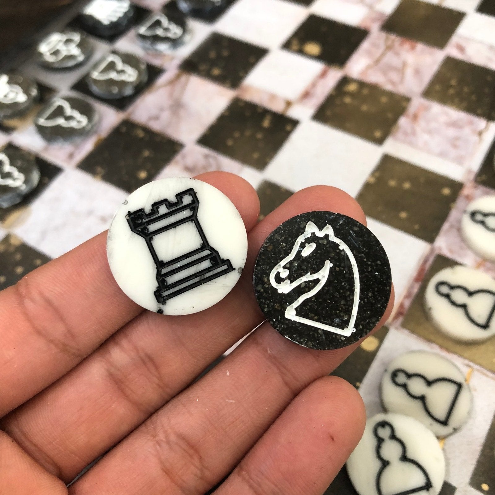 Introducing our exclusive Handcrafted Wooden Chess Set, meticulously designed with precision and care. Measuring 12 inches by 12 inches, this chess set features a beautifully painted particle board layered with a sheet of scrapbook paper board that doubles as a work of art. Each set is a unique, one-of-a-kind creation, crafted by hand to ensure that no two sets are alike. Elevate your gaming experience with this exceptional chess set that combines vibrant design with the touch of artisan craftsmanship. This chess board comes with chess pieces and is handcrafted as a one of one