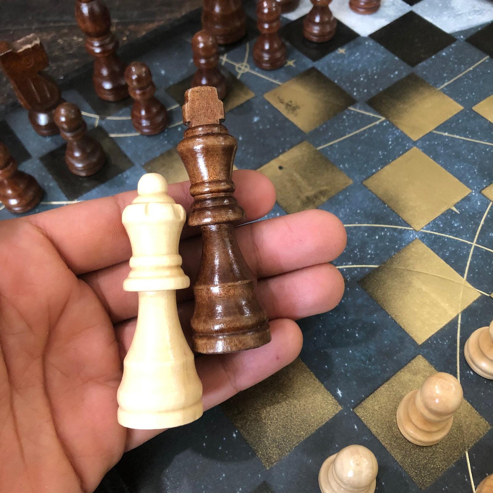 Introducing our exclusive Handcrafted Wooden Chess Set, meticulously designed with precision and care. Measuring 12 inches by 12 inches, this chess set features a beautifully painted particle board layered with a sheet of scrapbook paper board that doubles as a work of art. Each set is a unique, one-of-a-kind creation, crafted by hand to ensure that no two sets are alike. Elevate your gaming experience with this exceptional chess set that combines vibrant design with the touch of artisan craftsmanship. This chess board comes with chess pieces and is handcrafted as a one of one