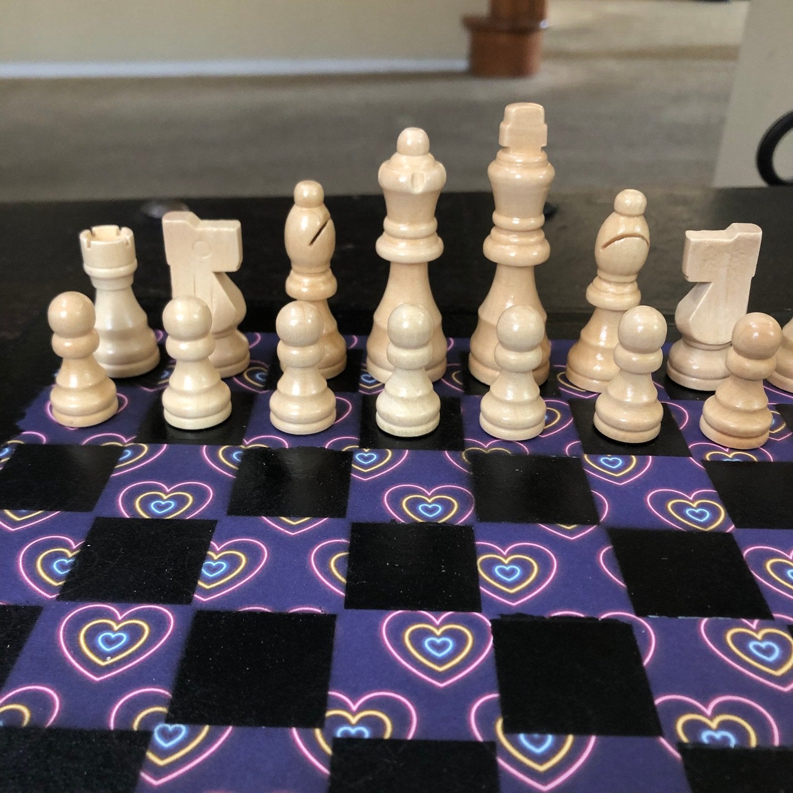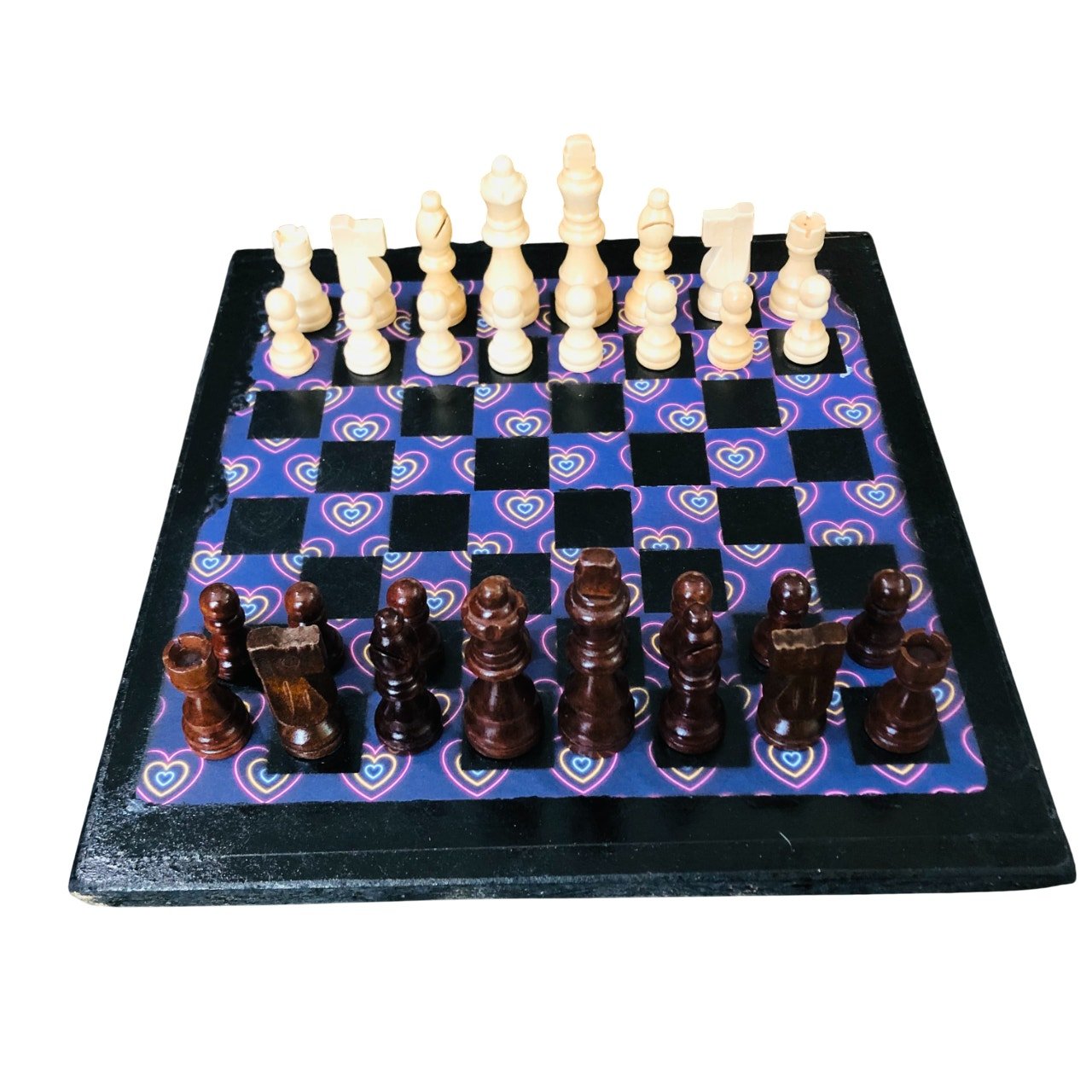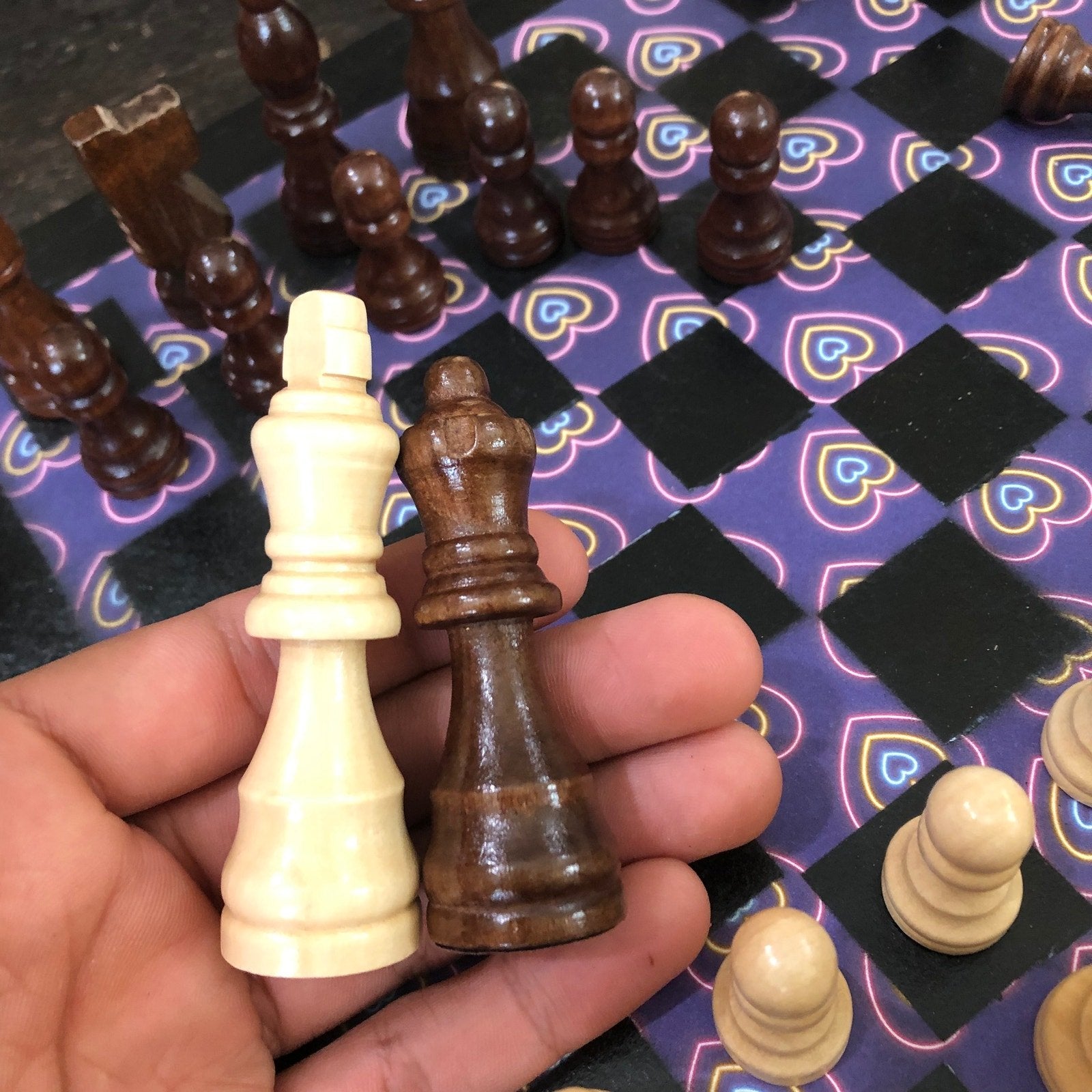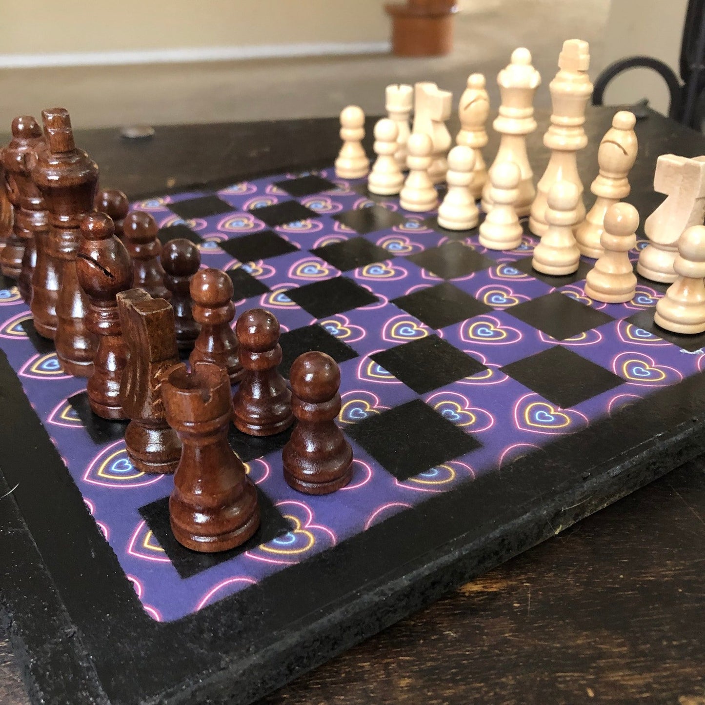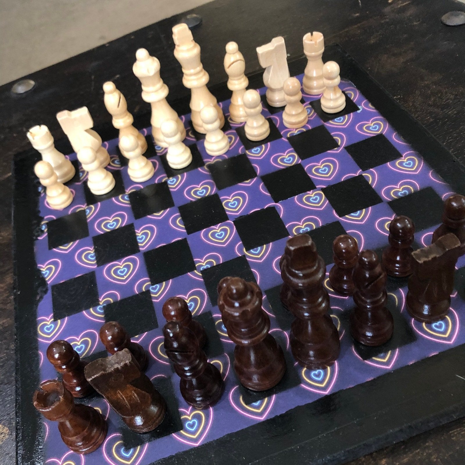 Introducing our exclusive Handcrafted Wooden Chess Set, meticulously designed with precision and care. Measuring 12 inches by 12 inches, this chess set features a beautifully painted particle board layered with a sheet of scrapbook paper board that doubles as a work of art. Each set is a unique, one-of-a-kind creation, crafted by hand to ensure that no two sets are alike. Elevate your gaming experience with this exceptional chess set that combines vibrant design with the touch of artisan craftsmanship. This chess board comes with chess pieces and is handcrafted as a one of one