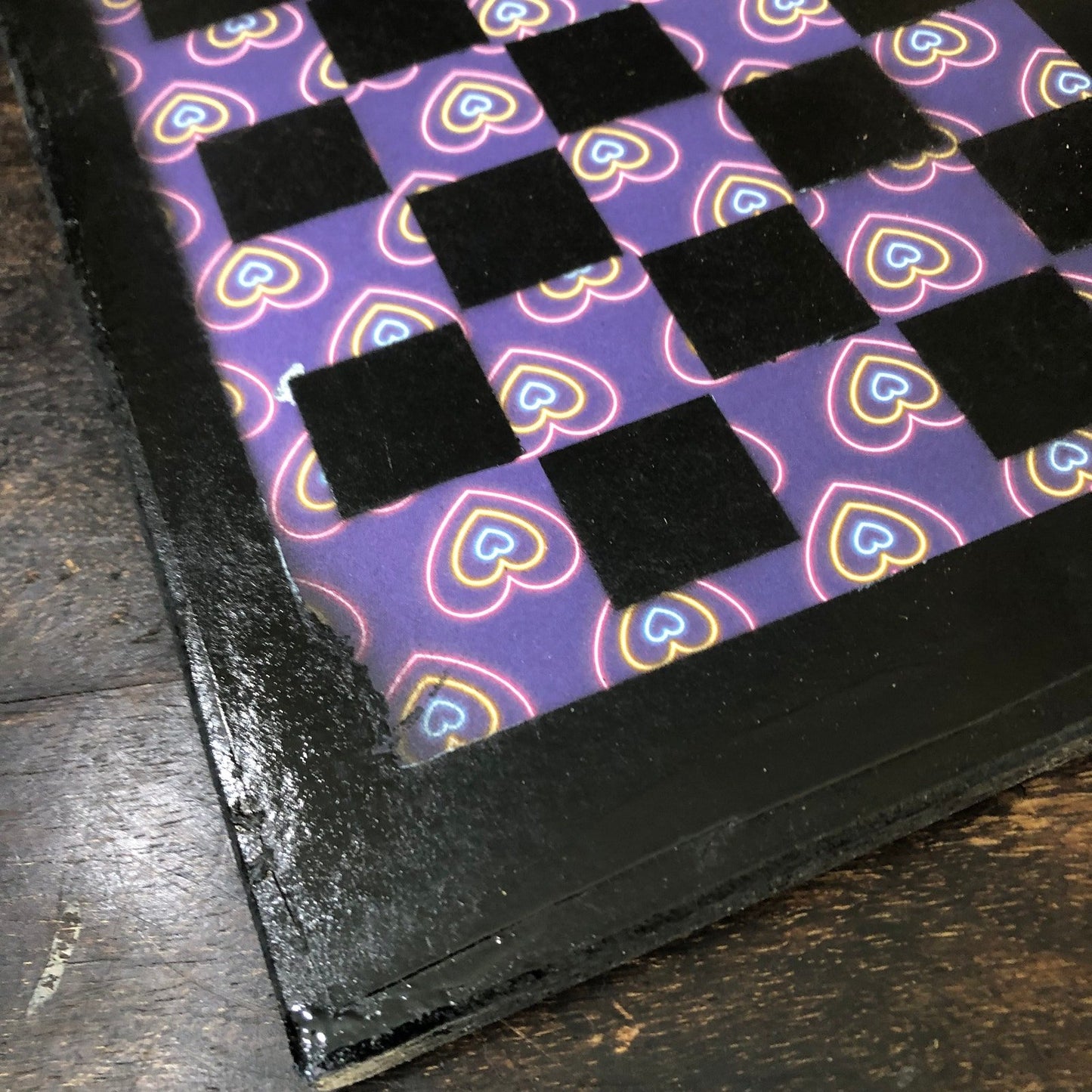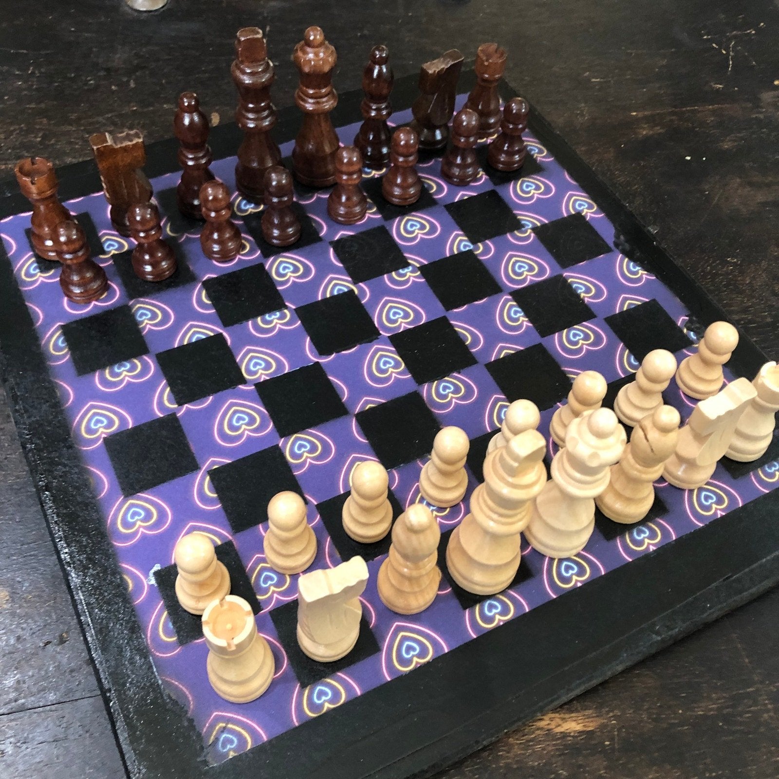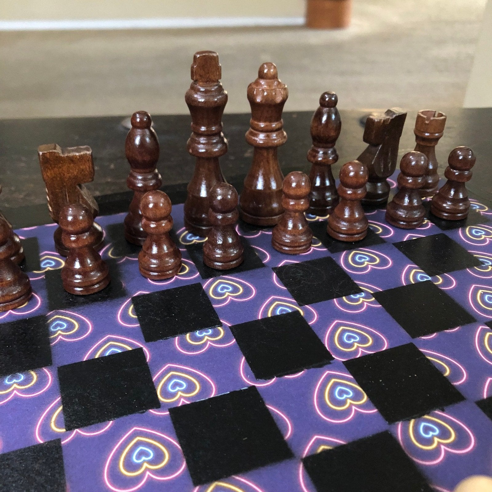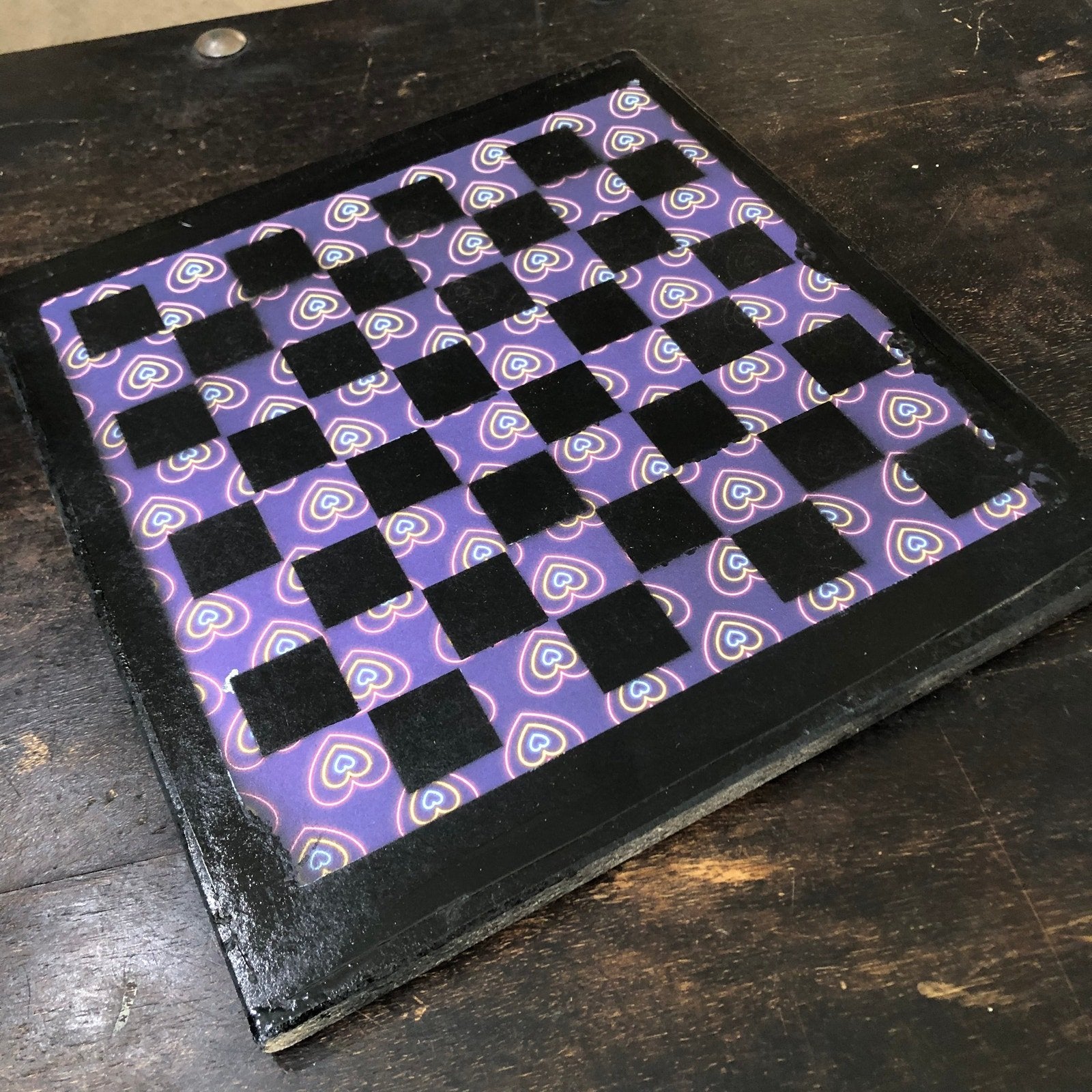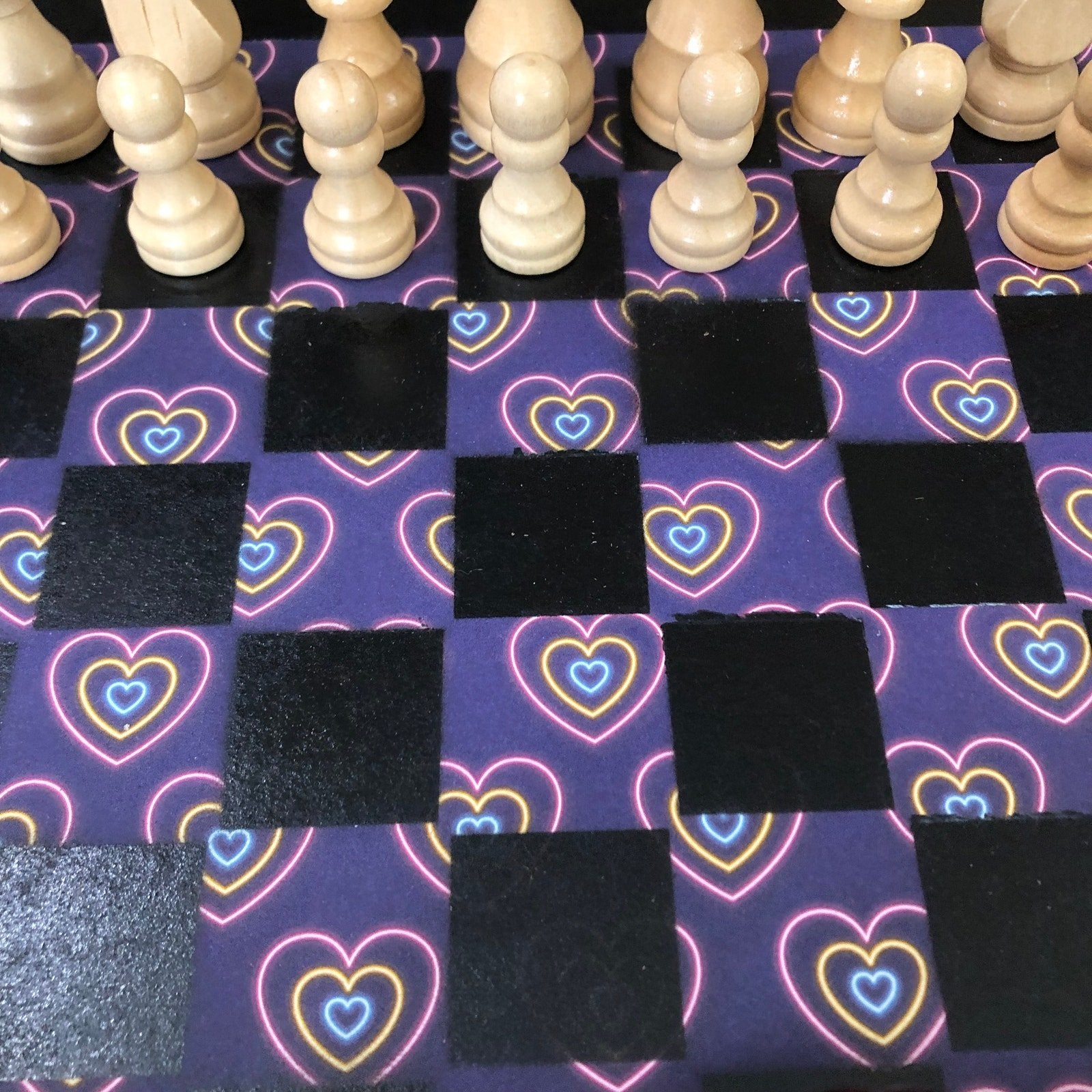Introducing our exclusive Handcrafted Wooden Chess Set, meticulously designed with precision and care. Measuring 12 inches by 12 inches, this chess set features a beautifully painted particle board layered with a sheet of scrapbook paper board that doubles as a work of art. Each set is a unique, one-of-a-kind creation, crafted by hand to ensure that no two sets are alike. Elevate your gaming experience with this exceptional chess set that combines vibrant design with the touch of artisan craftsmanship. This chess board comes with chess pieces and is handcrafted as a one of one