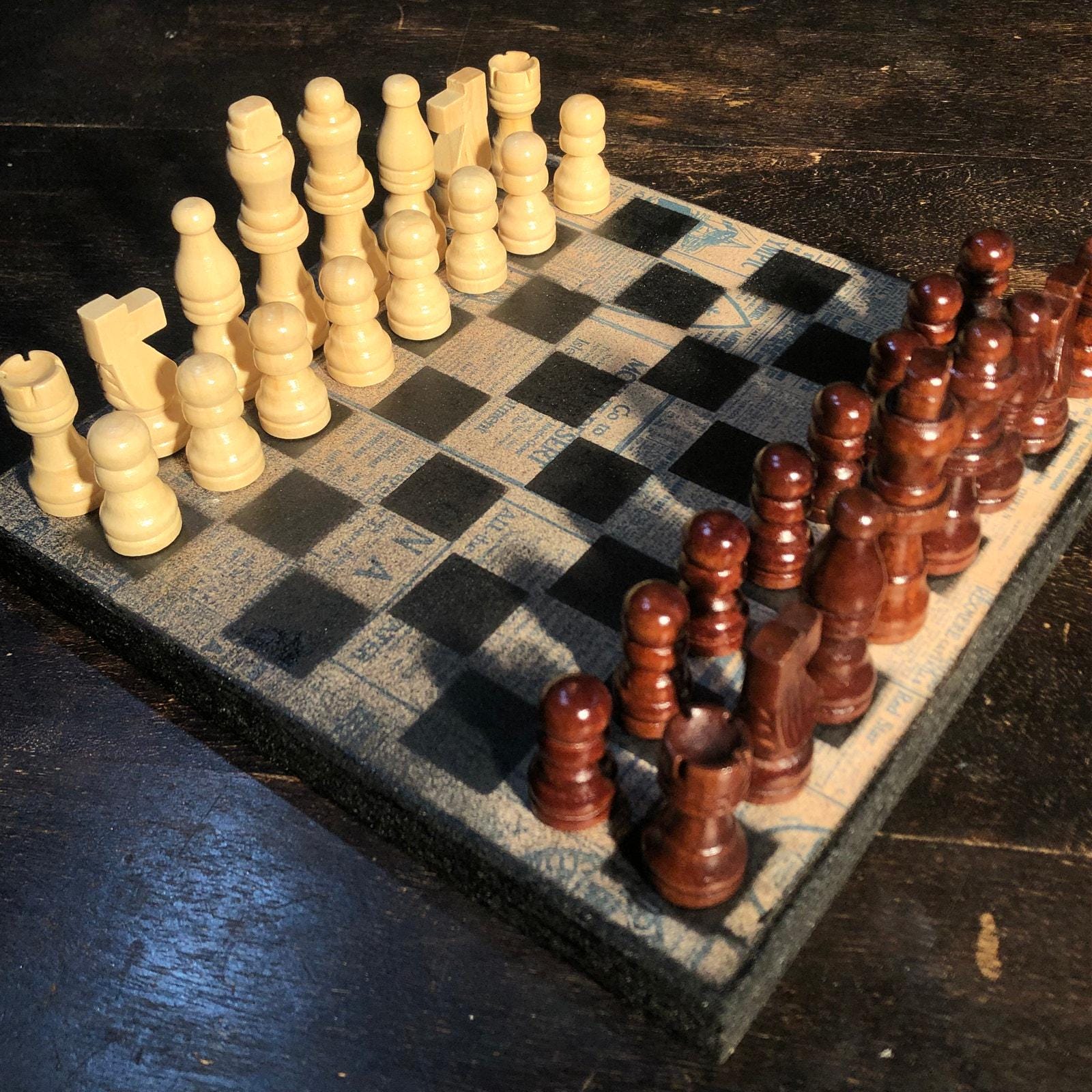Introducing our exclusive Handcrafted Wooden Chess Set, meticulously designed with precision and care. Measuring 8 inches by 8 inches, this chess set features a beautifully painted particle board layered with a sheet of scrapbook paper board that doubles as a work of art. Each set is a unique, one-of-a-kind creation, crafted by hand to ensure that no two sets are alike. Elevate your gaming experience with this exceptional chess set that combines vibrant design with the touch of artisan craftsmanship. This chess board comes with chess pieces and is handcrafted as a one of one