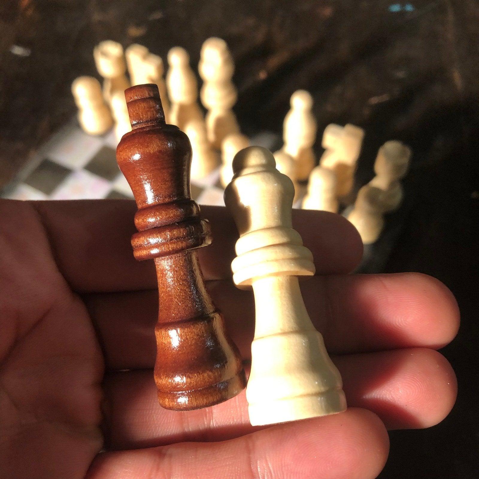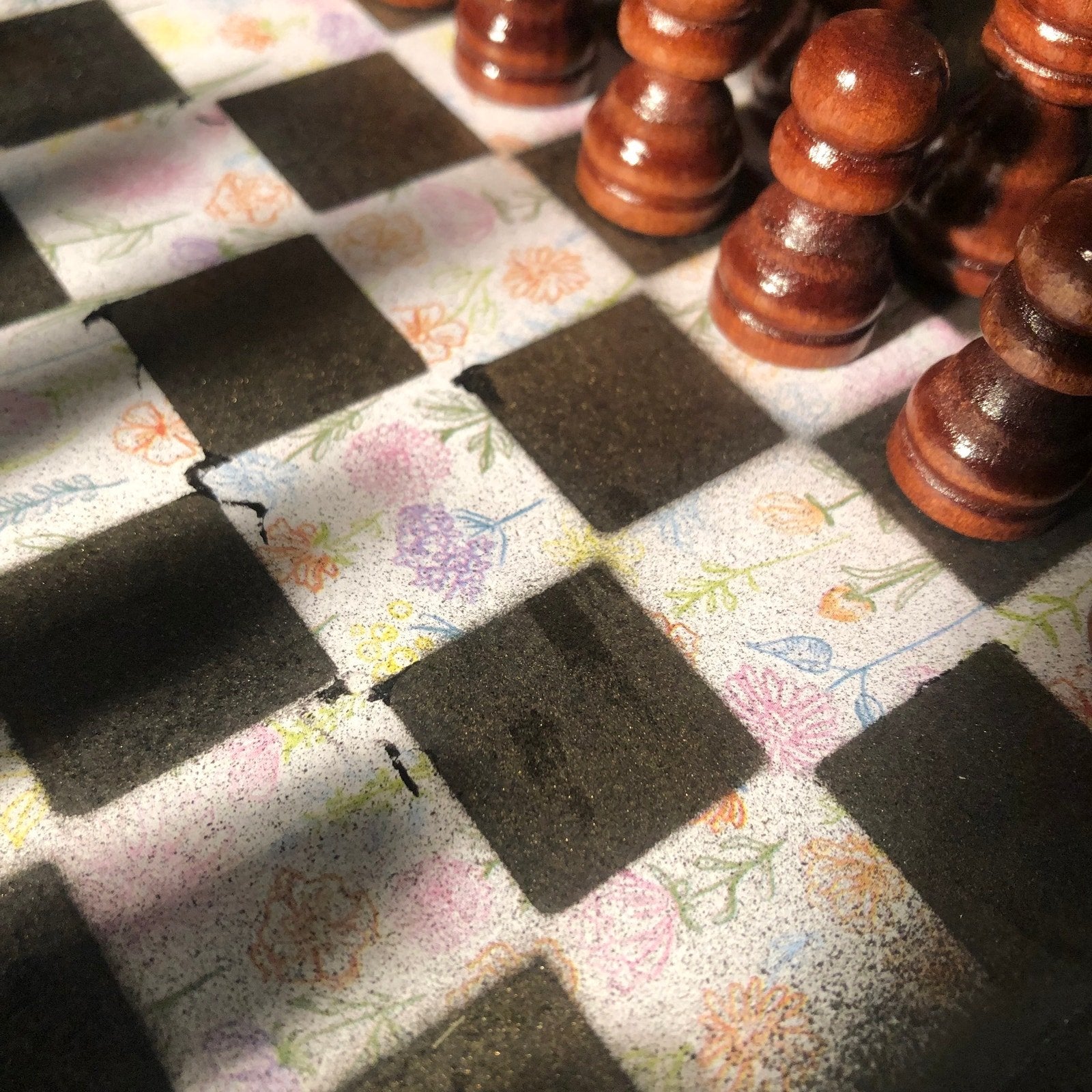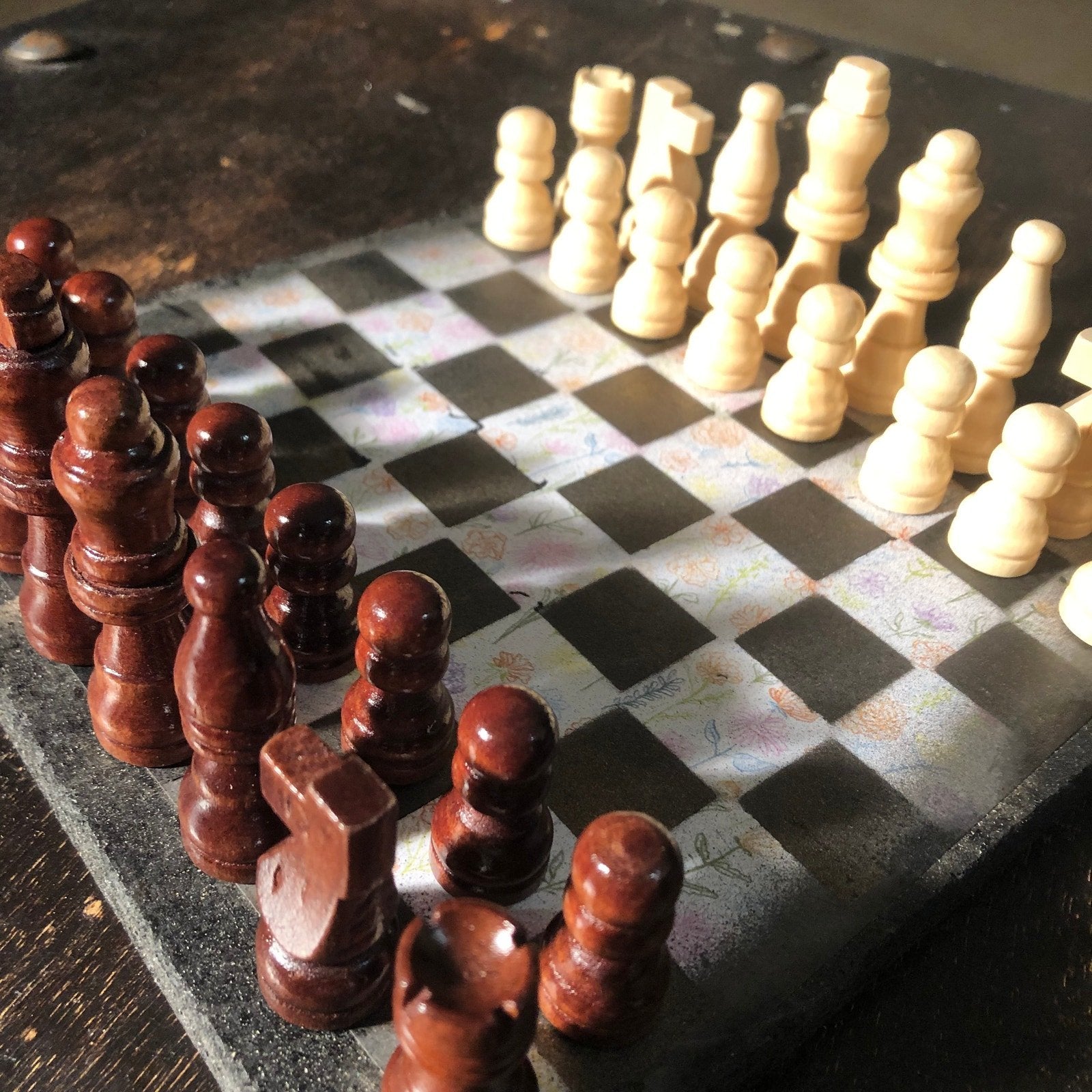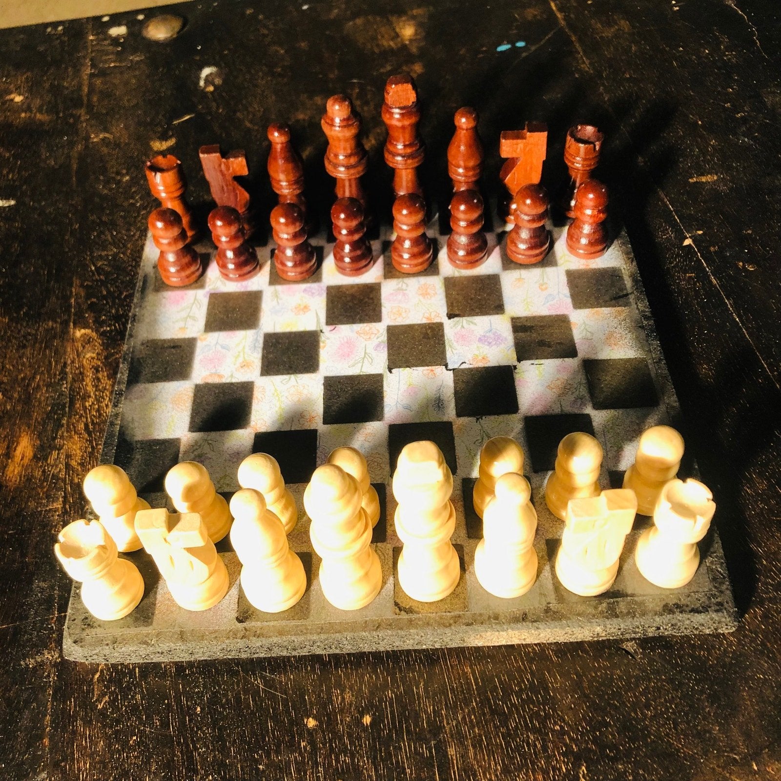 Introducing our exclusive Handcrafted Wooden Chess Set, meticulously designed with precision and care. Measuring 8 inches by 8 inches, this chess set features a beautifully painted particle board layered with a sheet of scrapbook paper board that doubles as a work of art. Each set is a unique, one-of-a-kind creation, crafted by hand to ensure that no two sets are alike. Elevate your gaming experience with this exceptional chess set that combines vibrant design with the touch of artisan craftsmanship. This chess board comes with chess pieces and is handcrafted as a one of one