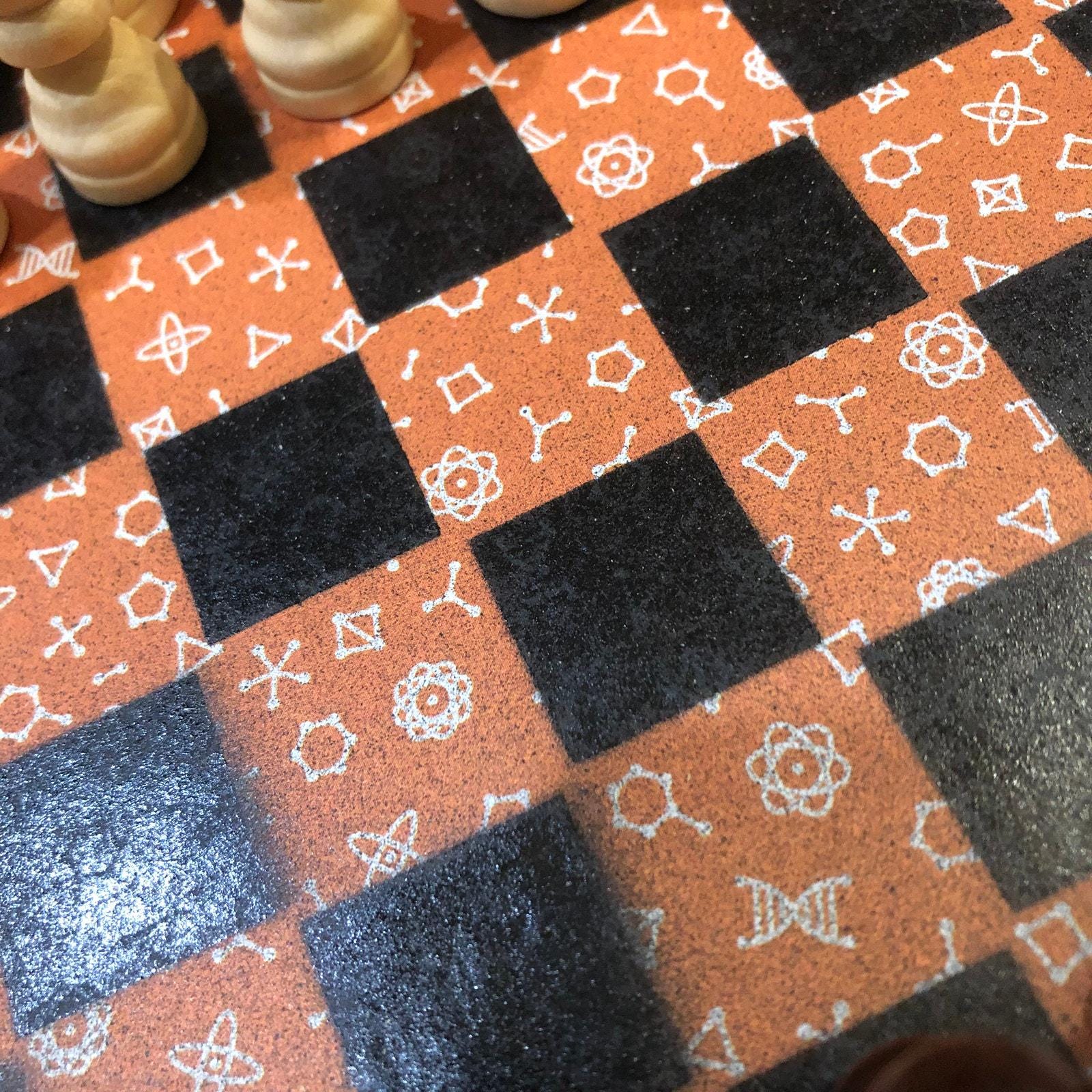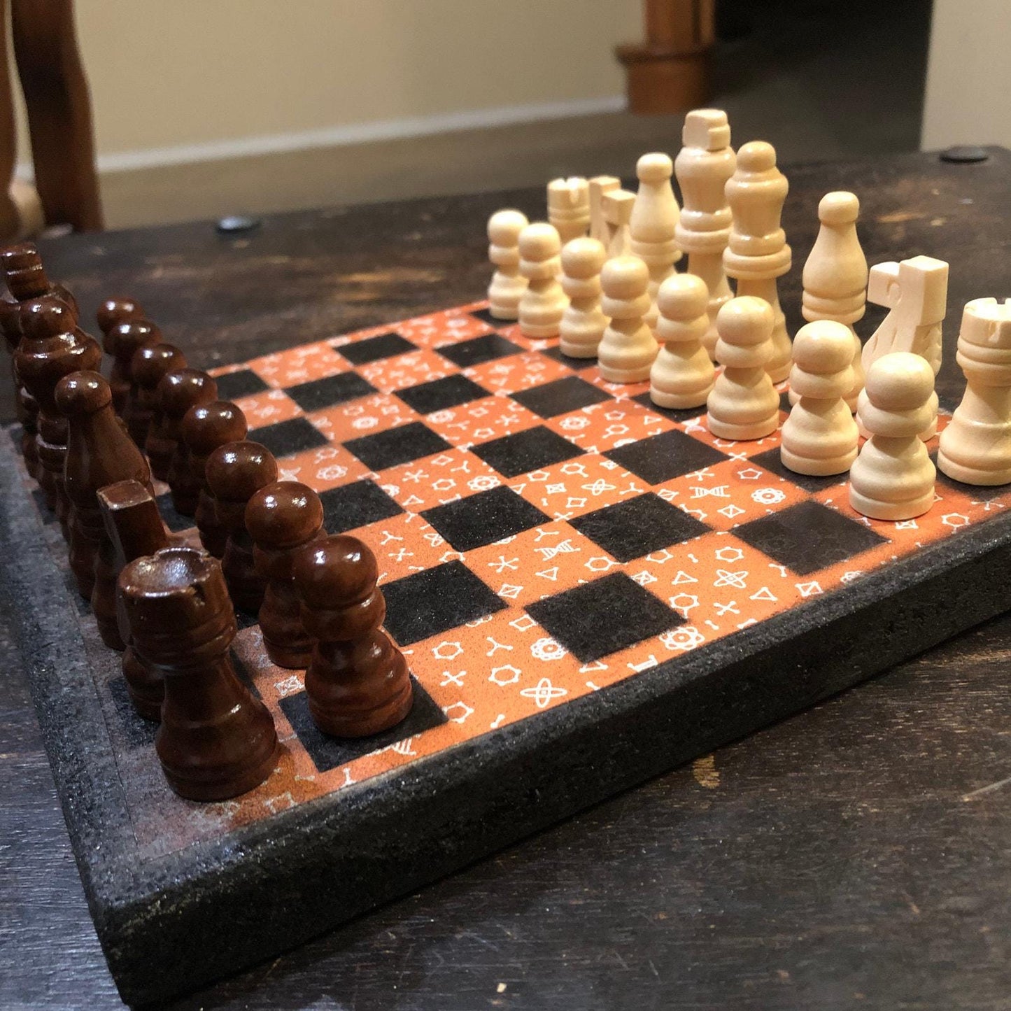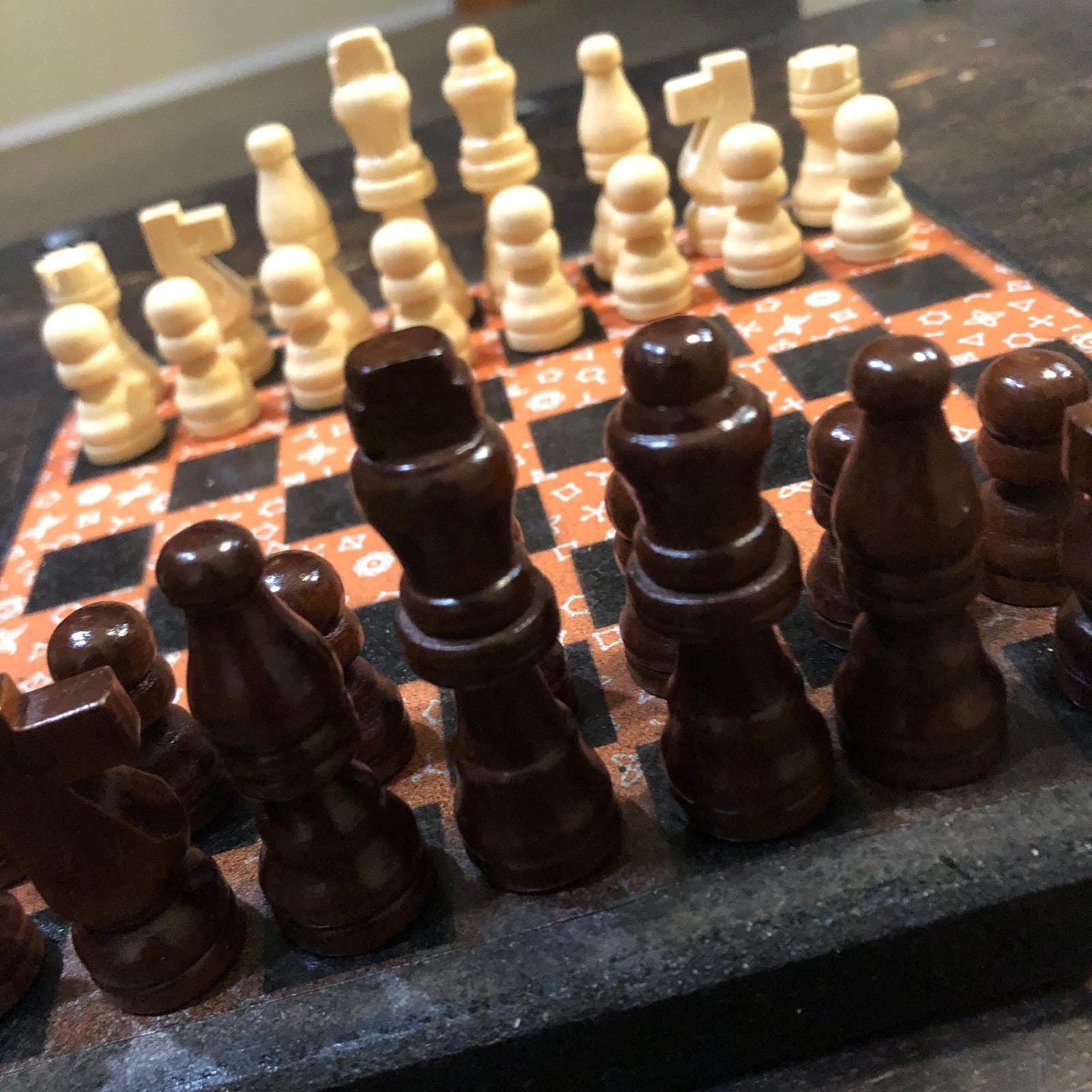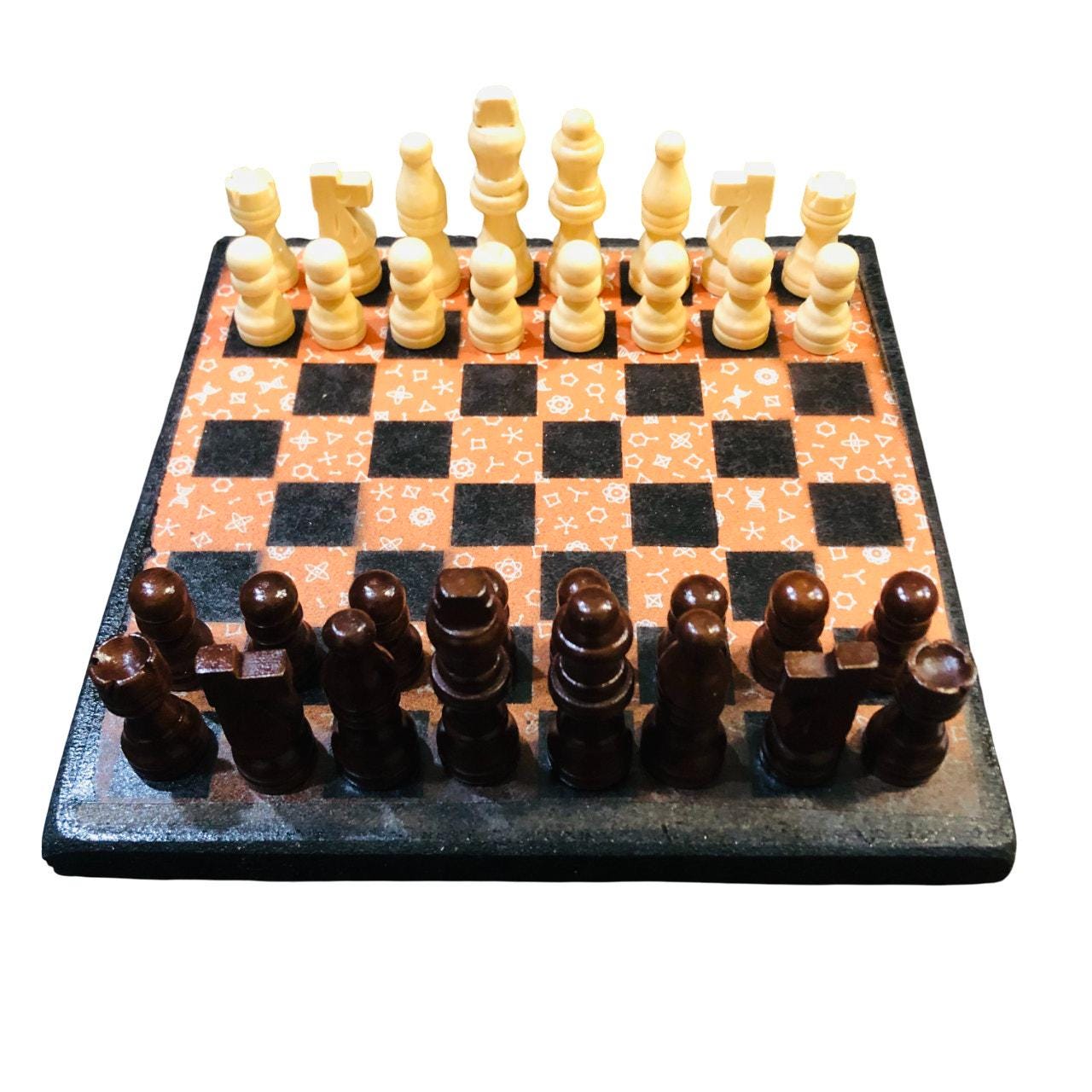 Introducing our exclusive Handcrafted Wooden Chess Set, meticulously designed with precision and care. Measuring 8 inches by 8 inches, this chess set features a beautifully painted particle board layered with a sheet of scrapbook paper board that doubles as a work of art. Each set is a unique, one-of-a-kind creation, crafted by hand to ensure that no two sets are alike. Elevate your gaming experience with this exceptional chess set that combines vibrant design with the touch of artisan craftsmanship. This chess board comes with chess pieces and is handcrafted as a one of one