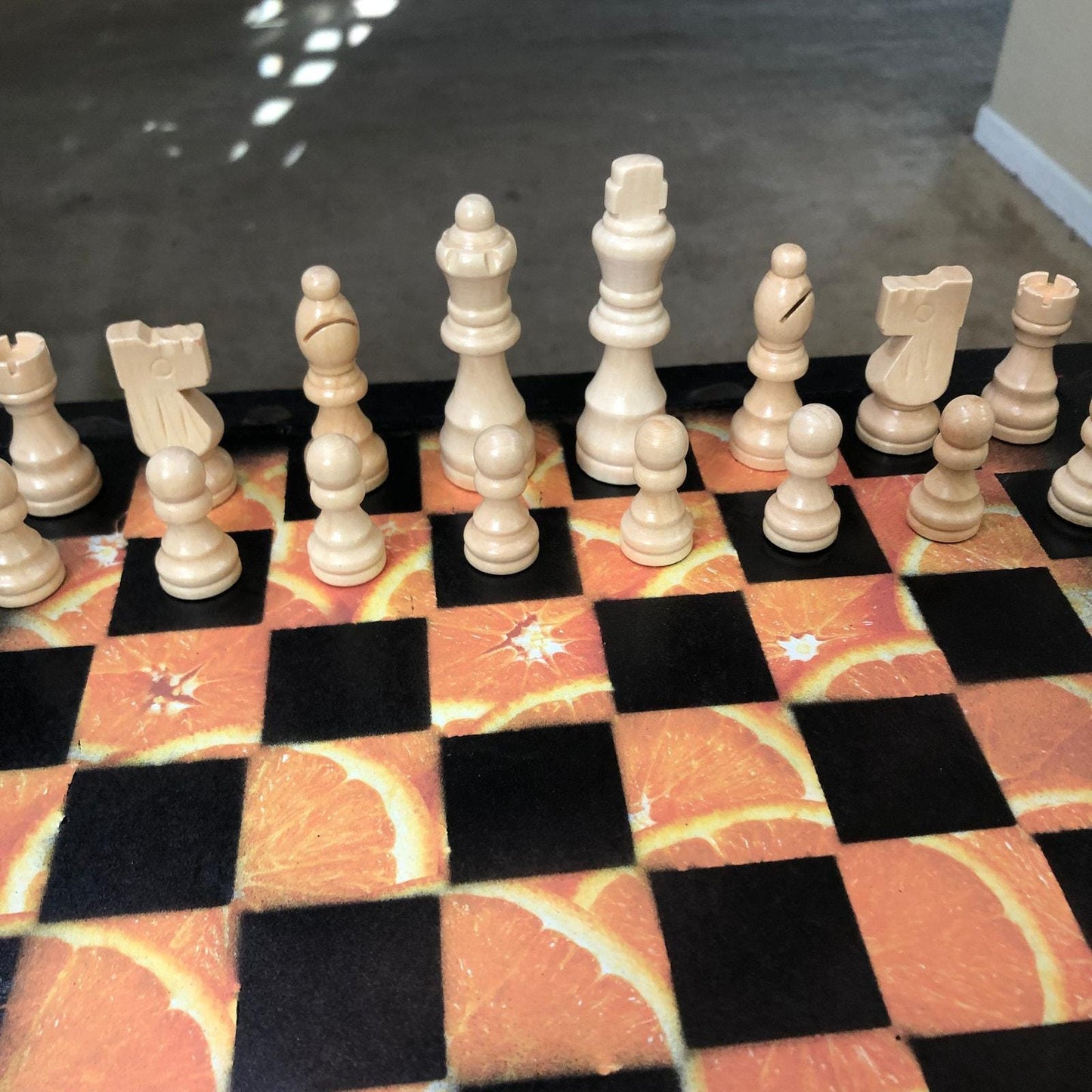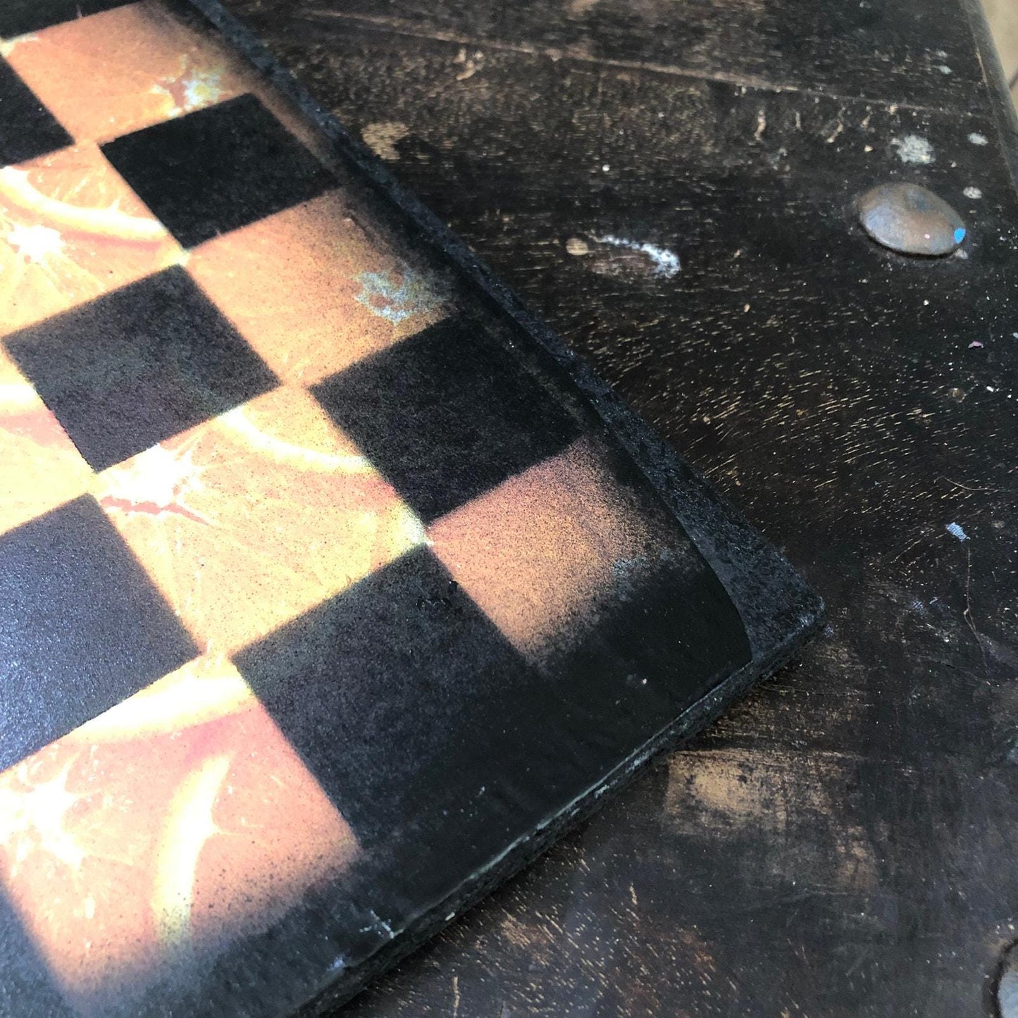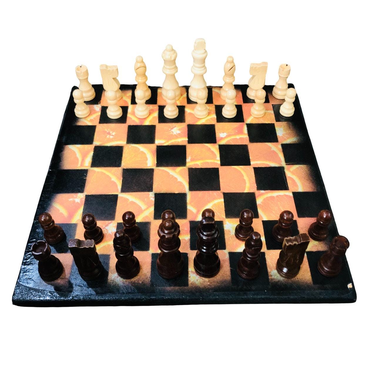 Introducing our exclusive Handcrafted Wooden Chess Set, meticulously designed with precision and care. Measuring 12 inches by 12 inches, this chess set features a beautifully painted particle board layered with a sheet of scrapbook paper board that doubles as a work of art. Each set is a unique, one-of-a-kind creation, crafted by hand to ensure that no two sets are alike. Elevate your gaming experience with this exceptional chess set that combines vibrant design with the touch of artisan craftsmanship. This chess board comes with chess pieces and is handcrafted as a one of one