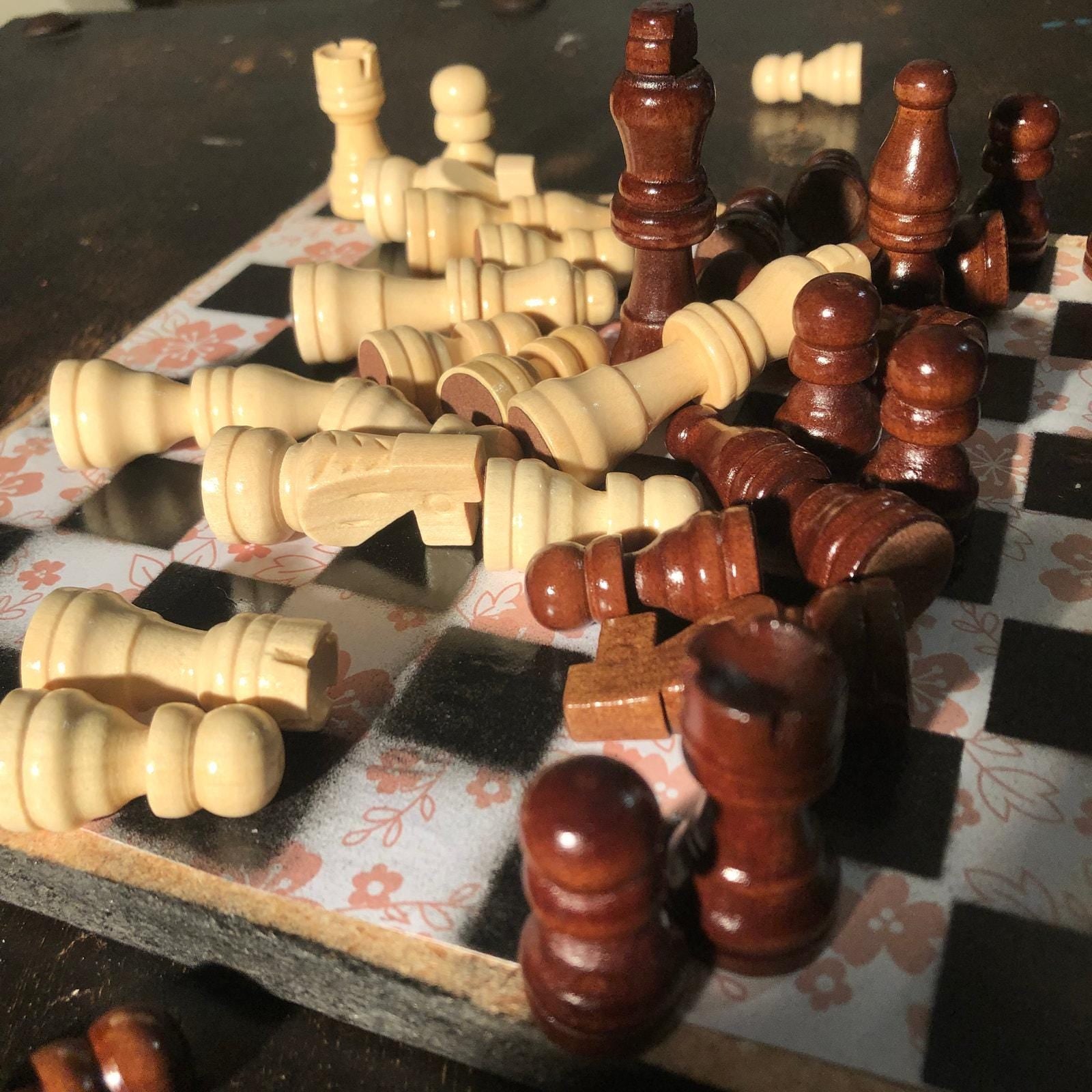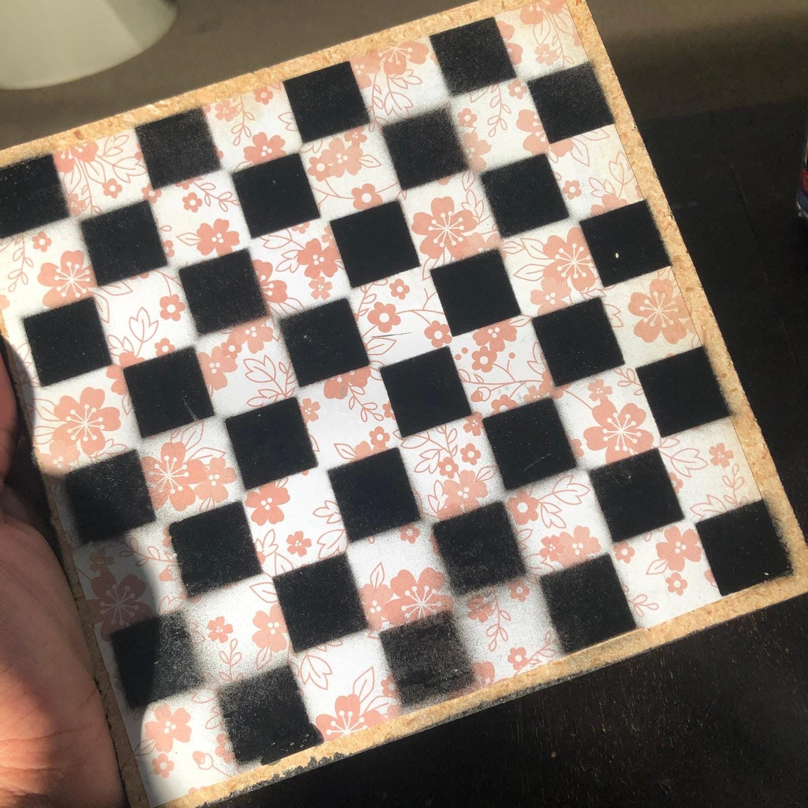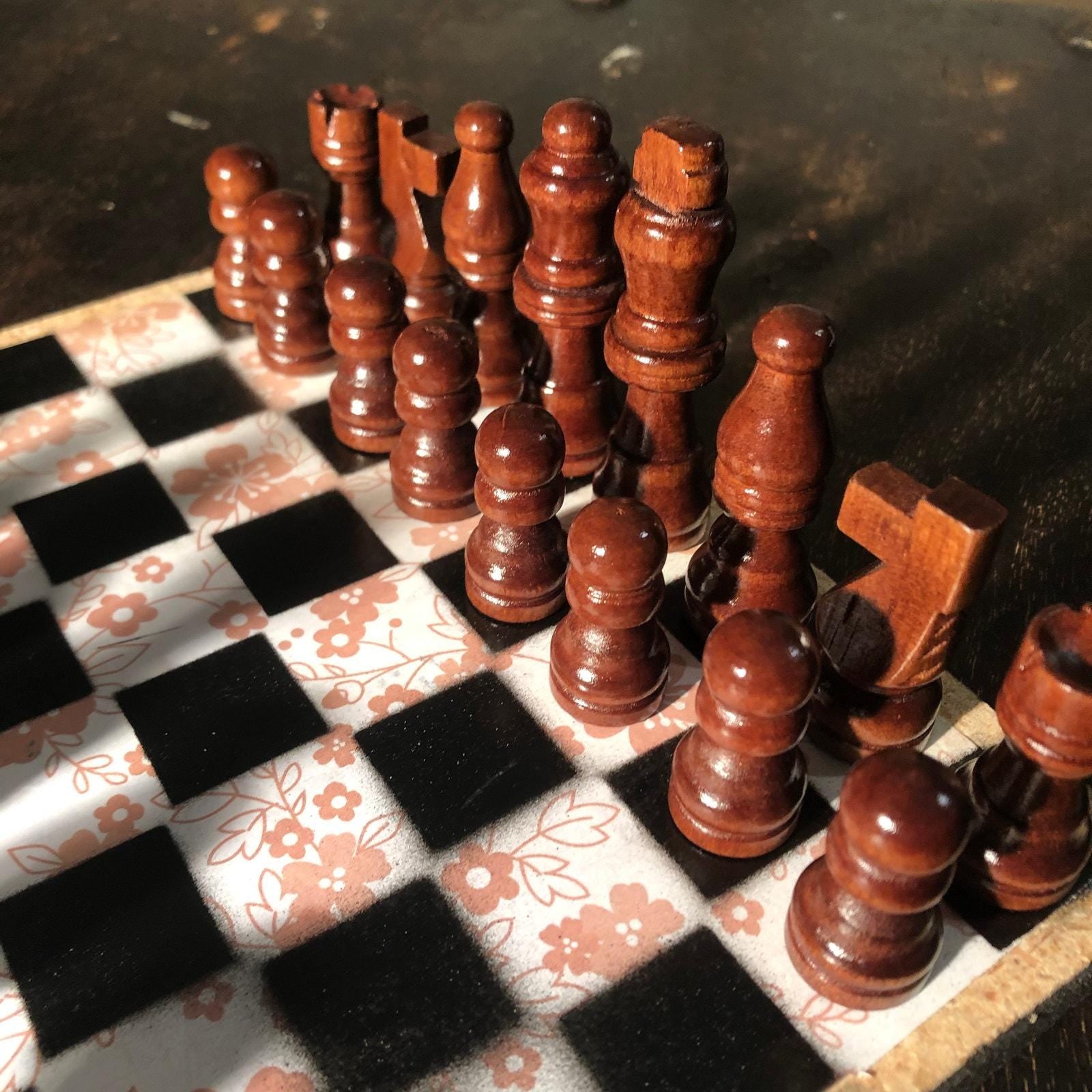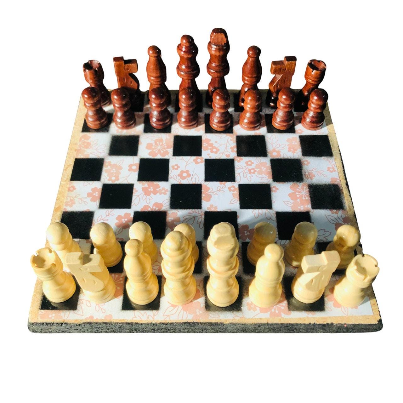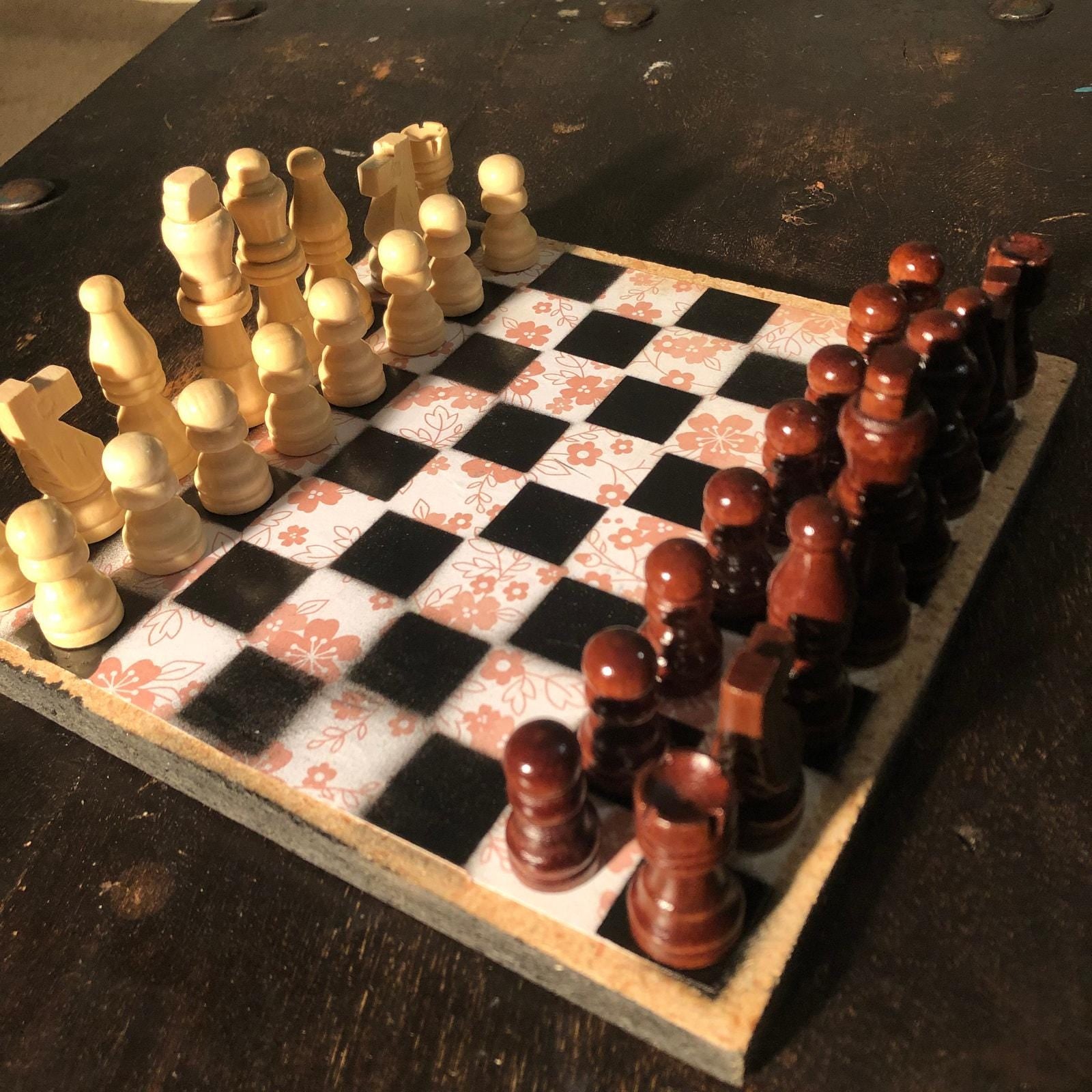 Introducing our exclusive Handcrafted Wooden Chess Set, meticulously designed with precision and care. Measuring 8 inches by 8 inches, this chess set features a beautifully painted particle board layered with a sheet of scrapbook paper board that doubles as a work of art. Each set is a unique, one-of-a-kind creation, crafted by hand to ensure that no two sets are alike. Elevate your gaming experience with this exceptional chess set that combines vibrant design with the touch of artisan craftsmanship. This chess board comes with chess pieces and is handcrafted as a one of one