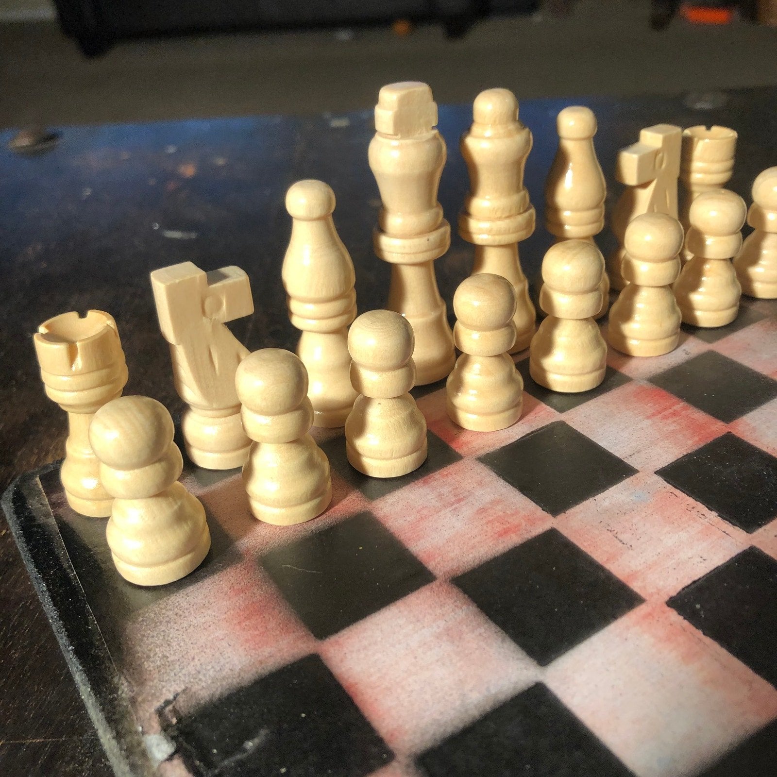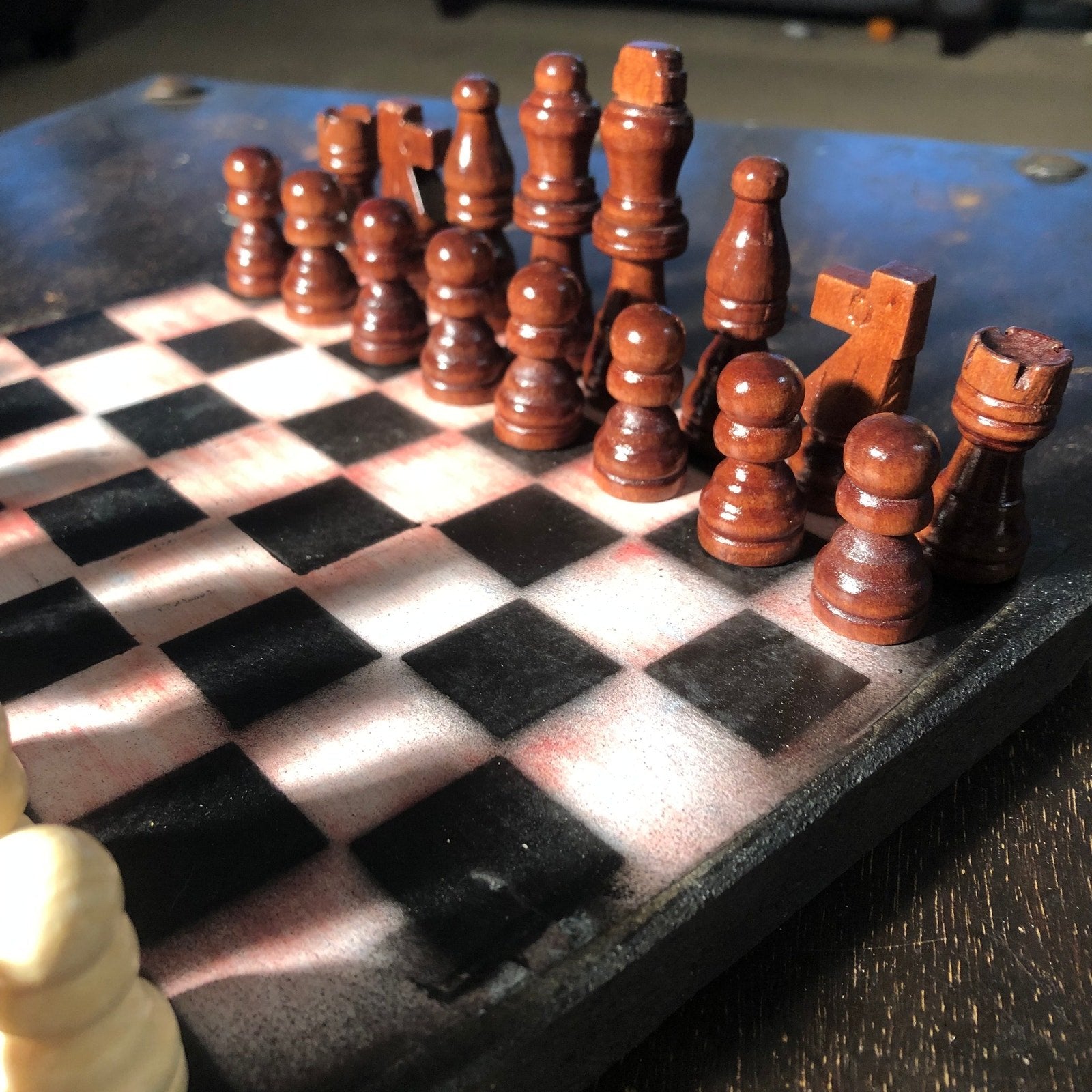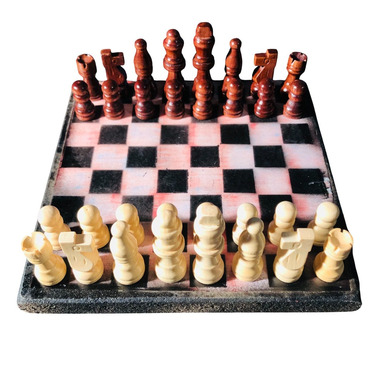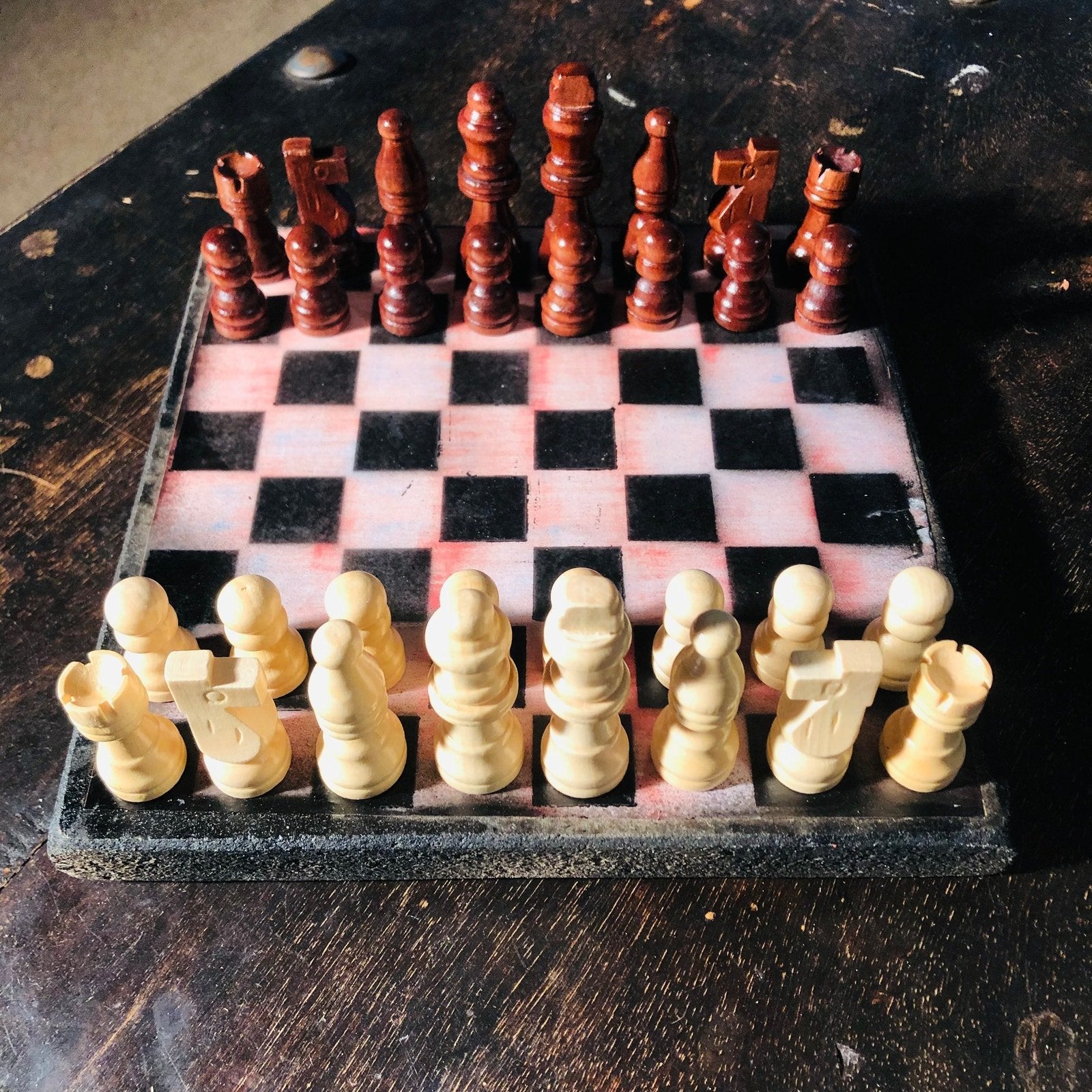 Introducing our exclusive Handcrafted Wooden Chess Set, meticulously designed with precision and care. Measuring 8 inches by 8 inches, this chess set features a beautifully painted particle board layered with a sheet of scrapbook paper board that doubles as a work of art. Each set is a unique, one-of-a-kind creation, crafted by hand to ensure that no two sets are alike. Elevate your gaming experience with this exceptional chess set that combines vibrant design with the touch of artisan craftsmanship. This chess board comes with chess pieces and is handcrafted as a one of one
