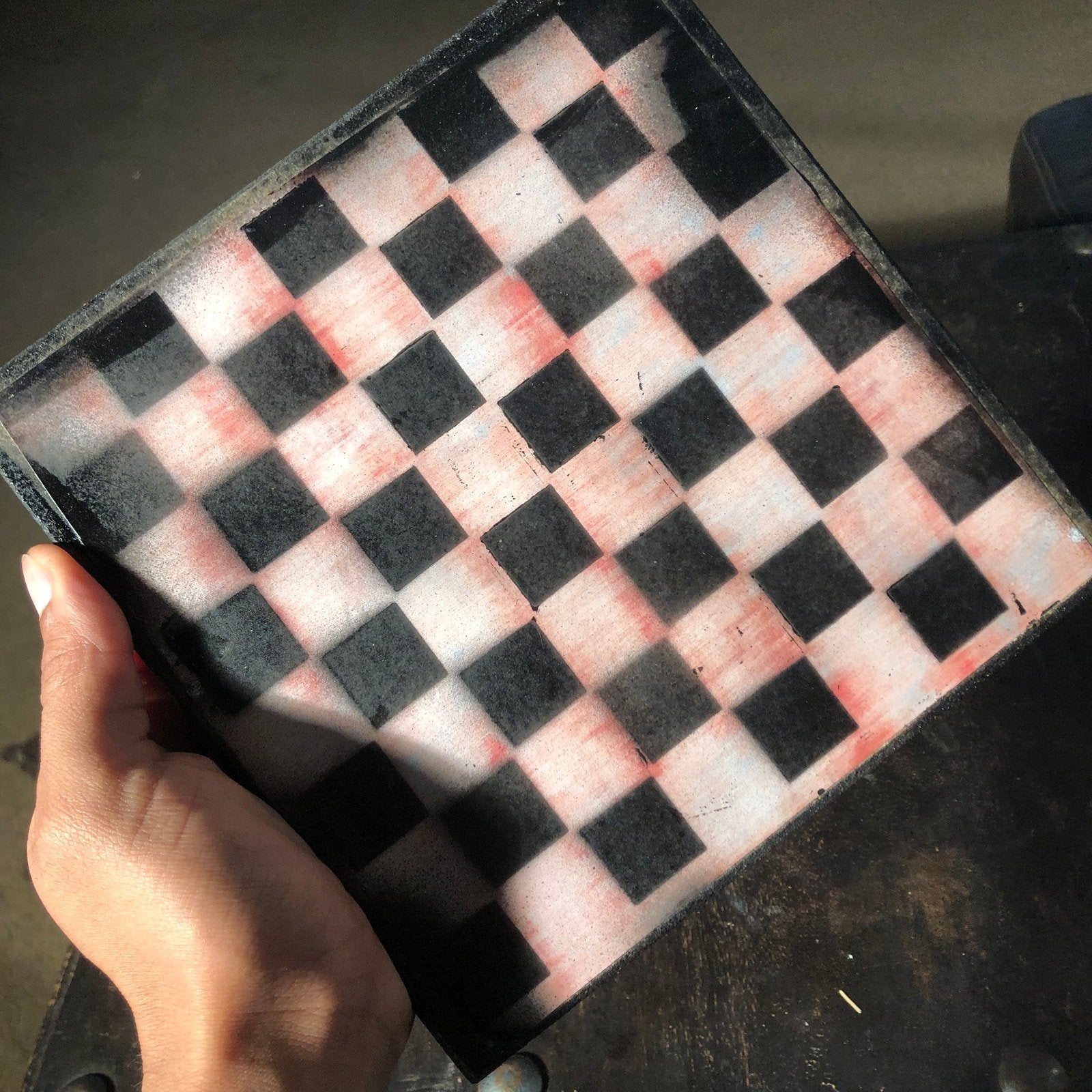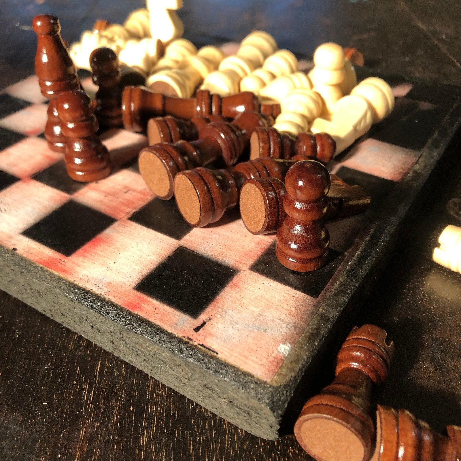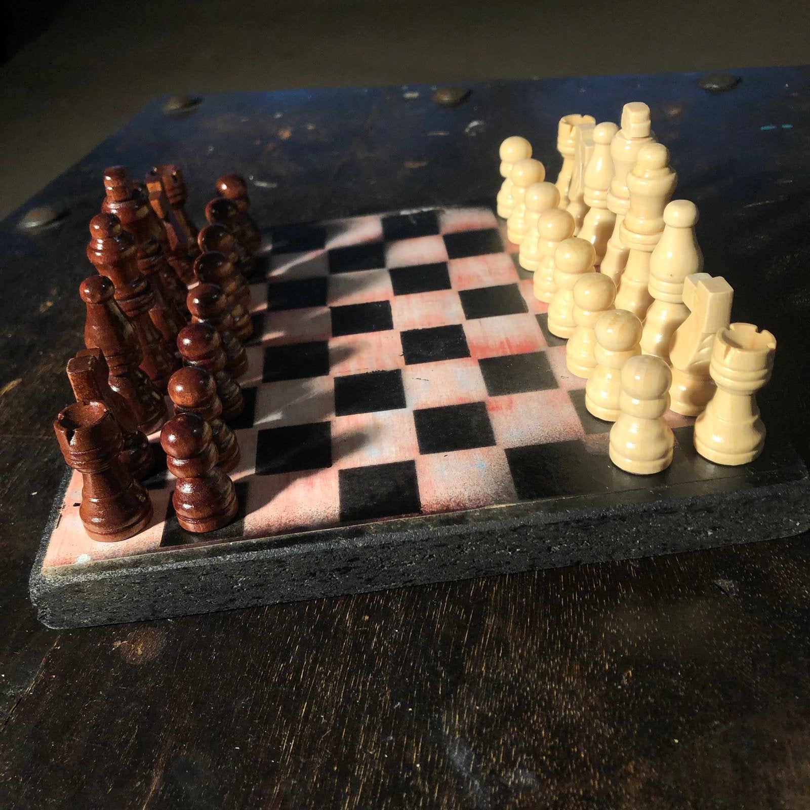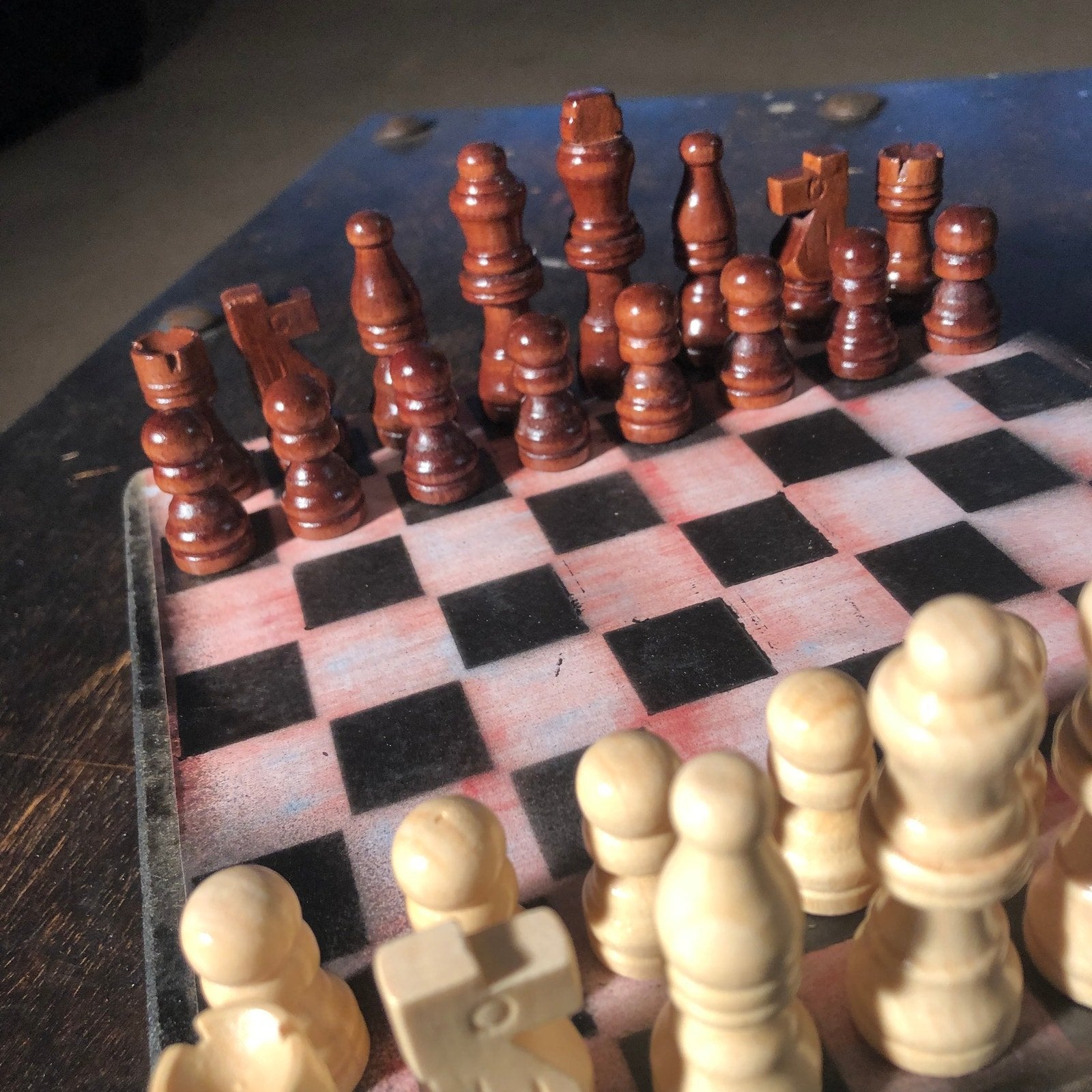 Introducing our exclusive Handcrafted Wooden Chess Set, meticulously designed with precision and care. Measuring 8 inches by 8 inches, this chess set features a beautifully painted particle board layered with a sheet of scrapbook paper board that doubles as a work of art. Each set is a unique, one-of-a-kind creation, crafted by hand to ensure that no two sets are alike. Elevate your gaming experience with this exceptional chess set that combines vibrant design with the touch of artisan craftsmanship. This chess board comes with chess pieces and is handcrafted as a one of one