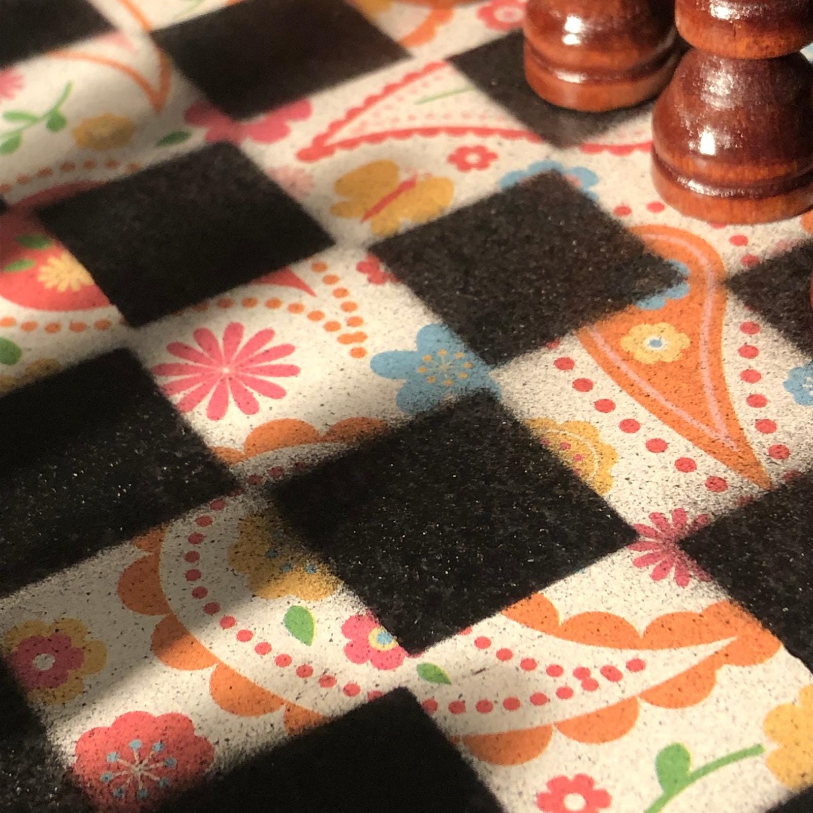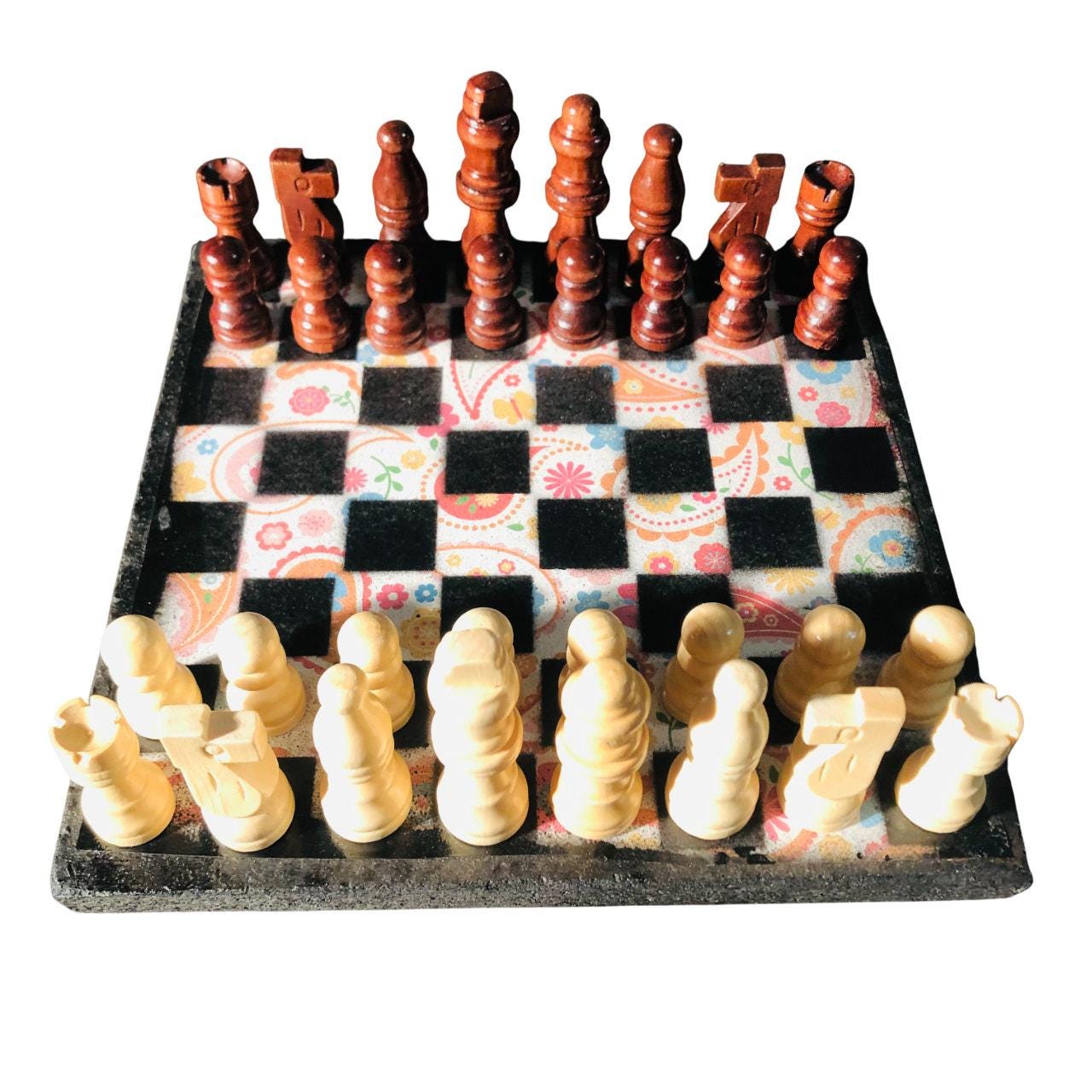 Introducing our exclusive Handcrafted Wooden Chess Set, meticulously designed with precision and care. Measuring 8 inches by 8 inches, this chess set features a beautifully painted particle board layered with a sheet of scrapbook paper board that doubles as a work of art. Each set is a unique, one-of-a-kind creation, crafted by hand to ensure that no two sets are alike. Elevate your gaming experience with this exceptional chess set that combines vibrant design with the touch of artisan craftsmanship. This chess board comes with chess pieces and is handcrafted as a one of one