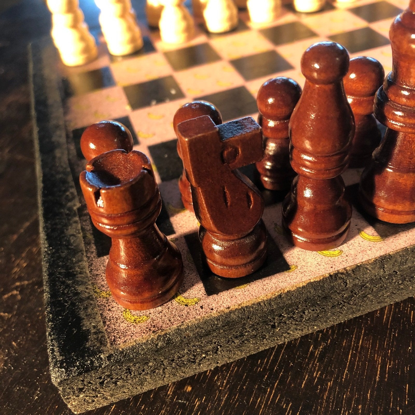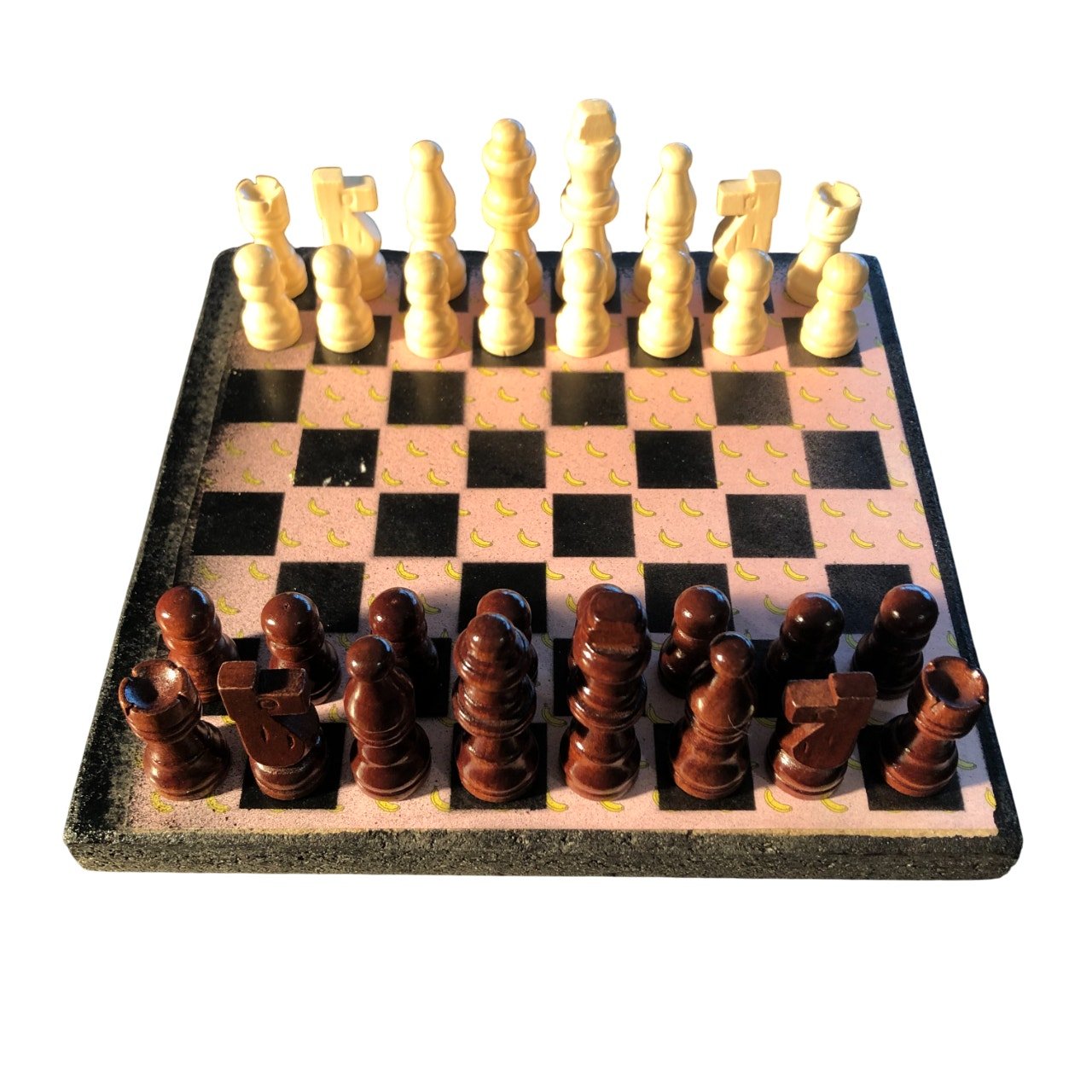 Introducing our exclusive Handcrafted Wooden Chess Set, meticulously designed with precision and care. Measuring 8 inches by 8 inches, this chess set features a beautifully painted particle board layered with a sheet of scrapbook paper board that doubles as a work of art. Each set is a unique, one-of-a-kind creation, crafted by hand to ensure that no two sets are alike. Elevate your gaming experience with this exceptional chess set that combines vibrant design with the touch of artisan craftsmanship. This chess board comes with chess pieces and is handcrafted as a one of one