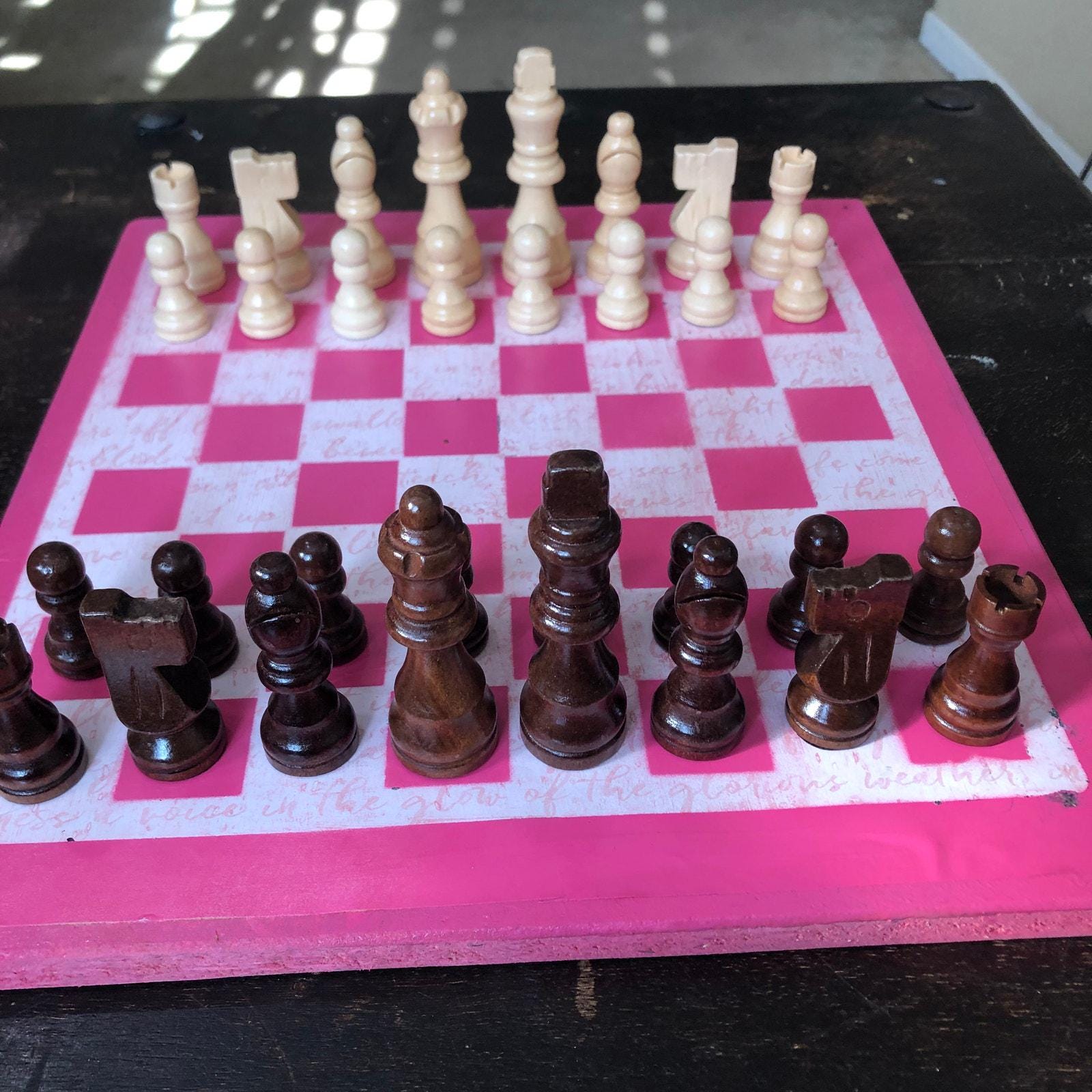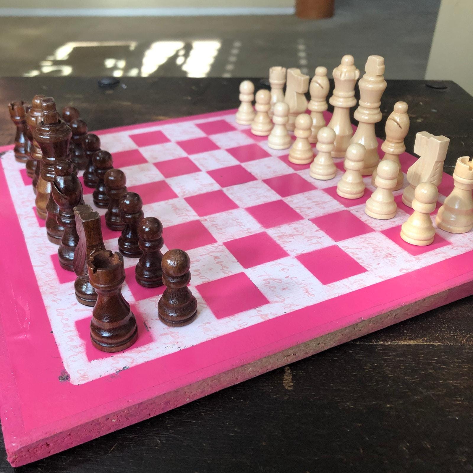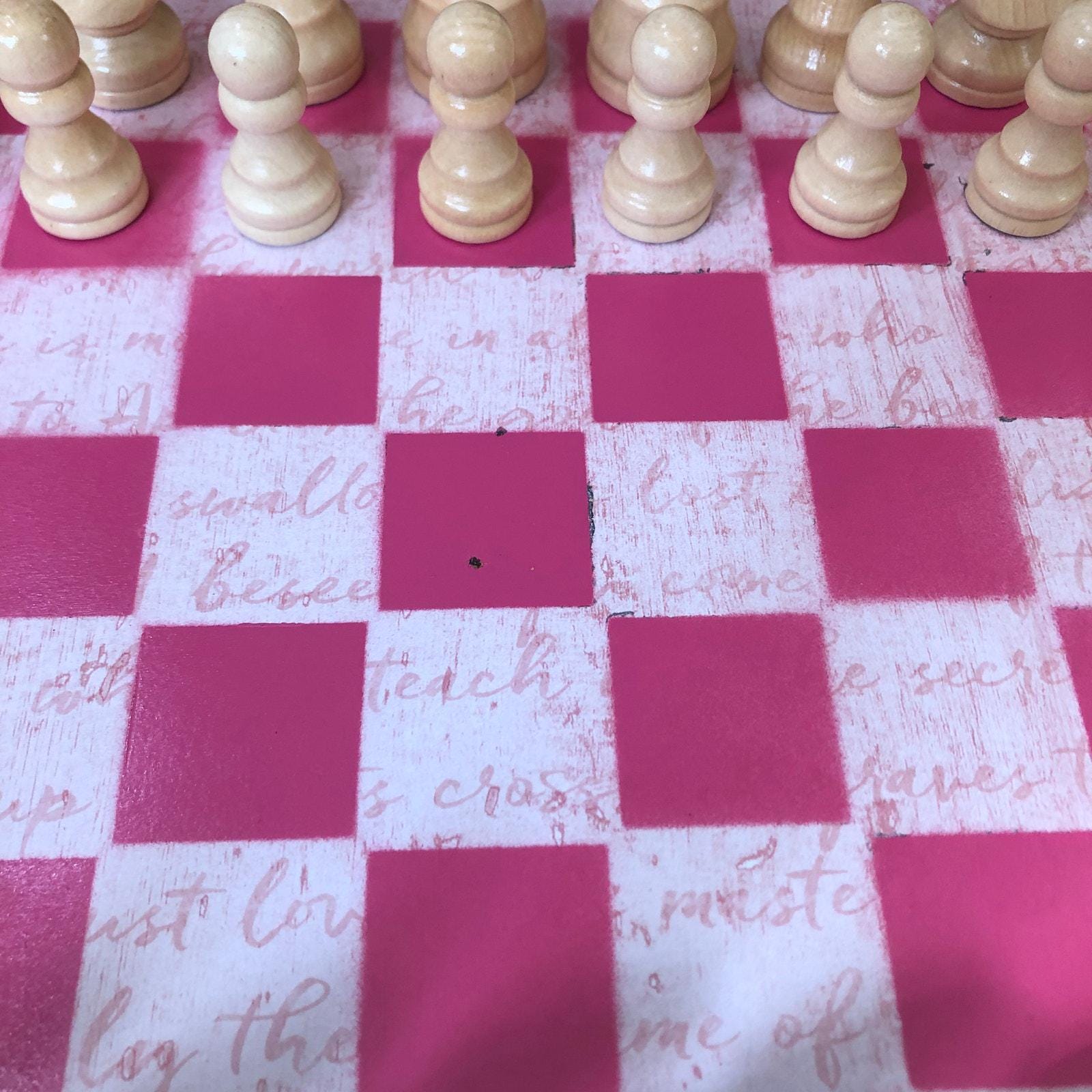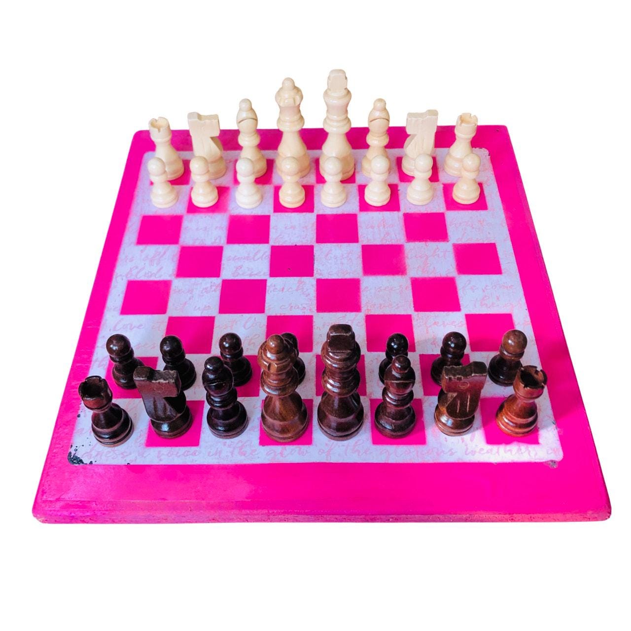Introducing our exclusive Handcrafted Wooden Chess Set, meticulously designed with precision and care. Measuring 12 inches by 12 inches, this chess set features a beautifully painted particle board layered with a sheet of scrapbook paper board that doubles as a work of art. Each set is a unique, one-of-a-kind creation, crafted by hand to ensure that no two sets are alike. Elevate your gaming experience with this exceptional chess set that combines vibrant design with the touch of artisan craftsmanship. This chess board comes with chess pieces and is handcrafted as a one of one