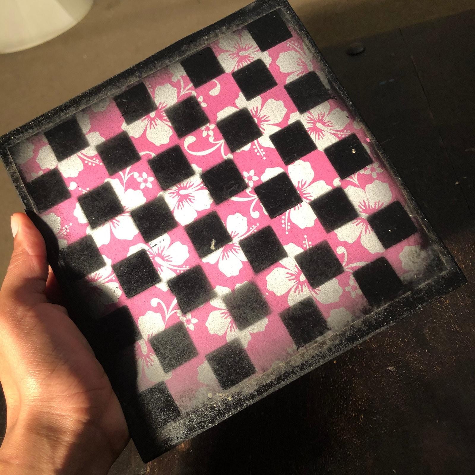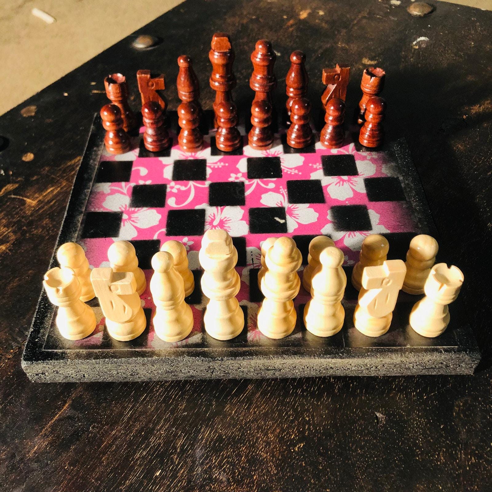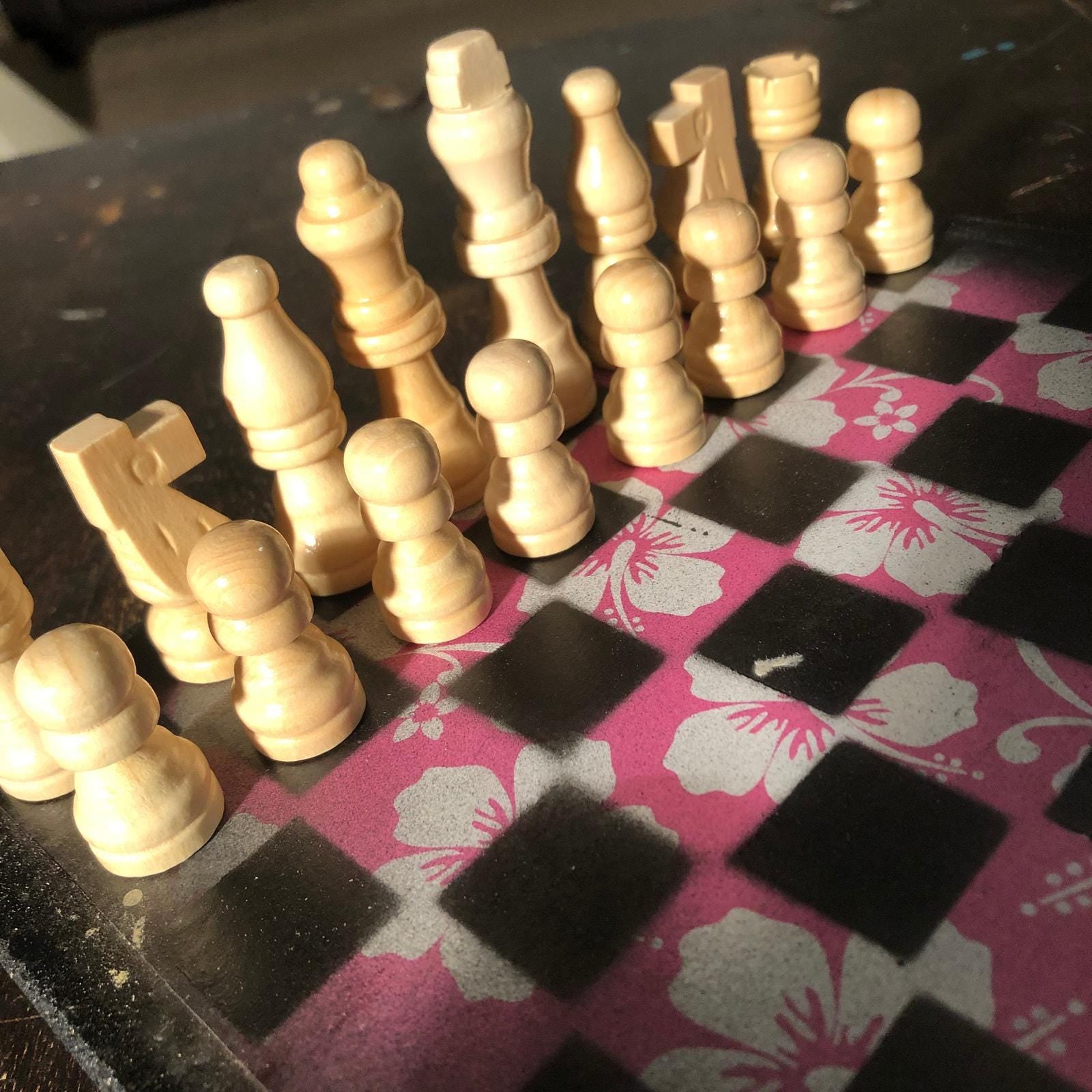 Introducing our exclusive Handcrafted Wooden Chess Set, meticulously designed with precision and care. Measuring 8 inches by 8 inches, this chess set features a beautifully painted particle board layered with a sheet of scrapbook paper board that doubles as a work of art. Each set is a unique, one-of-a-kind creation, crafted by hand to ensure that no two sets are alike. Elevate your gaming experience with this exceptional chess set that combines vibrant design with the touch of artisan craftsmanship. This chess board comes with chess pieces and is handcrafted as a one of one