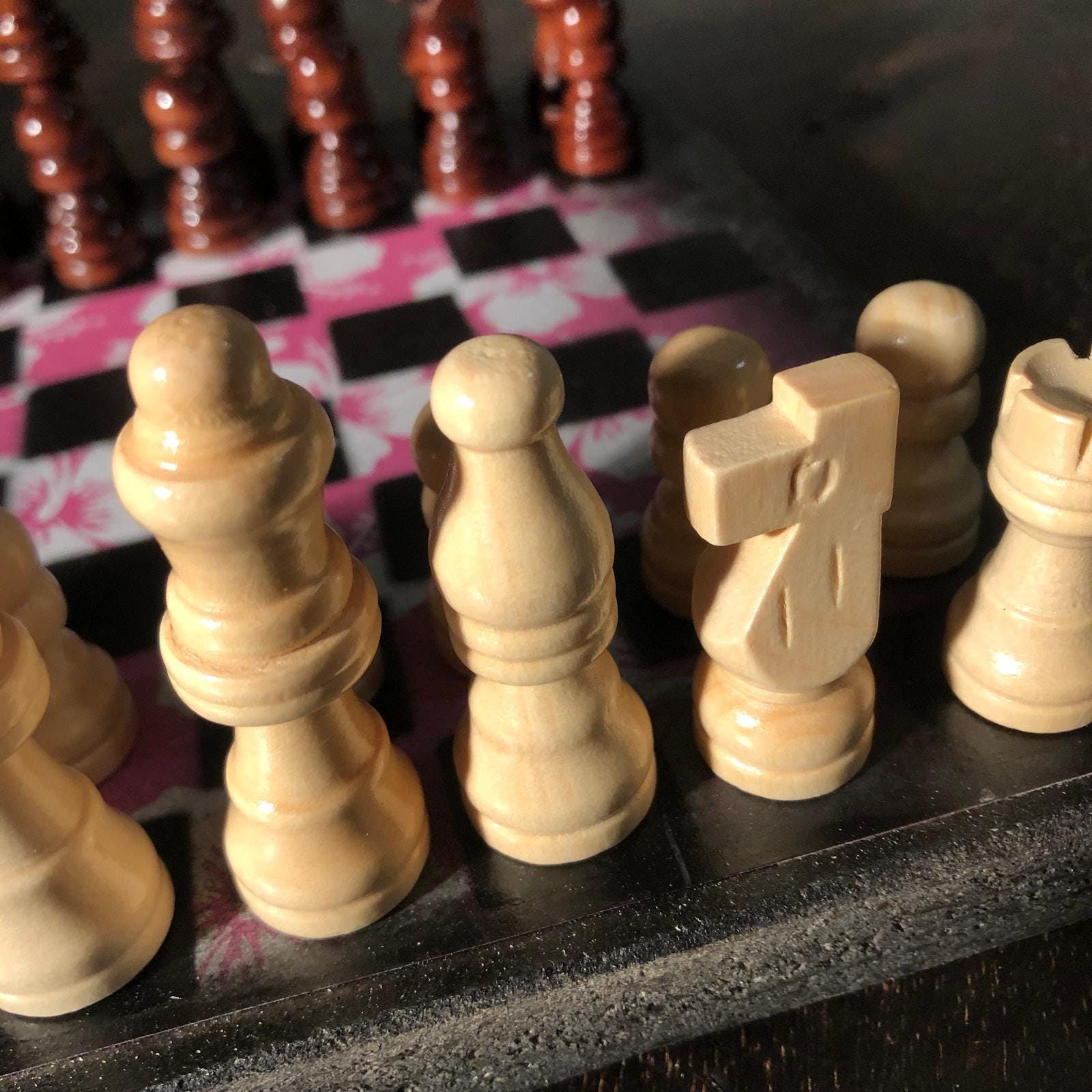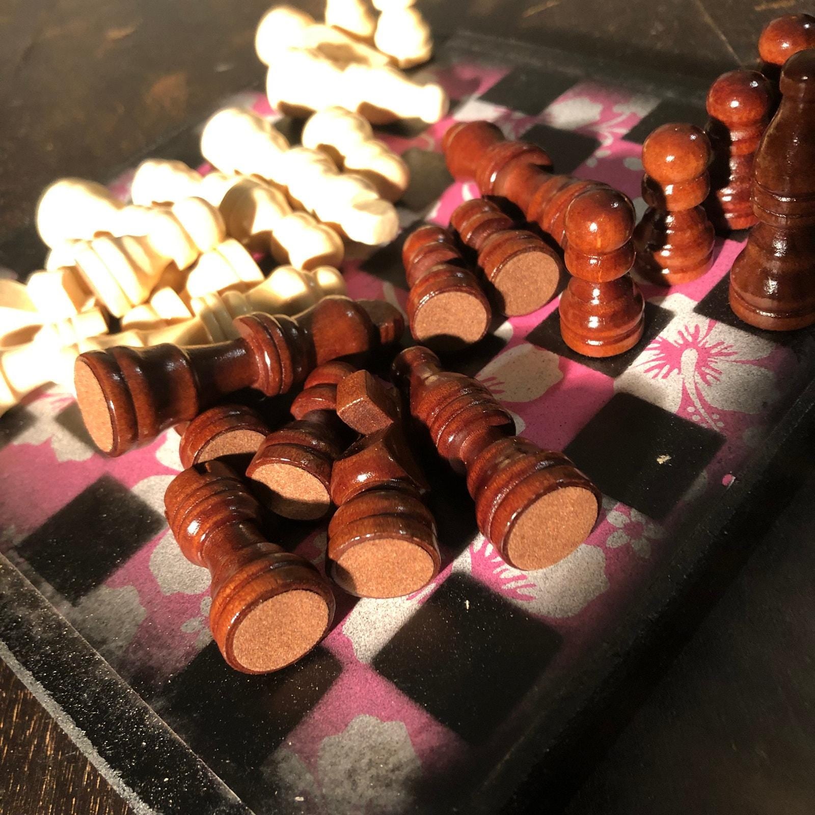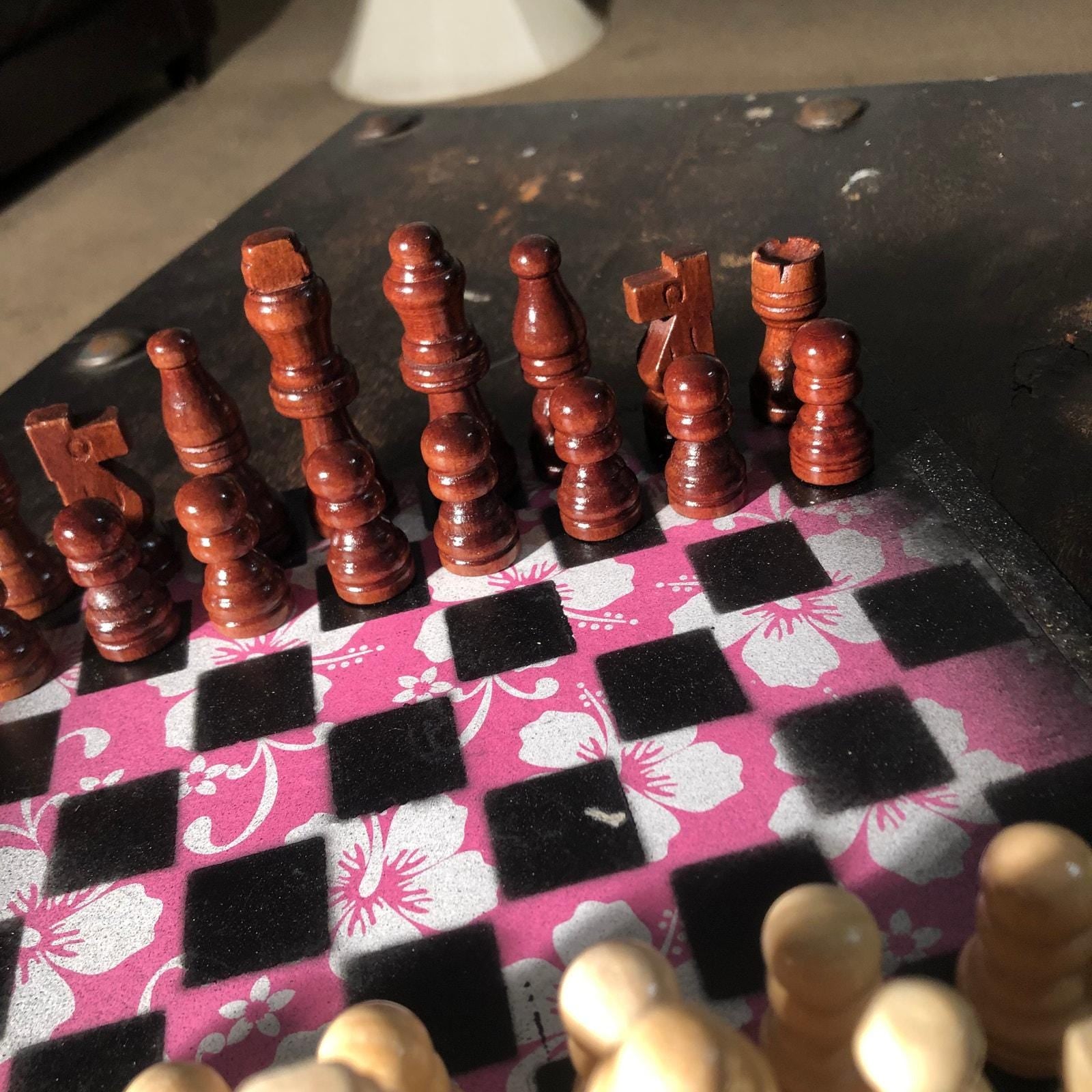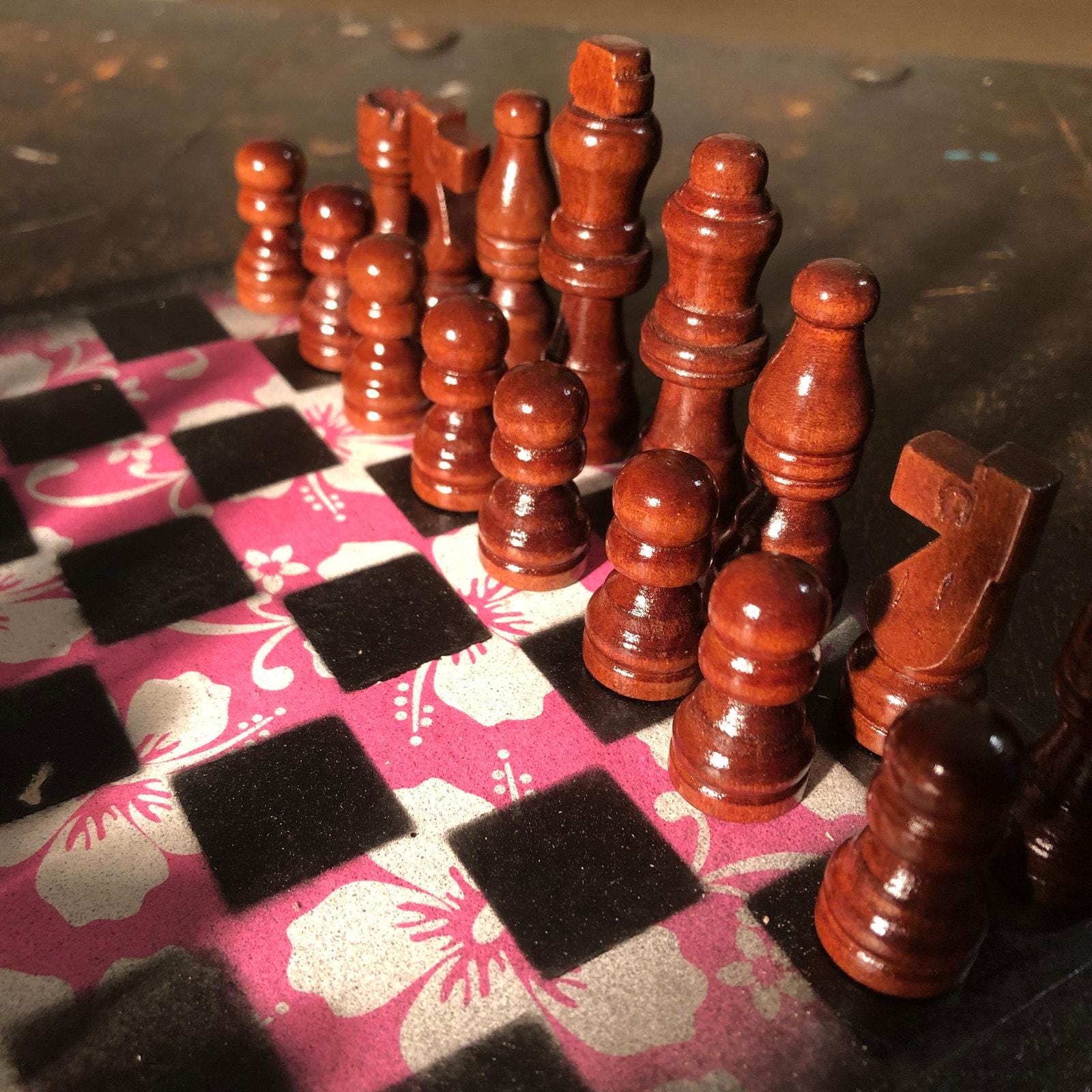 Introducing our exclusive Handcrafted Wooden Chess Set, meticulously designed with precision and care. Measuring 8 inches by 8 inches, this chess set features a beautifully painted particle board layered with a sheet of scrapbook paper board that doubles as a work of art. Each set is a unique, one-of-a-kind creation, crafted by hand to ensure that no two sets are alike. Elevate your gaming experience with this exceptional chess set that combines vibrant design with the touch of artisan craftsmanship. This chess board comes with chess pieces and is handcrafted as a one of one