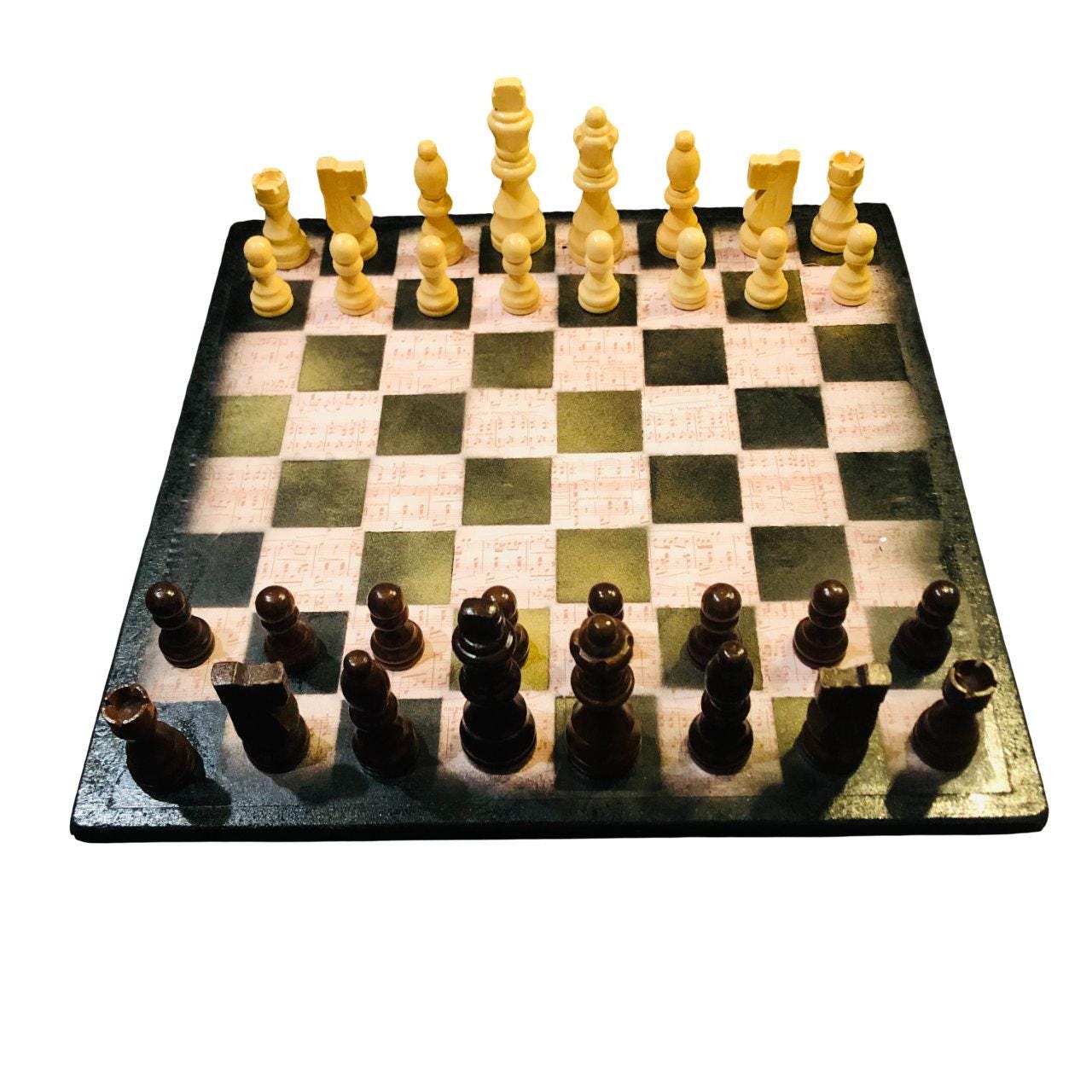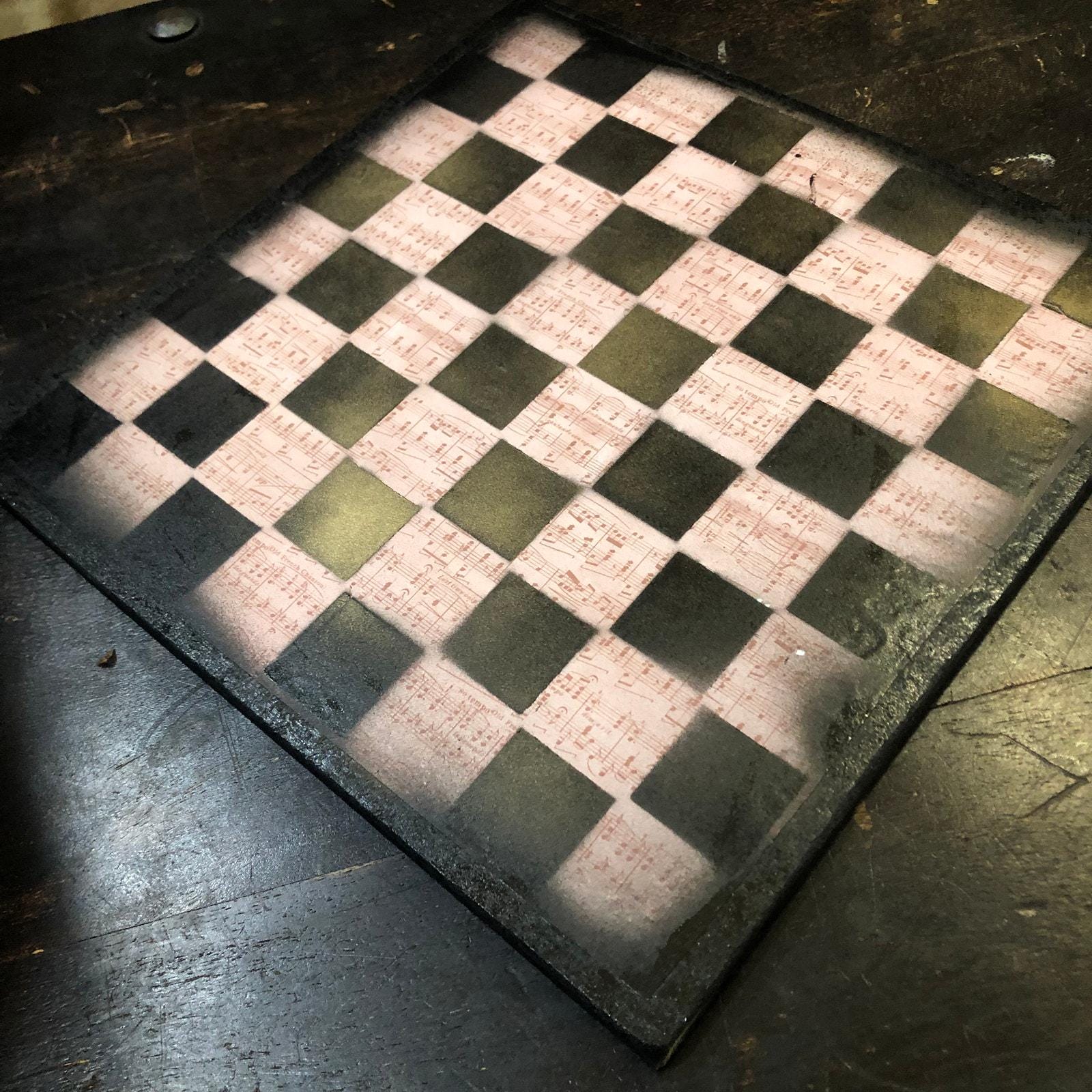Introducing our exclusive Handcrafted Wooden Chess Set, meticulously designed with precision and care. Measuring 12 inches by 12 inches, this chess set features a beautifully painted particle board layered with a sheet of scrapbook paper board that doubles as a work of art. Each set is a unique, one-of-a-kind creation, crafted by hand to ensure that no two sets are alike. Elevate your gaming experience with this exceptional chess set that combines vibrant design with the touch of artisan craftsmanship. This chess board comes with chess pieces and is handcrafted as a one of one