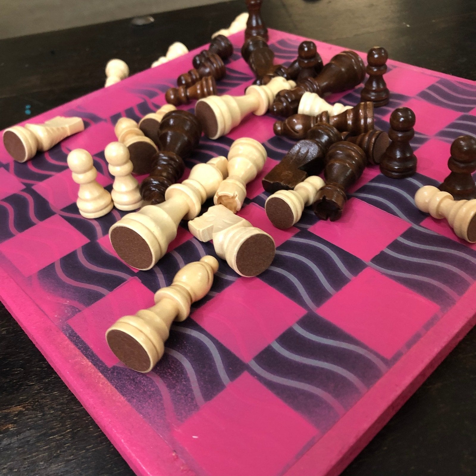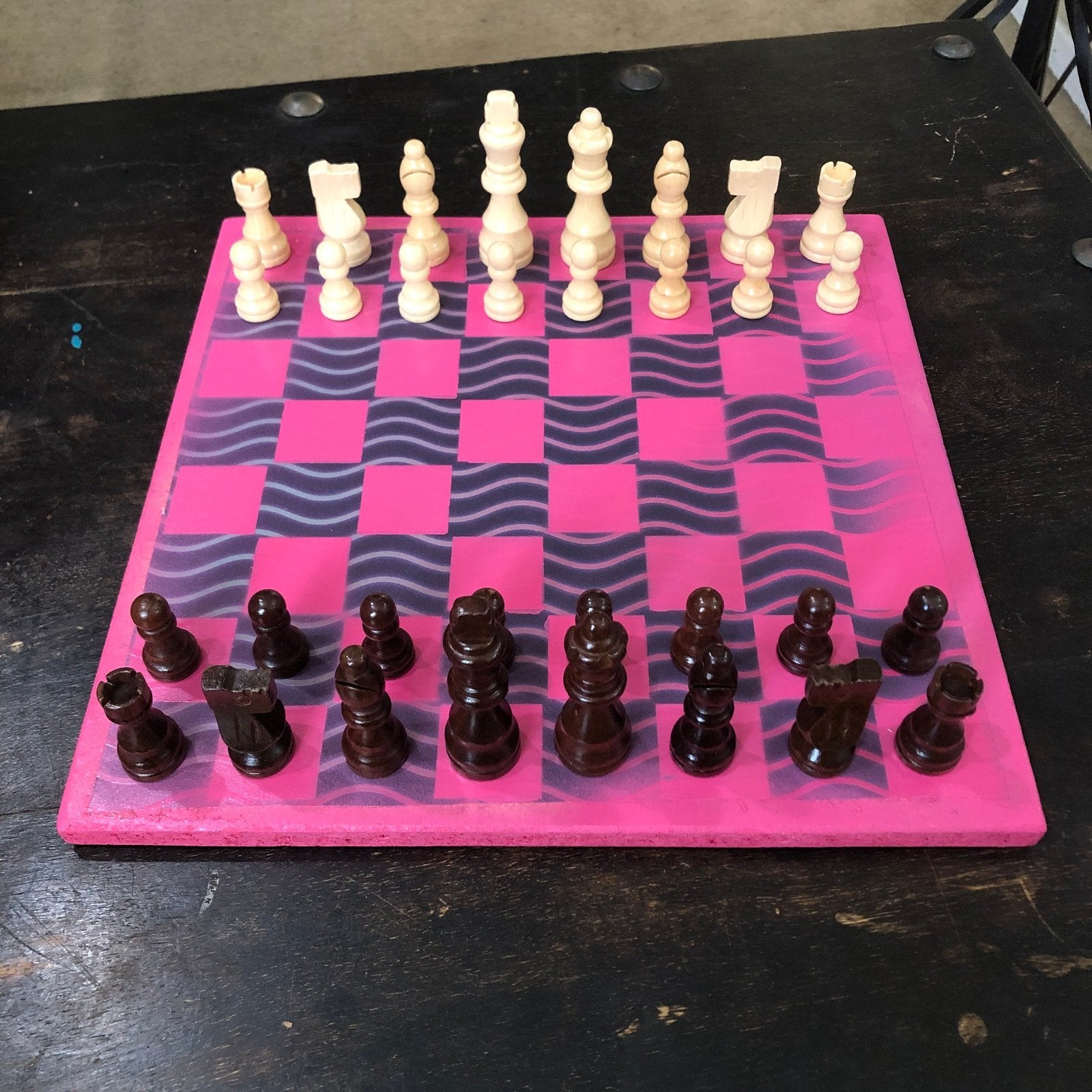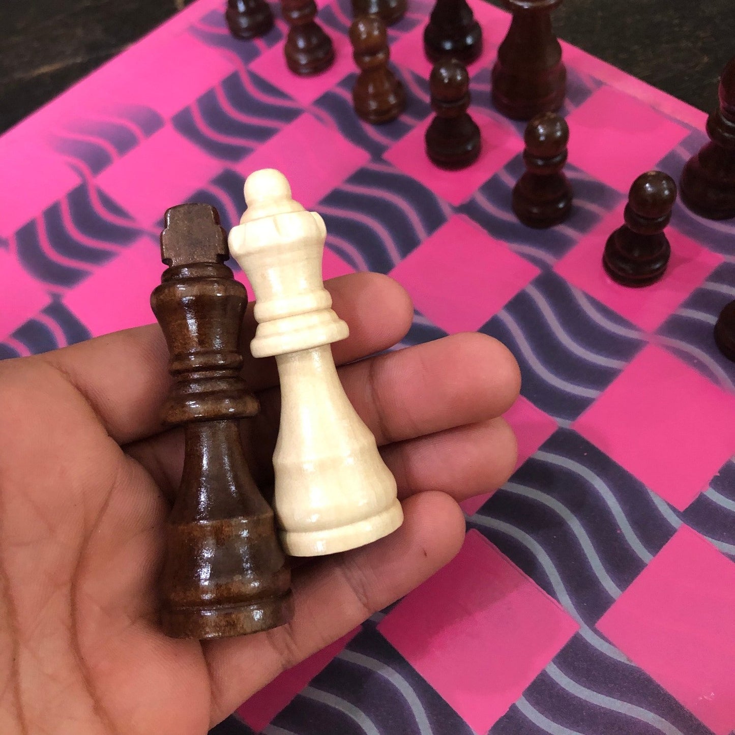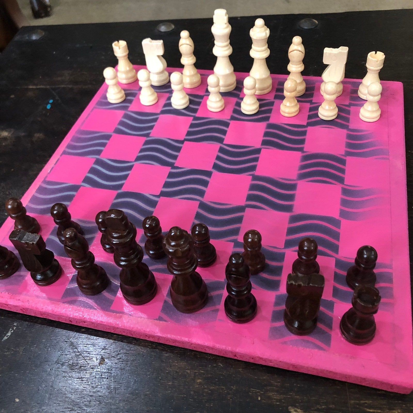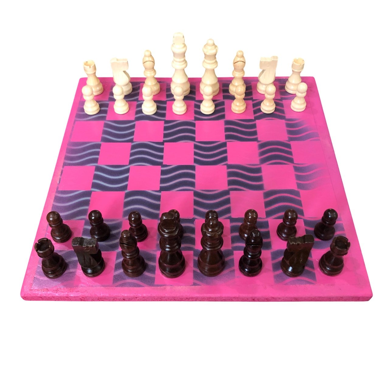 Introducing our exclusive Handcrafted Wooden Chess Set, meticulously designed with precision and care. Measuring 12 inches by 12 inches, this chess set features a beautifully painted particle board layered with a sheet of scrapbook paper board that doubles as a work of art. Each set is a unique, one-of-a-kind creation, crafted by hand to ensure that no two sets are alike. Elevate your gaming experience with this exceptional chess set that combines vibrant design with the touch of artisan craftsmanship. This chess board comes with chess pieces and is handcrafted as a one of one
