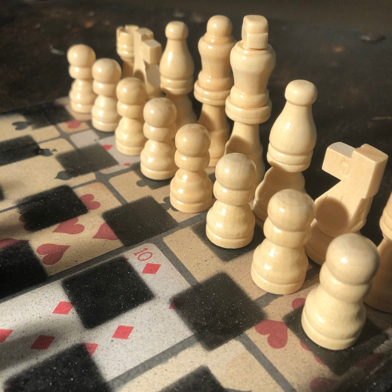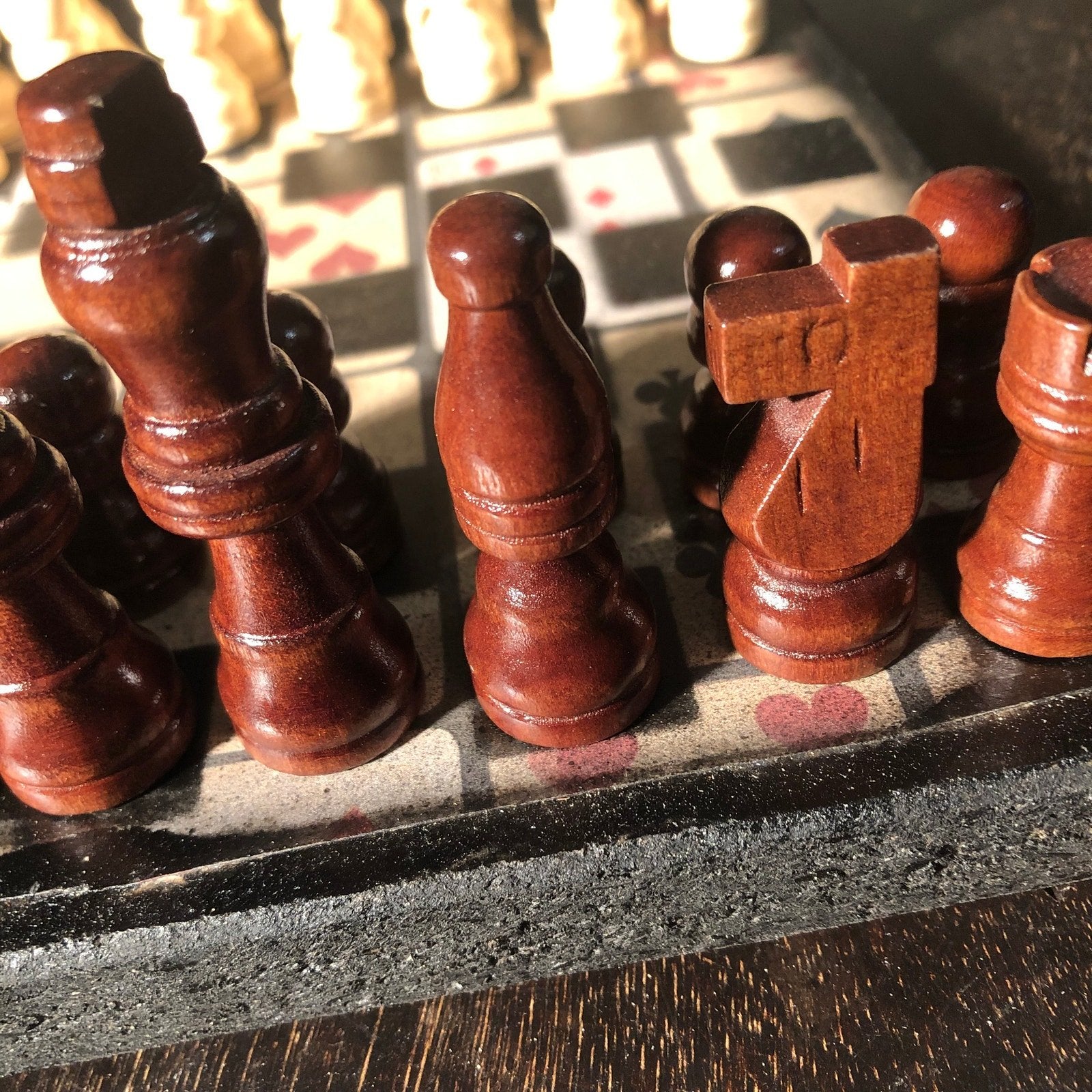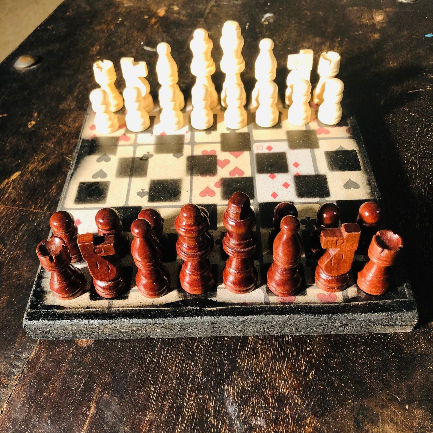 Introducing our exclusive Handcrafted Wooden Chess Set, meticulously designed with precision and care. Measuring 8 inches by 8 inches, this chess set features a beautifully painted particle board layered with a sheet of scrapbook paper board that doubles as a work of art. Each set is a unique, one-of-a-kind creation, crafted by hand to ensure that no two sets are alike. Elevate your gaming experience with this exceptional chess set that combines vibrant design with the touch of artisan craftsmanship. This chess board comes with chess pieces and is handcrafted as a one of one