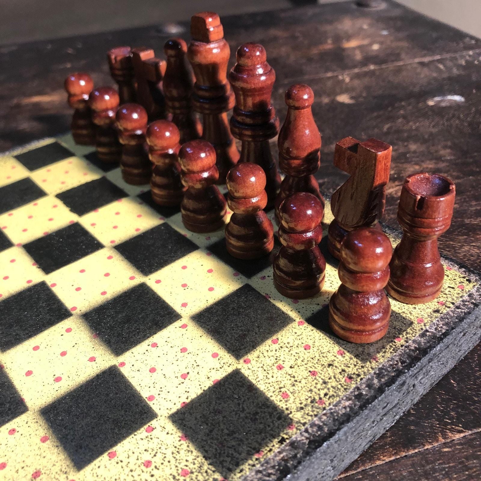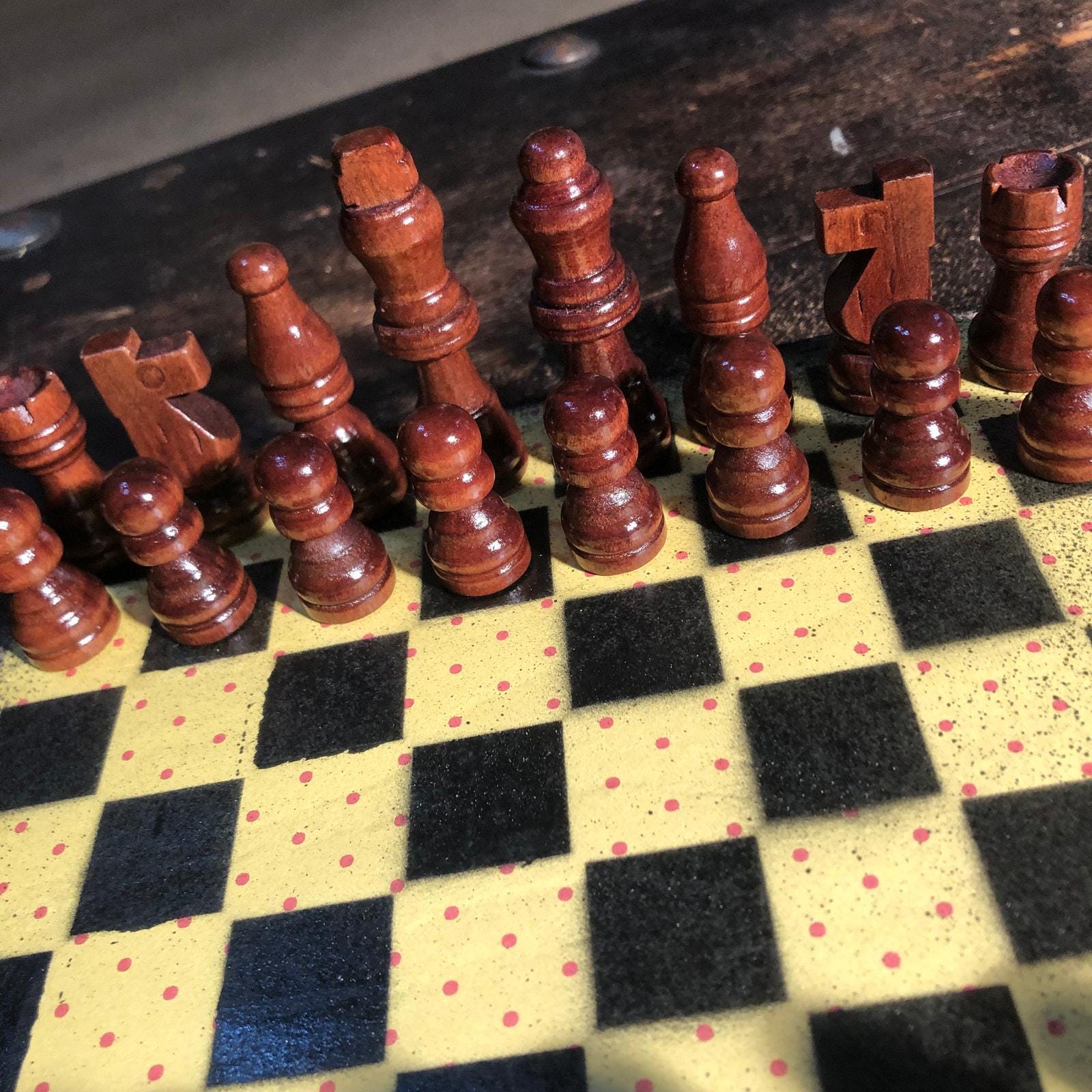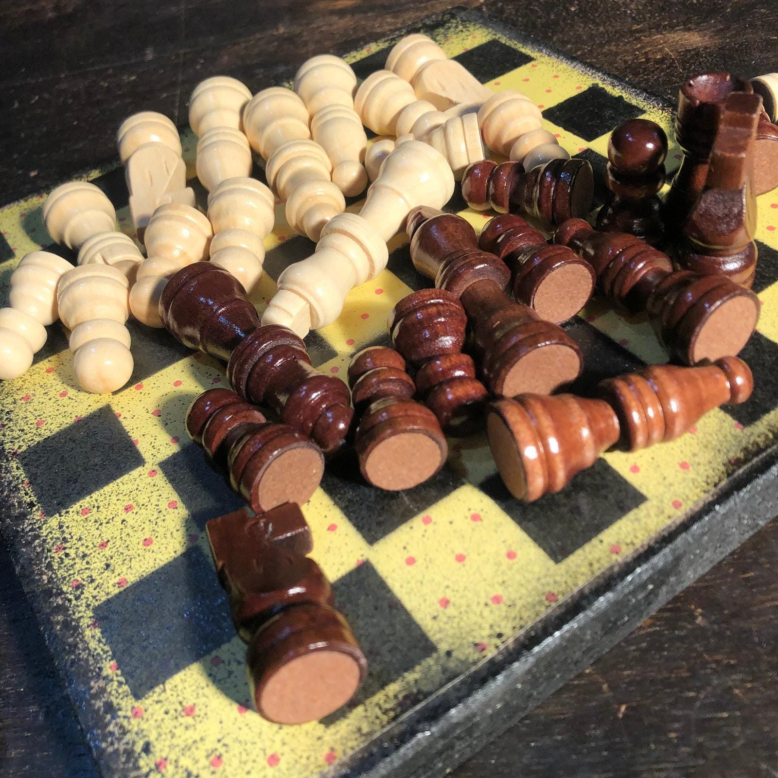 Introducing our exclusive Handcrafted Wooden Chess Set, meticulously designed with precision and care. Measuring 8 inches by 8 inches, this chess set features a beautifully painted particle board layered with a sheet of scrapbook paper board that doubles as a work of art. Each set is a unique, one-of-a-kind creation, crafted by hand to ensure that no two sets are alike. Elevate your gaming experience with this exceptional chess set that combines vibrant design with the touch of artisan craftsmanship. This chess board comes with chess pieces and is handcrafted as a one of one