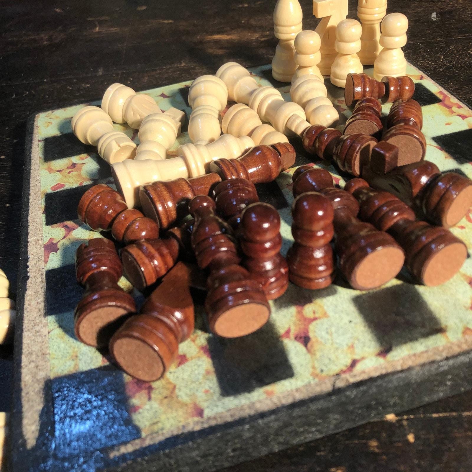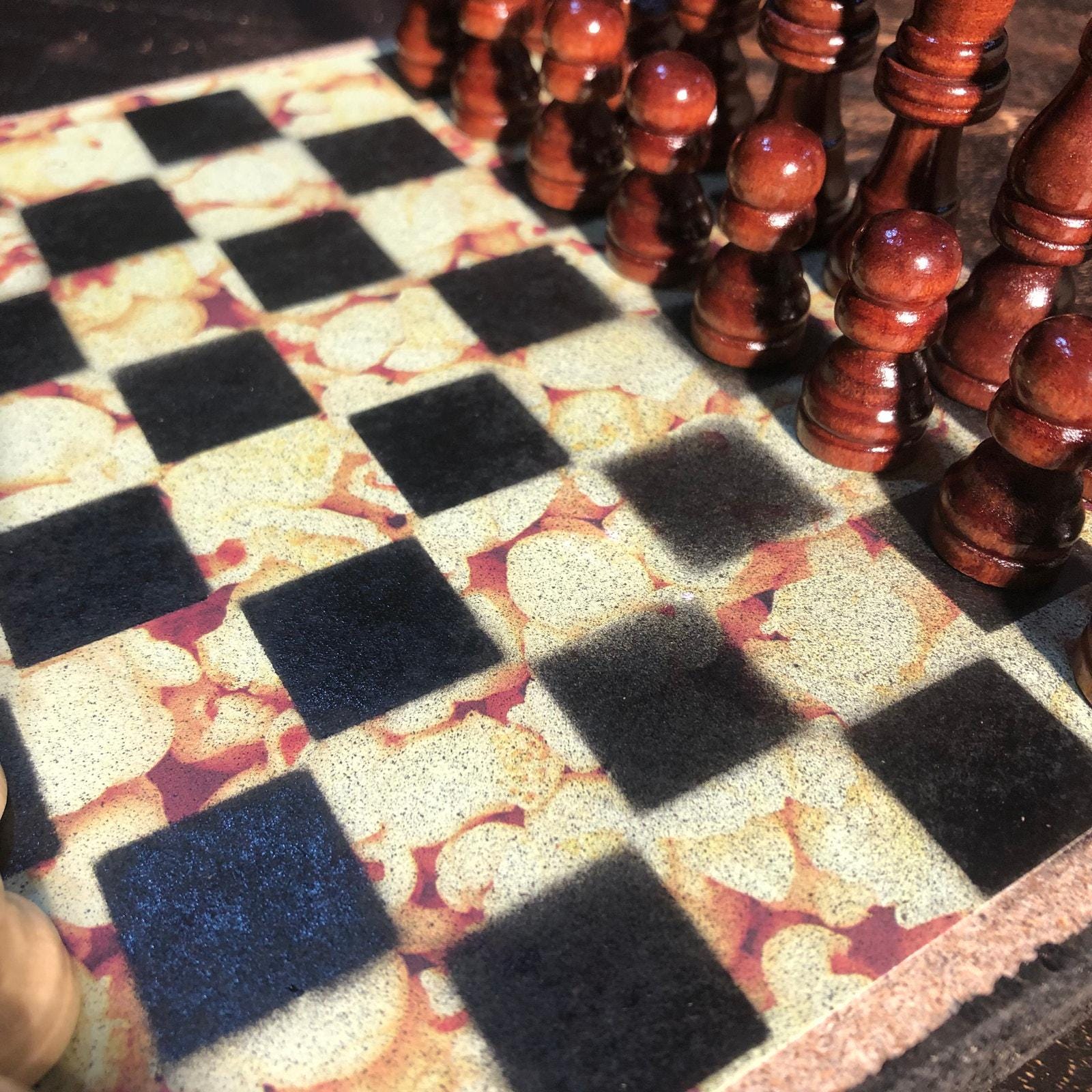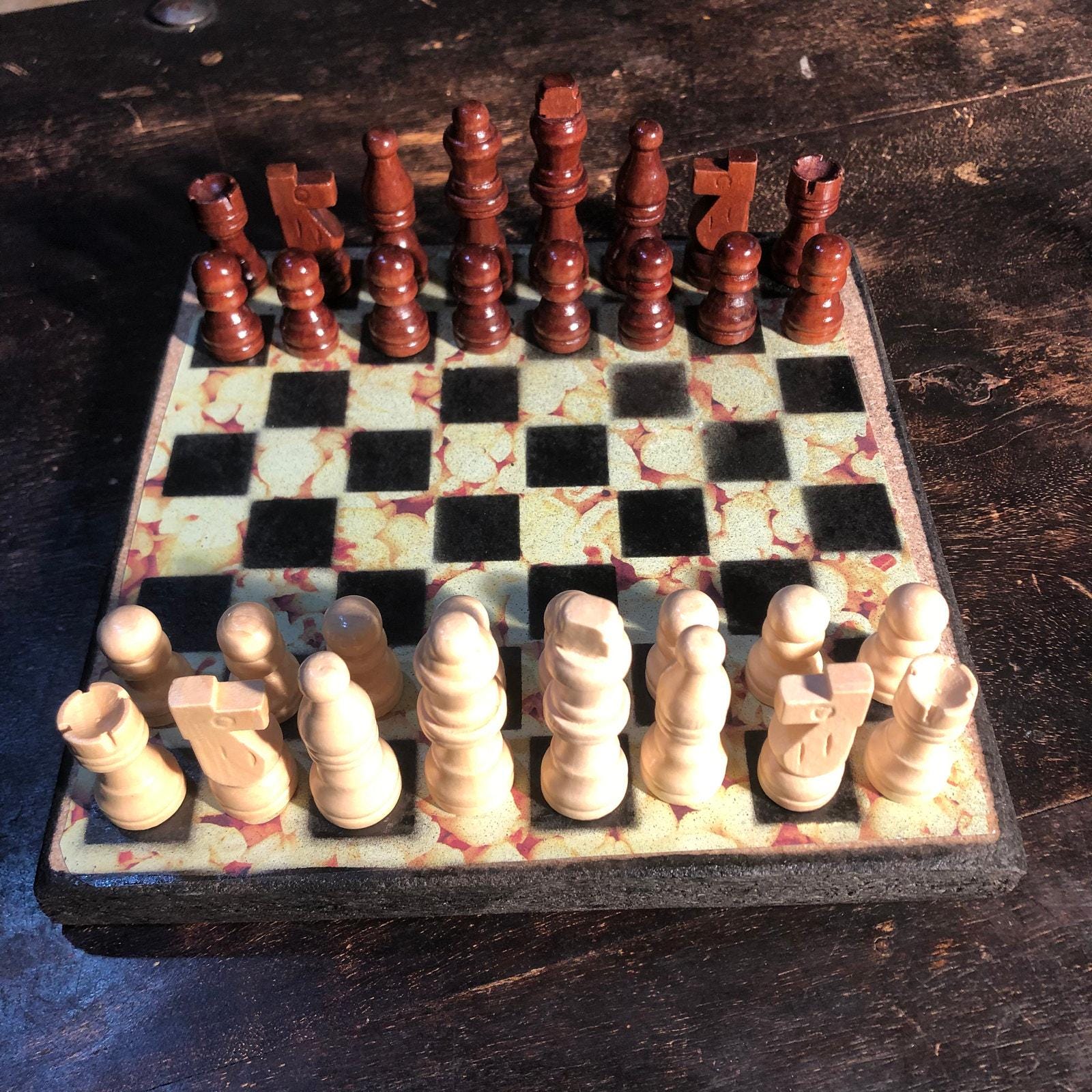 Introducing our exclusive Handcrafted Wooden Chess Set, meticulously designed with precision and care. Measuring 8 inches by 8 inches, this chess set features a beautifully painted particle board layered with a sheet of scrapbook paper board that doubles as a work of art. Each set is a unique, one-of-a-kind creation, crafted by hand to ensure that no two sets are alike. Elevate your gaming experience with this exceptional chess set that combines vibrant design with the touch of artisan craftsmanship. This chess board comes with chess pieces and is handcrafted as a one of one