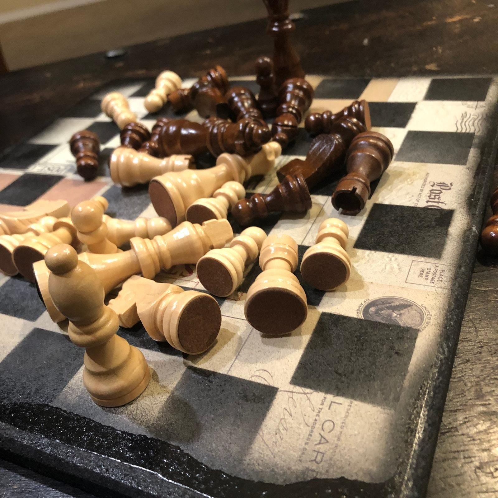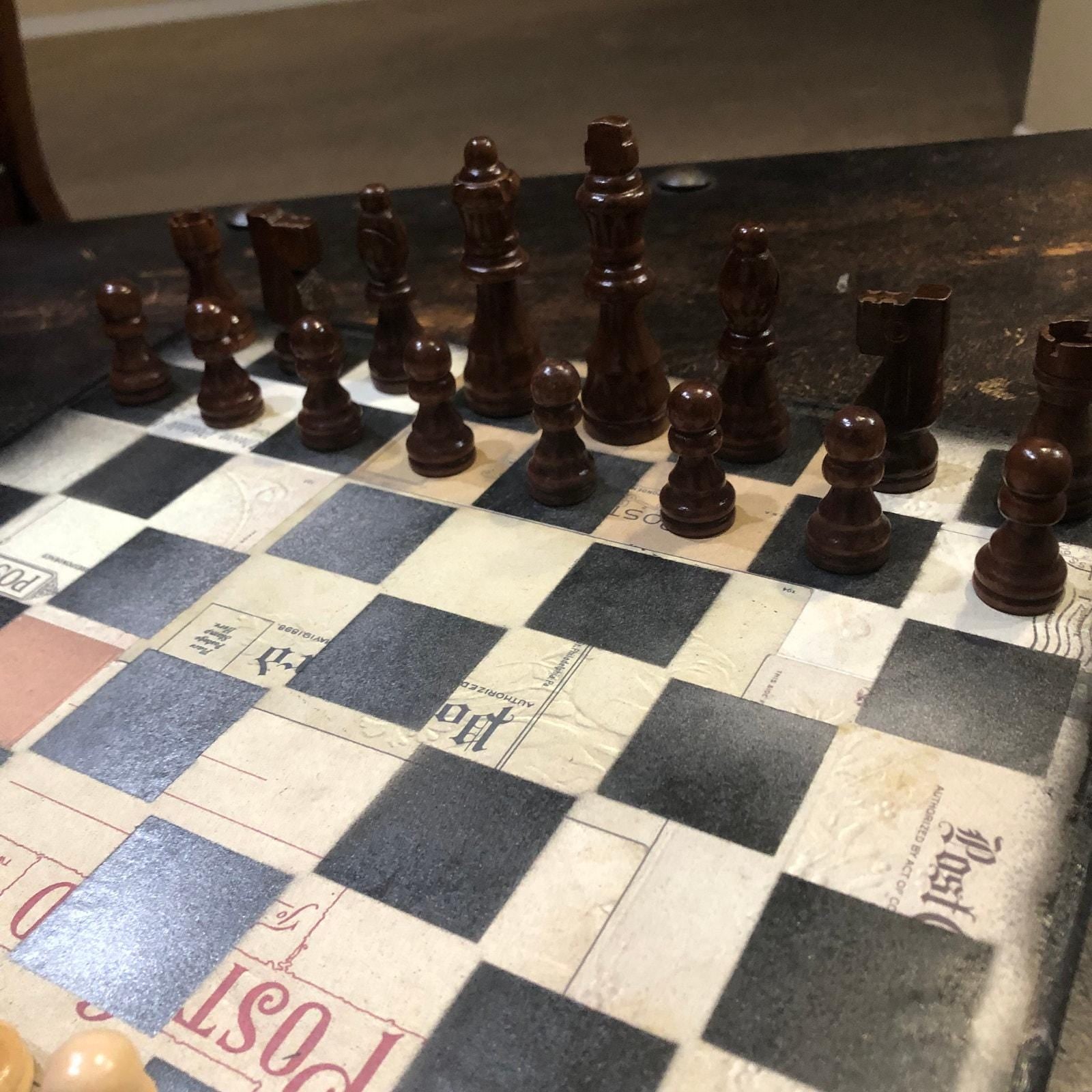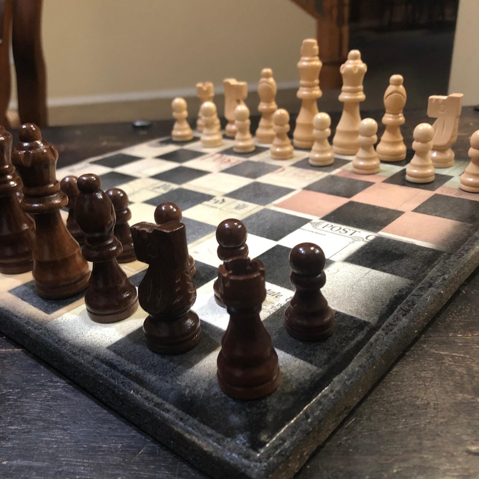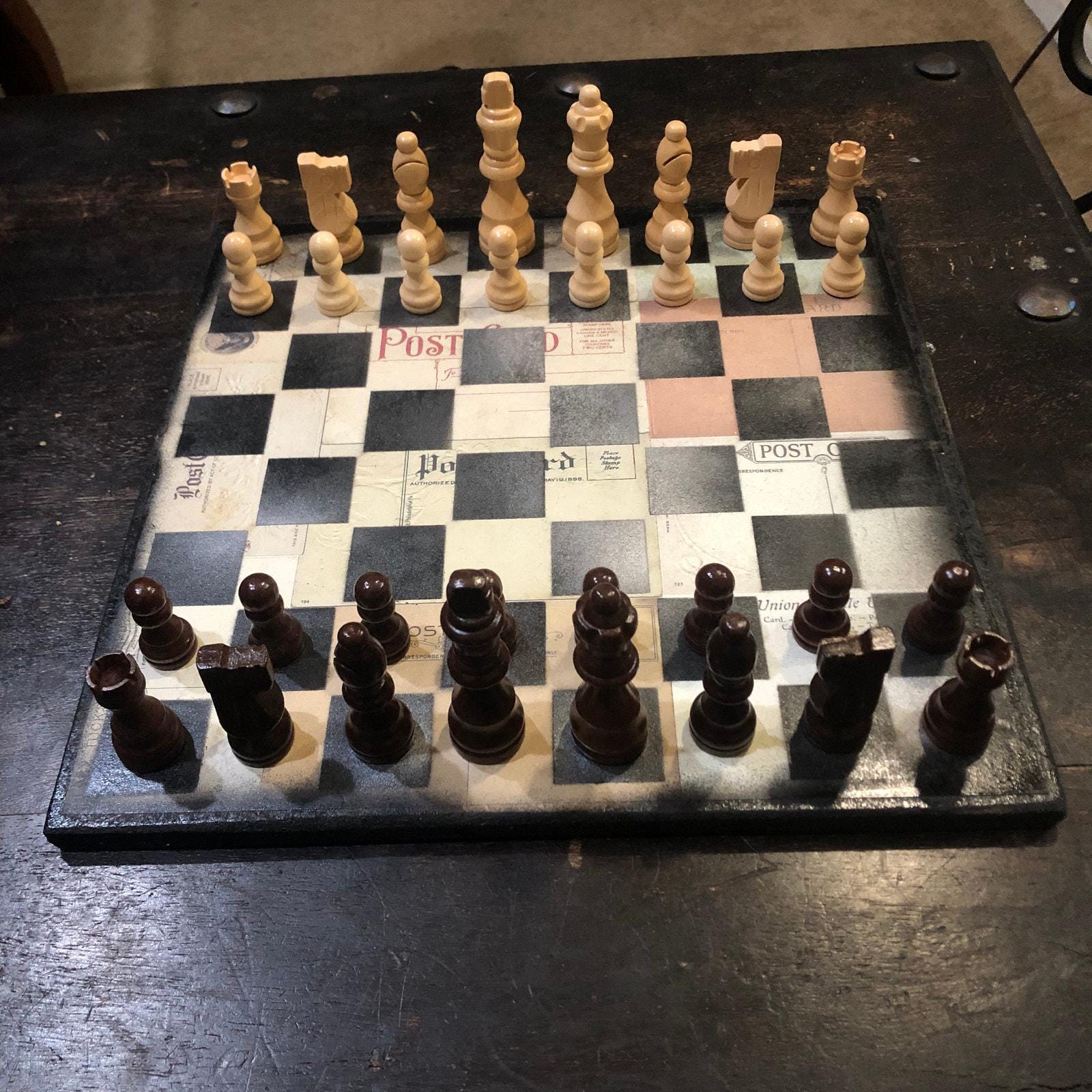 Introducing our exclusive Handcrafted Wooden Chess Set, meticulously designed with precision and care. Measuring 12 inches by 12 inches, this chess set features a beautifully painted particle board layered with a sheet of scrapbook paper board that doubles as a work of art. Each set is a unique, one-of-a-kind creation, crafted by hand to ensure that no two sets are alike. Elevate your gaming experience with this exceptional chess set that combines vibrant design with the touch of artisan craftsmanship. This chess board comes with chess pieces and is handcrafted as a one of one