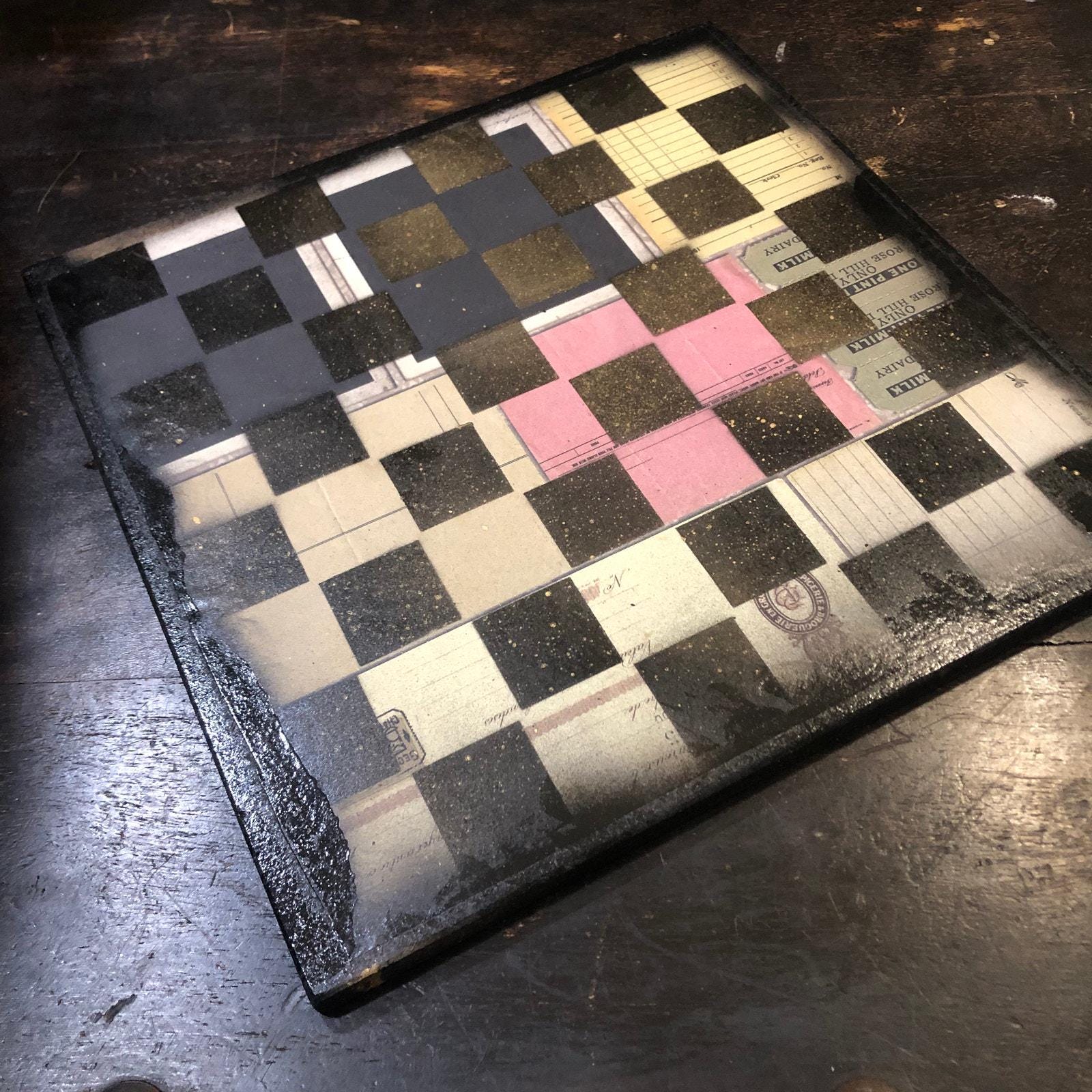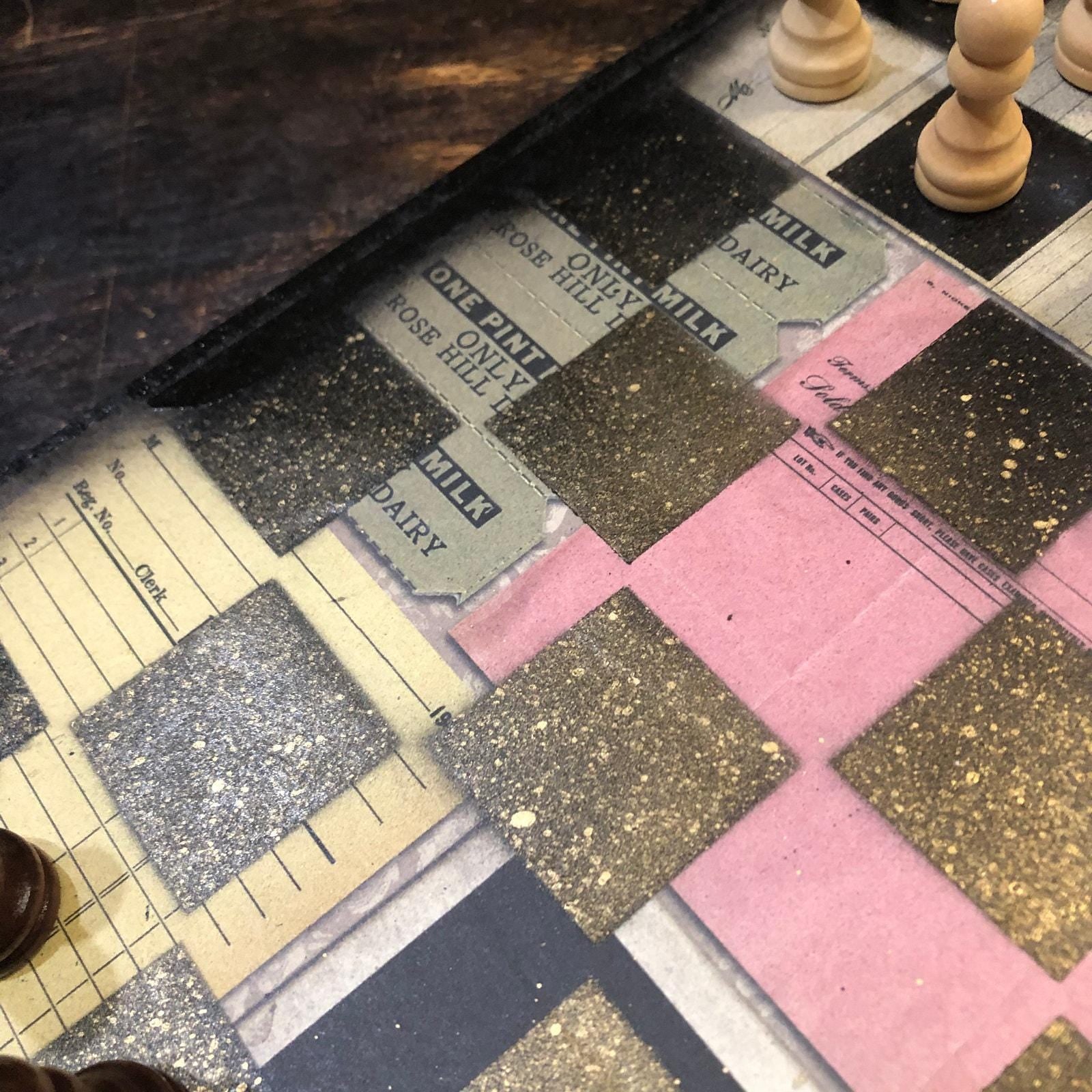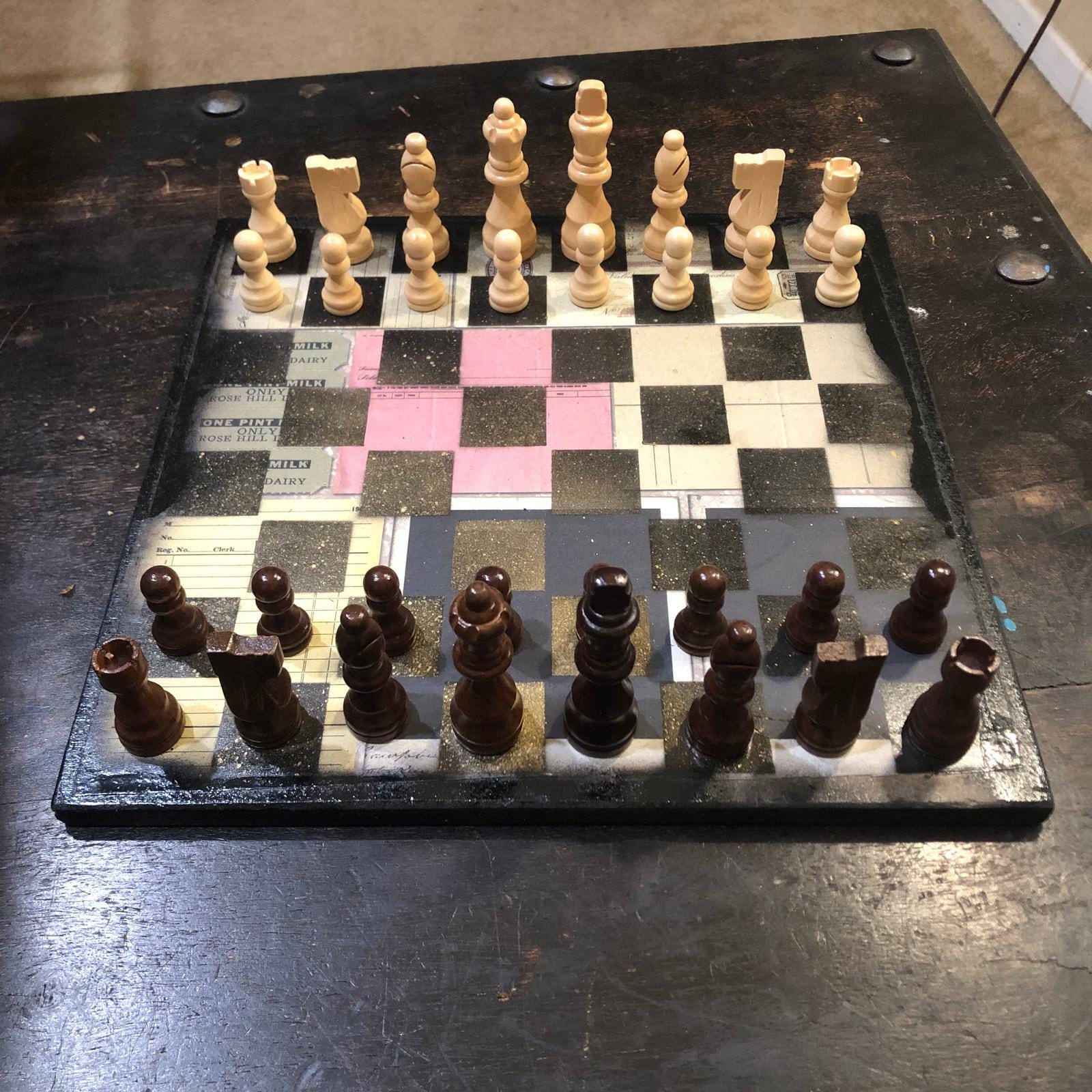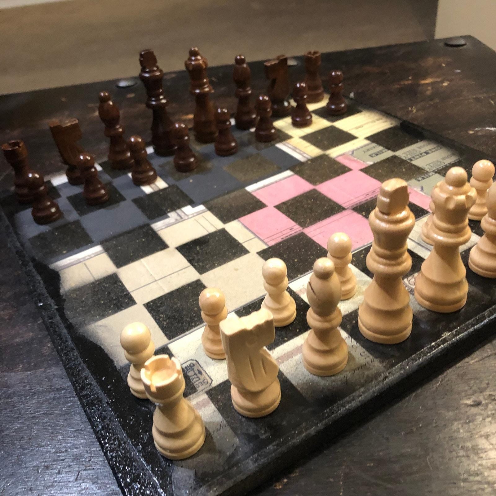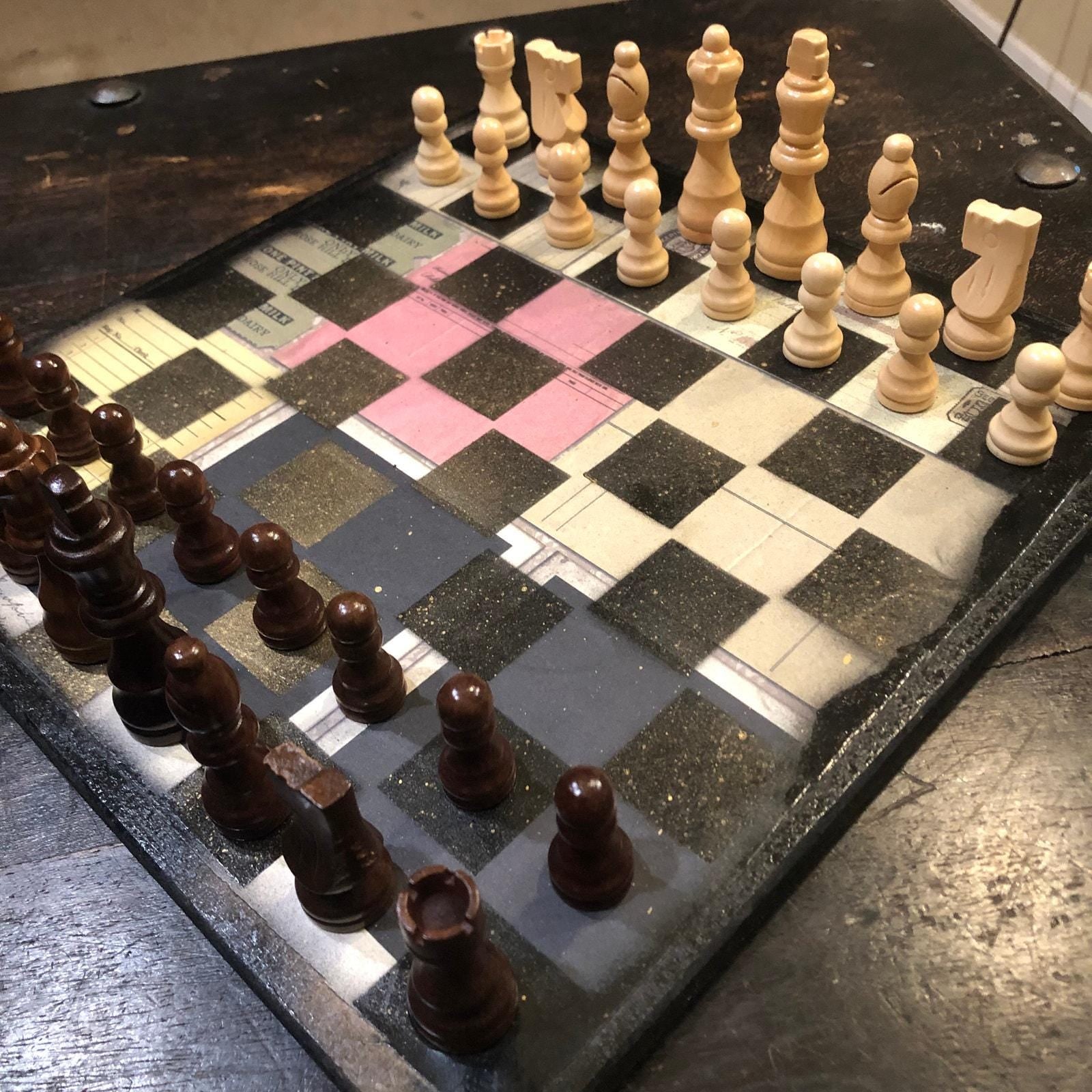 Introducing our exclusive Handcrafted Wooden Chess Set, meticulously designed with precision and care. Measuring 12 inches by 12 inches, this chess set features a beautifully painted particle board layered with a sheet of scrapbook paper board that doubles as a work of art. Each set is a unique, one-of-a-kind creation, crafted by hand to ensure that no two sets are alike. Elevate your gaming experience with this exceptional chess set that combines vibrant design with the touch of artisan craftsmanship. This chess board comes with chess pieces and is handcrafted as a one of one