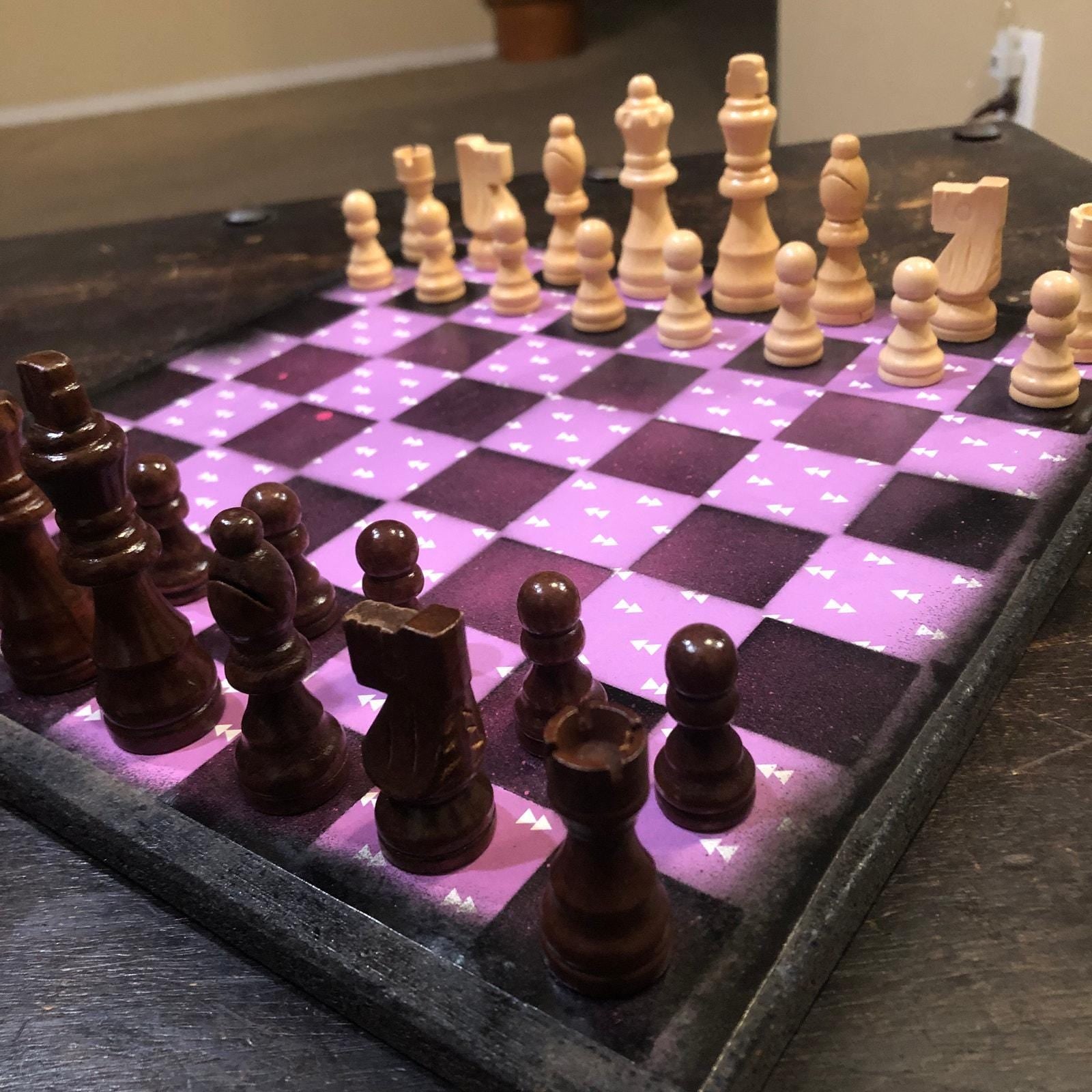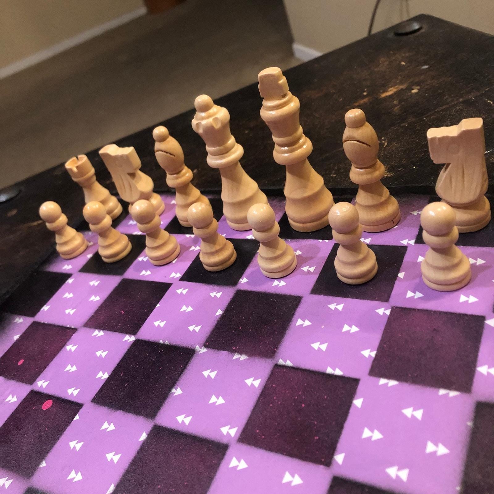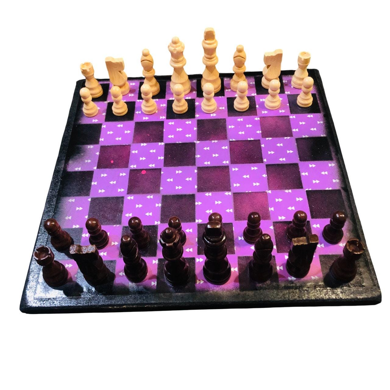 Introducing our exclusive Handcrafted Wooden Chess Set, meticulously designed with precision and care. Measuring 12 inches by 12 inches, this chess set features a beautifully painted particle board layered with a sheet of scrapbook paper board that doubles as a work of art. Each set is a unique, one-of-a-kind creation, crafted by hand to ensure that no two sets are alike. Elevate your gaming experience with this exceptional chess set that combines vibrant design with the touch of artisan craftsmanship. This chess board comes with chess pieces and is handcrafted as a one of one