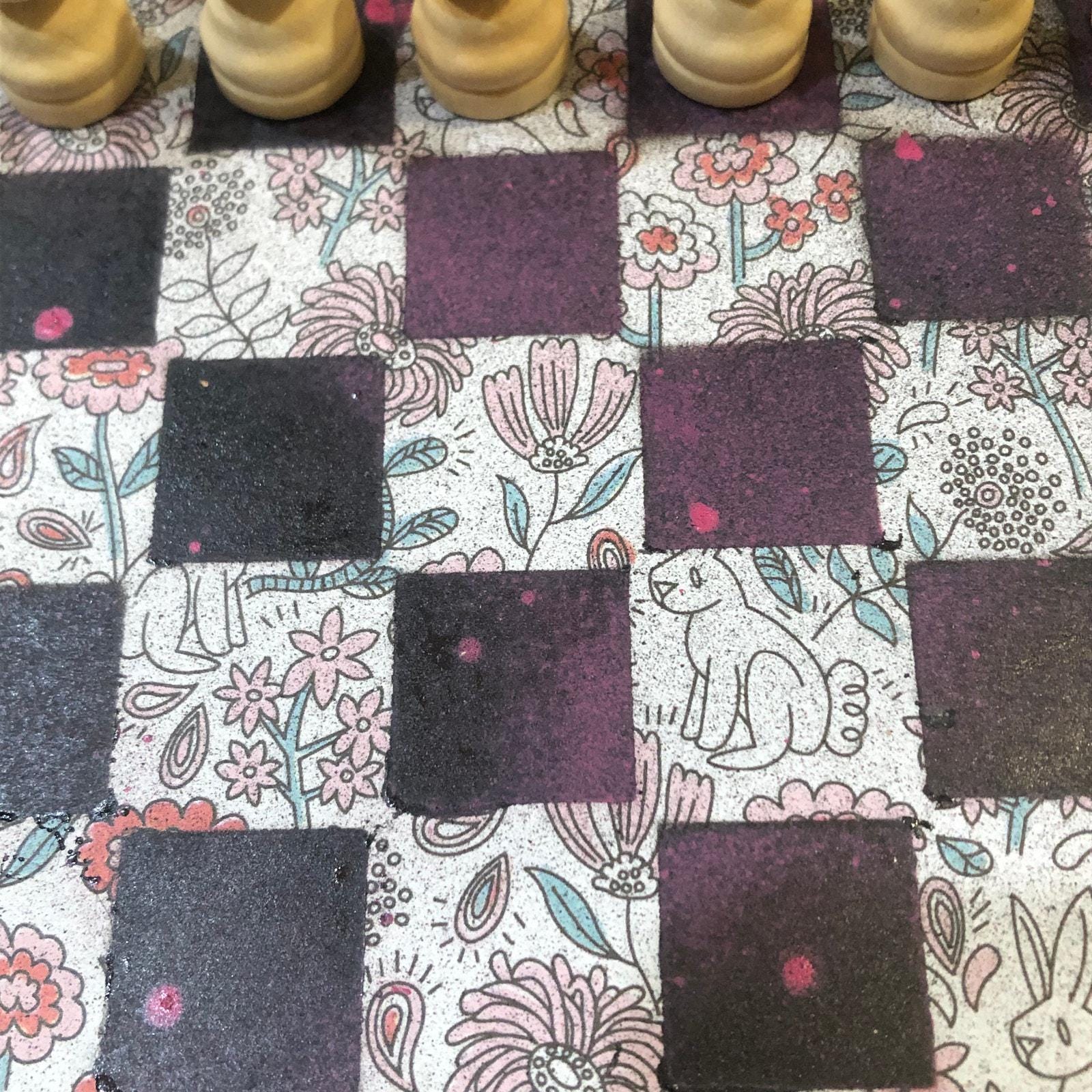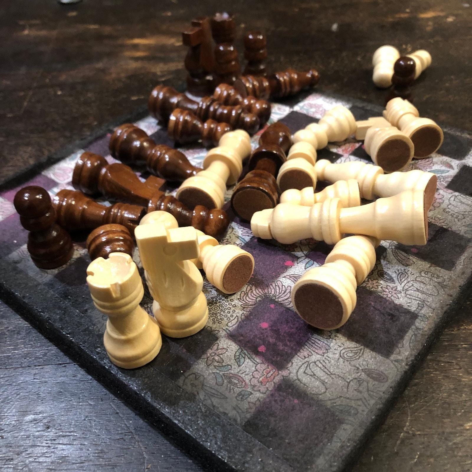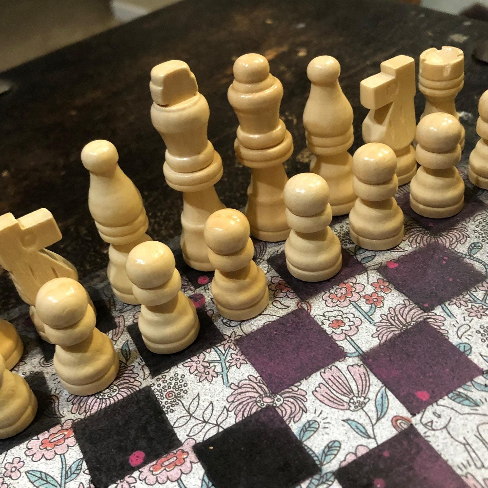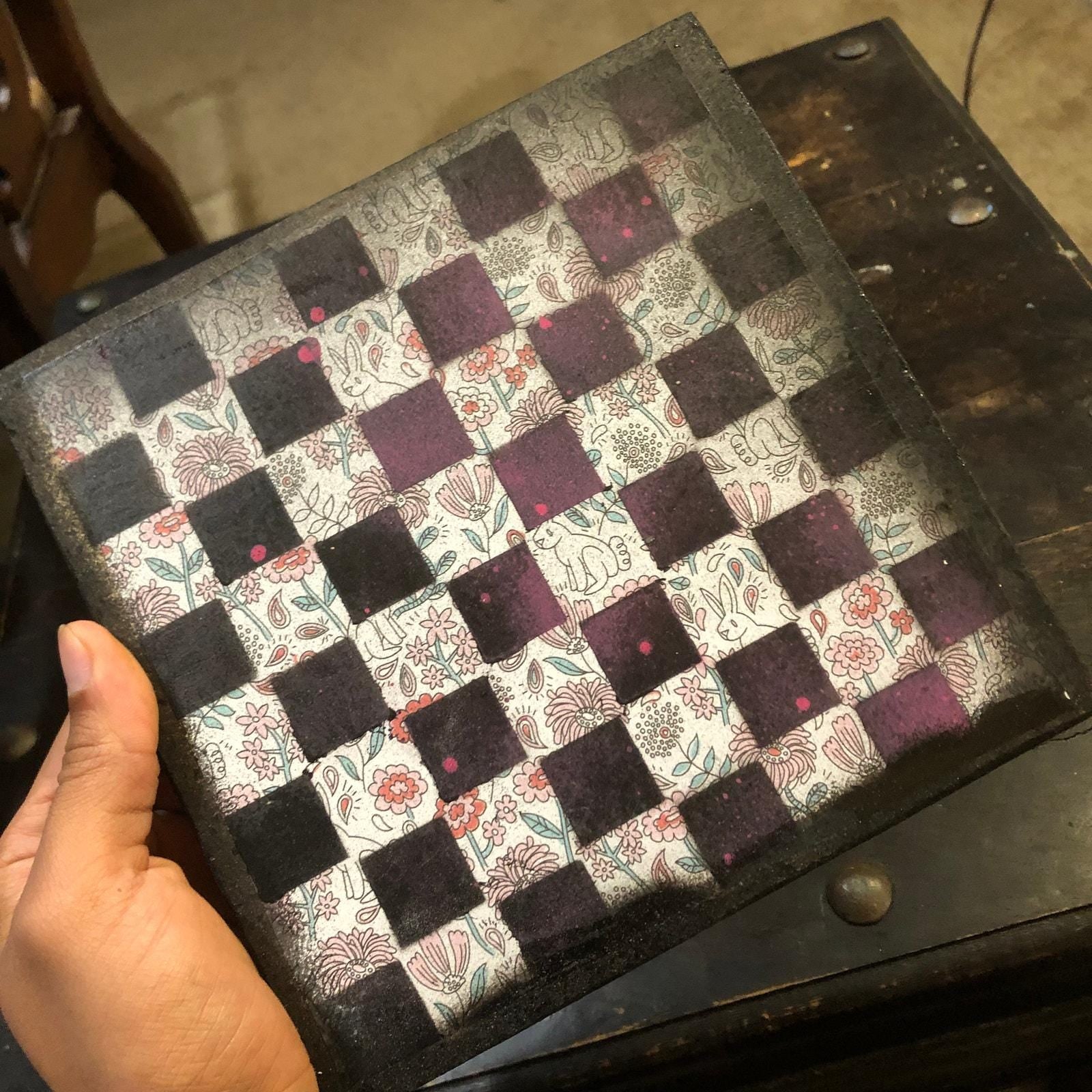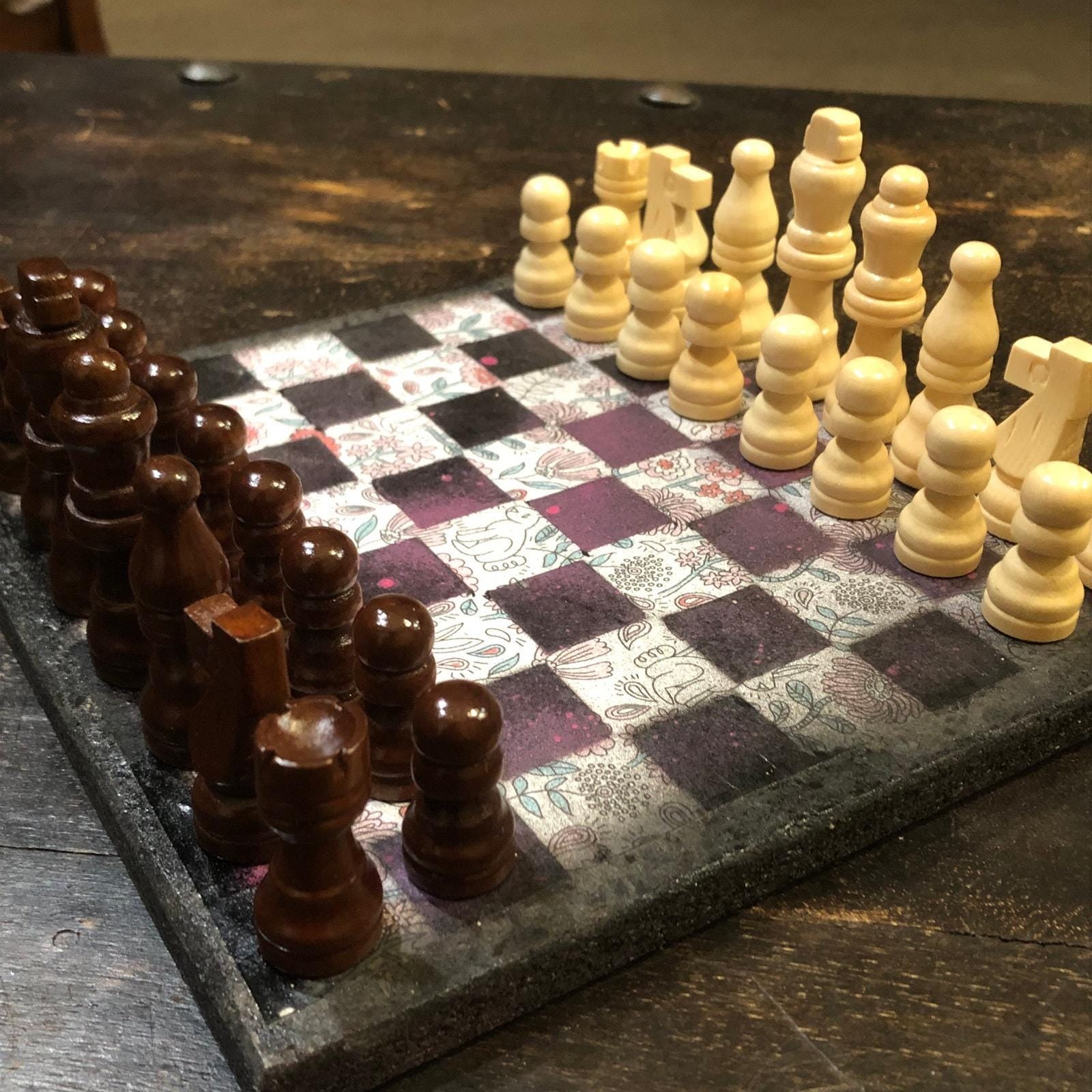 Introducing our exclusive Handcrafted Wooden Chess Set, meticulously designed with precision and care. Measuring 8 inches by 8 inches, this chess set features a beautifully painted particle board layered with a sheet of scrapbook paper board that doubles as a work of art. Each set is a unique, one-of-a-kind creation, crafted by hand to ensure that no two sets are alike. Elevate your gaming experience with this exceptional chess set that combines vibrant design with the touch of artisan craftsmanship. This chess board comes with chess pieces and is handcrafted as a one of one