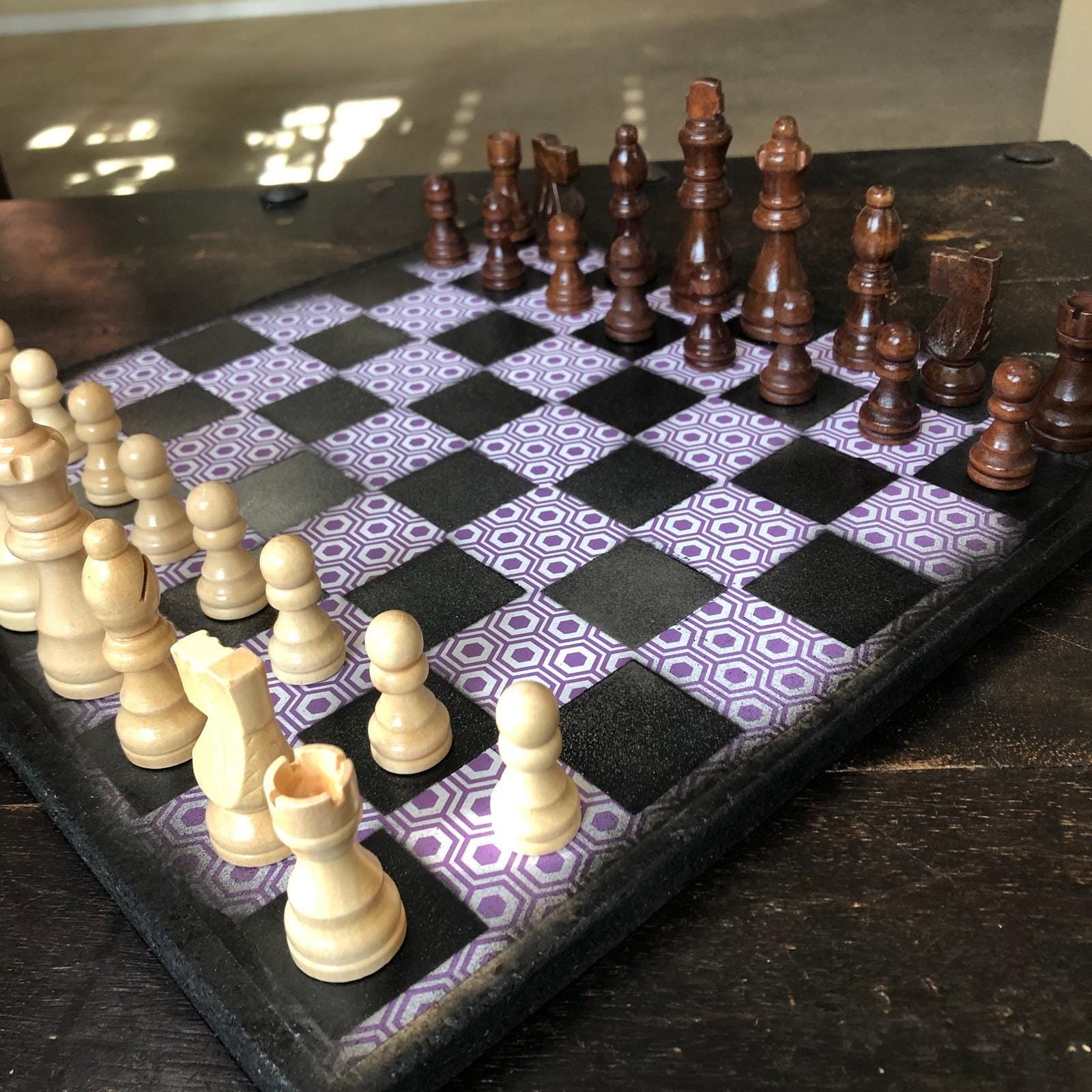 Scrapbook Chess Set - Purple Hexagon Pattern