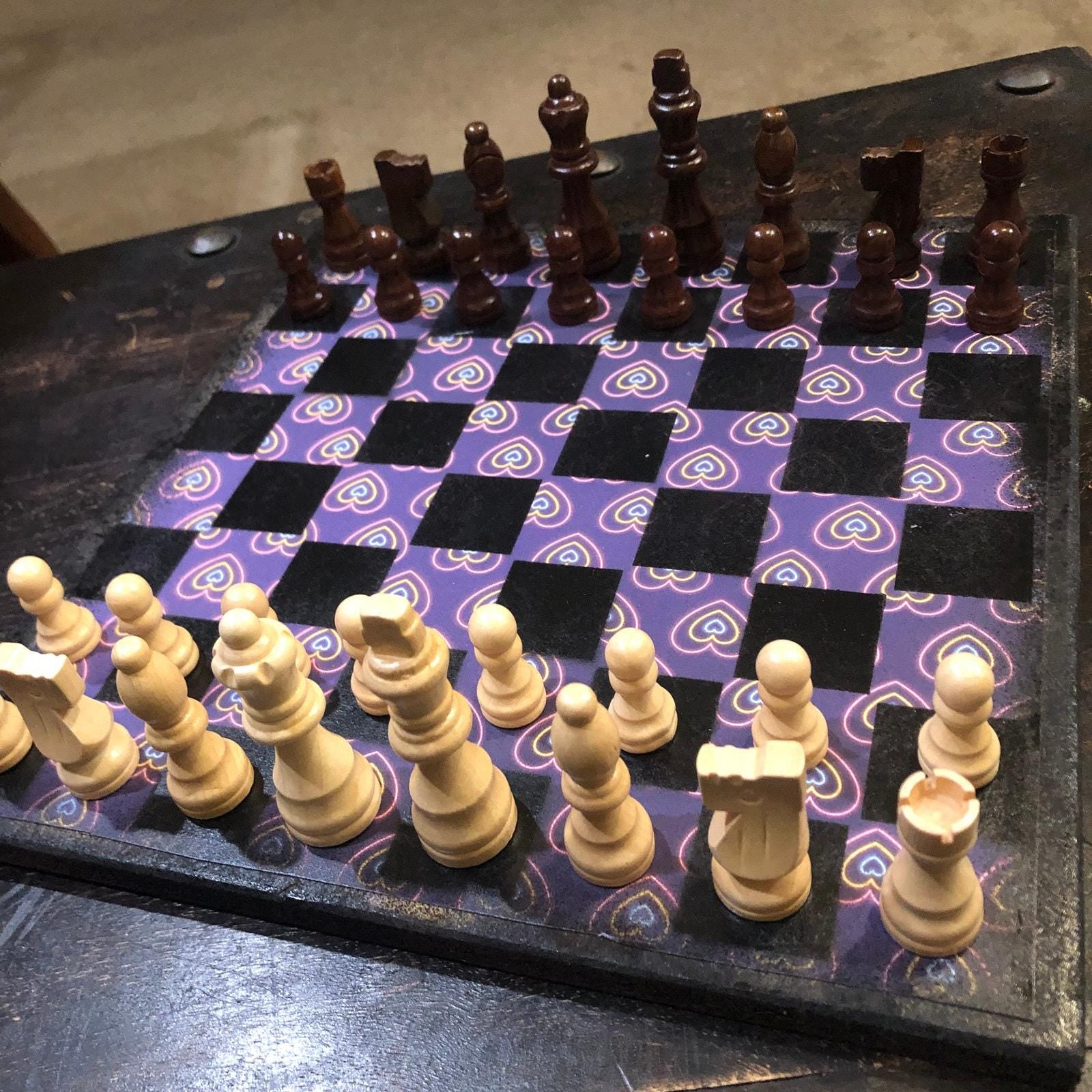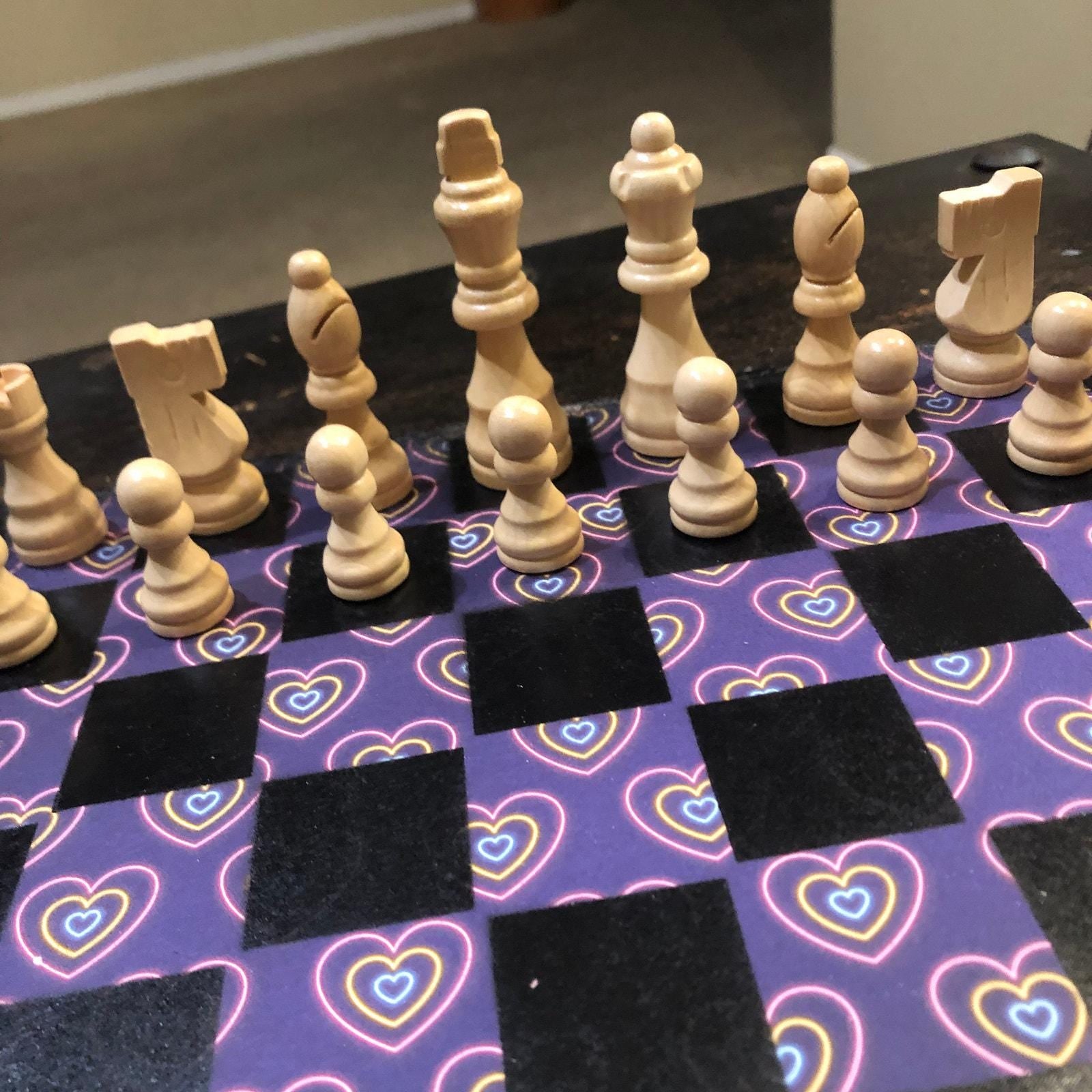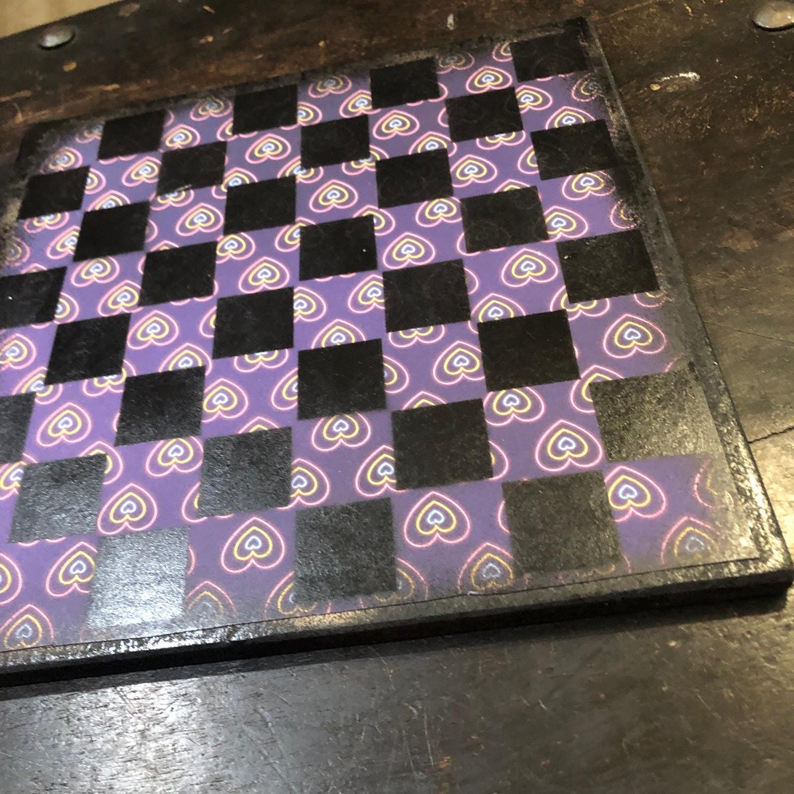 Scrapbook Chess Set - Purple Neon Hearts