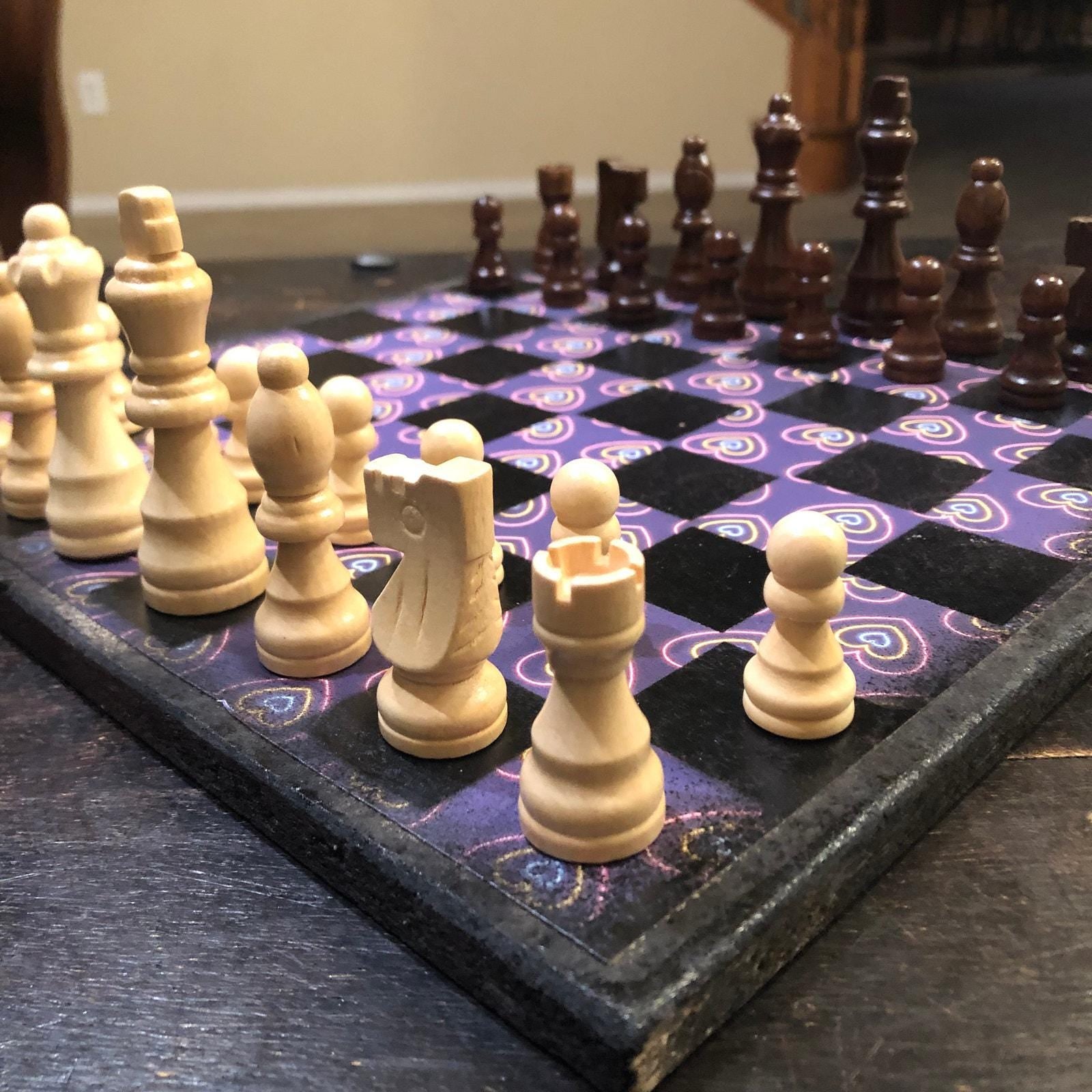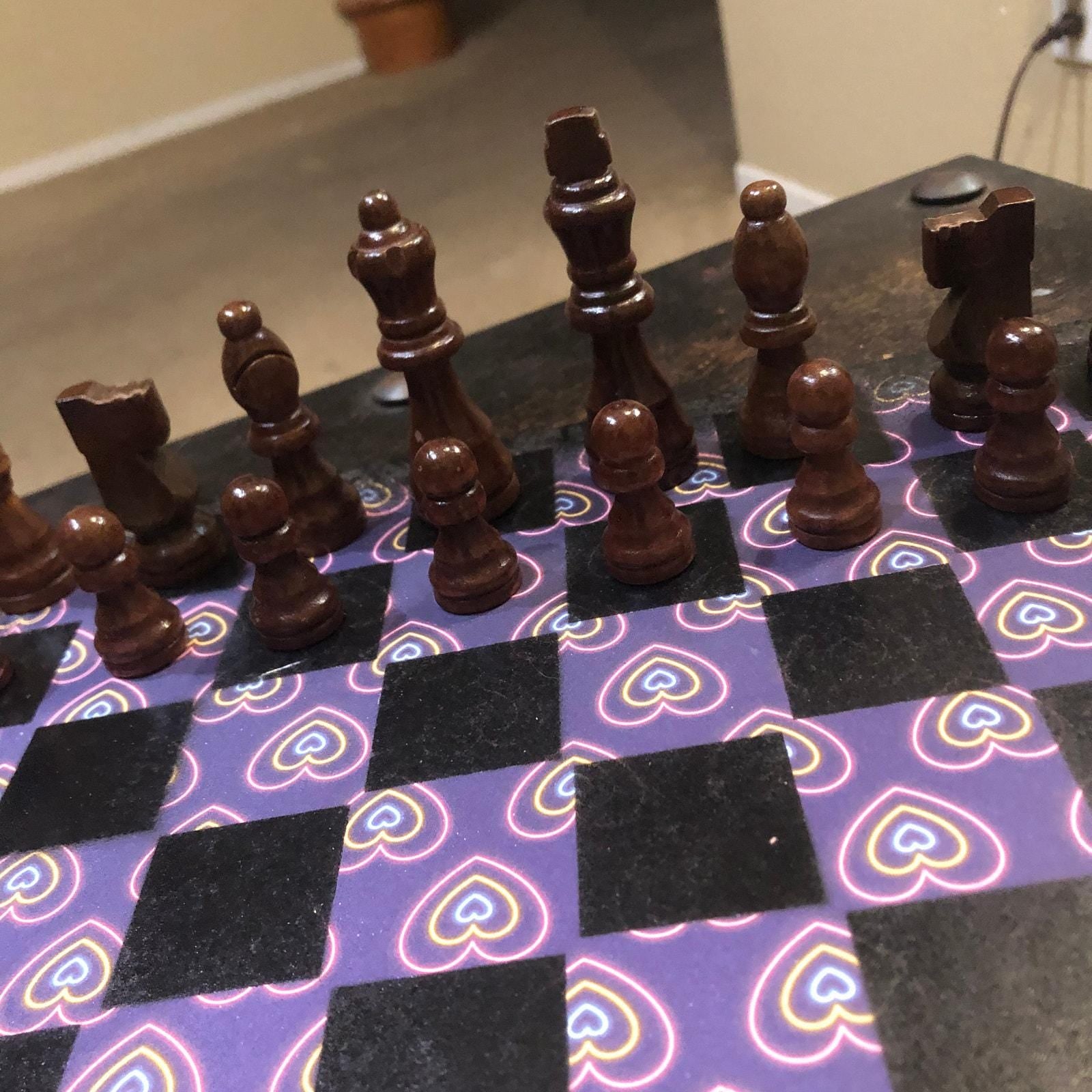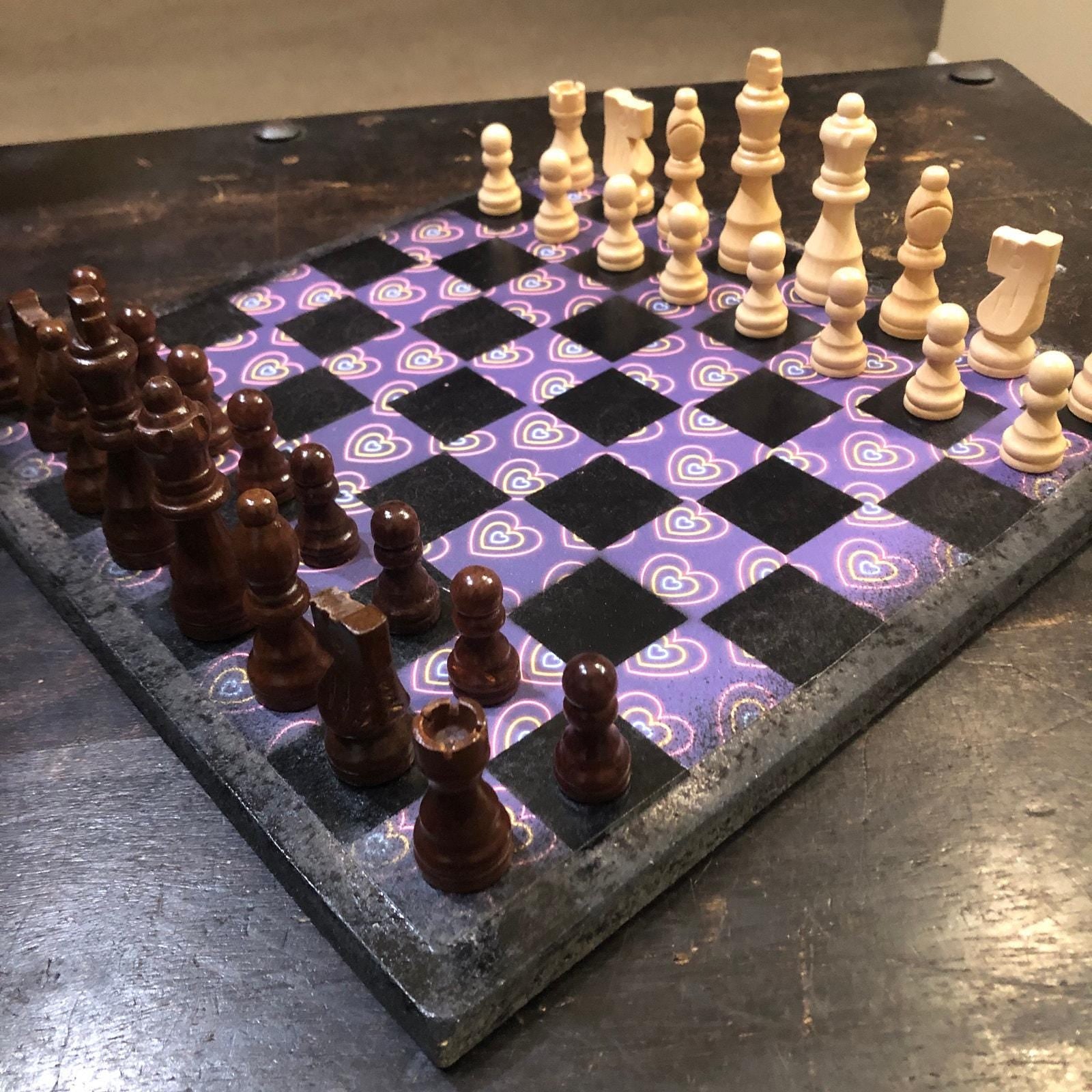 Scrapbook Chess Set - Purple Neon Hearts