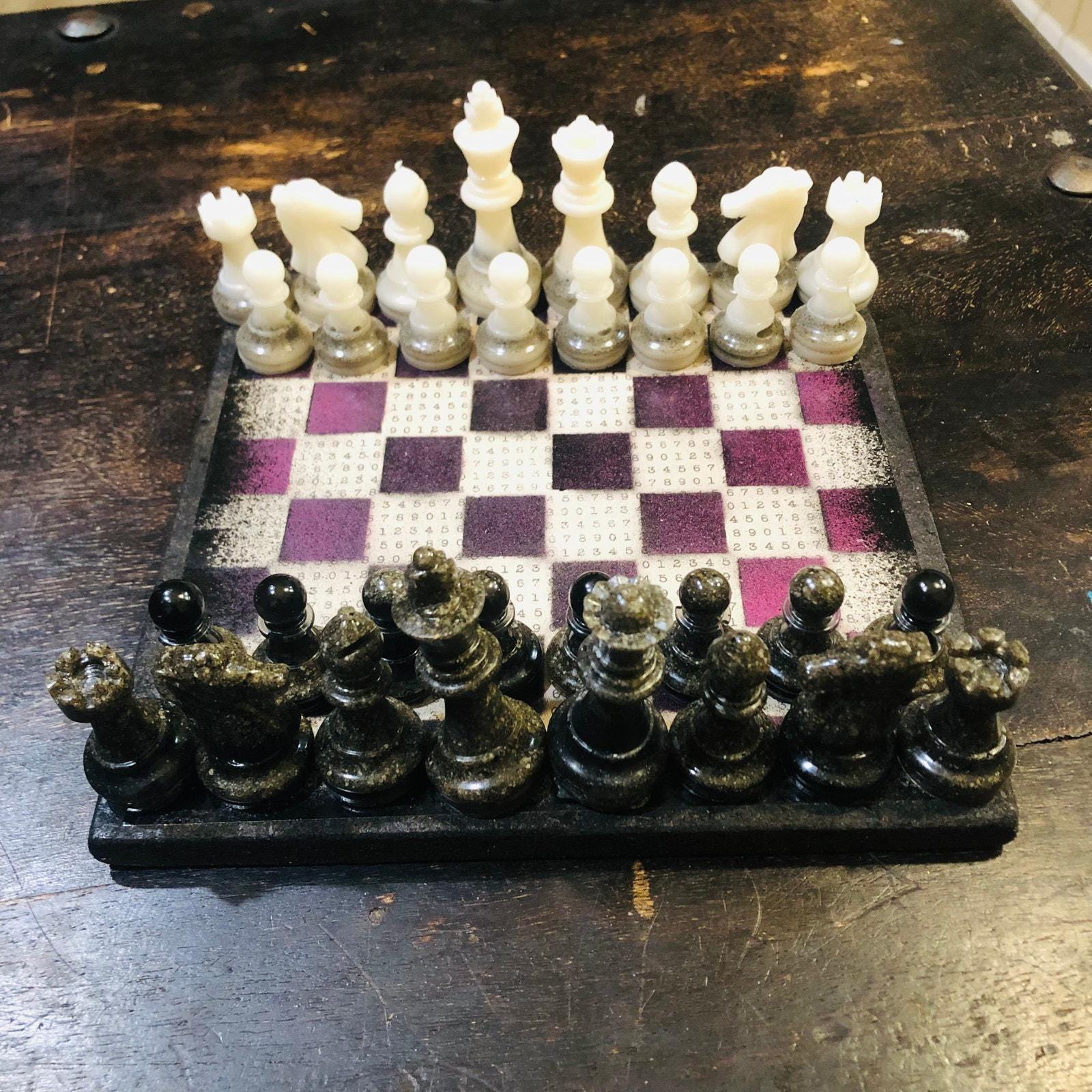 Scrapbook Chess Set - Purple Numbers (Resin Pieces)