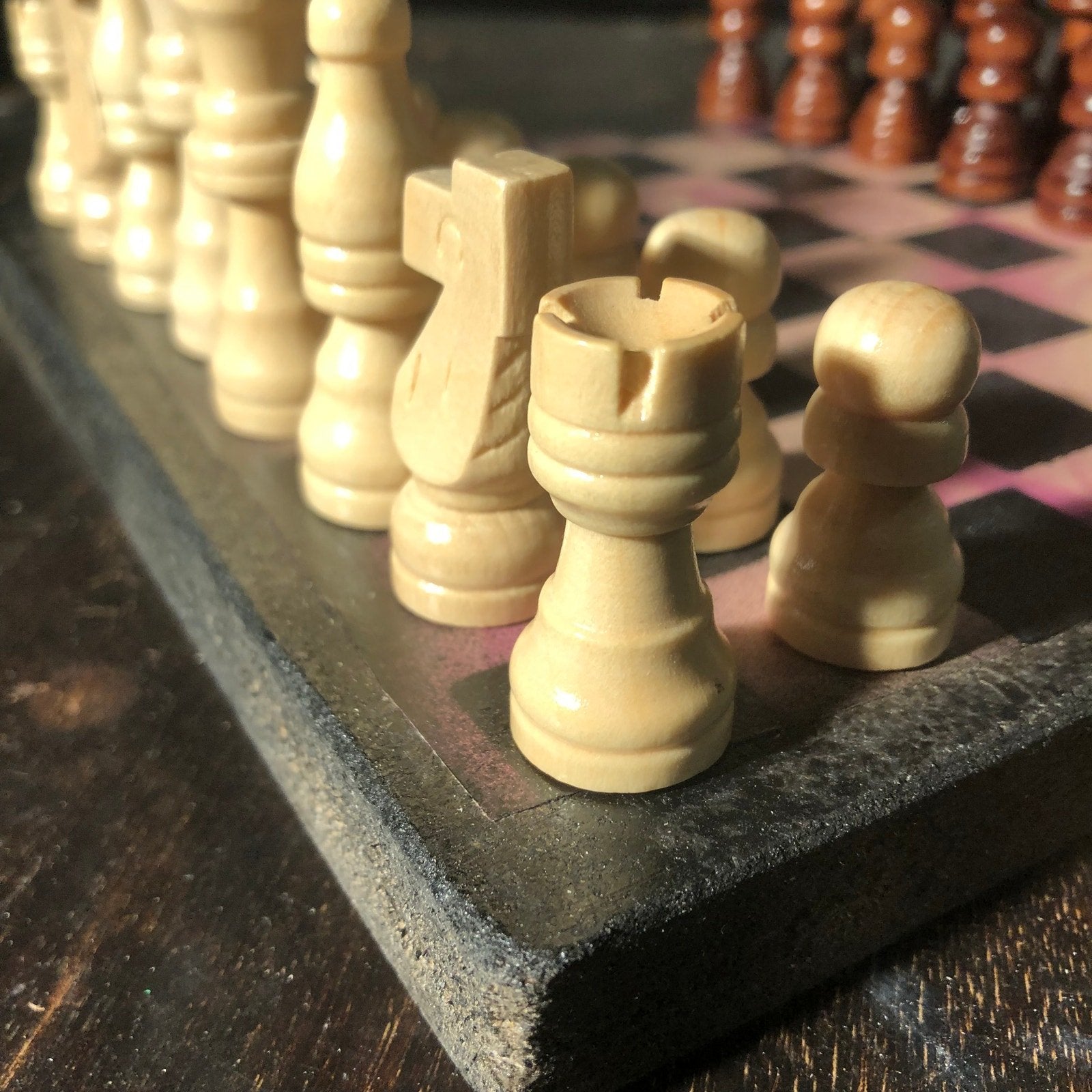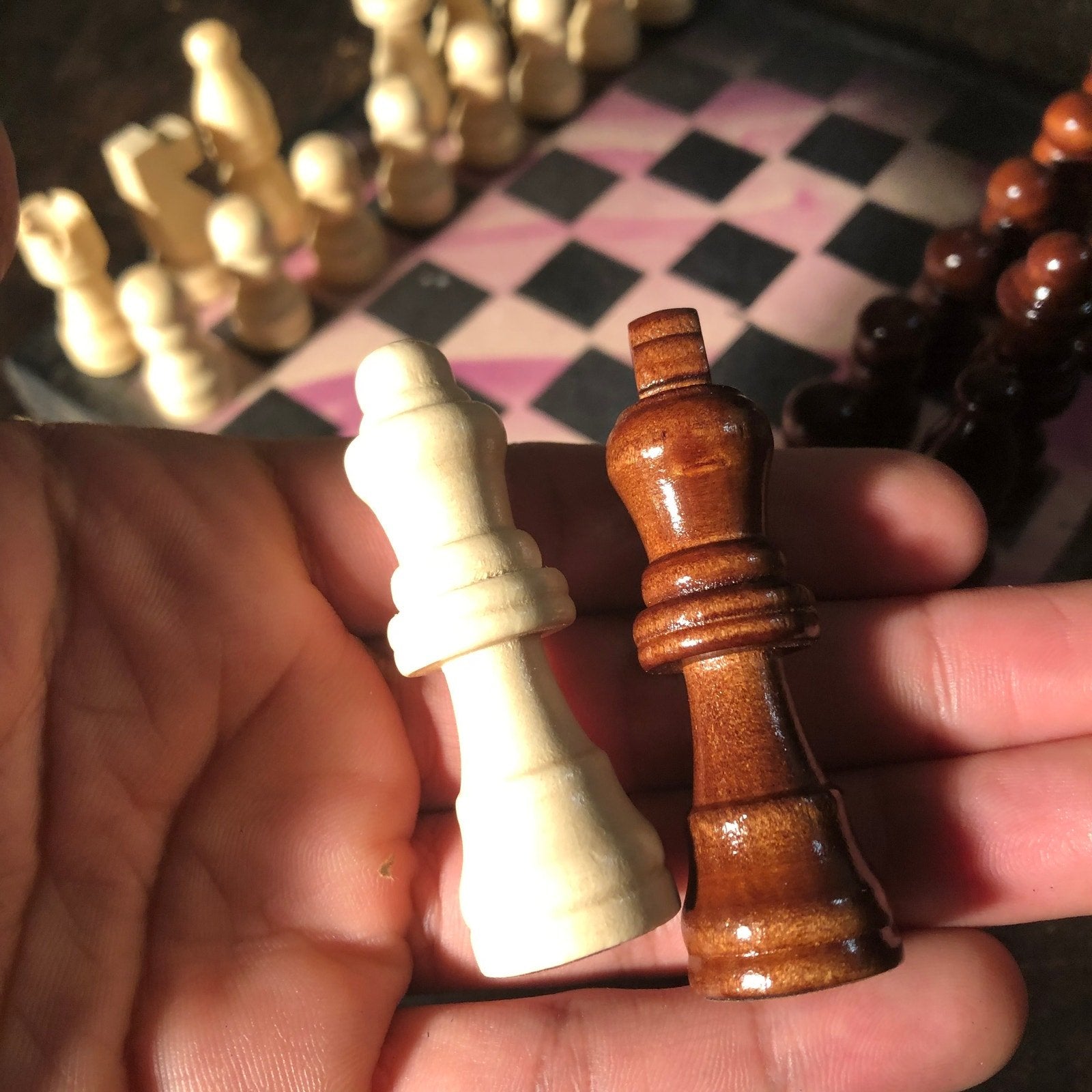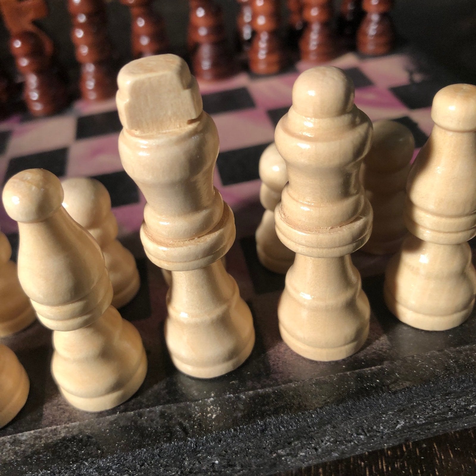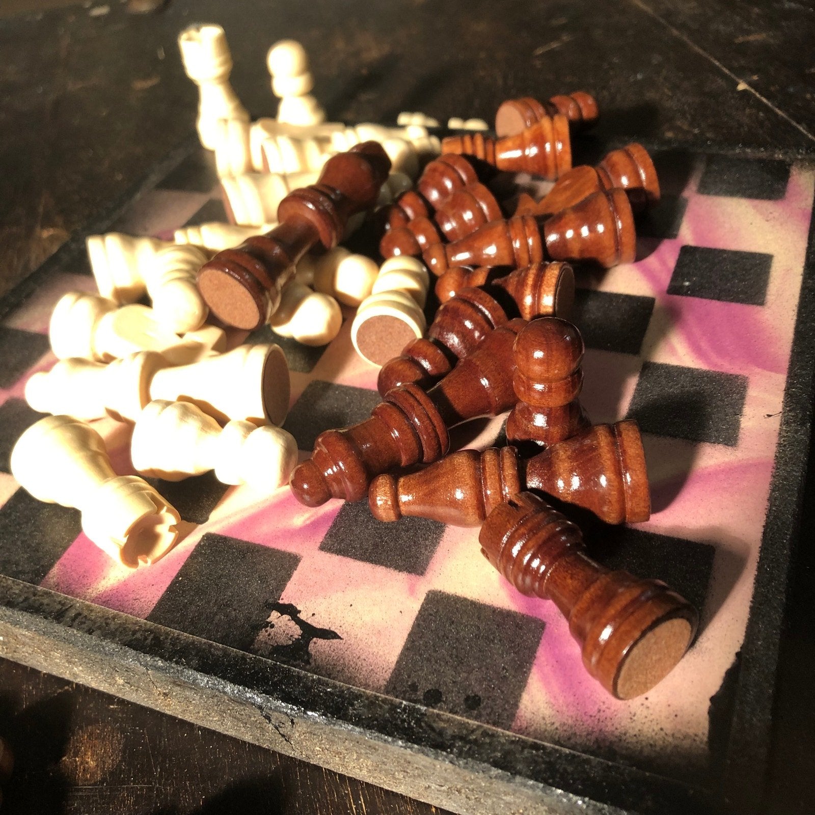 Introducing our exclusive Handcrafted Wooden Chess Set, meticulously designed with precision and care. Measuring 8 inches by 8 inches, this chess set features a beautifully painted particle board layered with a sheet of scrapbook paper board that doubles as a work of art. Each set is a unique, one-of-a-kind creation, crafted by hand to ensure that no two sets are alike. Elevate your gaming experience with this exceptional chess set that combines vibrant design with the touch of artisan craftsmanship. This chess board comes with chess pieces and is handcrafted as a one of one
