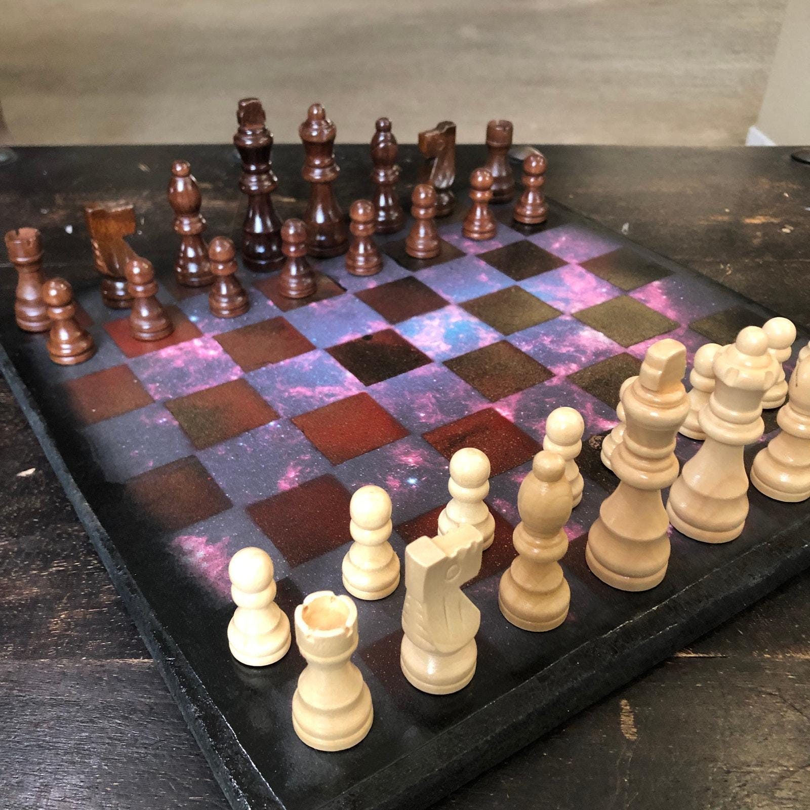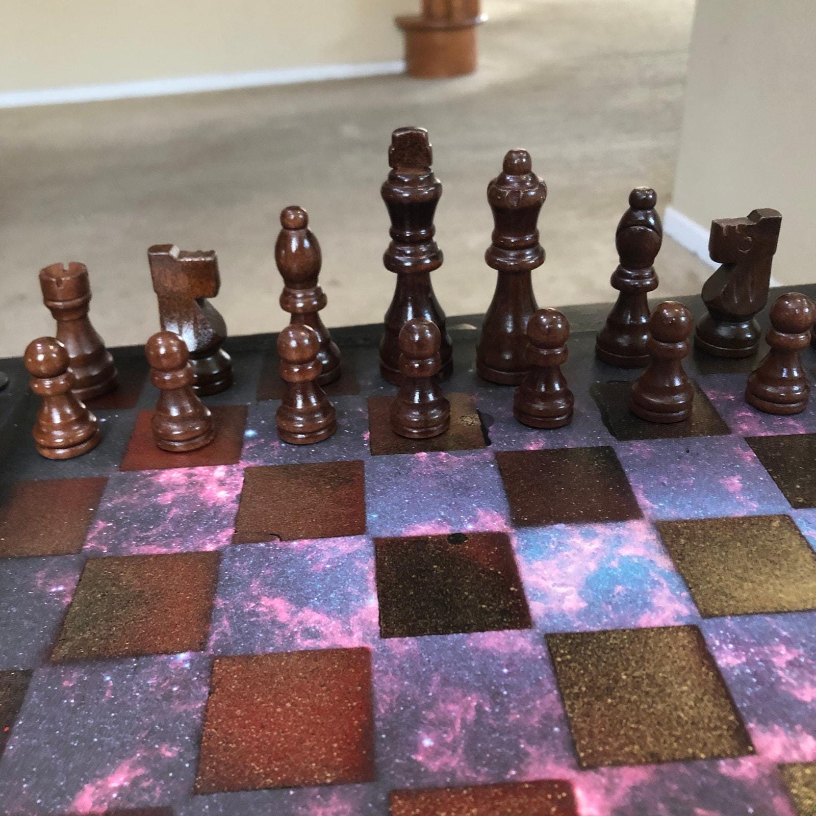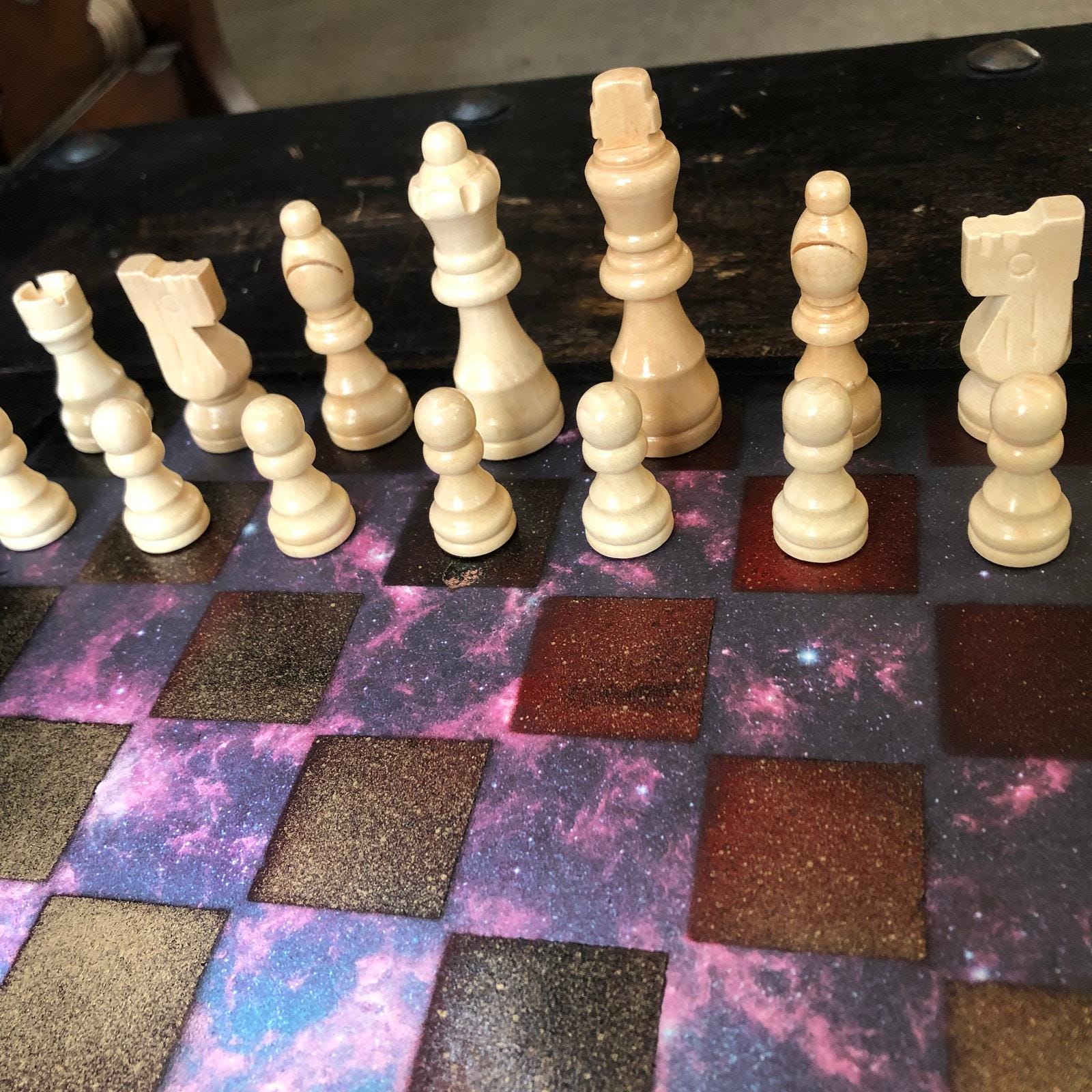 Introducing our exclusive Handcrafted Wooden Chess Set, meticulously designed with precision and care. Measuring 12 inches by 12 inches, this chess set features a beautifully painted particle board layered with a sheet of scrapbook paper board that doubles as a work of art. Each set is a unique, one-of-a-kind creation, crafted by hand to ensure that no two sets are alike. Elevate your gaming experience with this exceptional chess set that combines vibrant design with the touch of artisan craftsmanship. This chess board comes with chess pieces and is handcrafted as a one of one