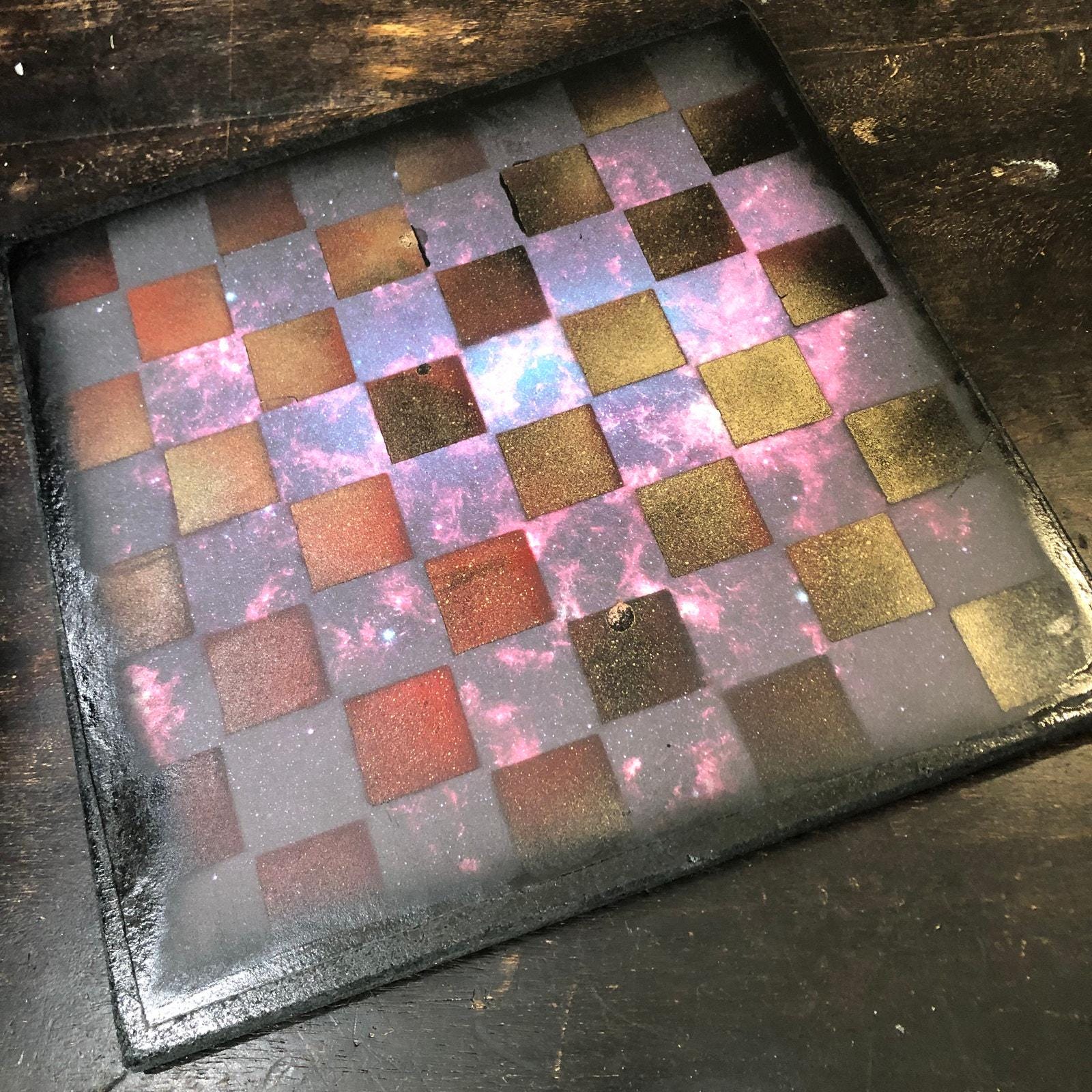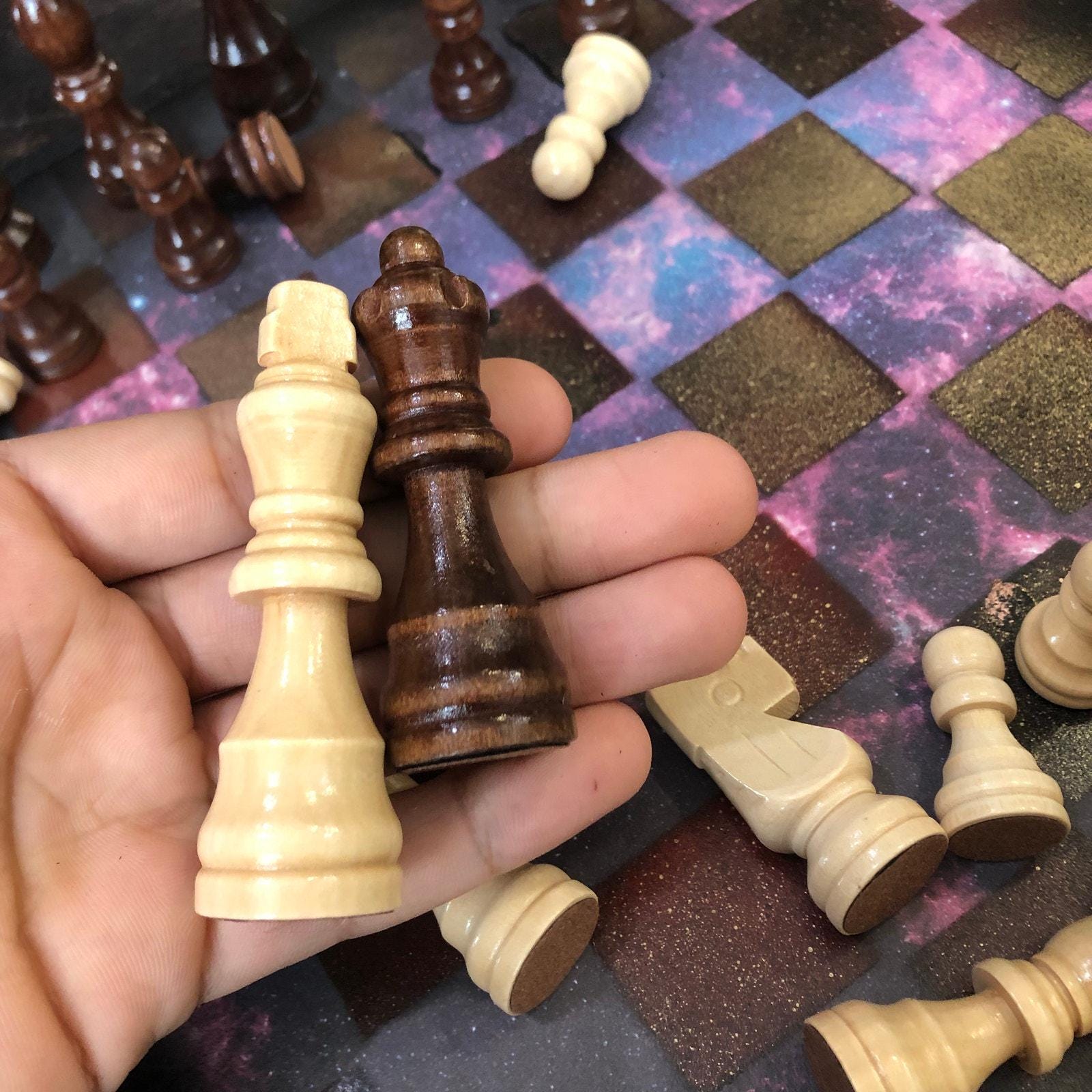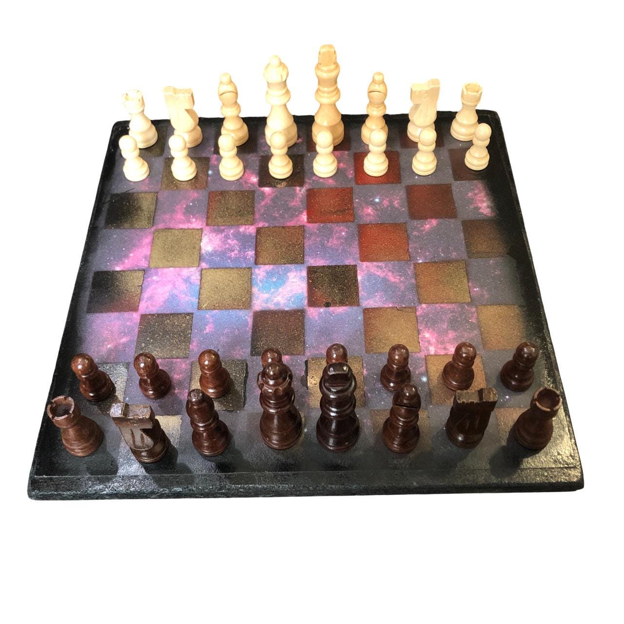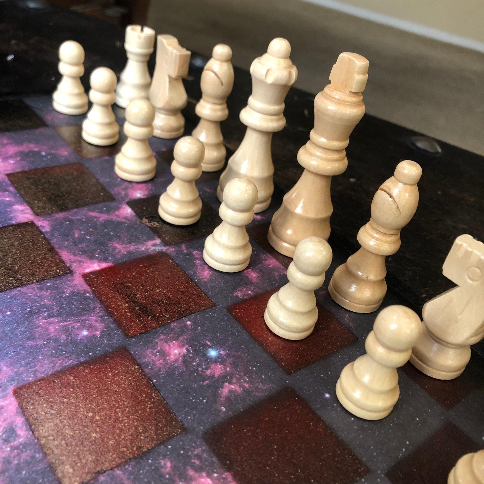 Introducing our exclusive Handcrafted Wooden Chess Set, meticulously designed with precision and care. Measuring 12 inches by 12 inches, this chess set features a beautifully painted particle board layered with a sheet of scrapbook paper board that doubles as a work of art. Each set is a unique, one-of-a-kind creation, crafted by hand to ensure that no two sets are alike. Elevate your gaming experience with this exceptional chess set that combines vibrant design with the touch of artisan craftsmanship. This chess board comes with chess pieces and is handcrafted as a one of one