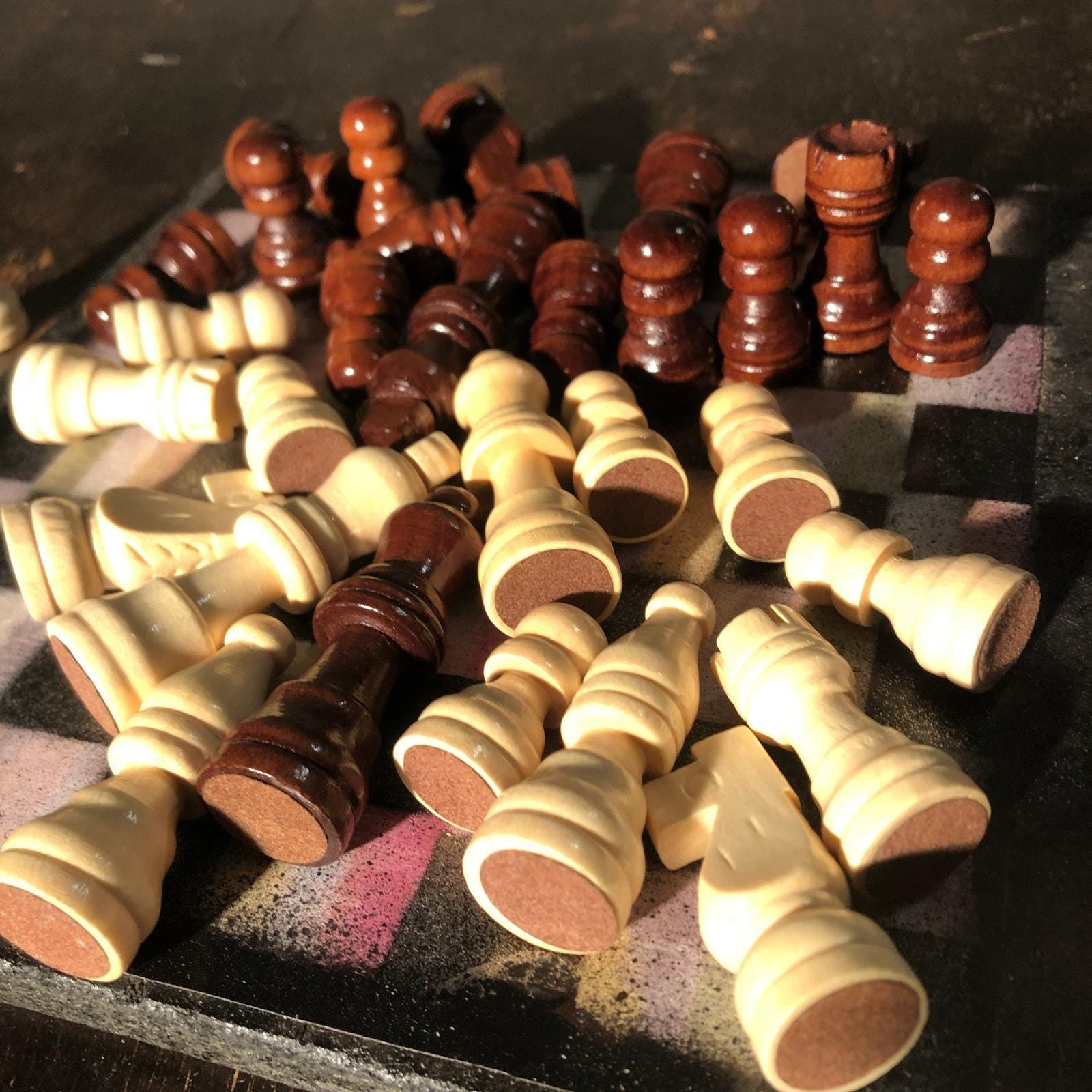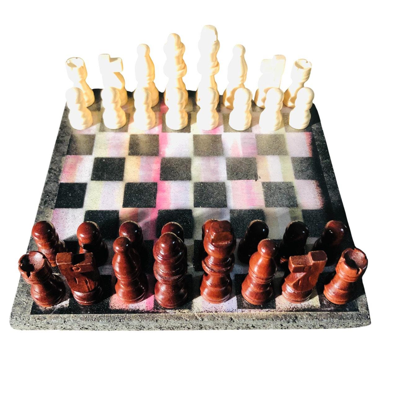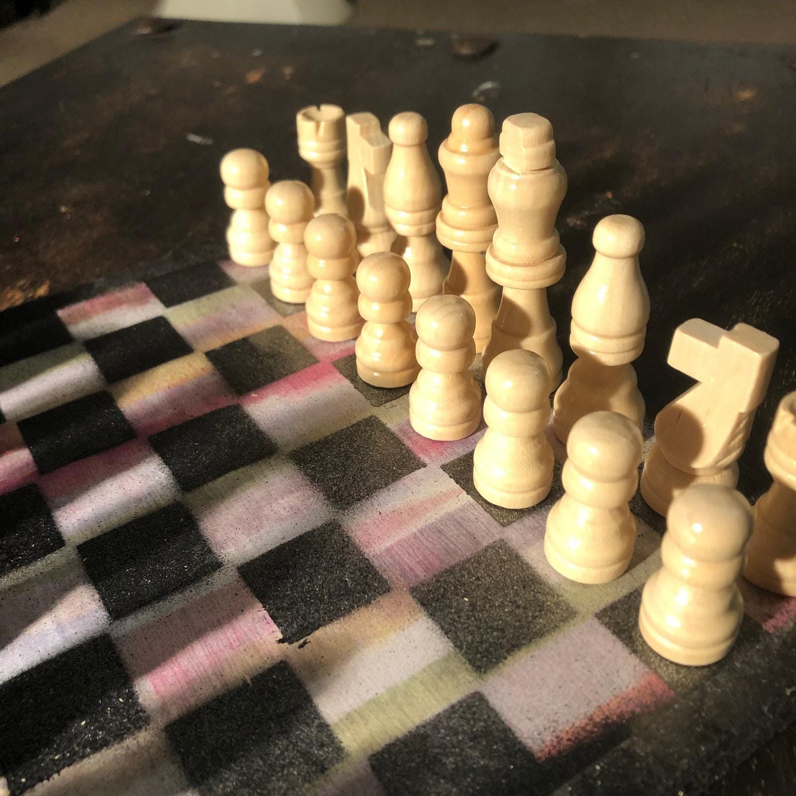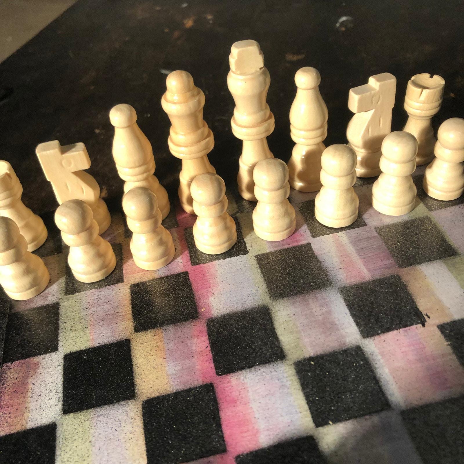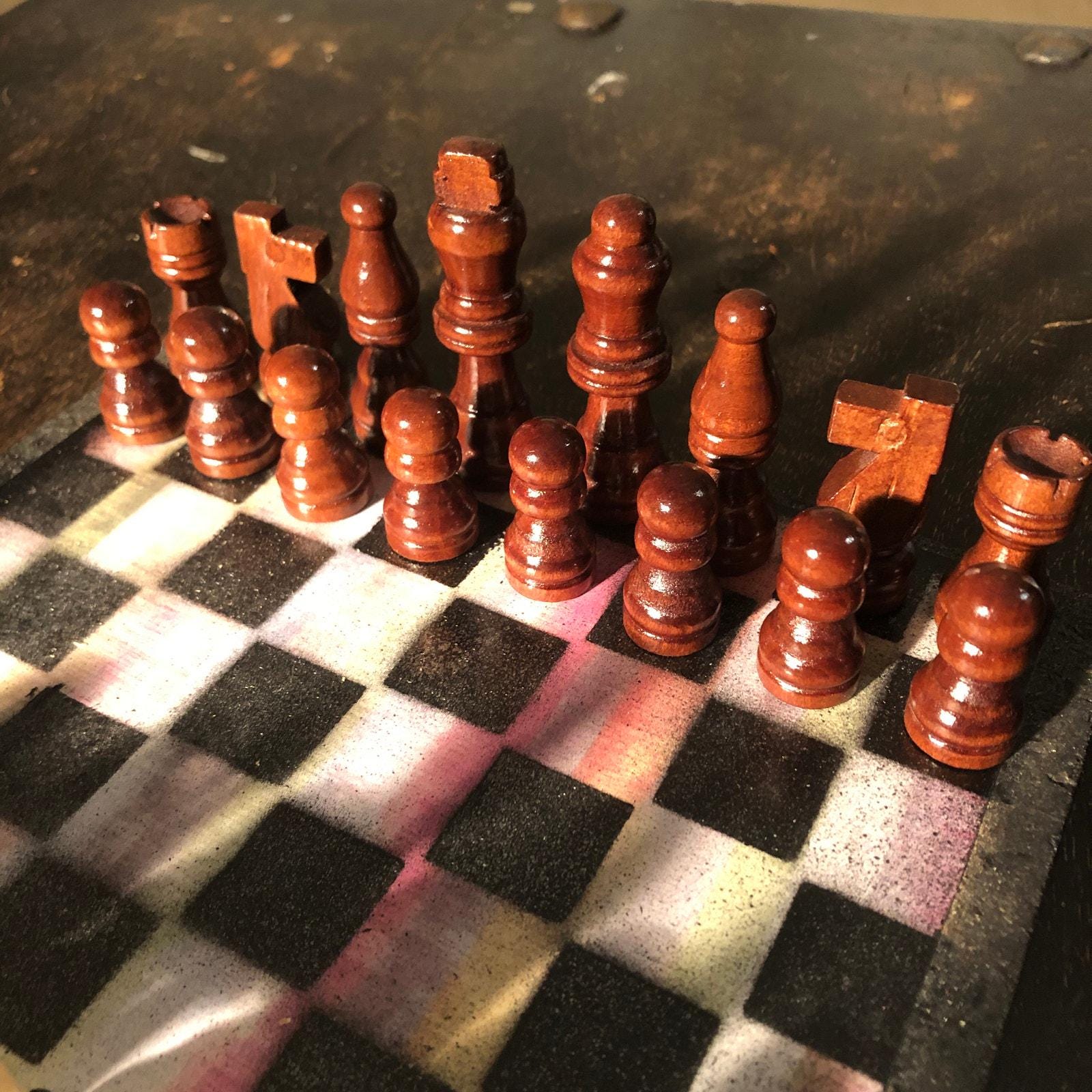 Introducing our exclusive Handcrafted Wooden Chess Set, meticulously designed with precision and care. Measuring 8 inches by 8 inches, this chess set features a beautifully painted particle board layered with a sheet of scrapbook paper board that doubles as a work of art. Each set is a unique, one-of-a-kind creation, crafted by hand to ensure that no two sets are alike. Elevate your gaming experience with this exceptional chess set that combines vibrant design with the touch of artisan craftsmanship. This chess board comes with chess pieces and is handcrafted as a one of one