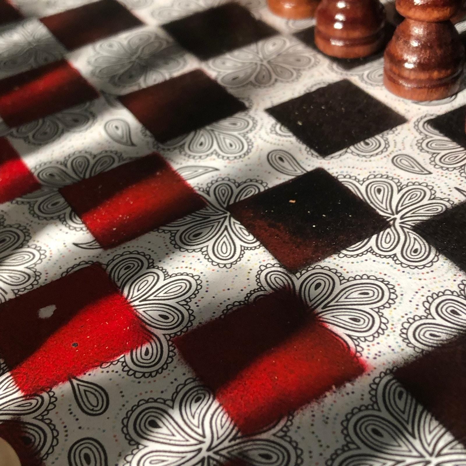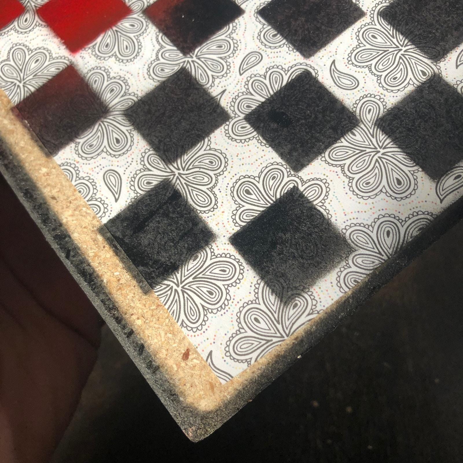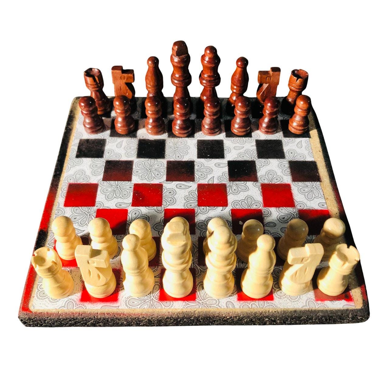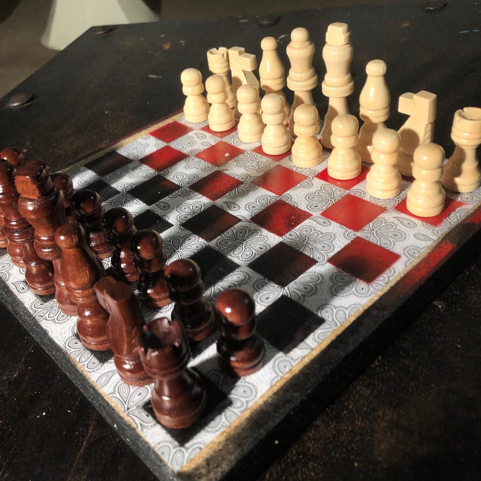 Introducing our exclusive Handcrafted Wooden Chess Set, meticulously designed with precision and care. Measuring 8 inches by 8 inches, this chess set features a beautifully painted particle board layered with a sheet of scrapbook paper board that doubles as a work of art. Each set is a unique, one-of-a-kind creation, crafted by hand to ensure that no two sets are alike. Elevate your gaming experience with this exceptional chess set that combines vibrant design with the touch of artisan craftsmanship. This chess board comes with chess pieces and is handcrafted as a one of one