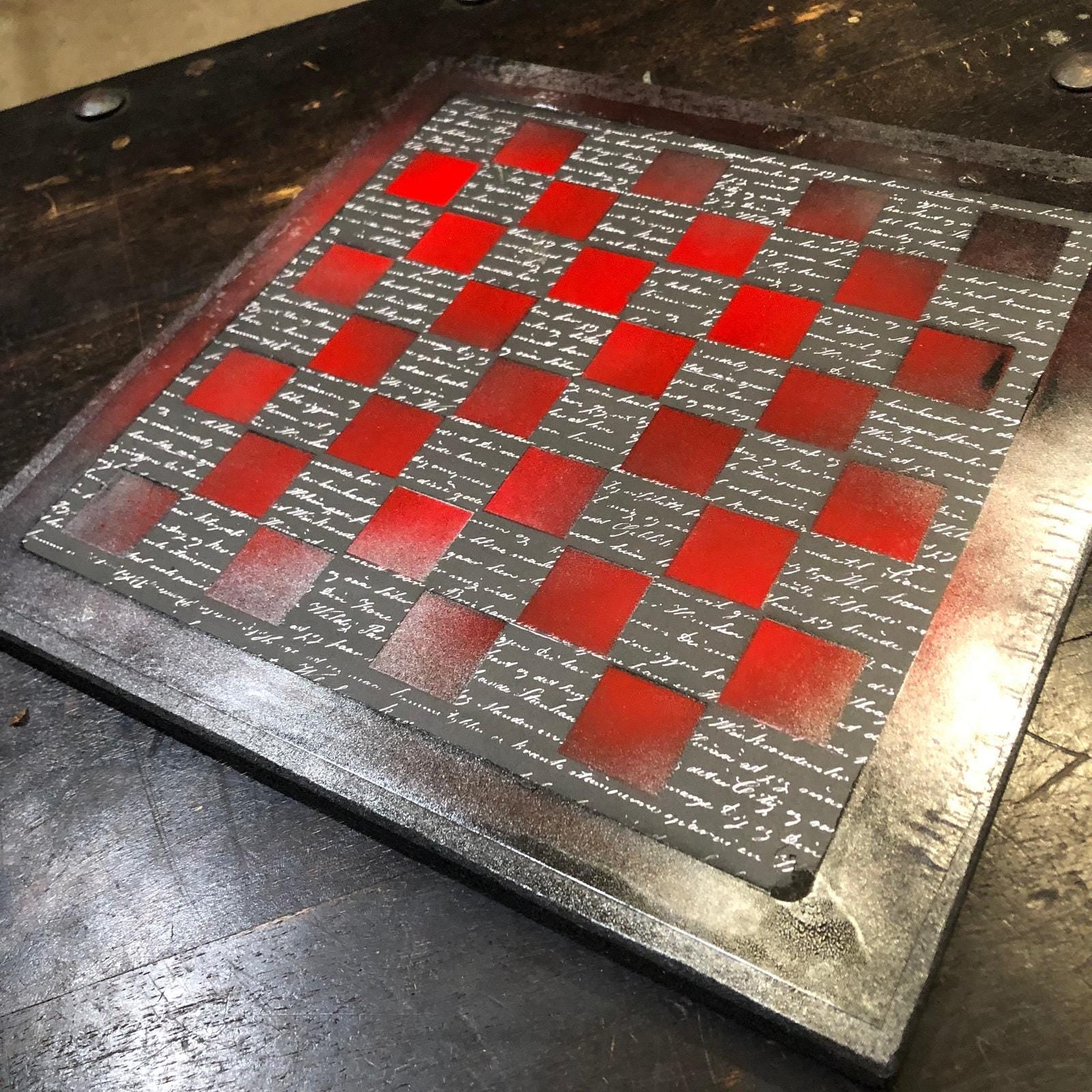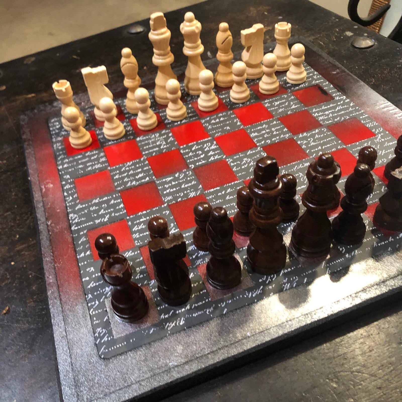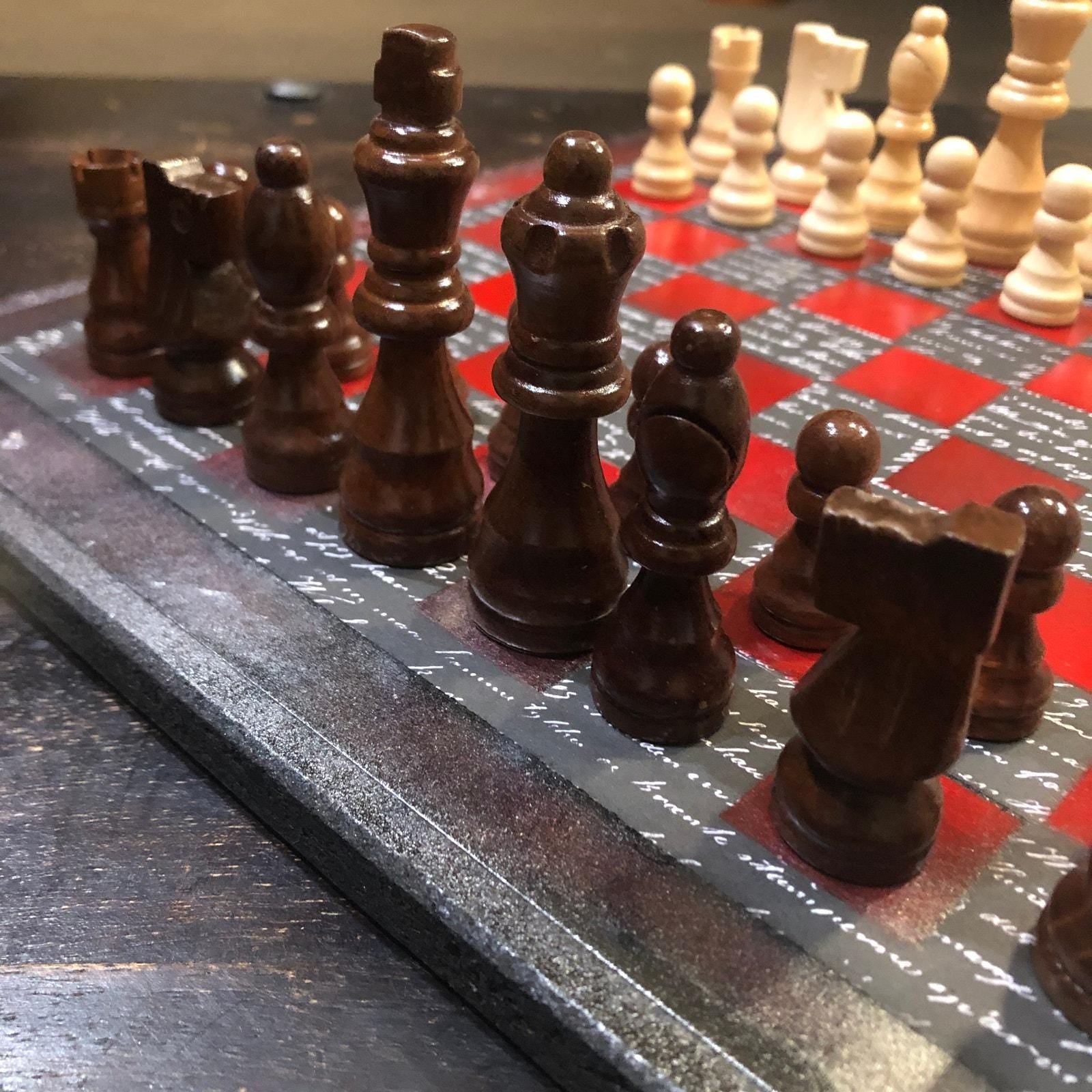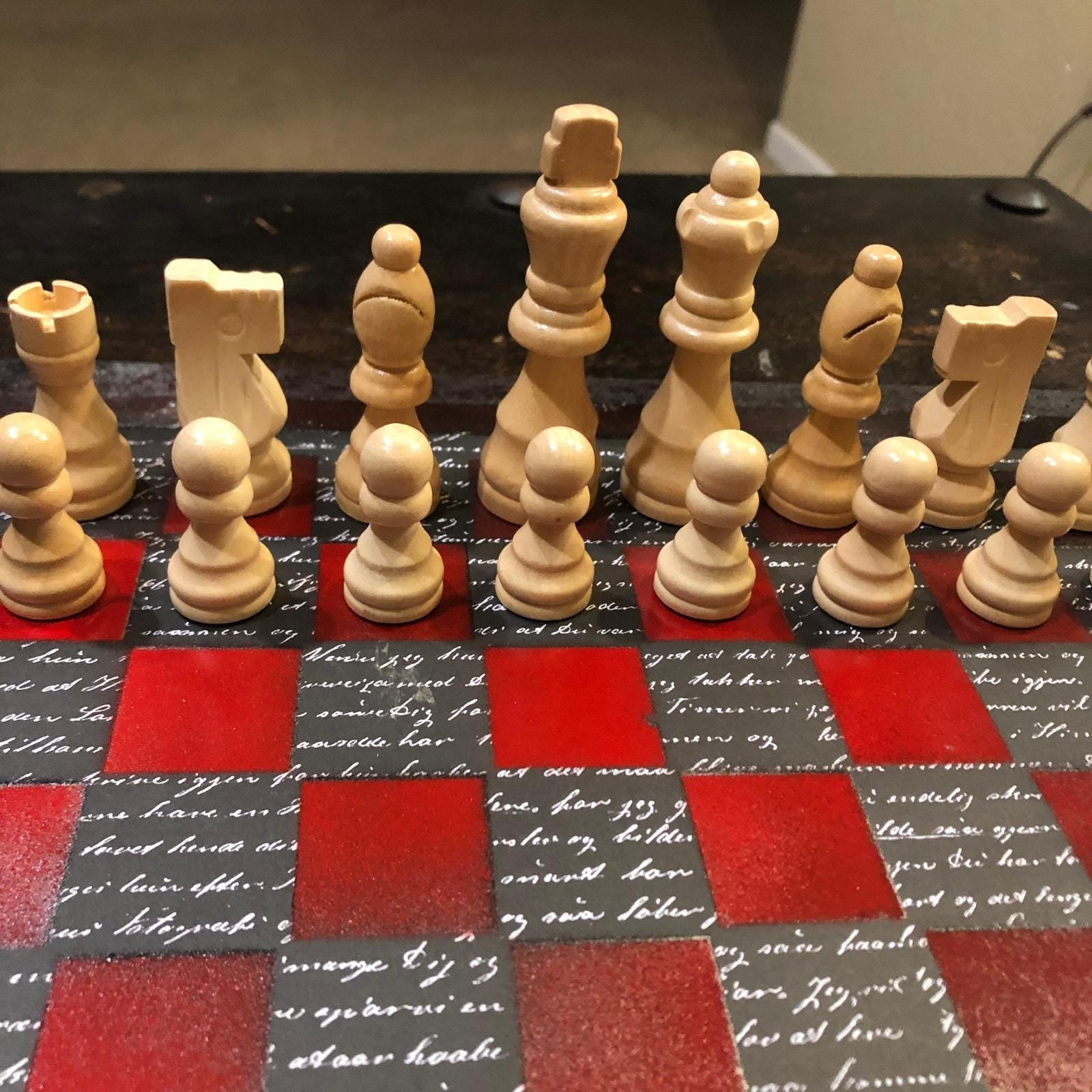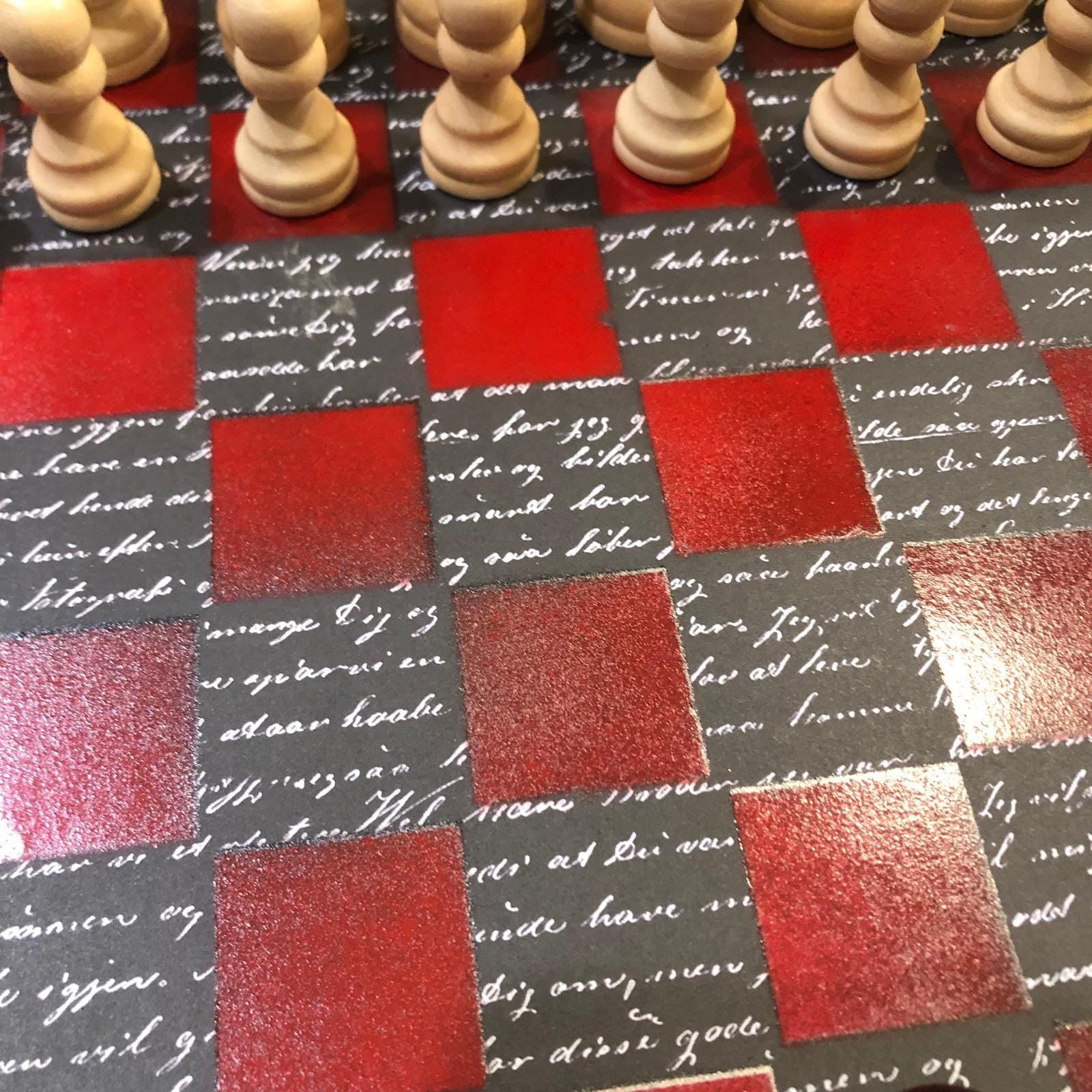 Scrapbook Chess Set - Red & Black Classic Writing Pattern