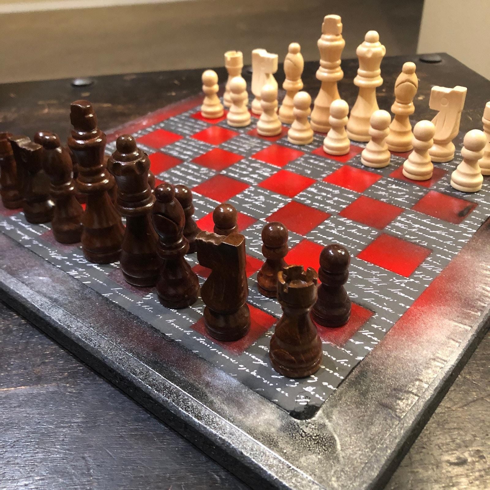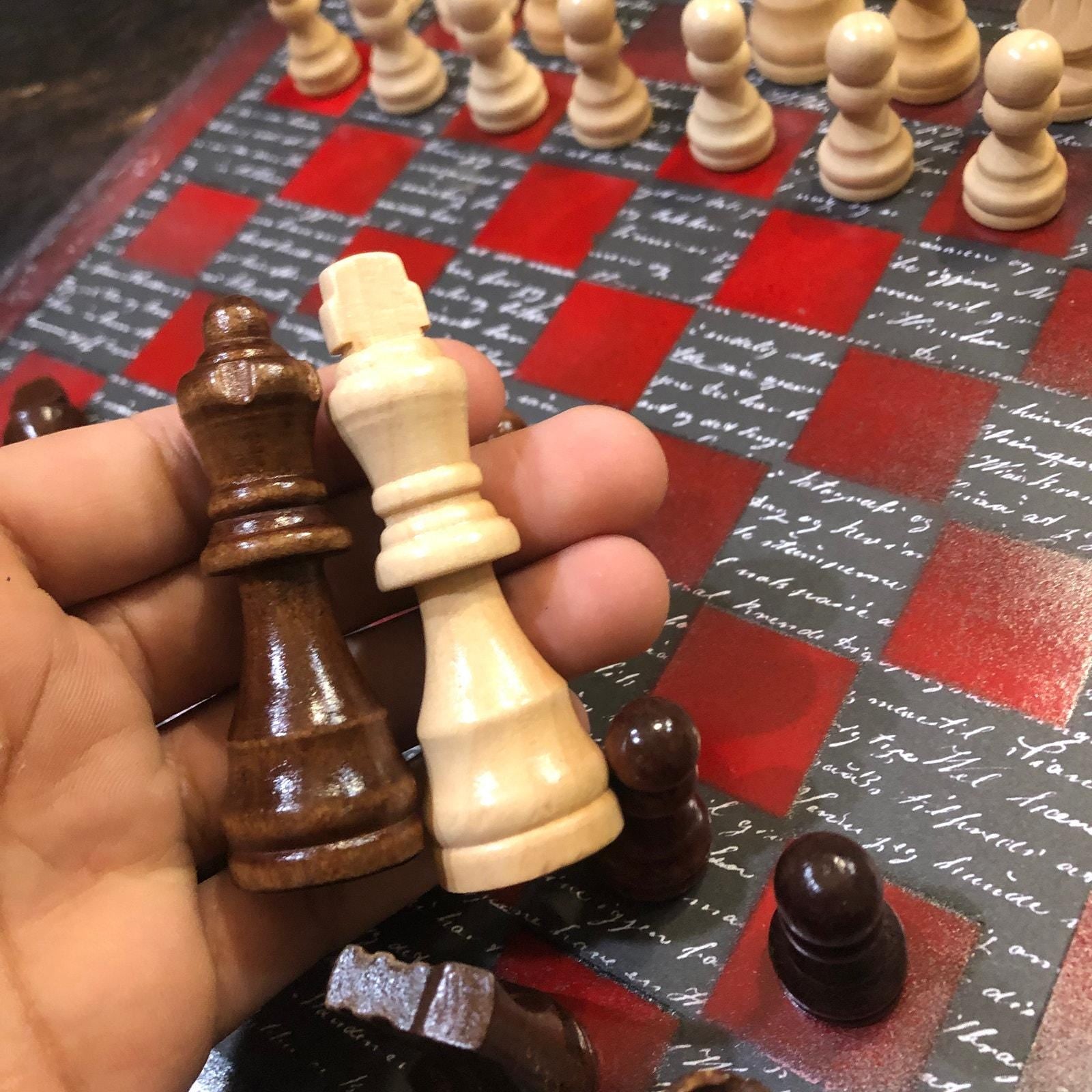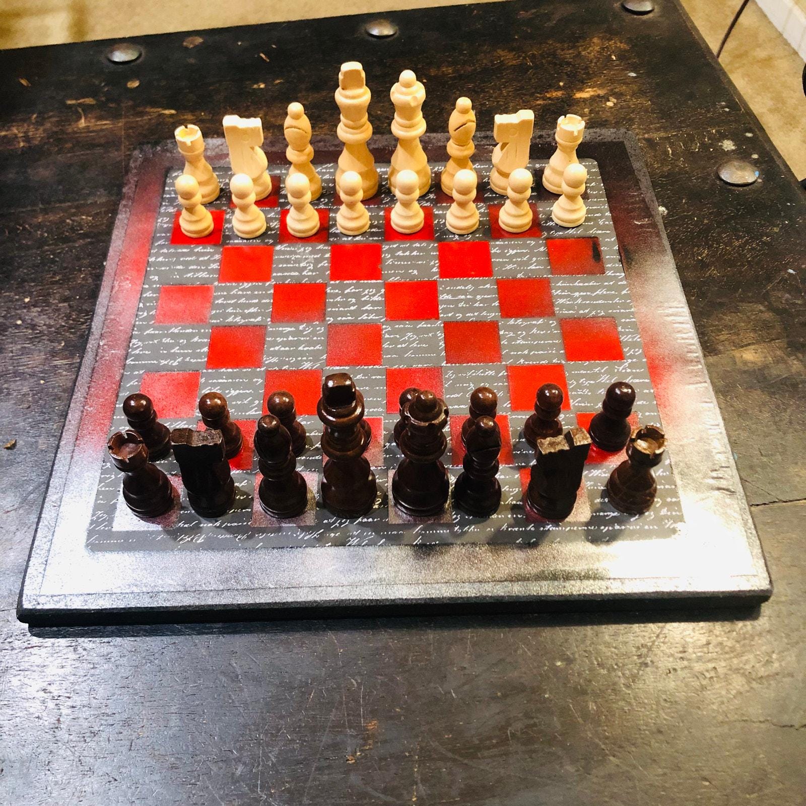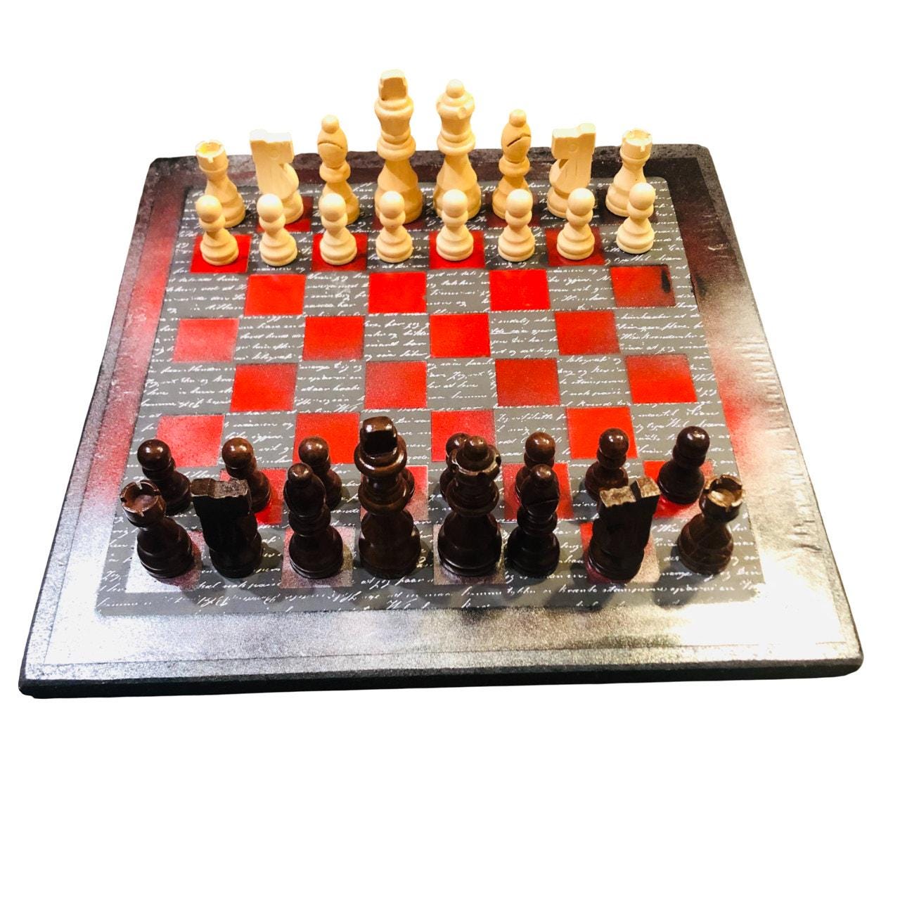 Introducing our exclusive Handcrafted Wooden Chess Set, meticulously designed with precision and care. Measuring 12 inches by 12 inches, this chess set features a beautifully painted particle board layered with a sheet of scrapbook paper board that doubles as a work of art. Each set is a unique, one-of-a-kind creation, crafted by hand to ensure that no two sets are alike. Elevate your gaming experience with this exceptional chess set that combines vibrant design with the touch of artisan craftsmanship. This chess board comes with chess pieces and is handcrafted as a one of one