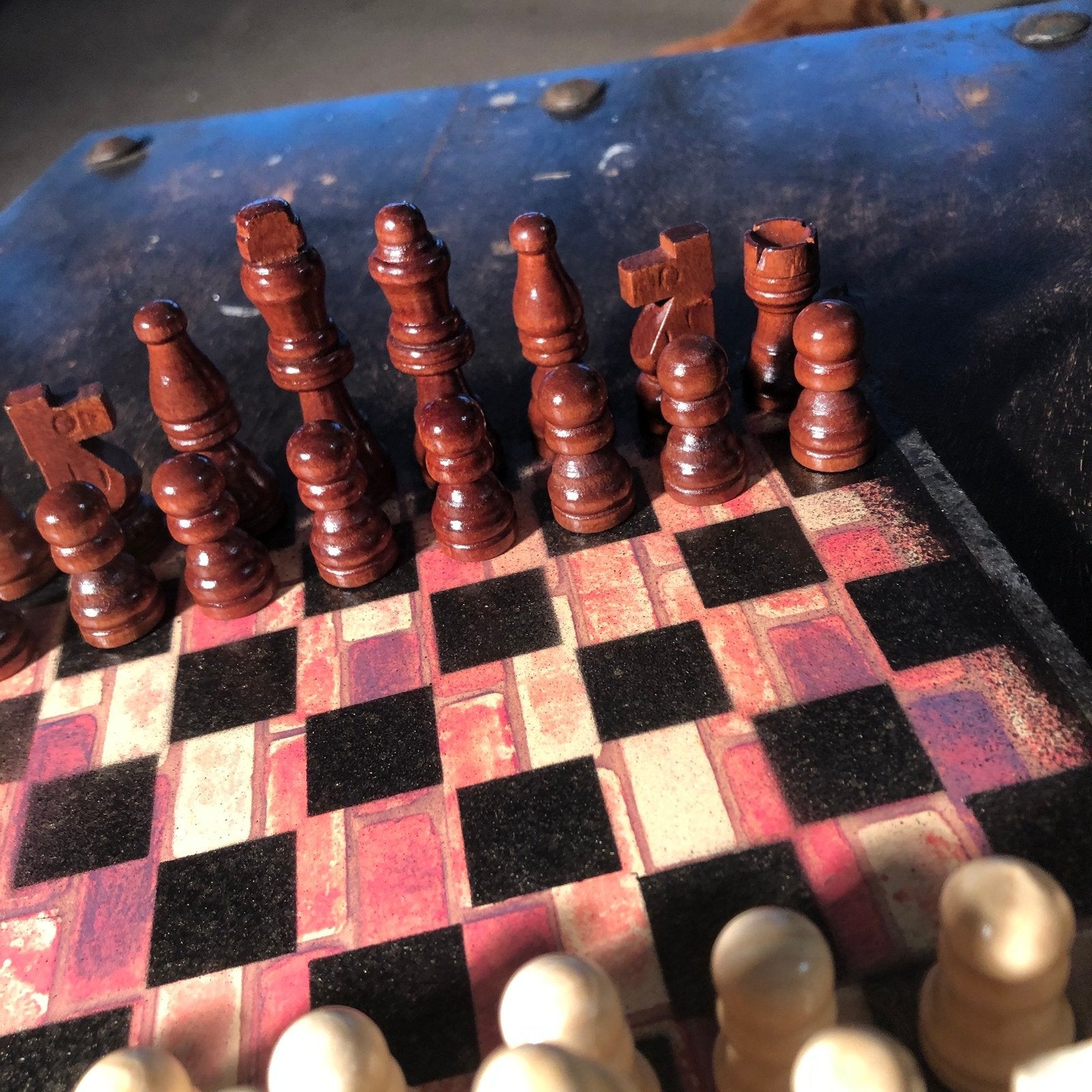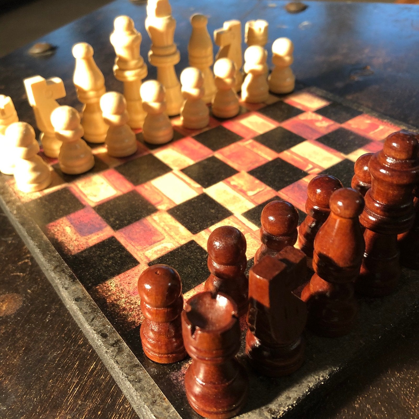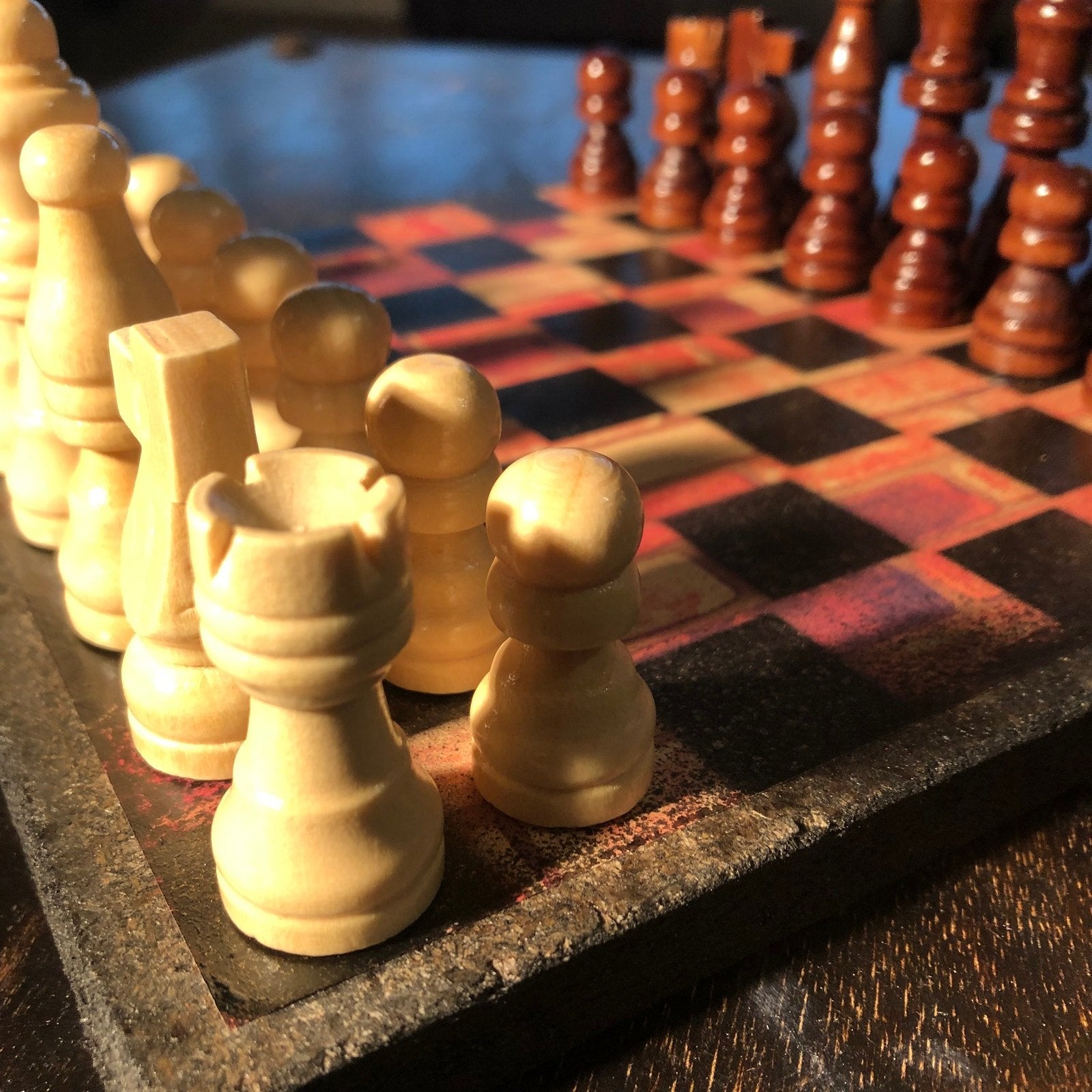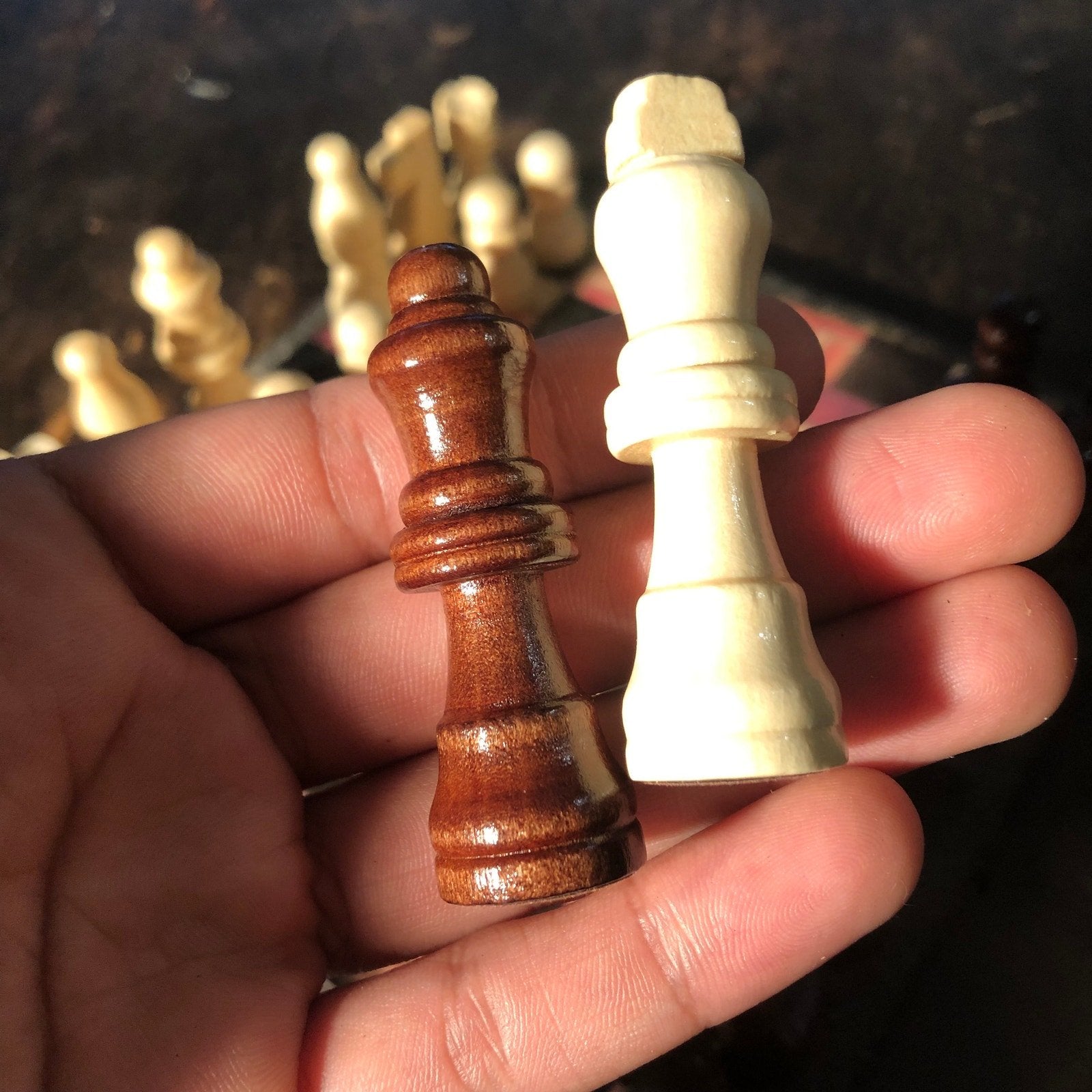 Introducing our exclusive Handcrafted Wooden Chess Set, meticulously designed with precision and care. Measuring 8 inches by 8 inches, this chess set features a beautifully painted particle board layered with a sheet of scrapbook paper board that doubles as a work of art. Each set is a unique, one-of-a-kind creation, crafted by hand to ensure that no two sets are alike. Elevate your gaming experience with this exceptional chess set that combines vibrant design with the touch of artisan craftsmanship. This chess board comes with chess pieces and is handcrafted as a one of one