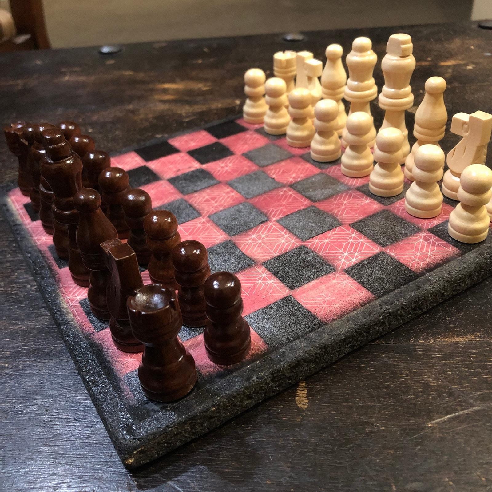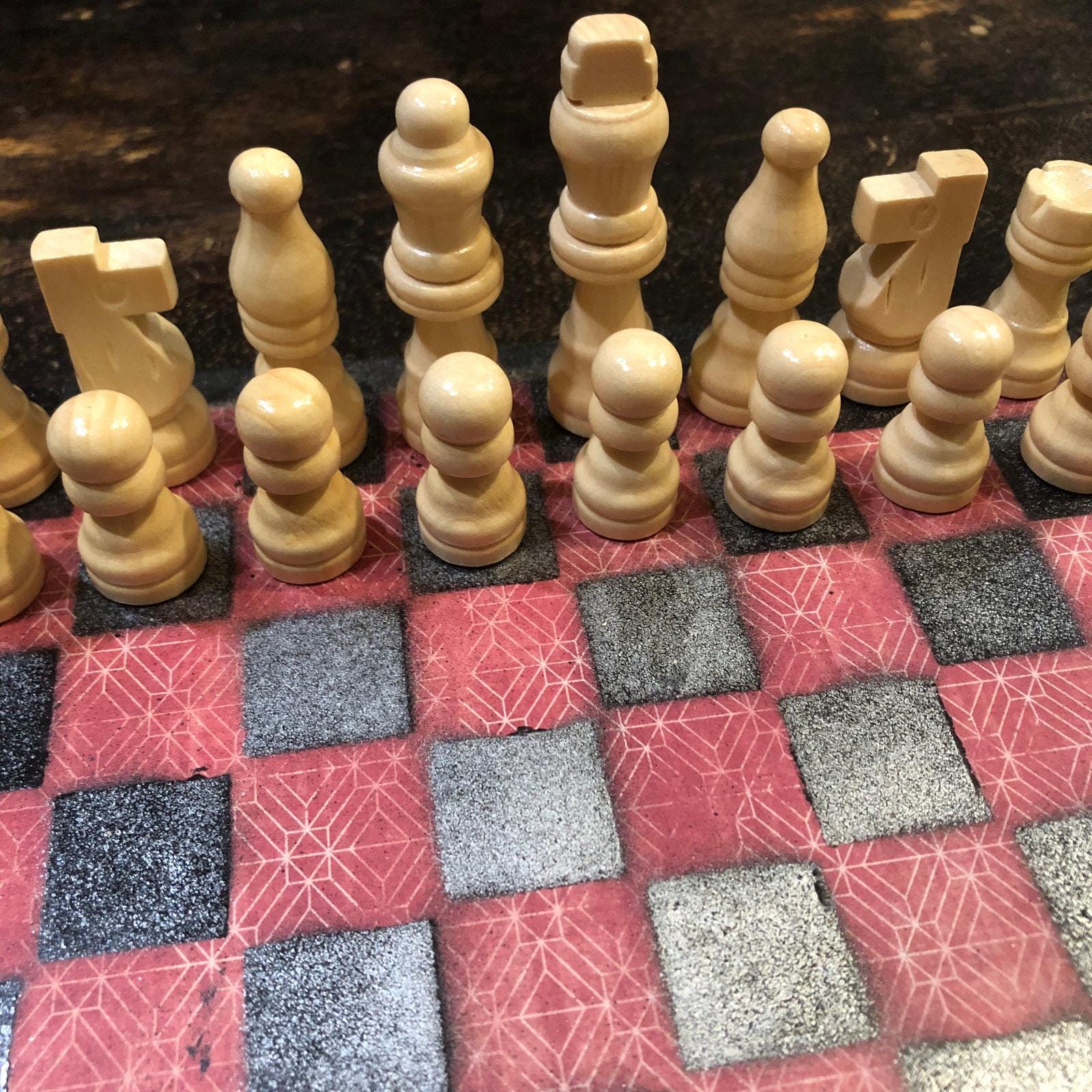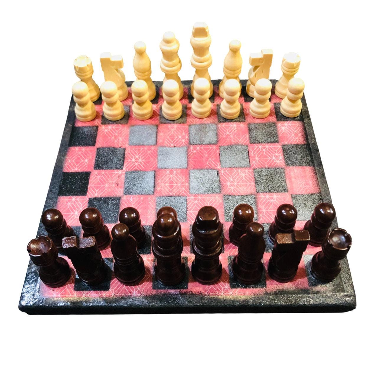 Introducing our exclusive Handcrafted Wooden Chess Set, meticulously designed with precision and care. Measuring 8 inches by 8 inches, this chess set features a beautifully painted particle board layered with a sheet of scrapbook paper board that doubles as a work of art. Each set is a unique, one-of-a-kind creation, crafted by hand to ensure that no two sets are alike. Elevate your gaming experience with this exceptional chess set that combines vibrant design with the touch of artisan craftsmanship. This chess board comes with chess pieces and is handcrafted as a one of one