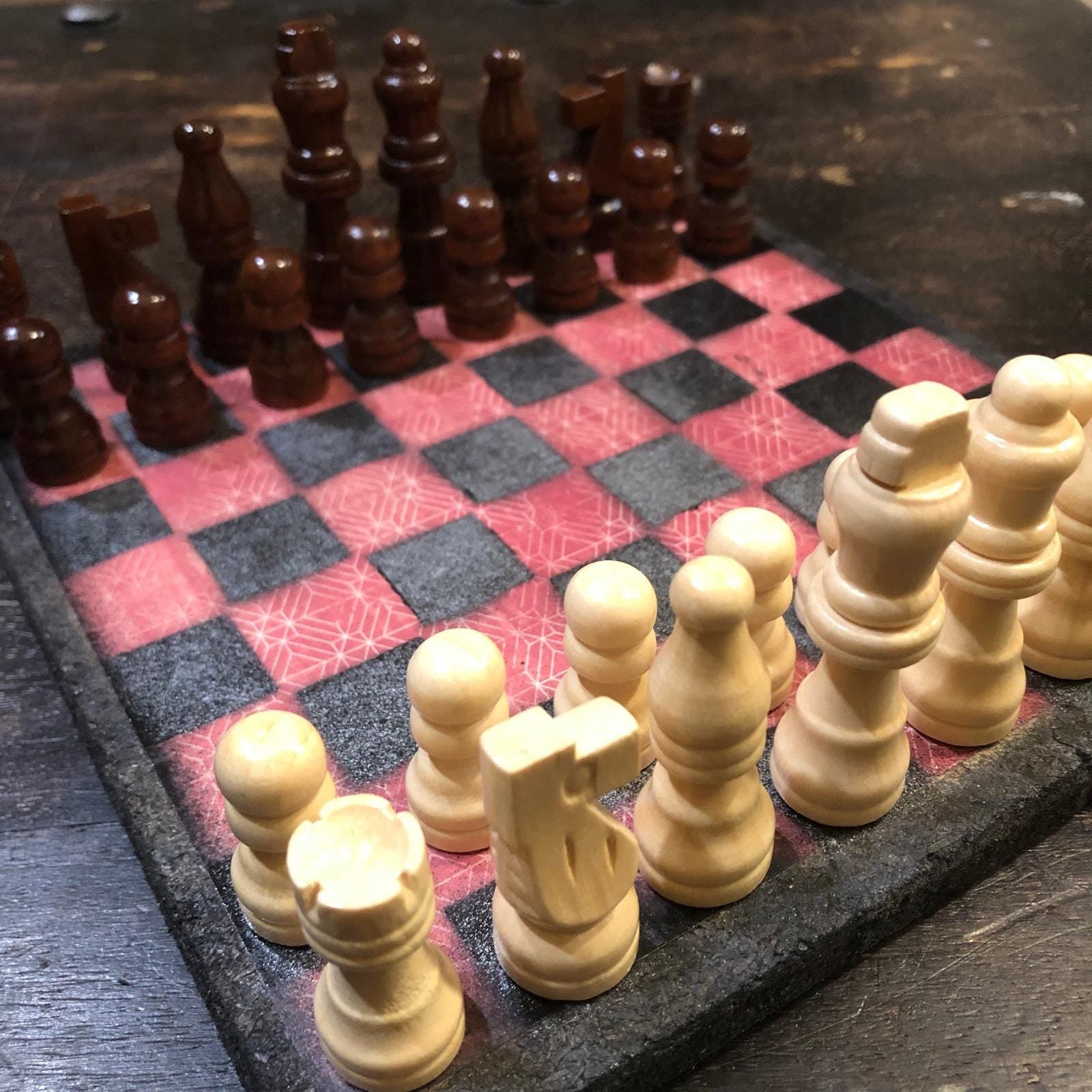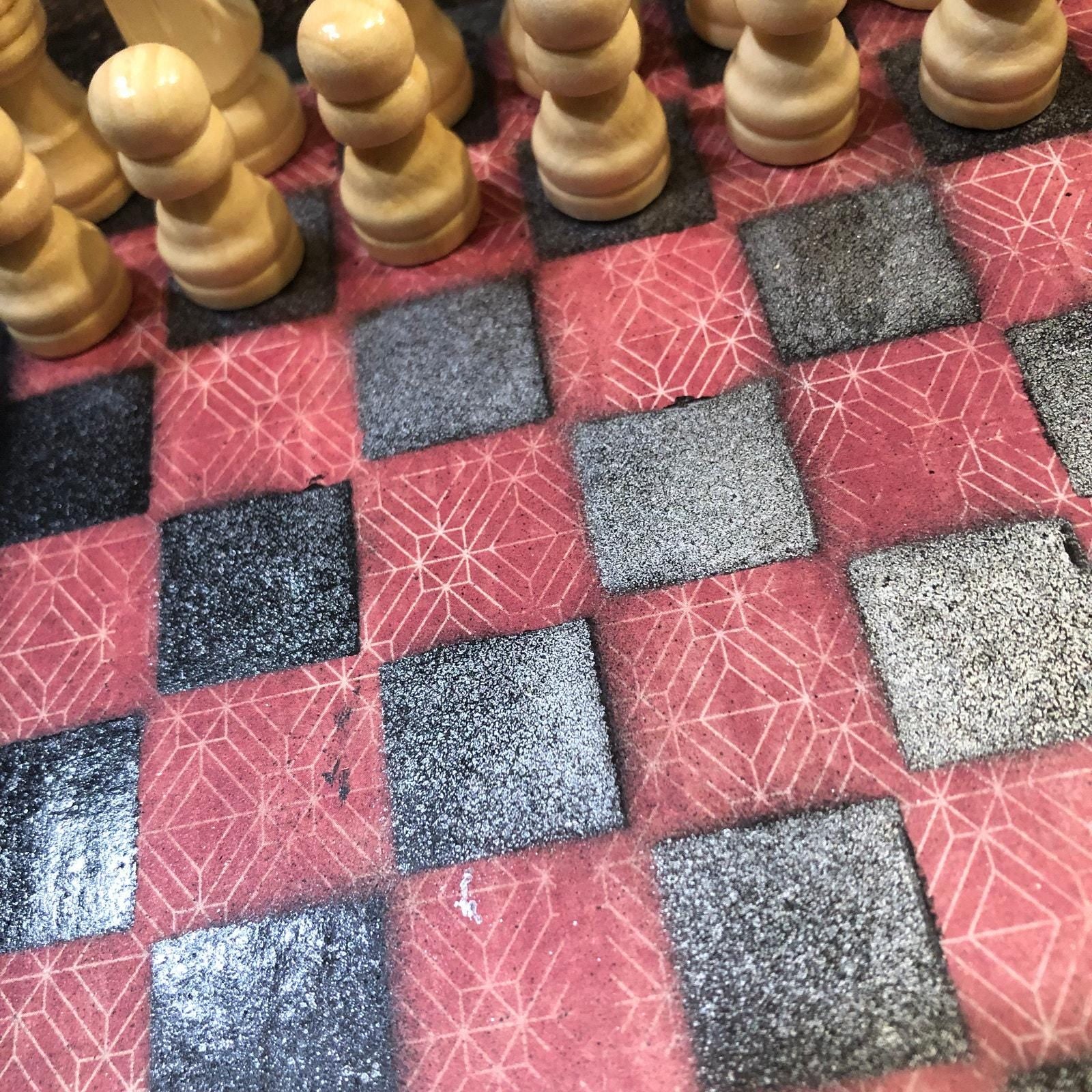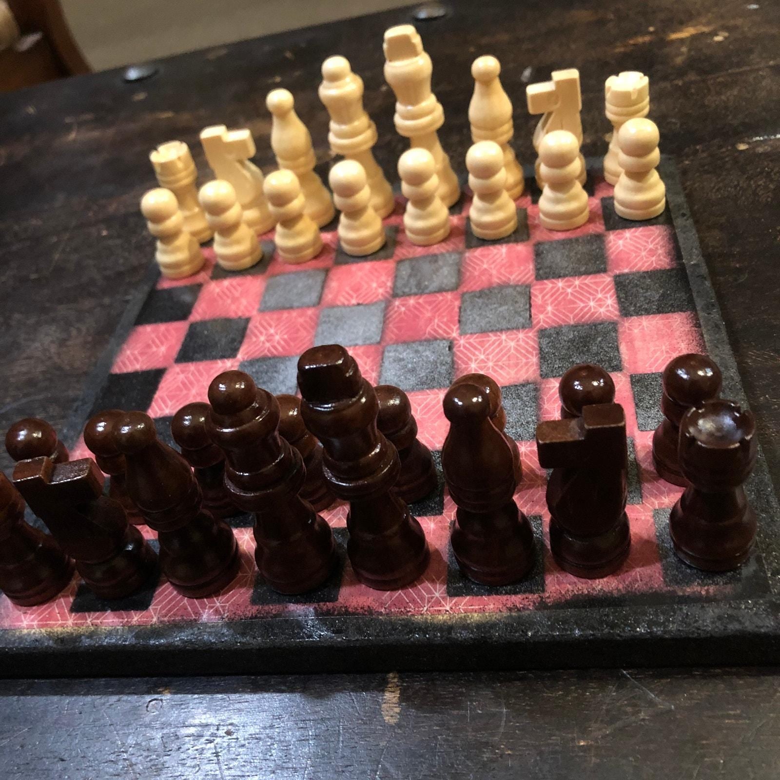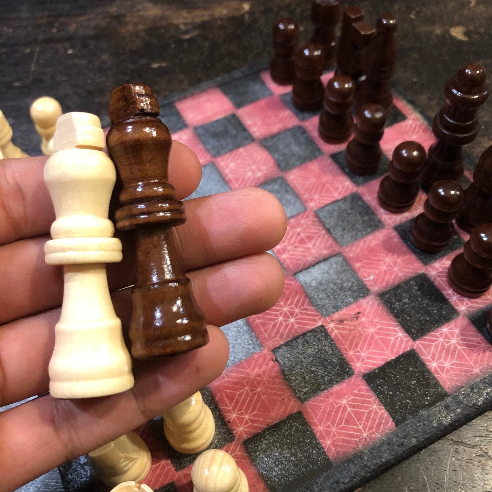 Introducing our exclusive Handcrafted Wooden Chess Set, meticulously designed with precision and care. Measuring 8 inches by 8 inches, this chess set features a beautifully painted particle board layered with a sheet of scrapbook paper board that doubles as a work of art. Each set is a unique, one-of-a-kind creation, crafted by hand to ensure that no two sets are alike. Elevate your gaming experience with this exceptional chess set that combines vibrant design with the touch of artisan craftsmanship. This chess board comes with chess pieces and is handcrafted as a one of one