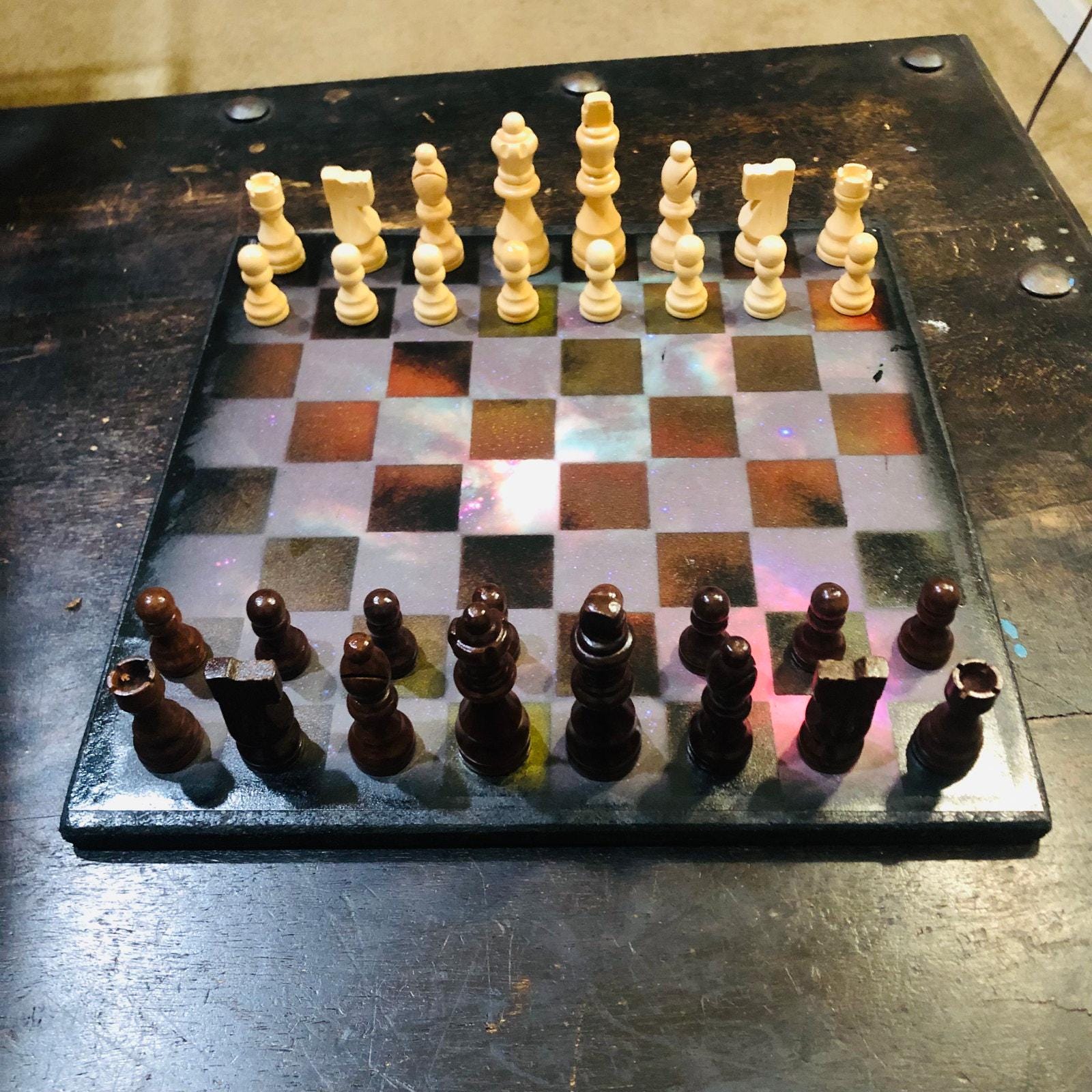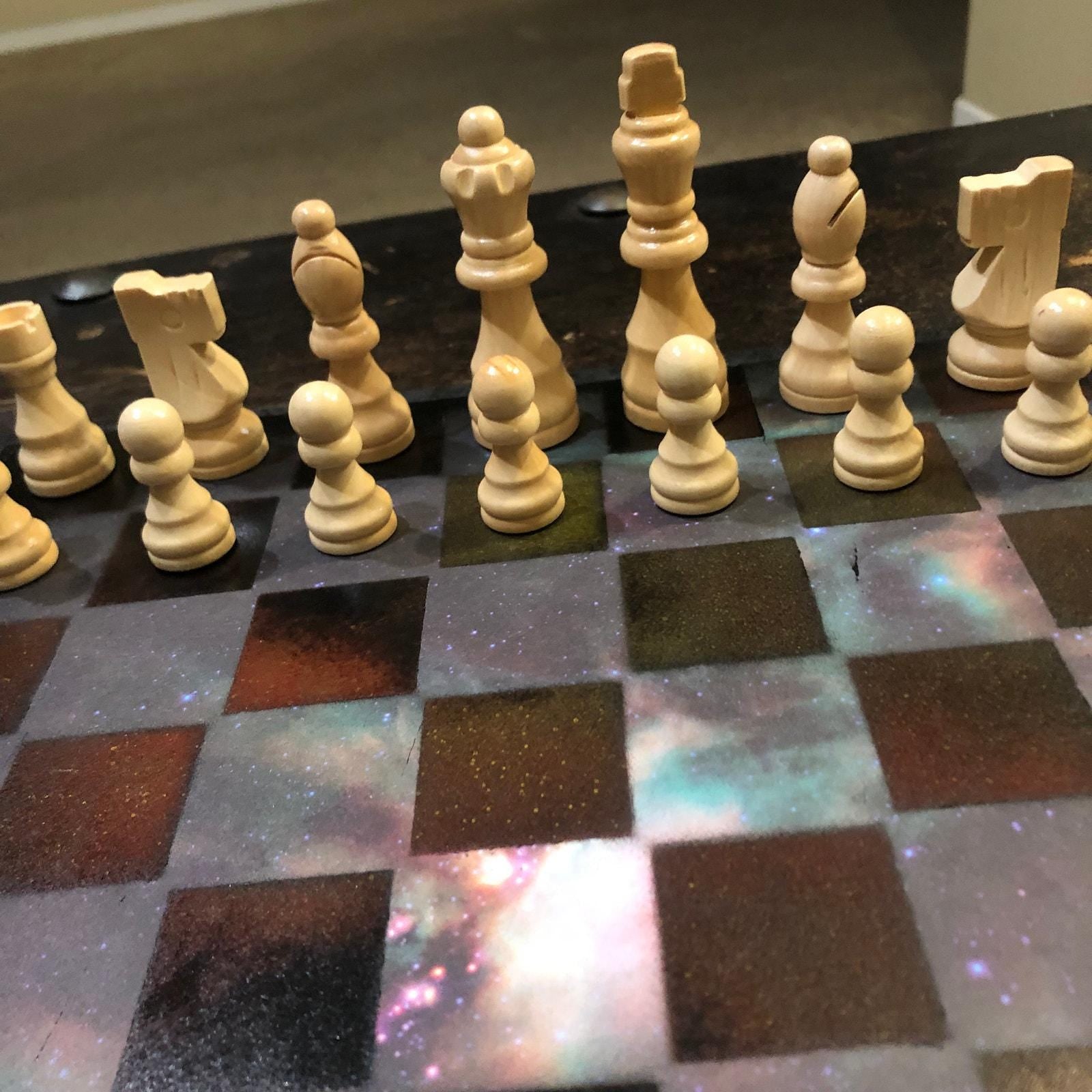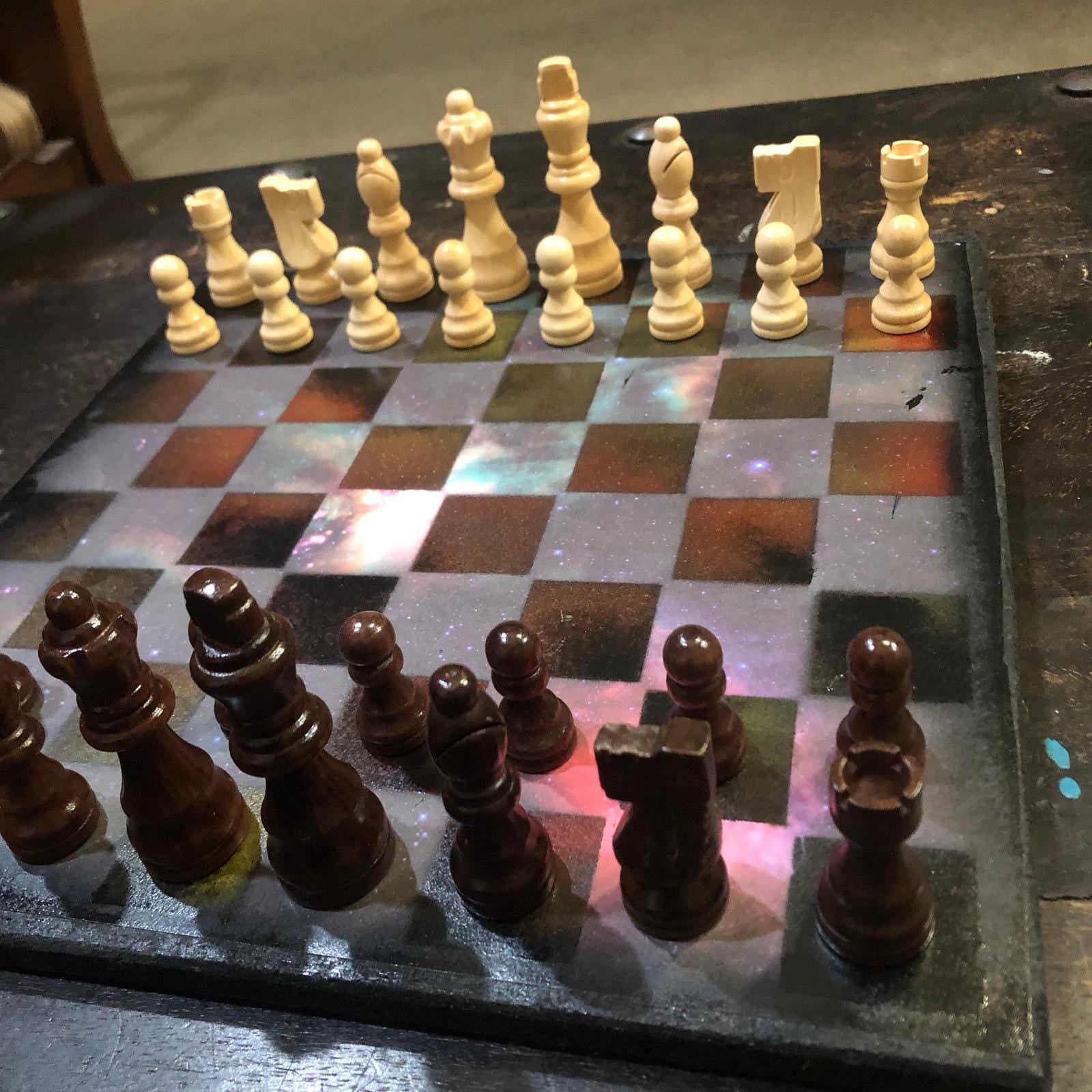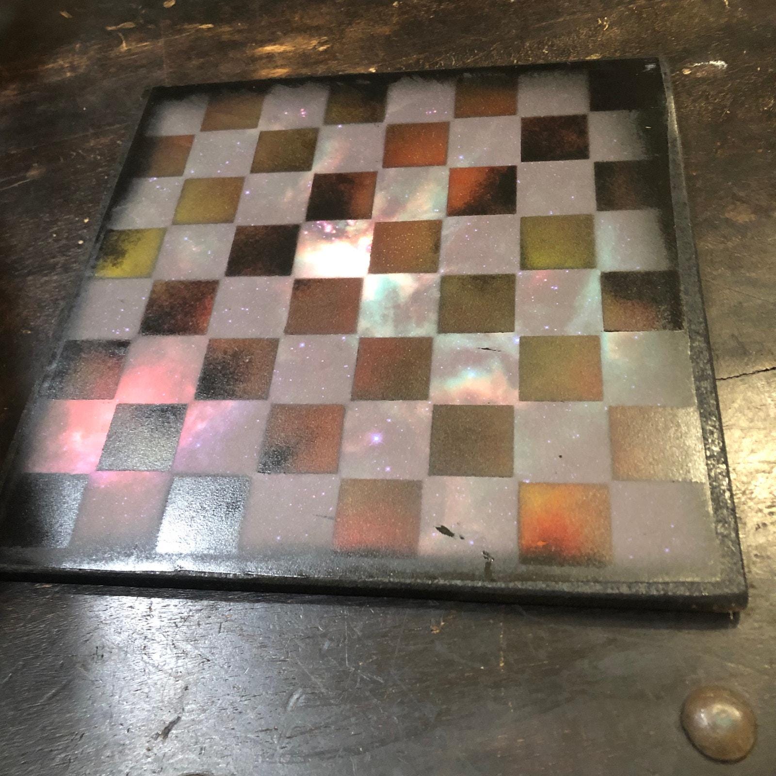 Introducing our exclusive Handcrafted Wooden Chess Set, meticulously designed with precision and care. Measuring 12 inches by 12 inches, this chess set features a beautifully painted particle board layered with a sheet of scrapbook paper board that doubles as a work of art. Each set is a unique, one-of-a-kind creation, crafted by hand to ensure that no two sets are alike. Elevate your gaming experience with this exceptional chess set that combines vibrant design with the touch of artisan craftsmanship. This chess board comes with chess pieces and is handcrafted as a one of one