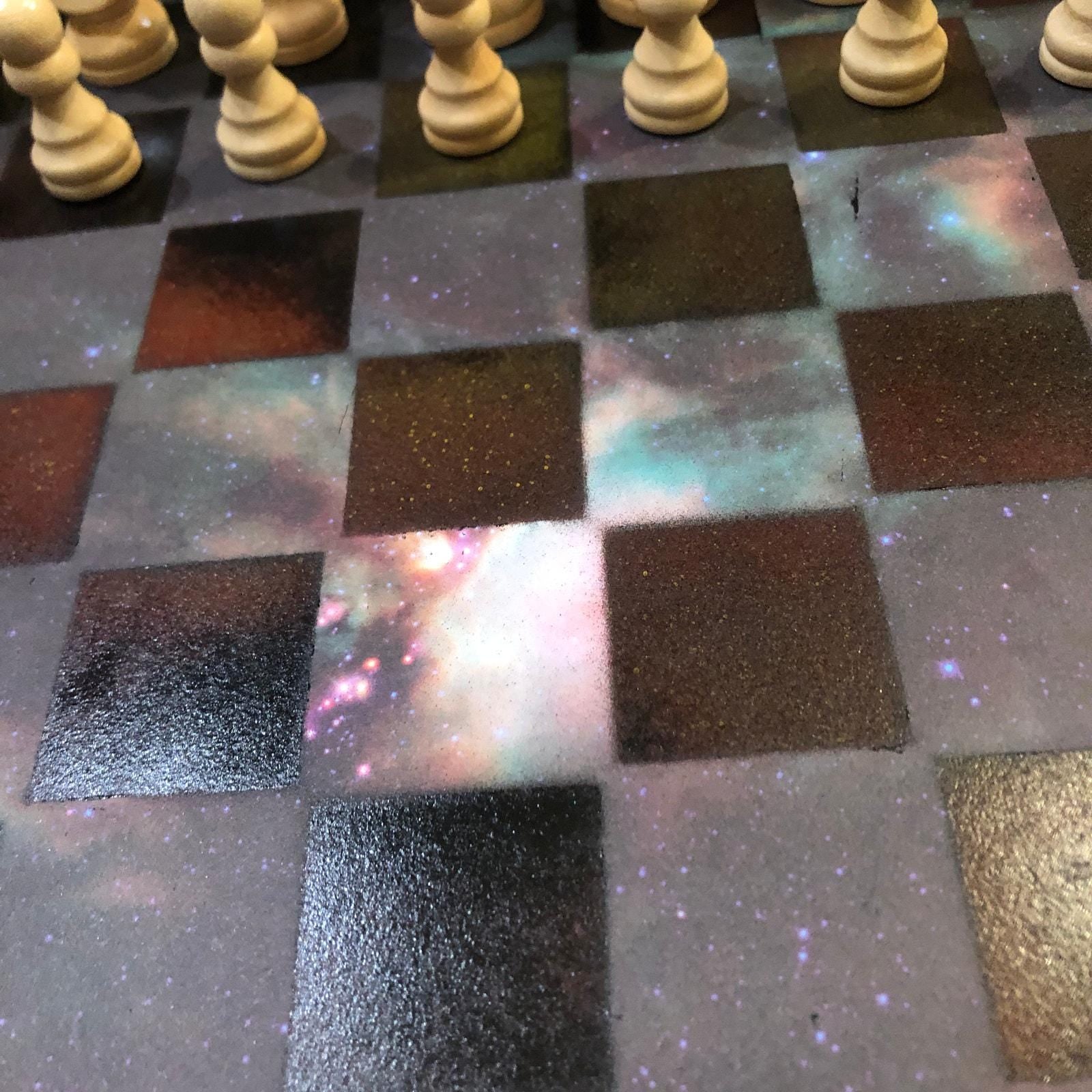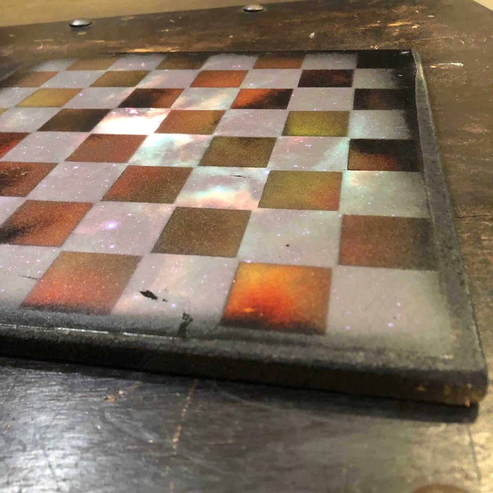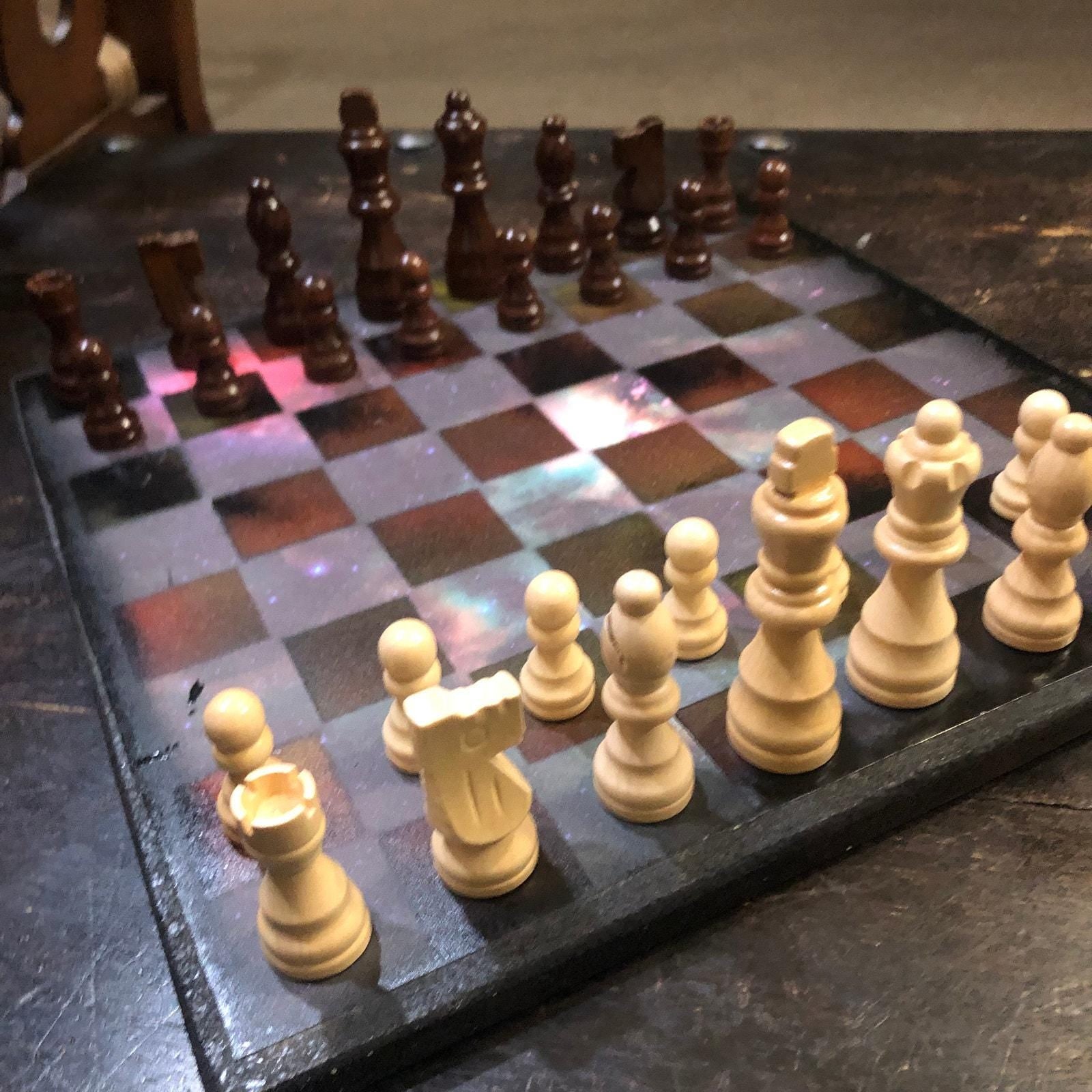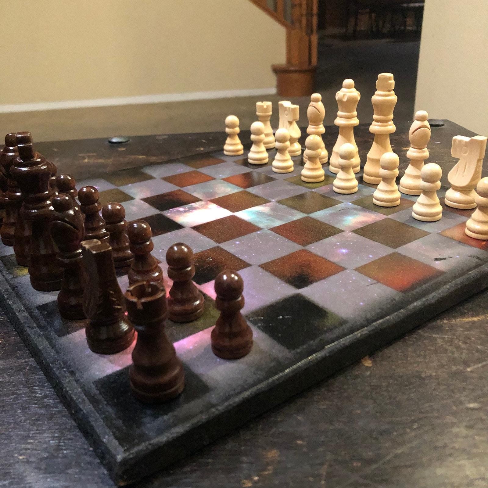 Introducing our exclusive Handcrafted Wooden Chess Set, meticulously designed with precision and care. Measuring 12 inches by 12 inches, this chess set features a beautifully painted particle board layered with a sheet of scrapbook paper board that doubles as a work of art. Each set is a unique, one-of-a-kind creation, crafted by hand to ensure that no two sets are alike. Elevate your gaming experience with this exceptional chess set that combines vibrant design with the touch of artisan craftsmanship. This chess board comes with chess pieces and is handcrafted as a one of one