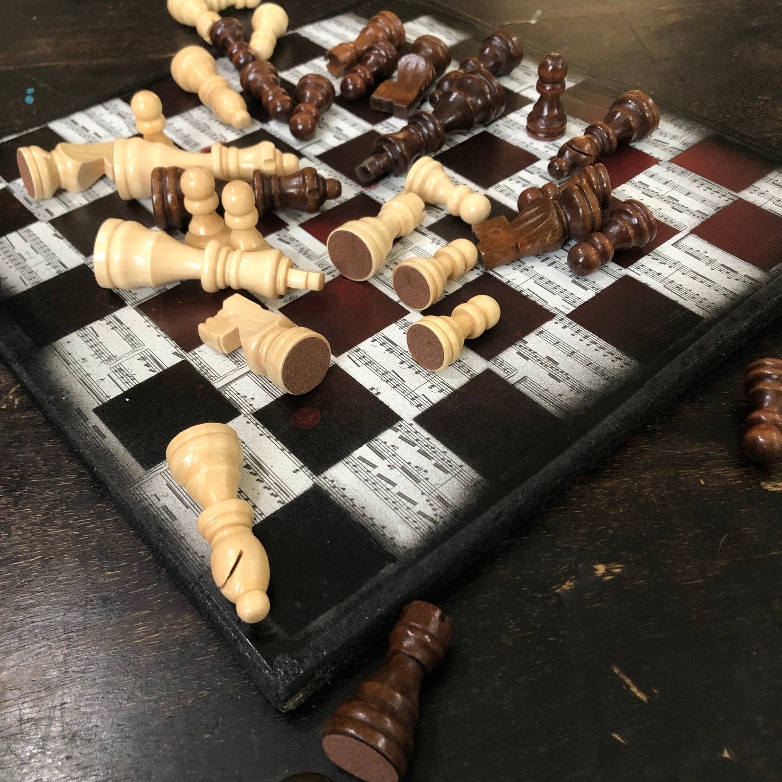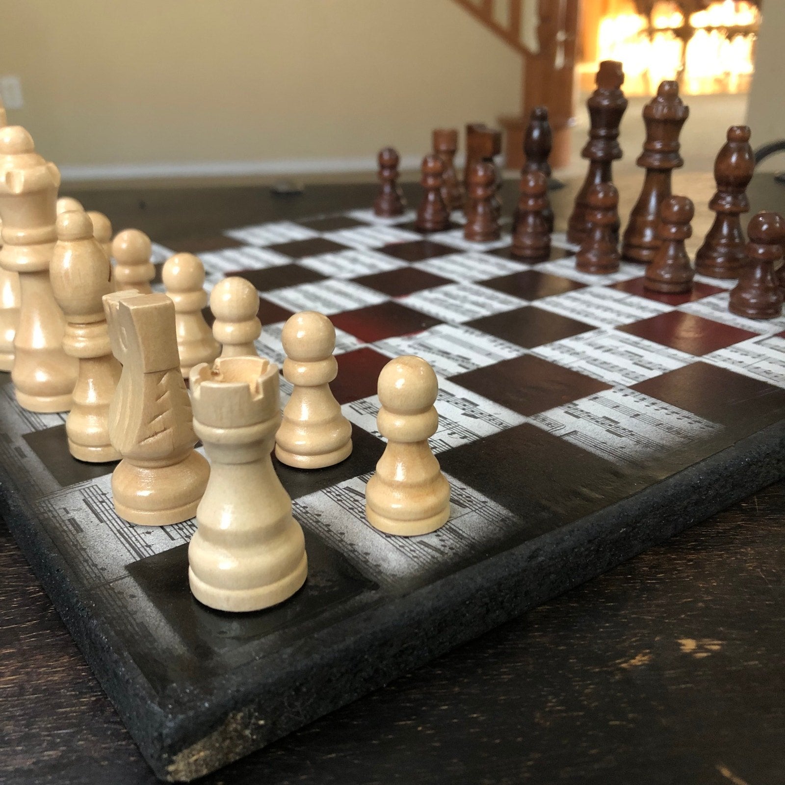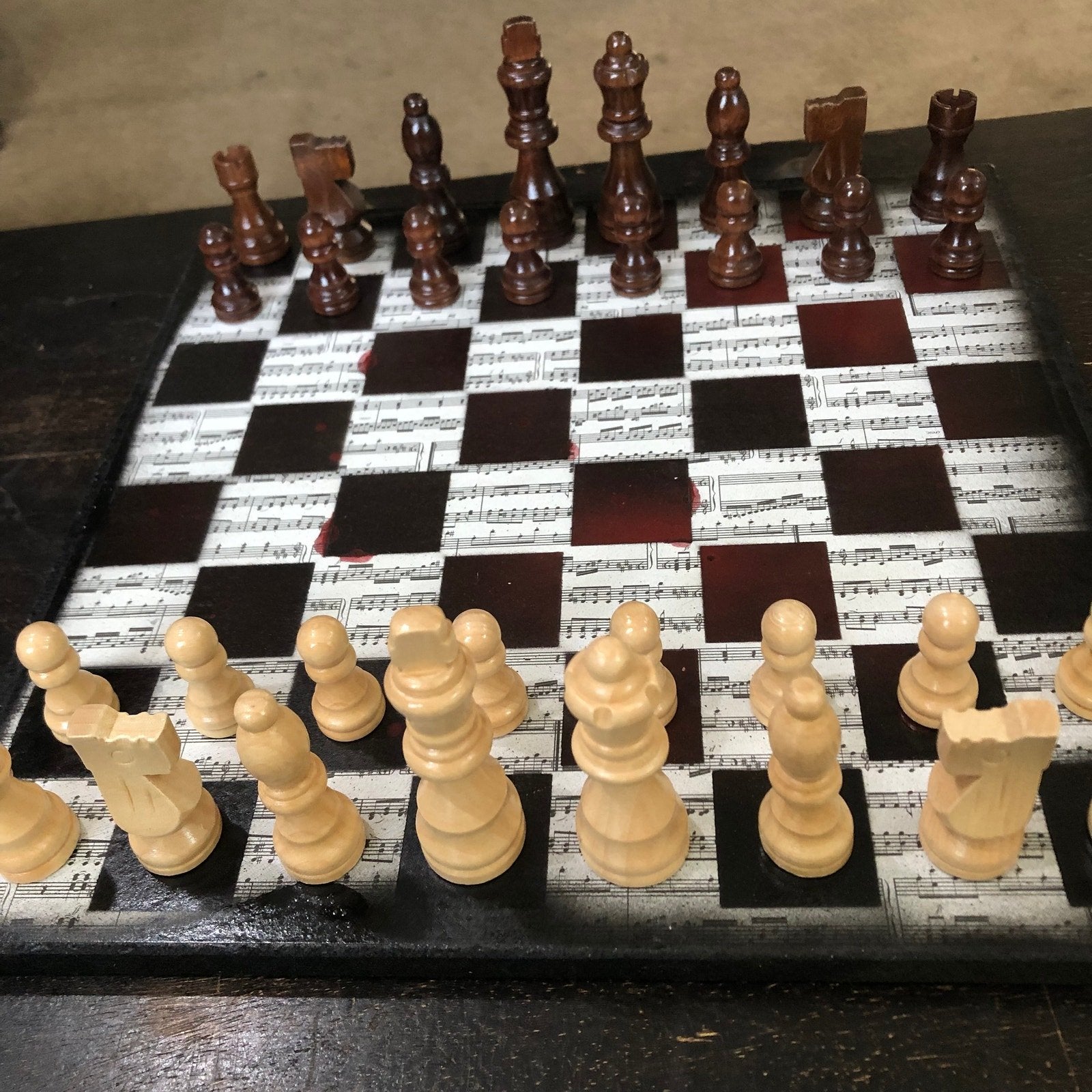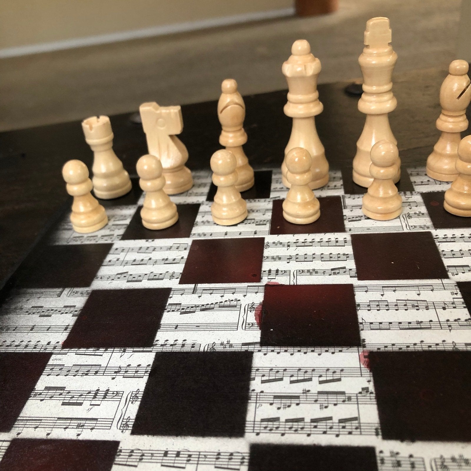 Introducing our exclusive Handcrafted Wooden Chess Set, meticulously designed with precision and care. Measuring 12 inches by 12 inches, this chess set features a beautifully painted particle board layered with a sheet of scrapbook paper board that doubles as a work of art. Each set is a unique, one-of-a-kind creation, crafted by hand to ensure that no two sets are alike. Elevate your gaming experience with this exceptional chess set that combines vibrant design with the touch of artisan craftsmanship. This chess board comes with chess pieces and is handcrafted as a one of one
