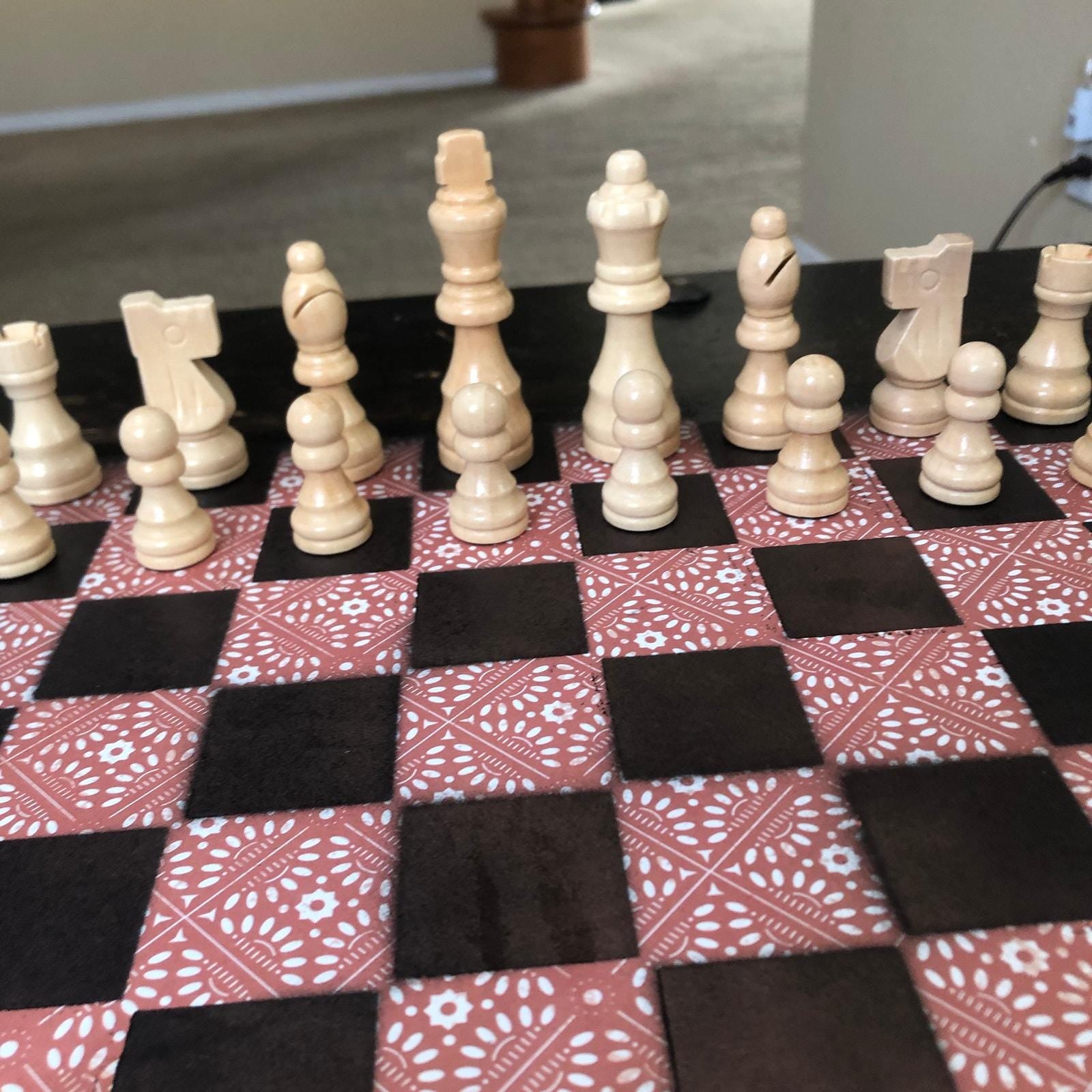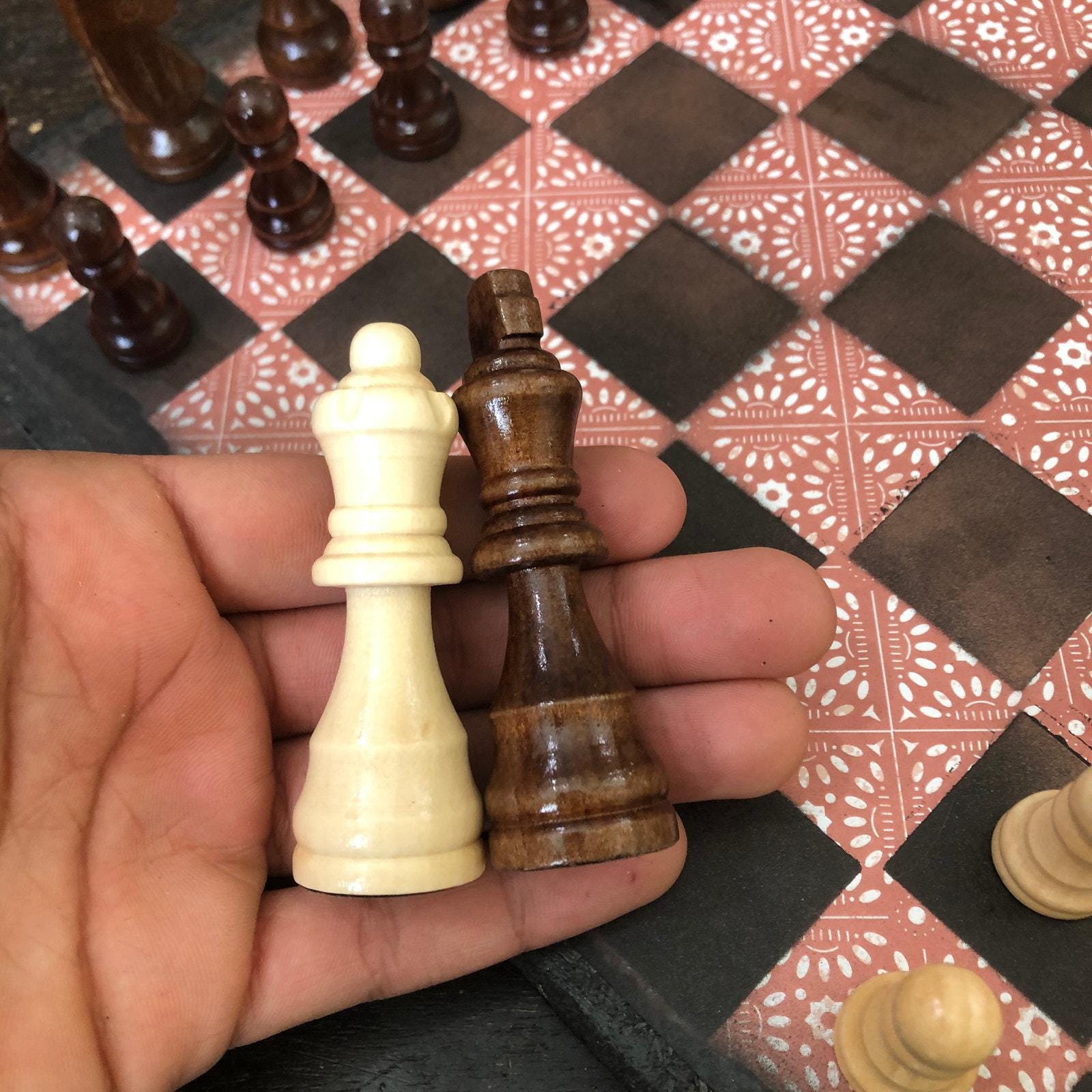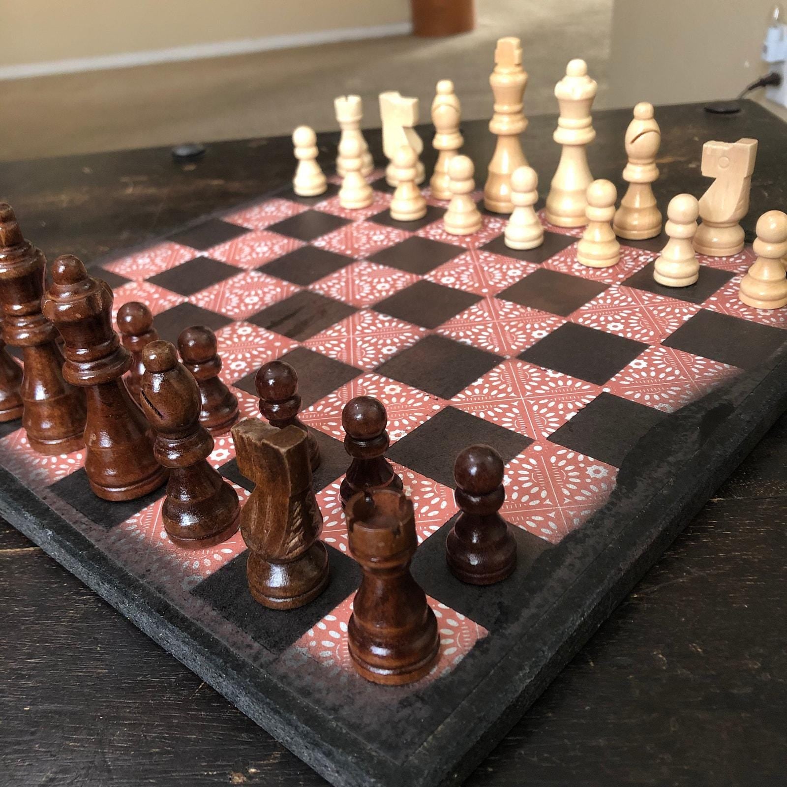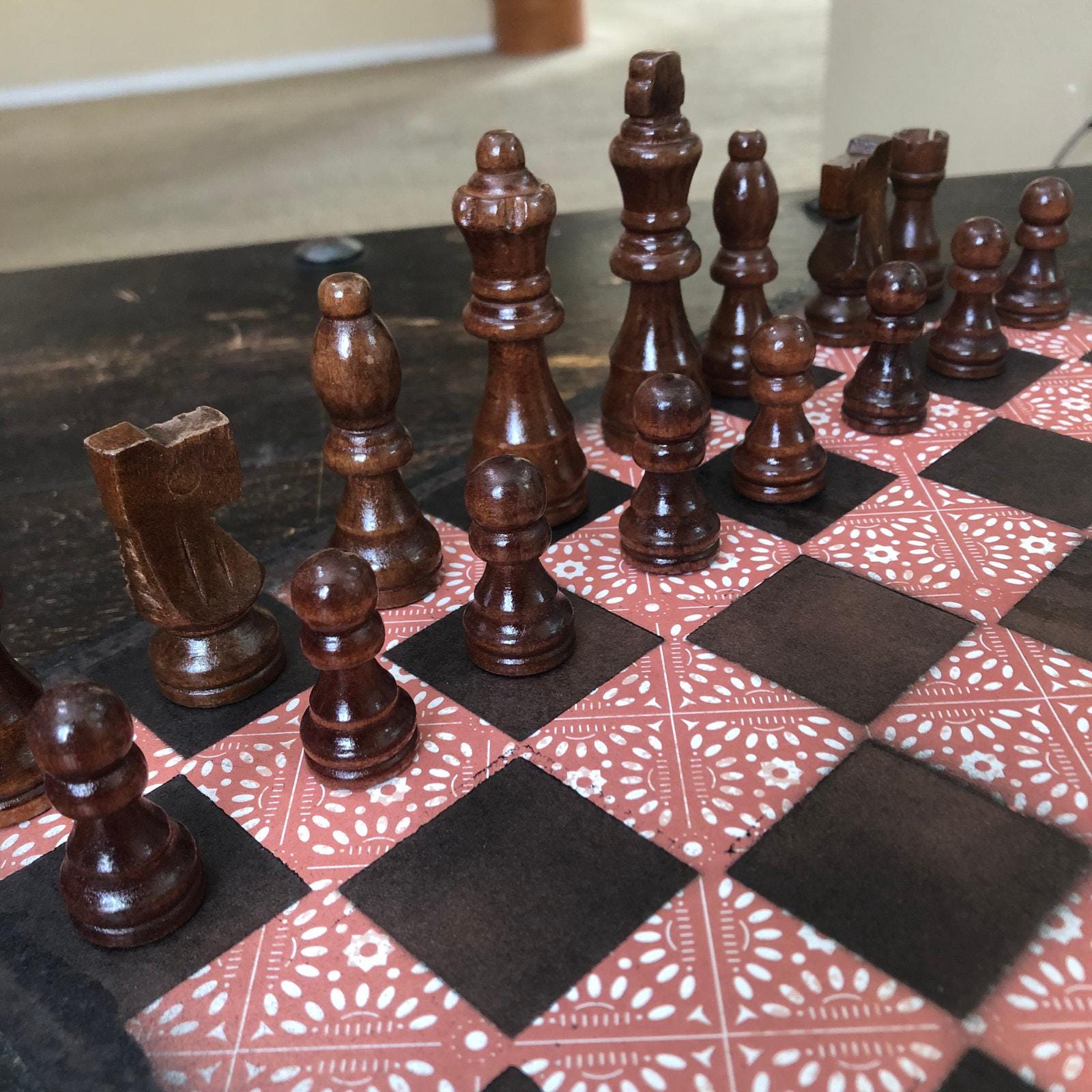 Introducing our exclusive Handcrafted Wooden Chess Set, meticulously designed with precision and care. Measuring 12 inches by 12 inches, this chess set features a beautifully painted particle board layered with a sheet of scrapbook paper board that doubles as a work of art. Each set is a unique, one-of-a-kind creation, crafted by hand to ensure that no two sets are alike. Elevate your gaming experience with this exceptional chess set that combines vibrant design with the touch of artisan craftsmanship. This chess board comes with chess pieces and is handcrafted as a one of one